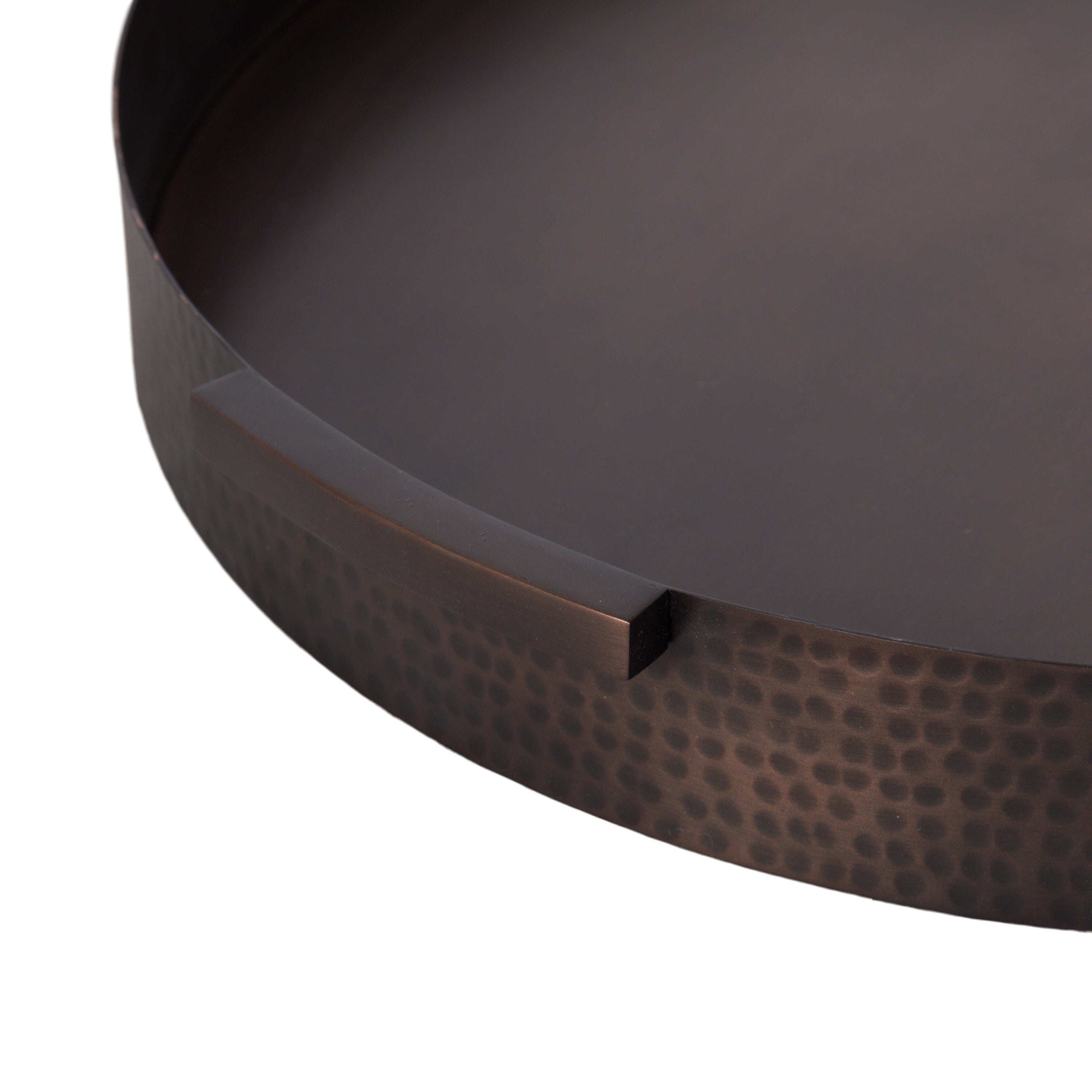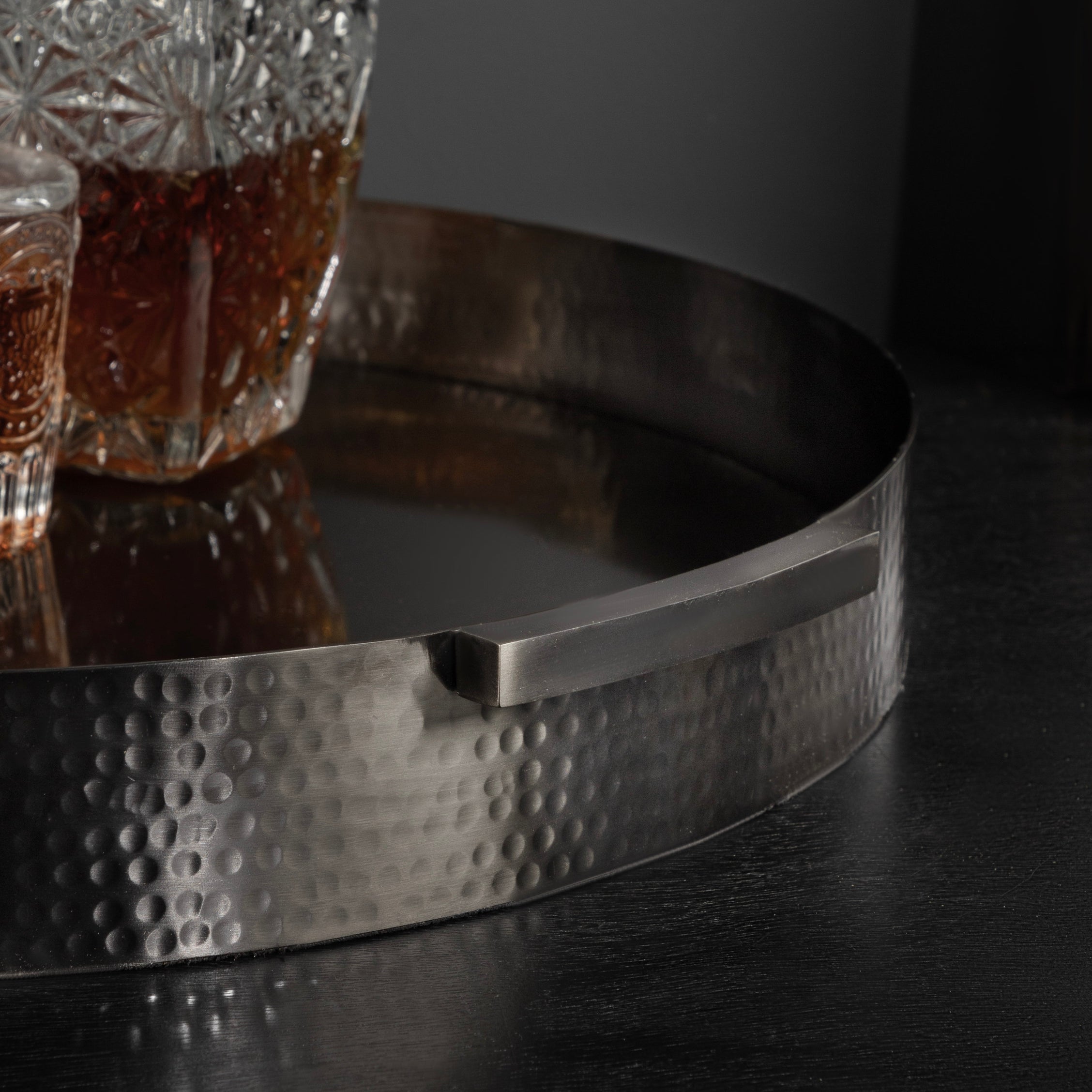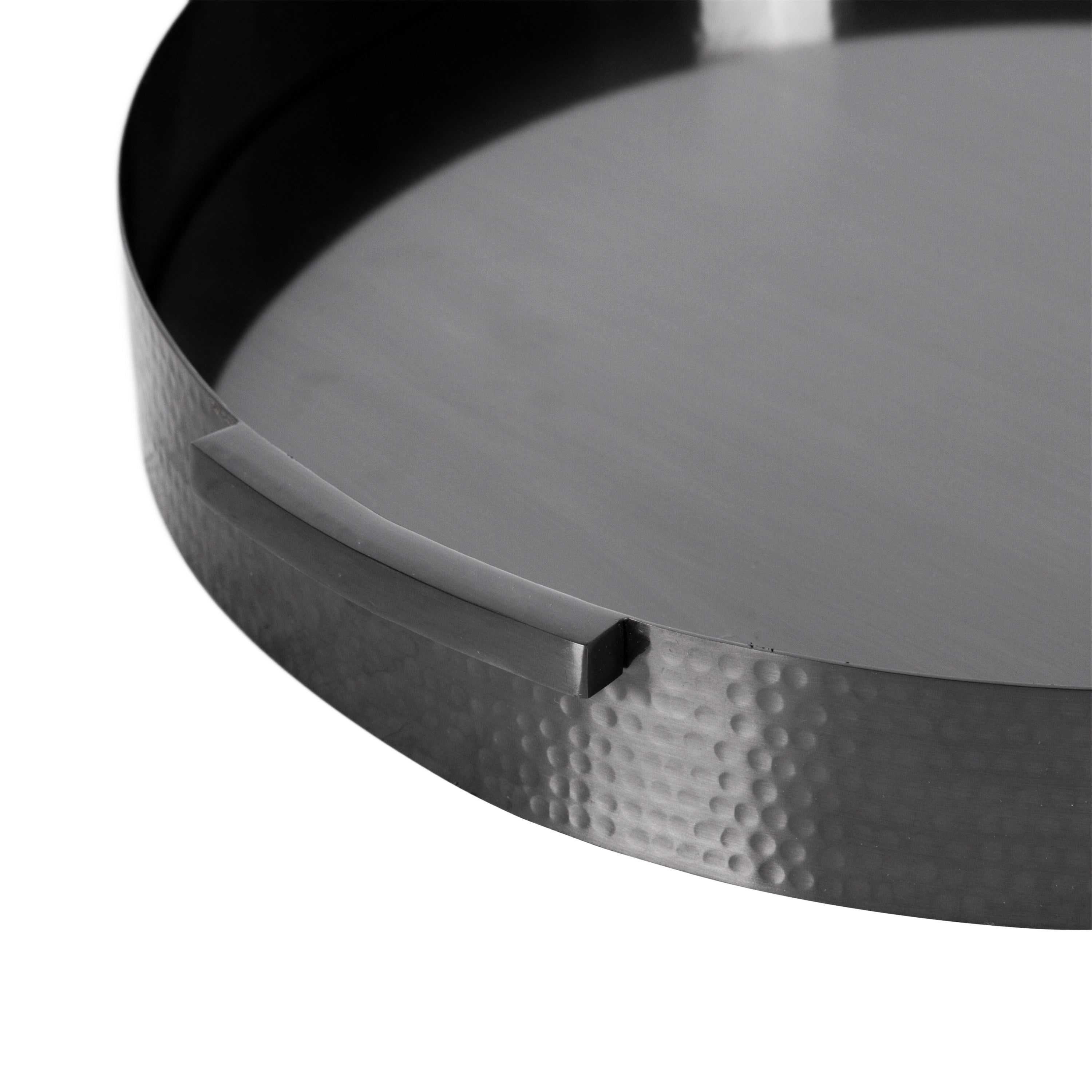 Craft a gorgeous dinner party scene with this Samana round metal tray from Kate and Laurel. This marvelous decorative tray boasts a resilient metal construction, giving your space a high-quality accent piece that was built to last. Along its stunning outer edge, the Samana features a hammered texture that was carefully handcrafted by artisans in India.