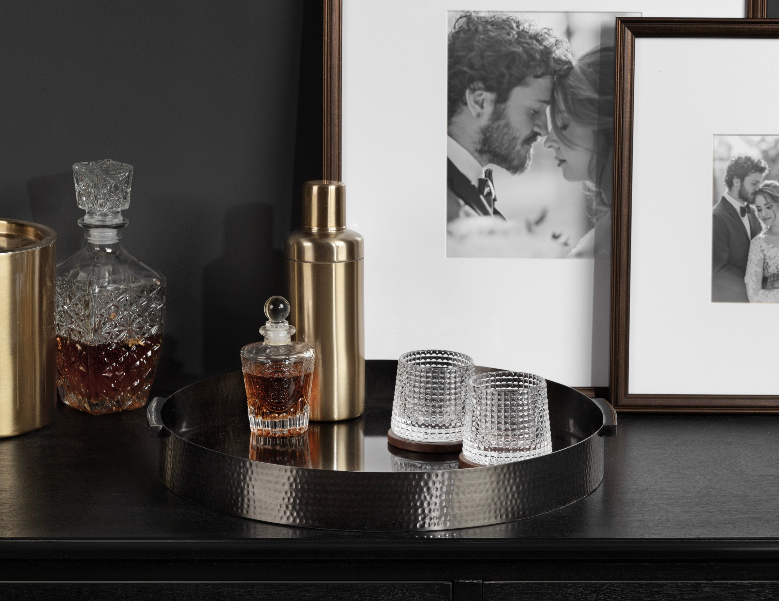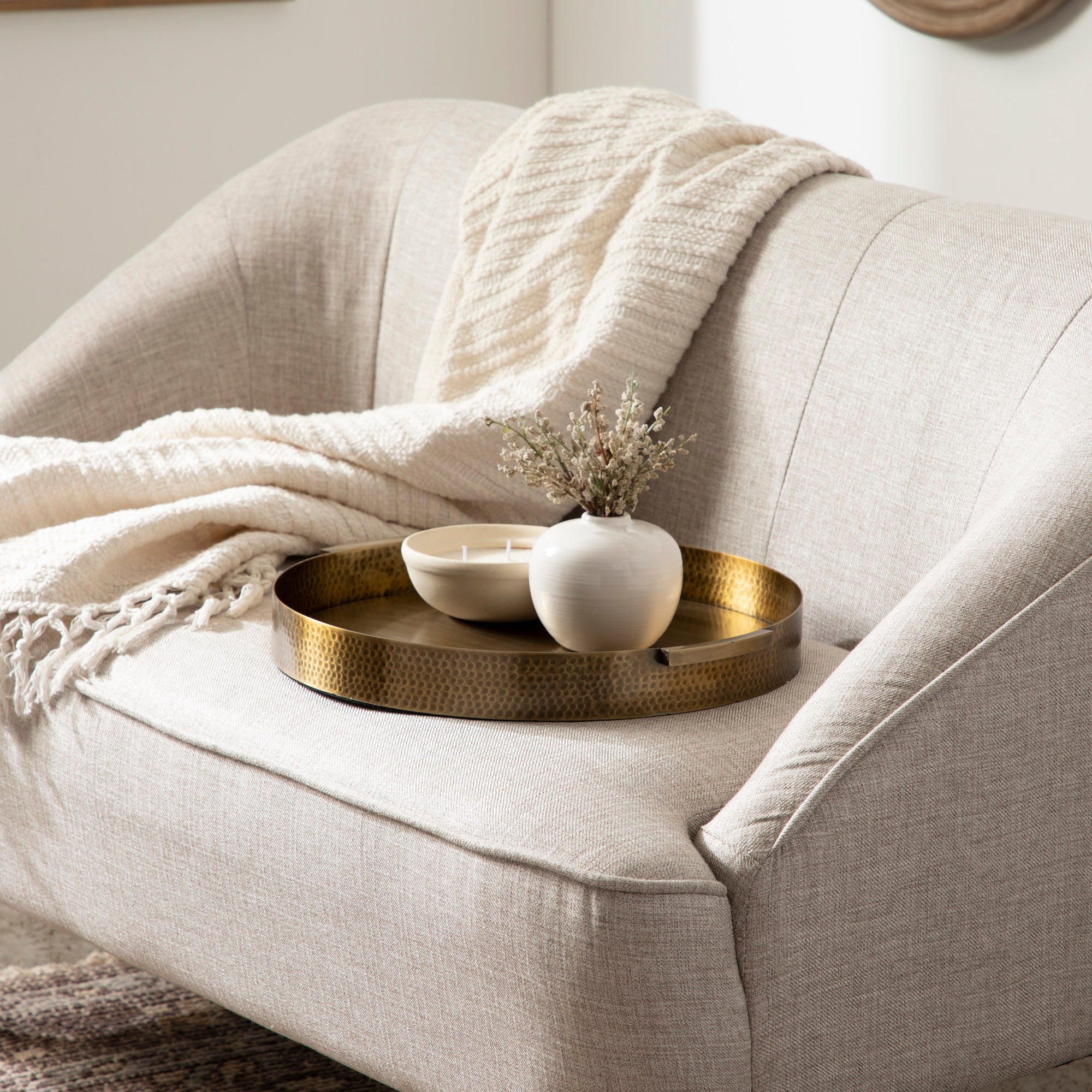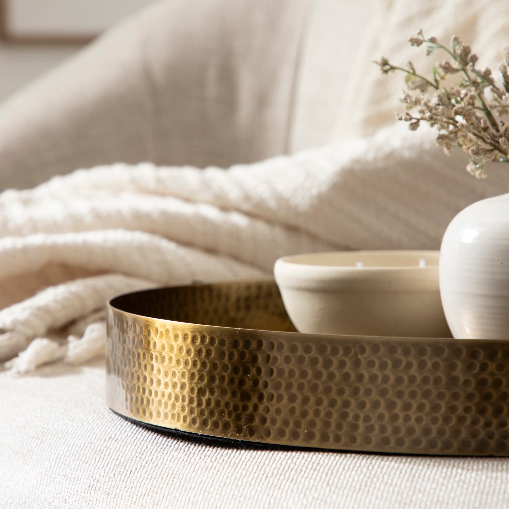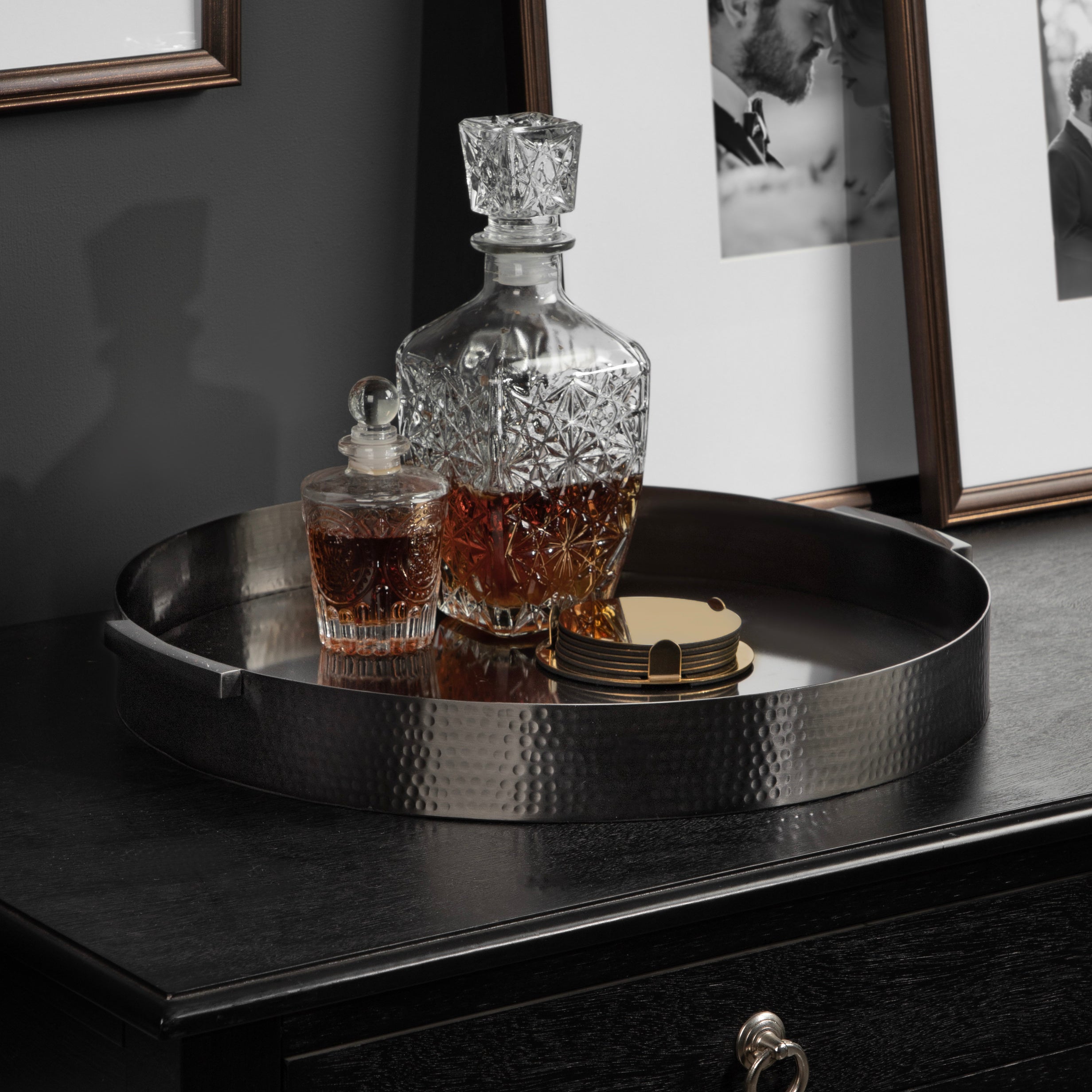 Craft a gorgeous dinner party scene with this Samana round metal tray from Kate and Laurel. This marvelous decorative tray boasts a resilient metal construction, giving your space a high-quality accent piece that was built to last. Along its stunning outer edge, the Samana features a hammered texture that was carefully handcrafted by artisans in India.