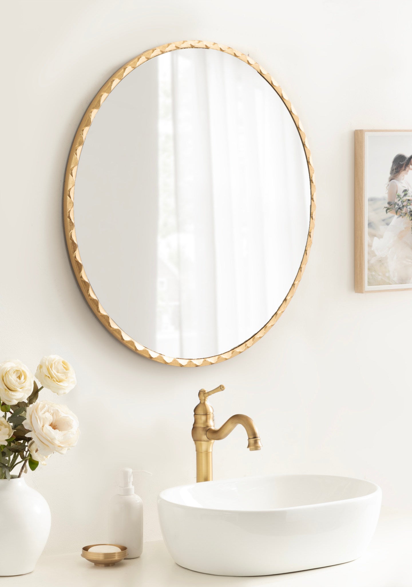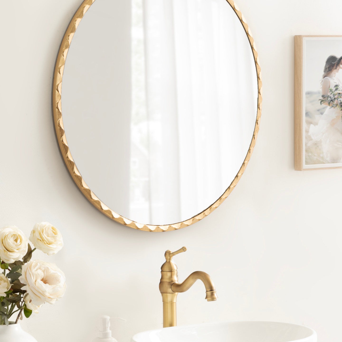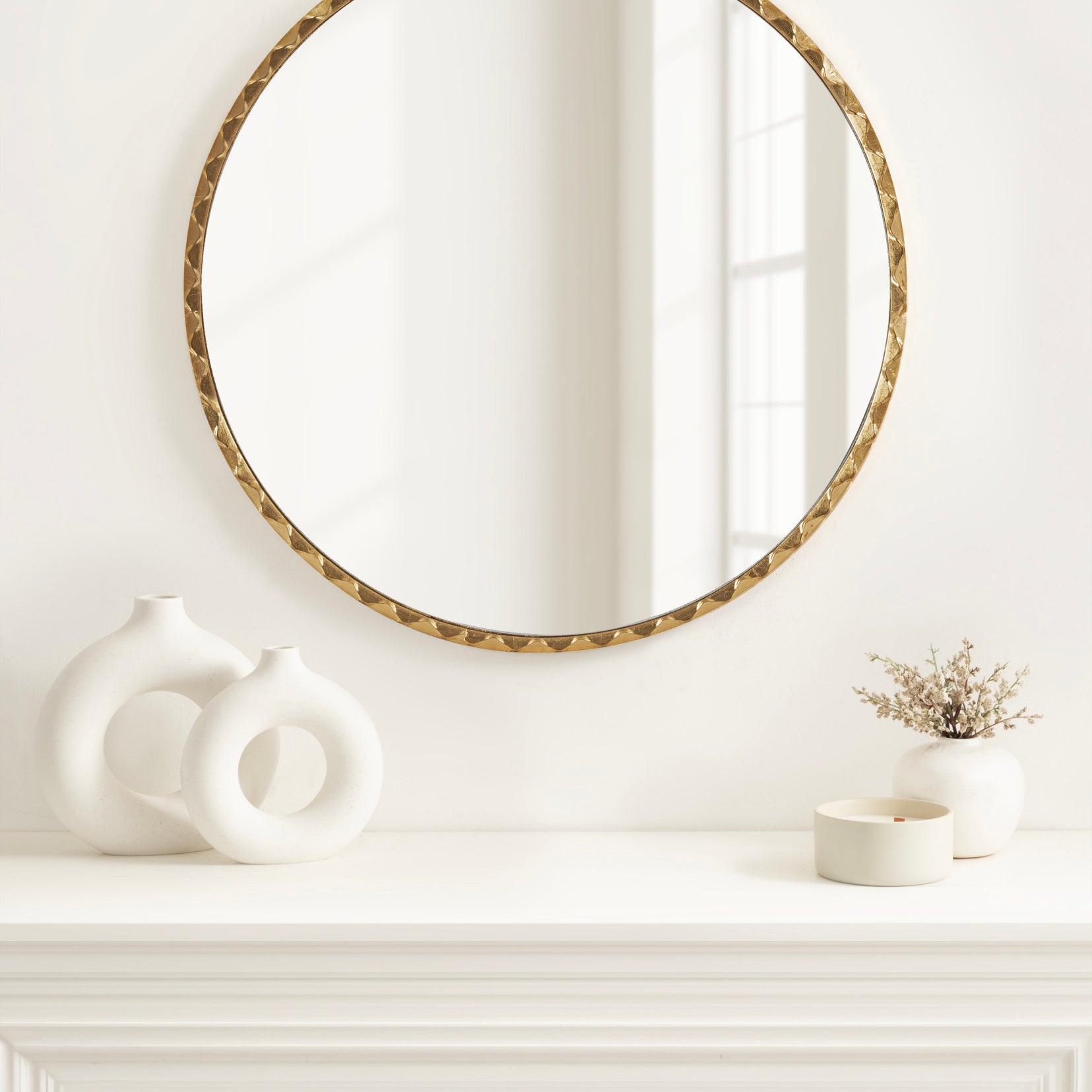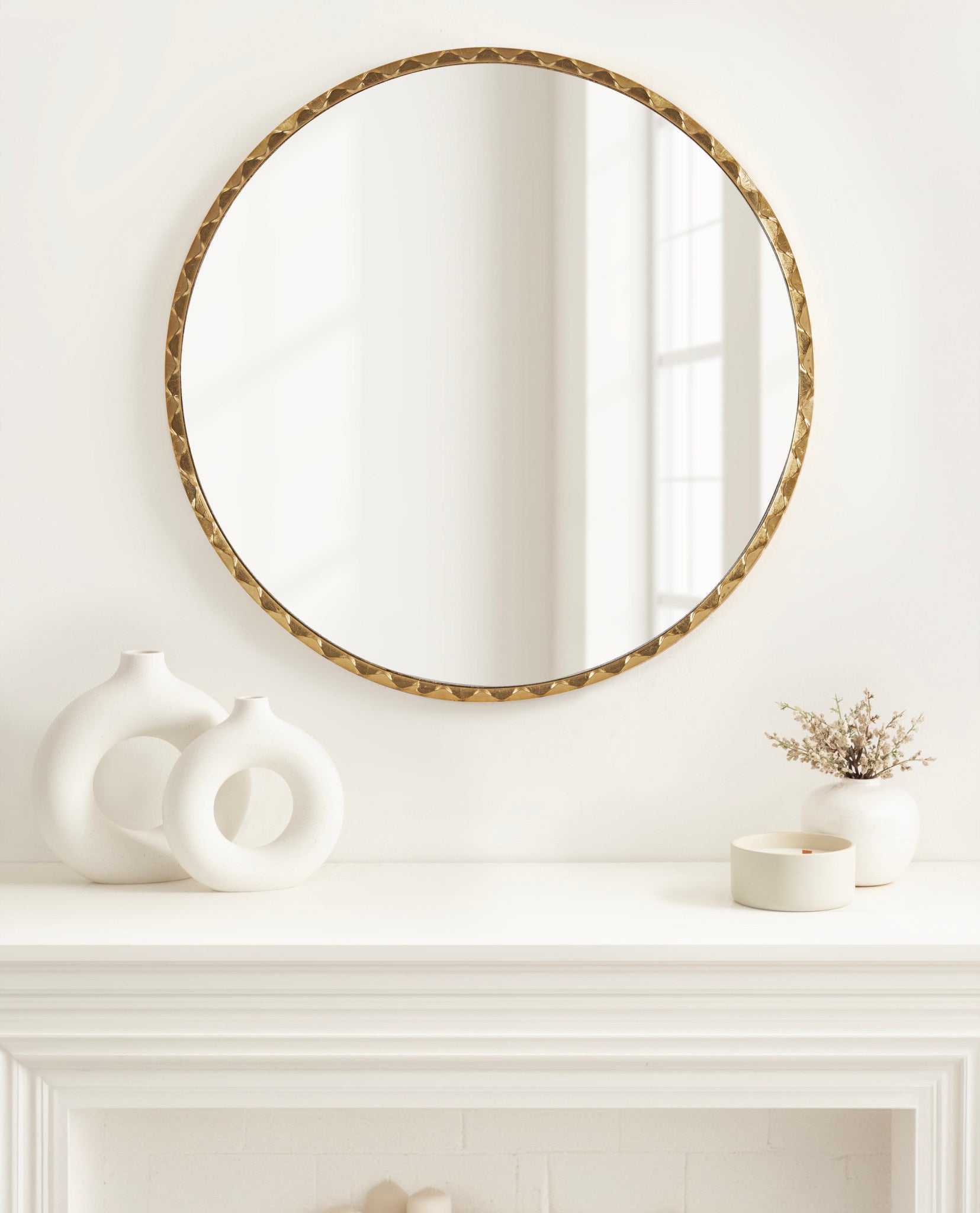 Enhance the glamorous aesthetic of your home by featuring the beautiful Sebecka wall mirror in your home. Inspired by modern design and glam style, the wavy mirror has a round shape with a soft, rippled edge, creating a fascinating visual piece with an elegant presence. The dynamic shape of this beautiful mirror is complemented by the stunning finish, making a formal statement on any wall throughout your home. Hang this beautiful piece of wall decor over your entryway console, above a living room mantle, or a bedroom dresser. If you're looking to renovate your powder room or master bath, the Sebecka mirror also looks excellent as a bathroom mirror above a vanity! To hang the gorgeous Sebecka mirror, use the metal D-ring hangers attached to the back of the frame.