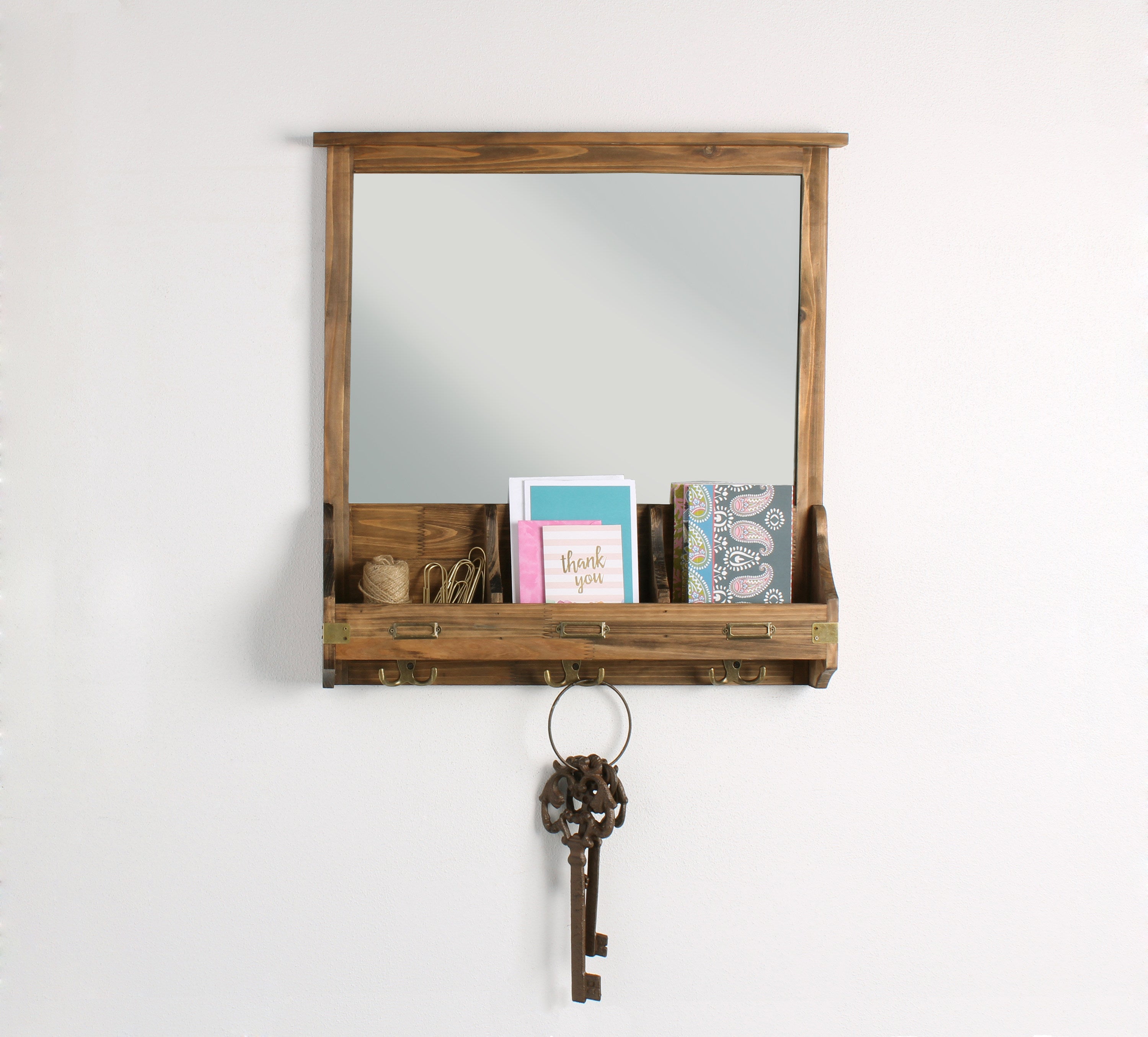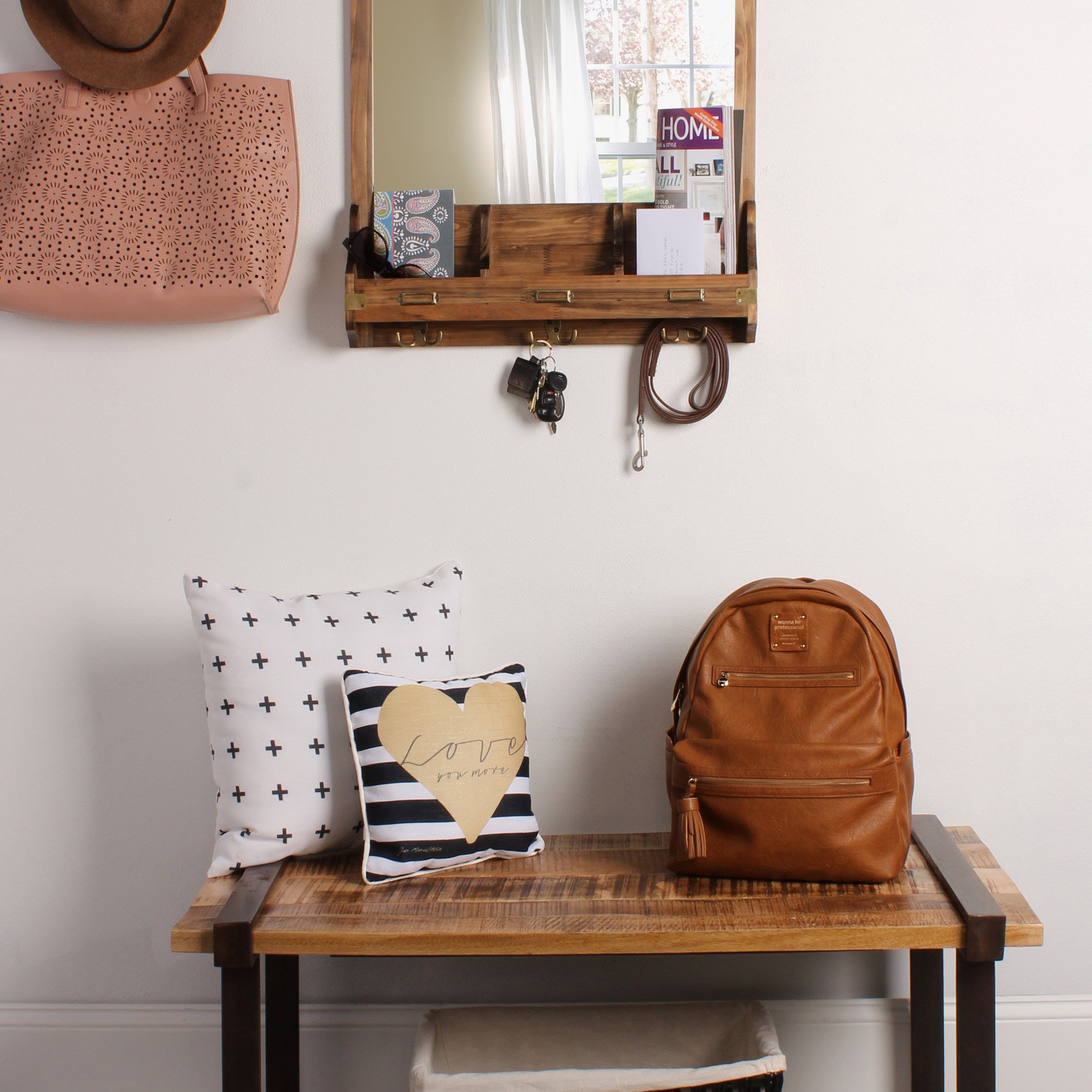 Another classic wall-mounted organizer board but this one features a large mirror. Use it in an entryway for additional storage and adding a bit of personality to an otherwise dull part of the home. The Stallard wall mirror takes organizing up a notch with the 3 double metal hooks, and 3 generous size storage pockets all while still looking fantastically fashionable!