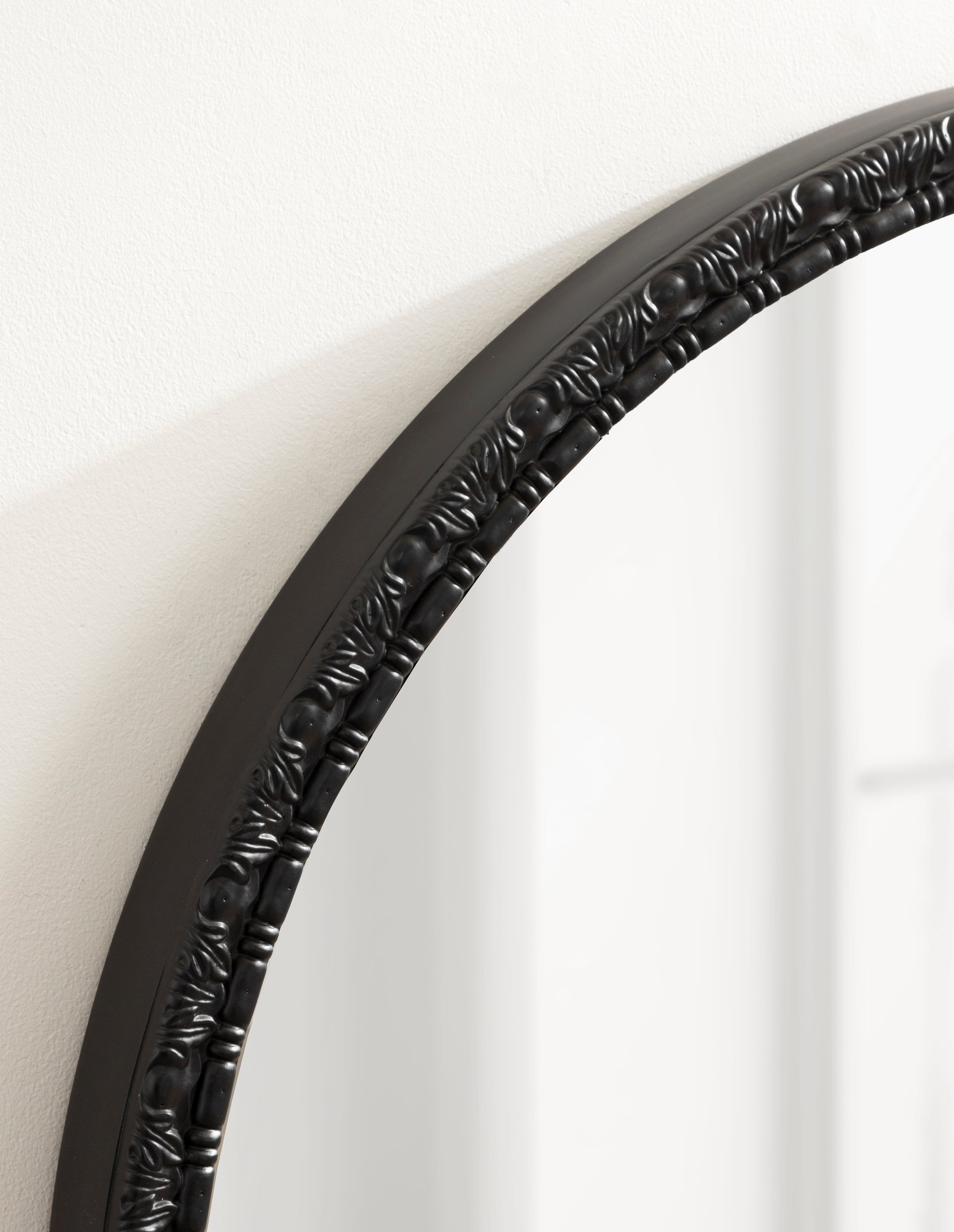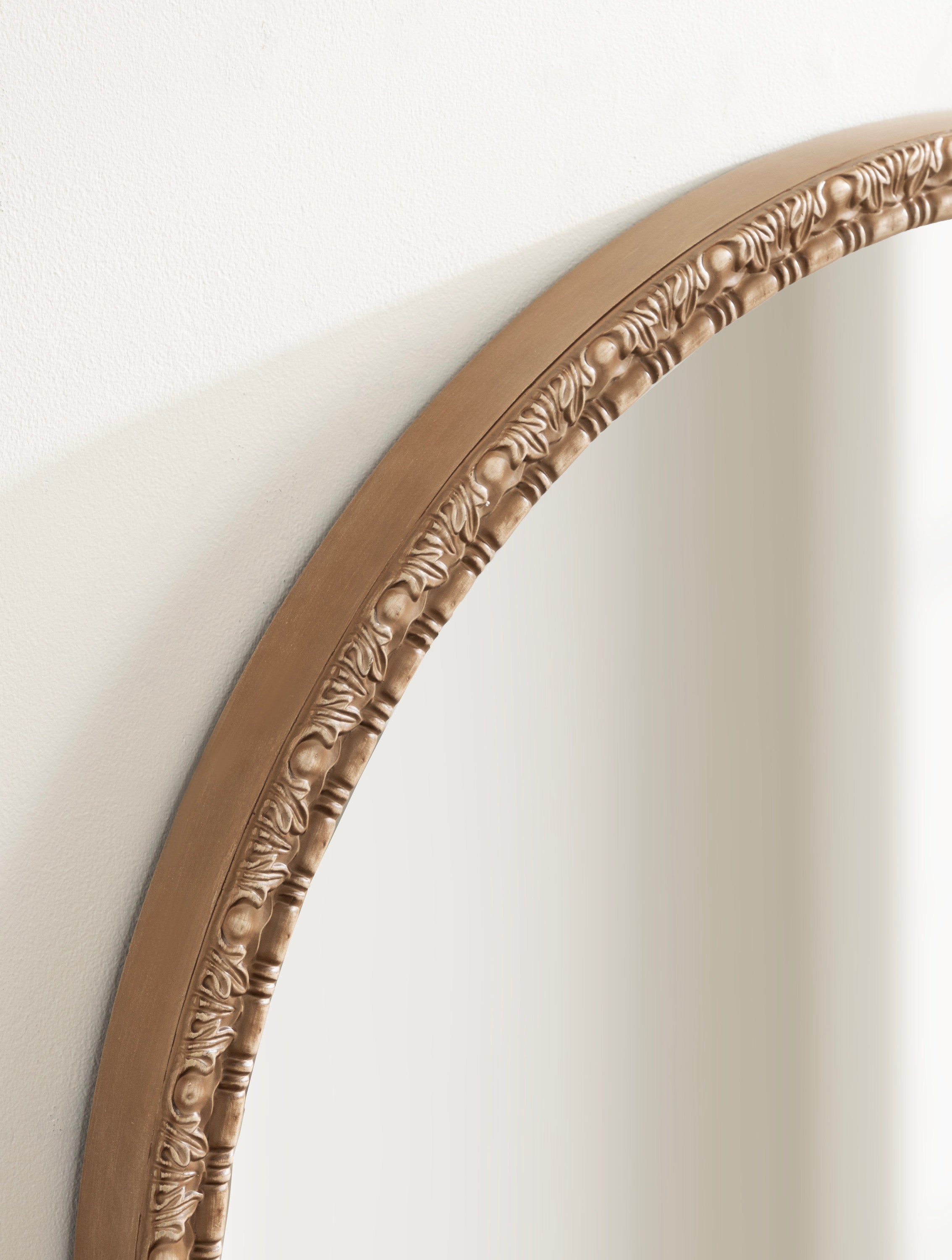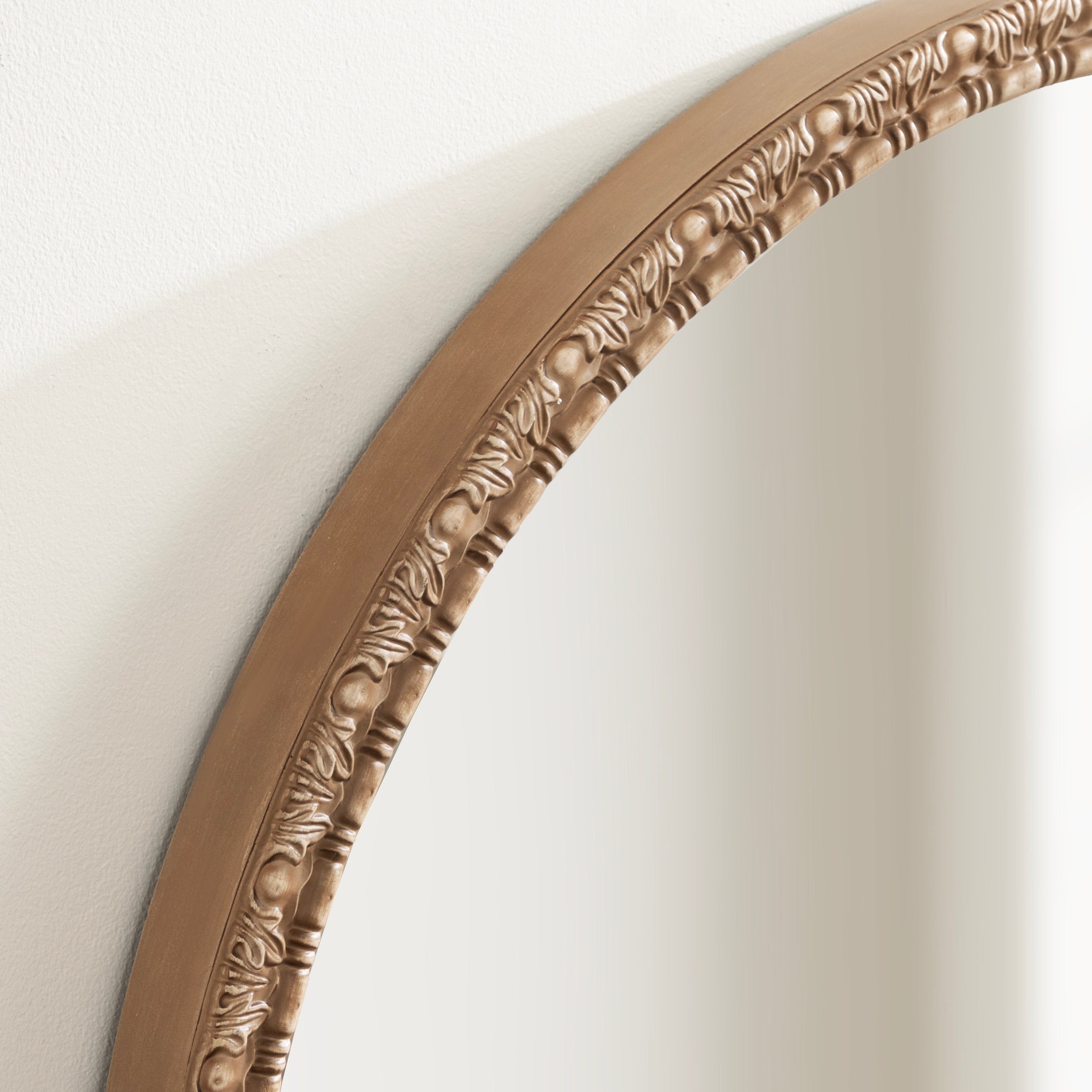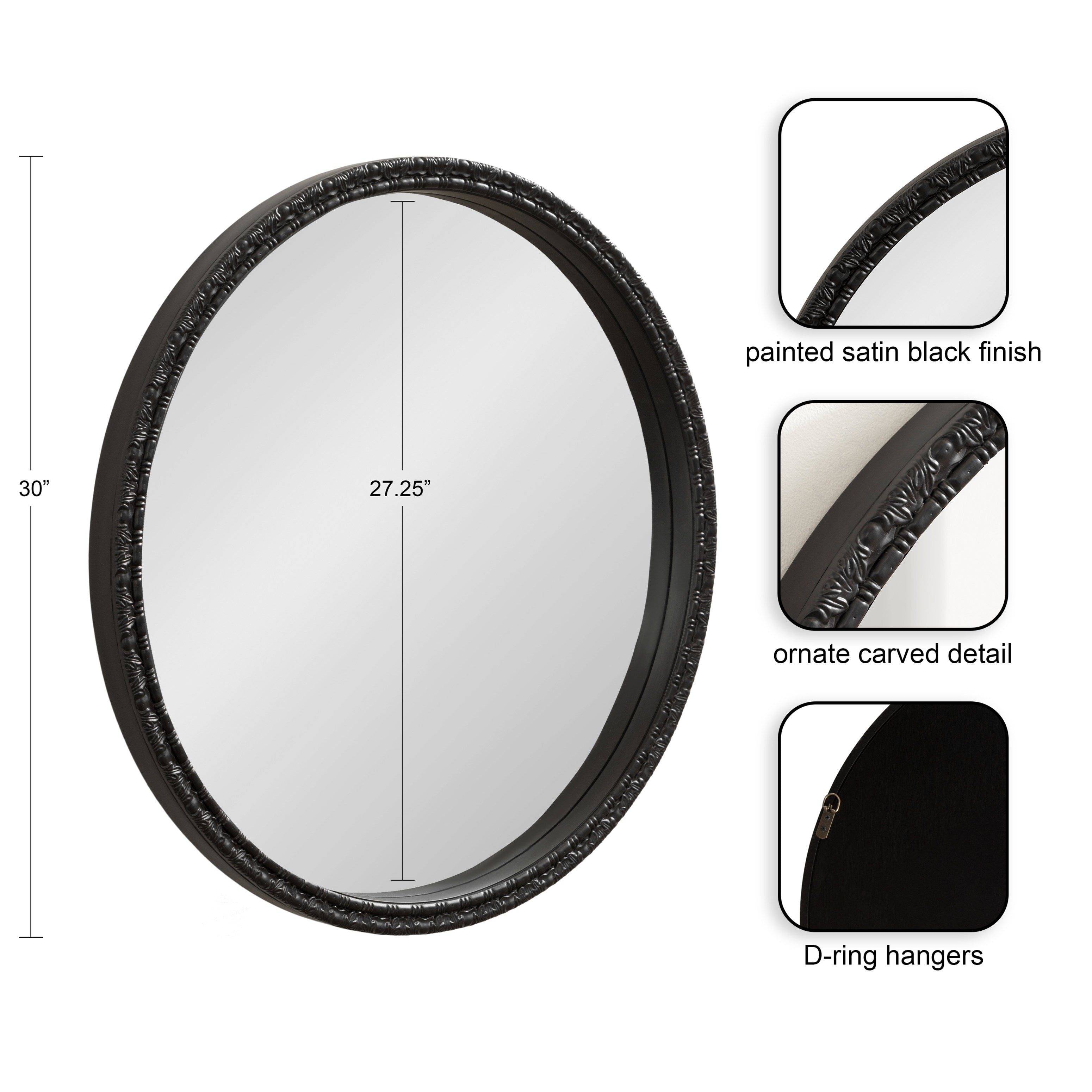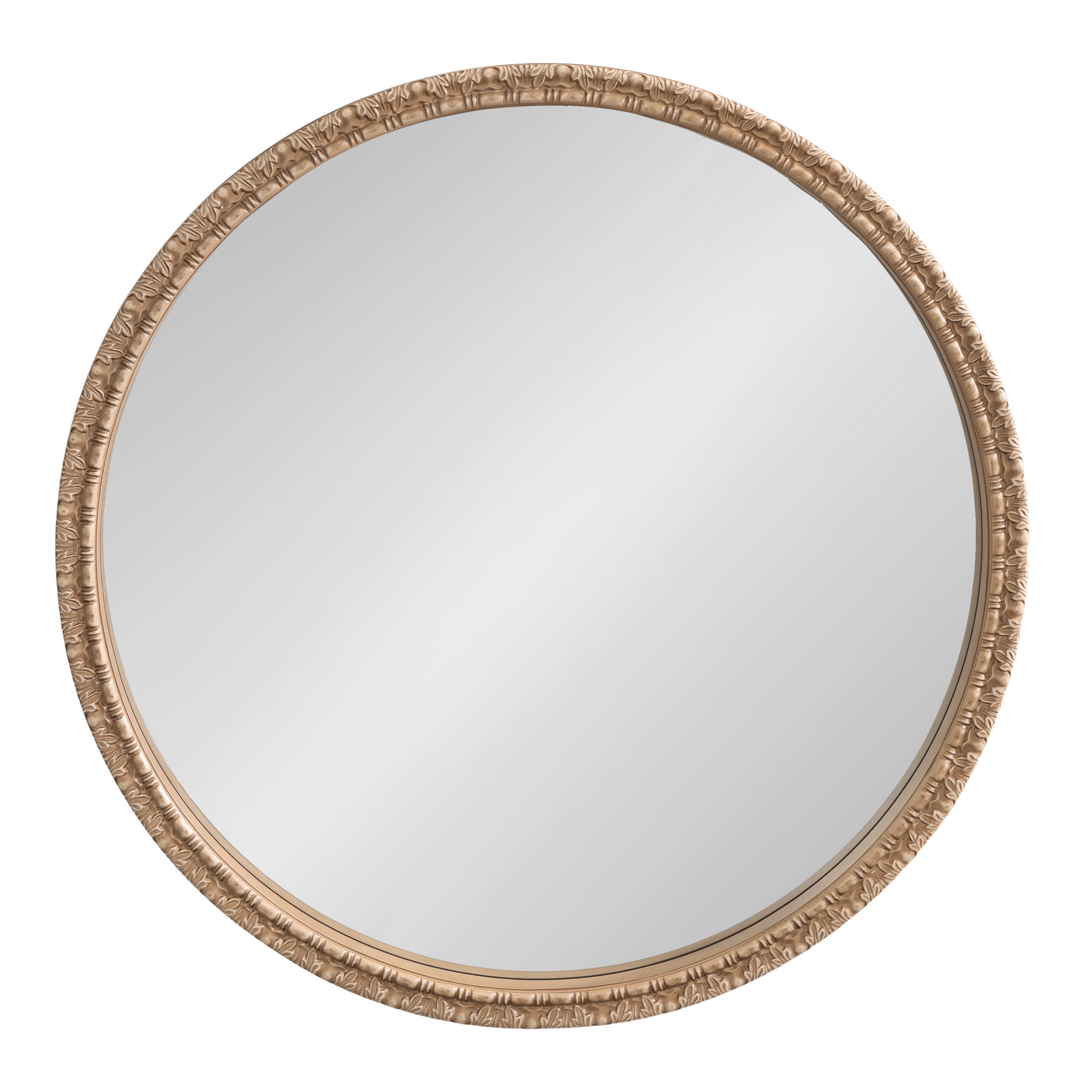 Looking for a charming ornate mirror to elevate your space? Look no further than the Stallworth round mirror with its slim frame and textured detailing. This circular mirror couples quality craftsmanship with a unique wooden frame. Use it as a bathroom vanity mirror, a textured addition to a living room, a refined bedroom accent, or even as a hallway mirror. This low-profile mirror features some light distressing along with two ornate patterns, giving you a detailed, thoughtful design.