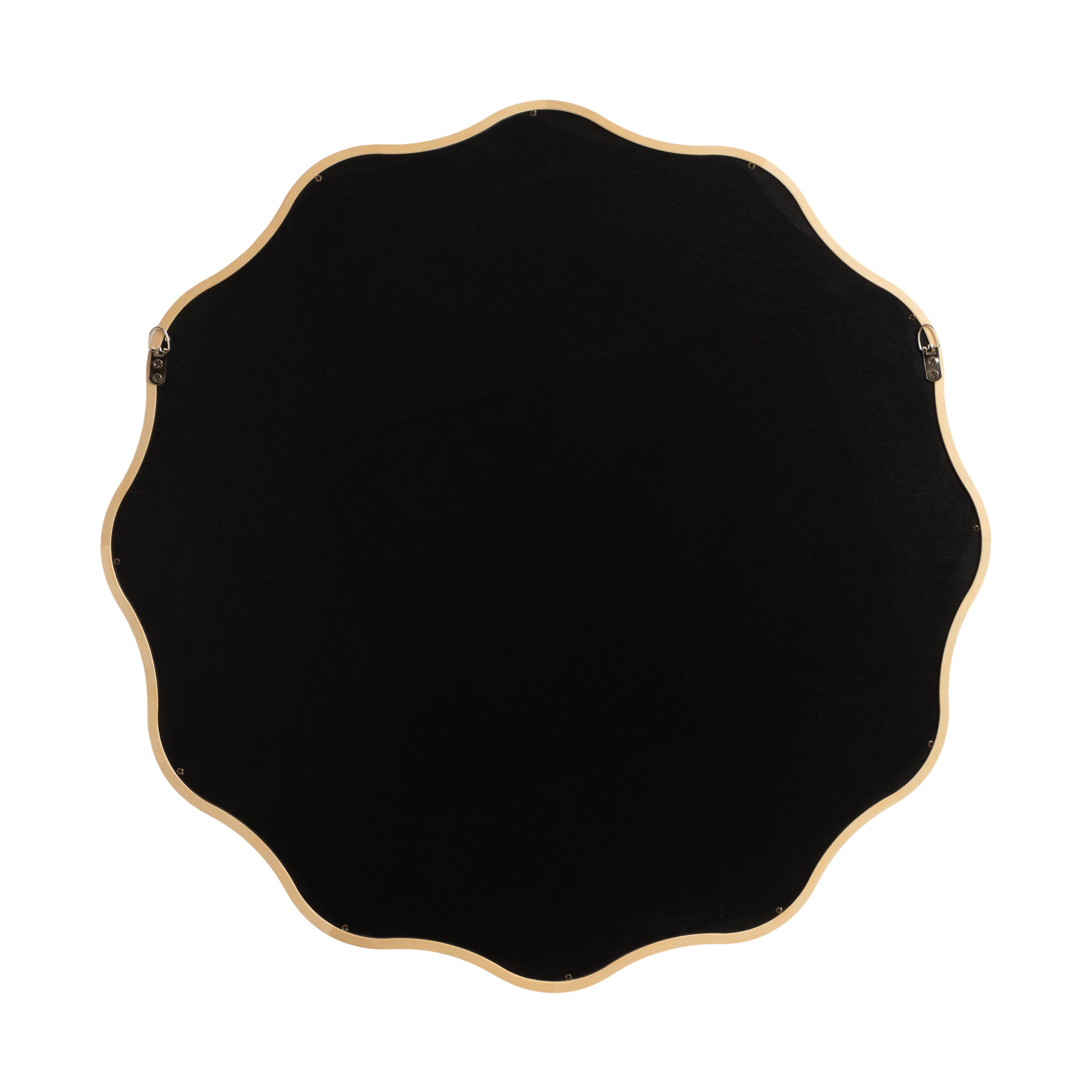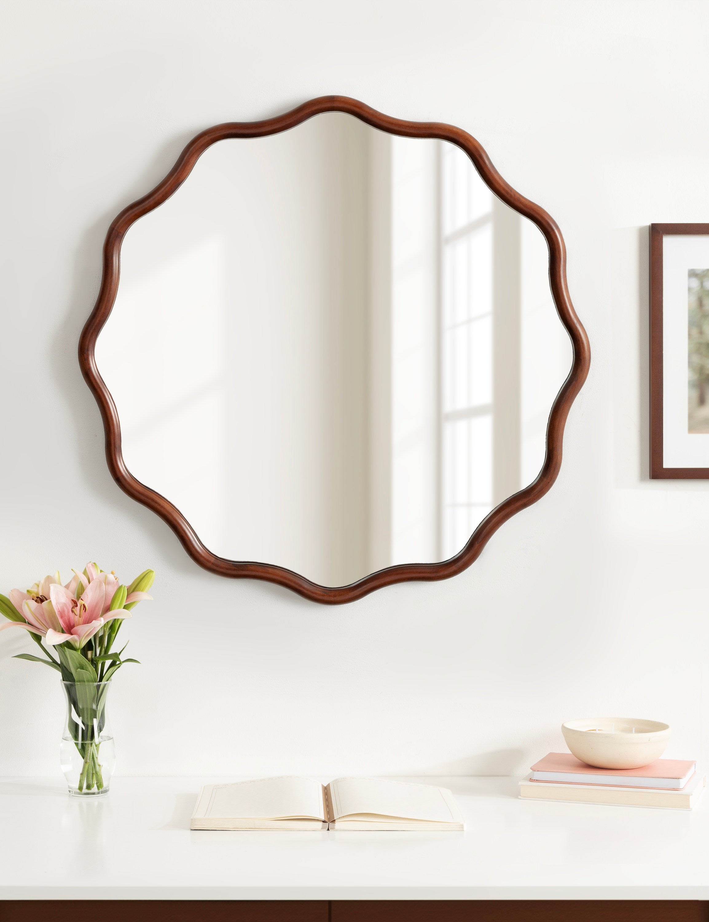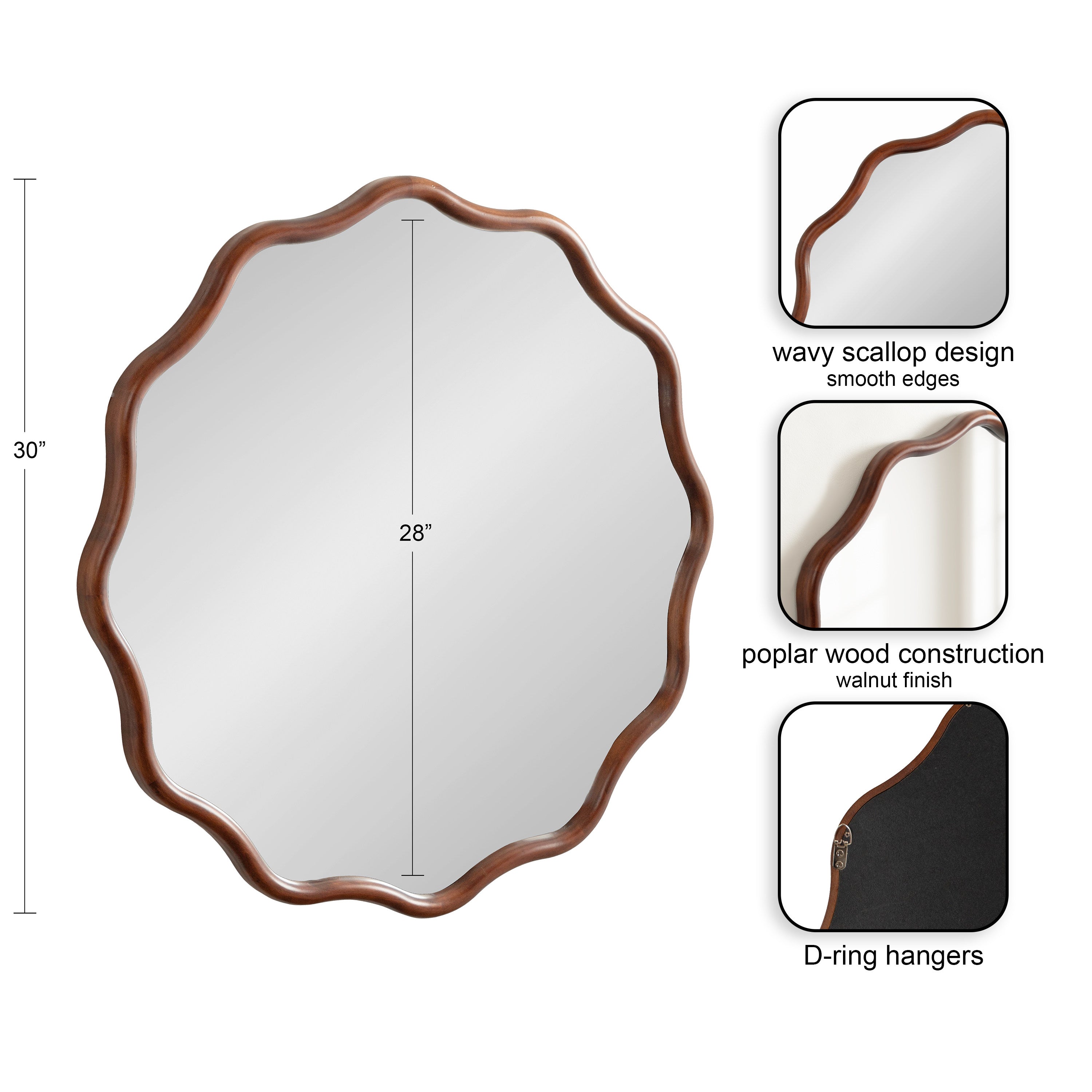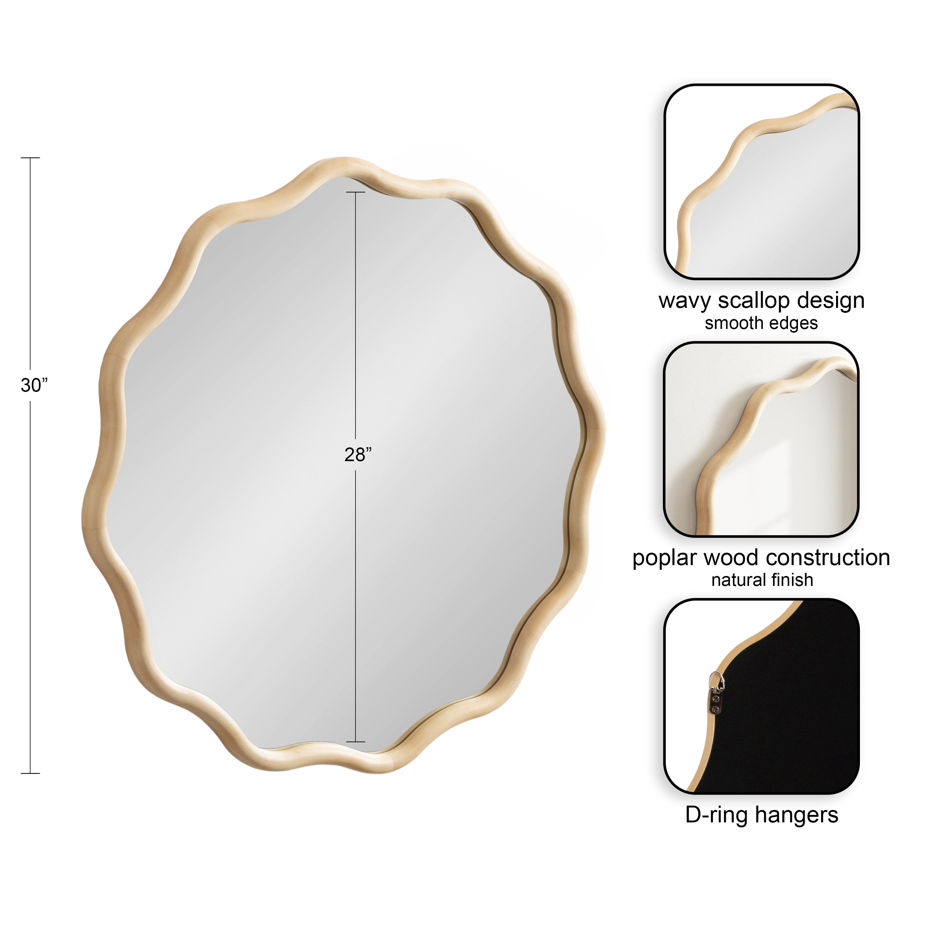 This stunning mirror features a beautiful finish that adds a touch of elegance and sophistication to your space. Crafted with the utmost care, the round mirror boasts a solid poplar wood frame that ensures durability and longevity. Hang it in your living room, bedroom, or entryway to create an illusion of a larger space, and to effortlessly check your appearance before heading out. This scalloped circle wall mirror is designed to make your home feel brighter and more spacious.