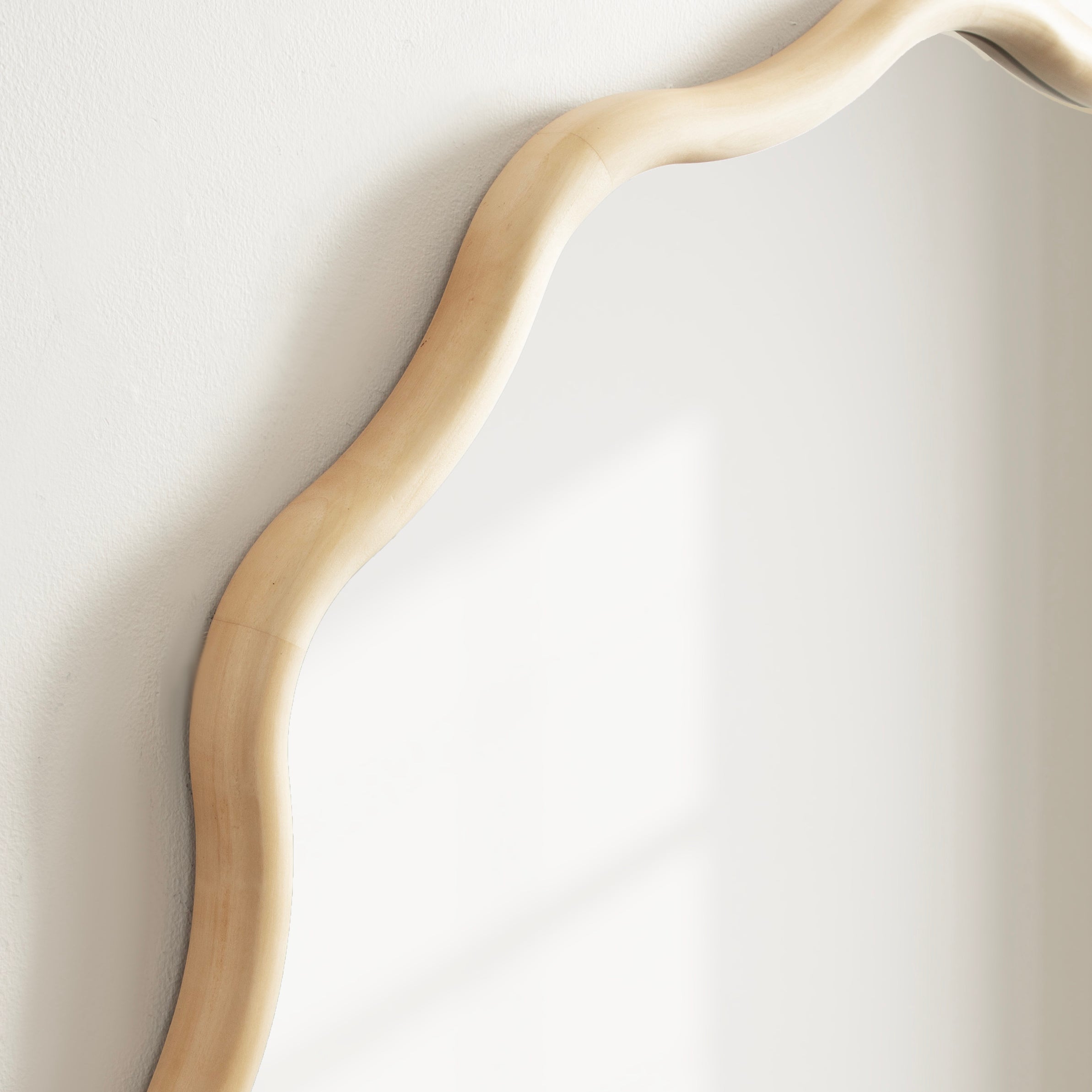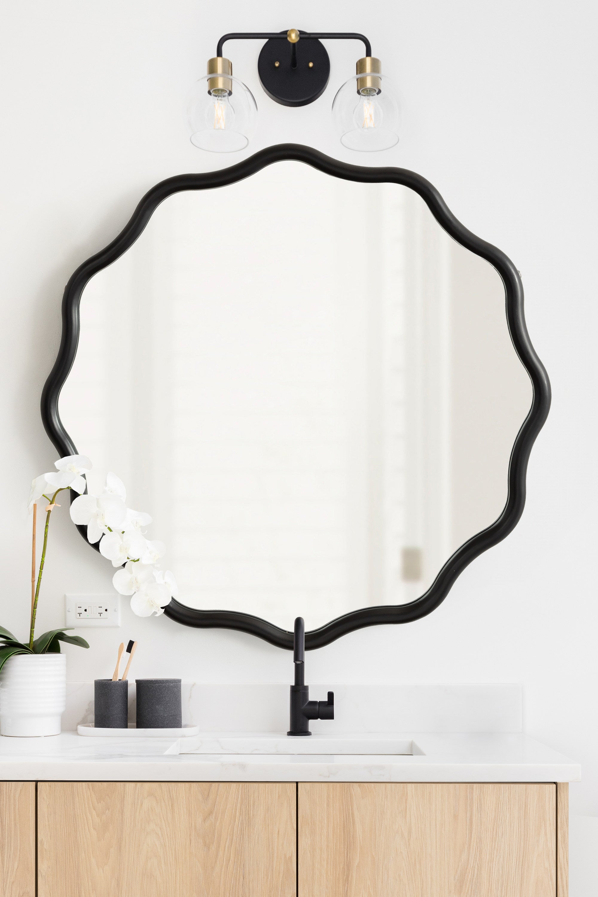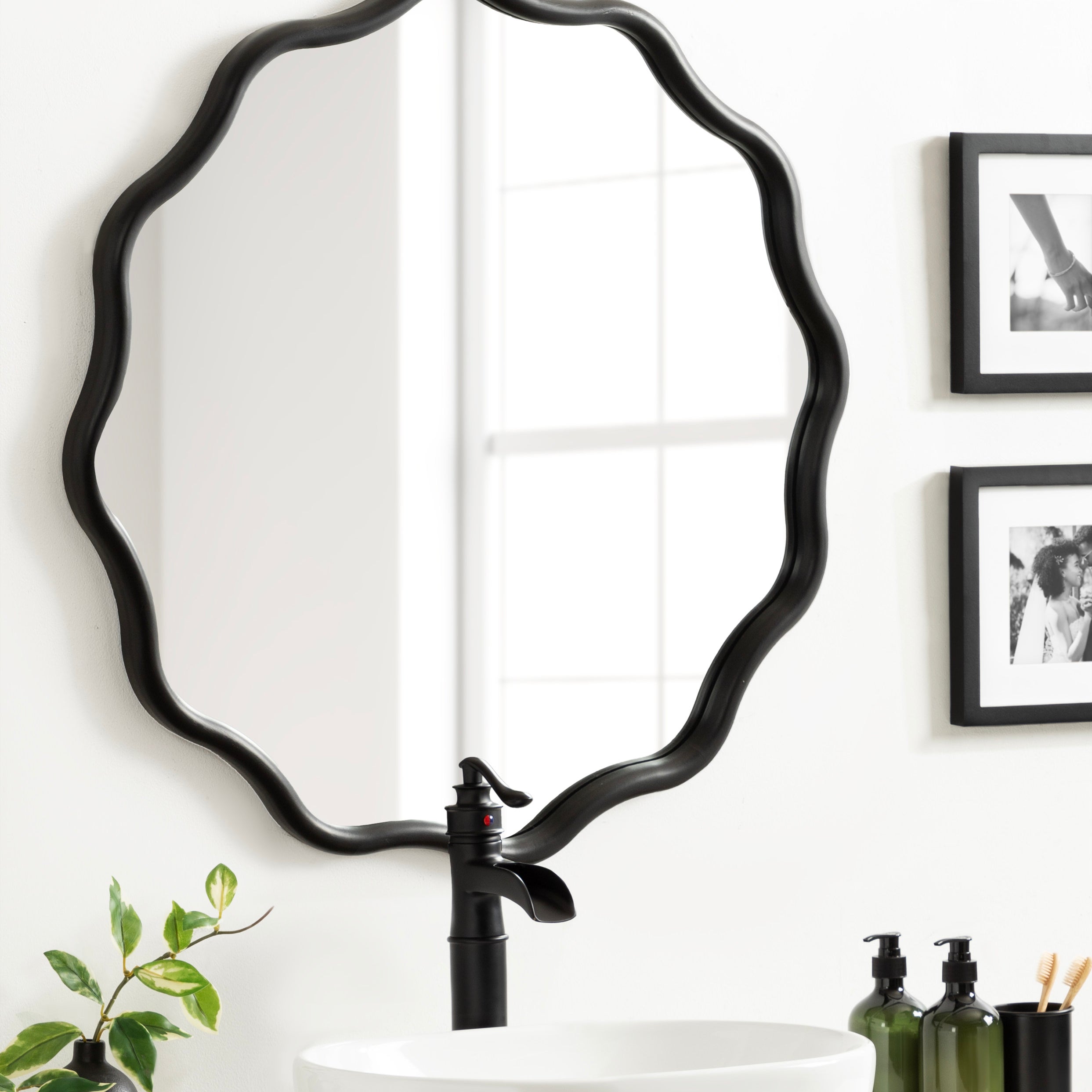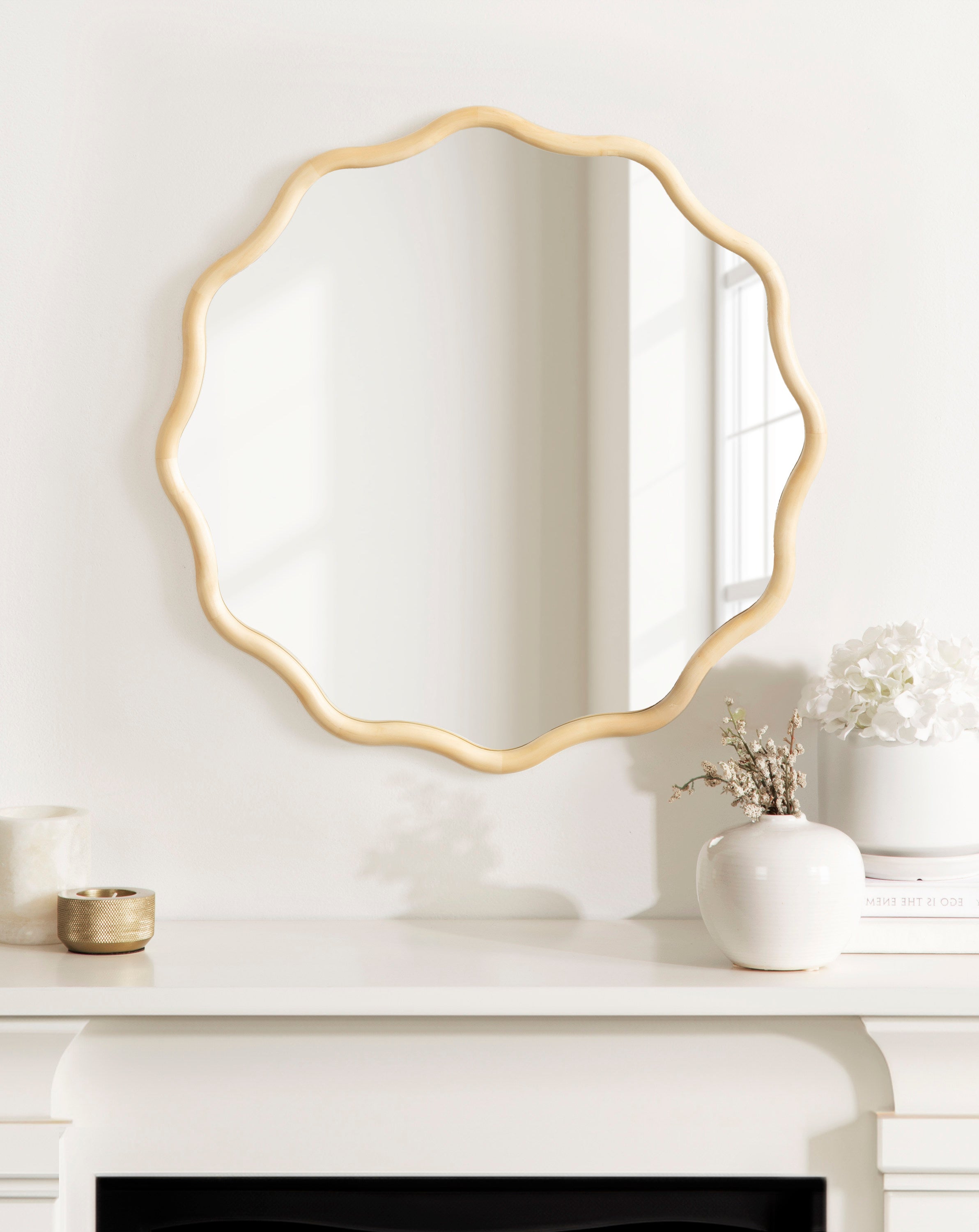 This stunning mirror features a beautiful finish that adds a touch of elegance and sophistication to your space. Crafted with the utmost care, the round mirror boasts a solid poplar wood frame that ensures durability and longevity. Hang it in your living room, bedroom, or entryway to create an illusion of a larger space, and to effortlessly check your appearance before heading out. This scalloped circle wall mirror is designed to make your home feel brighter and more spacious.
