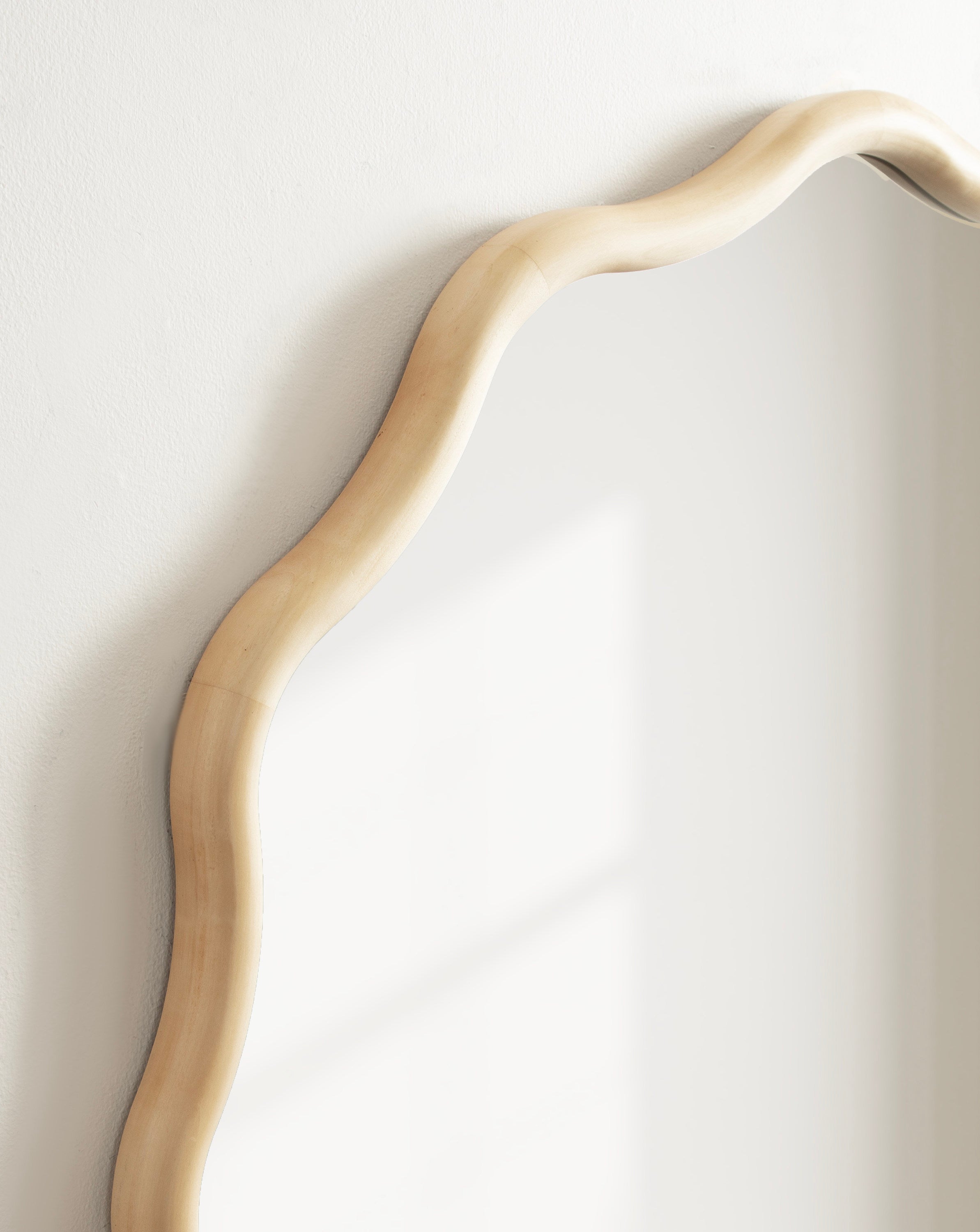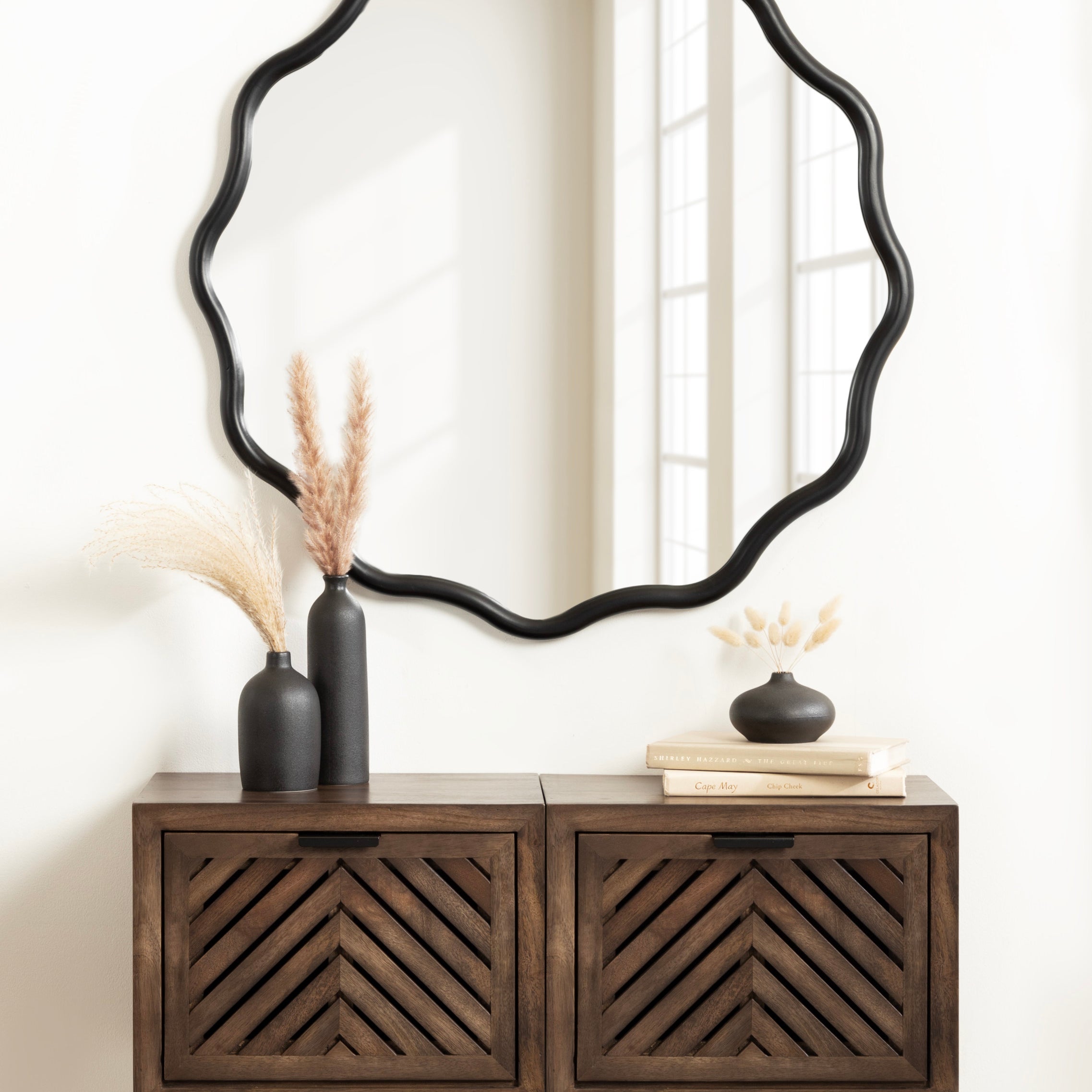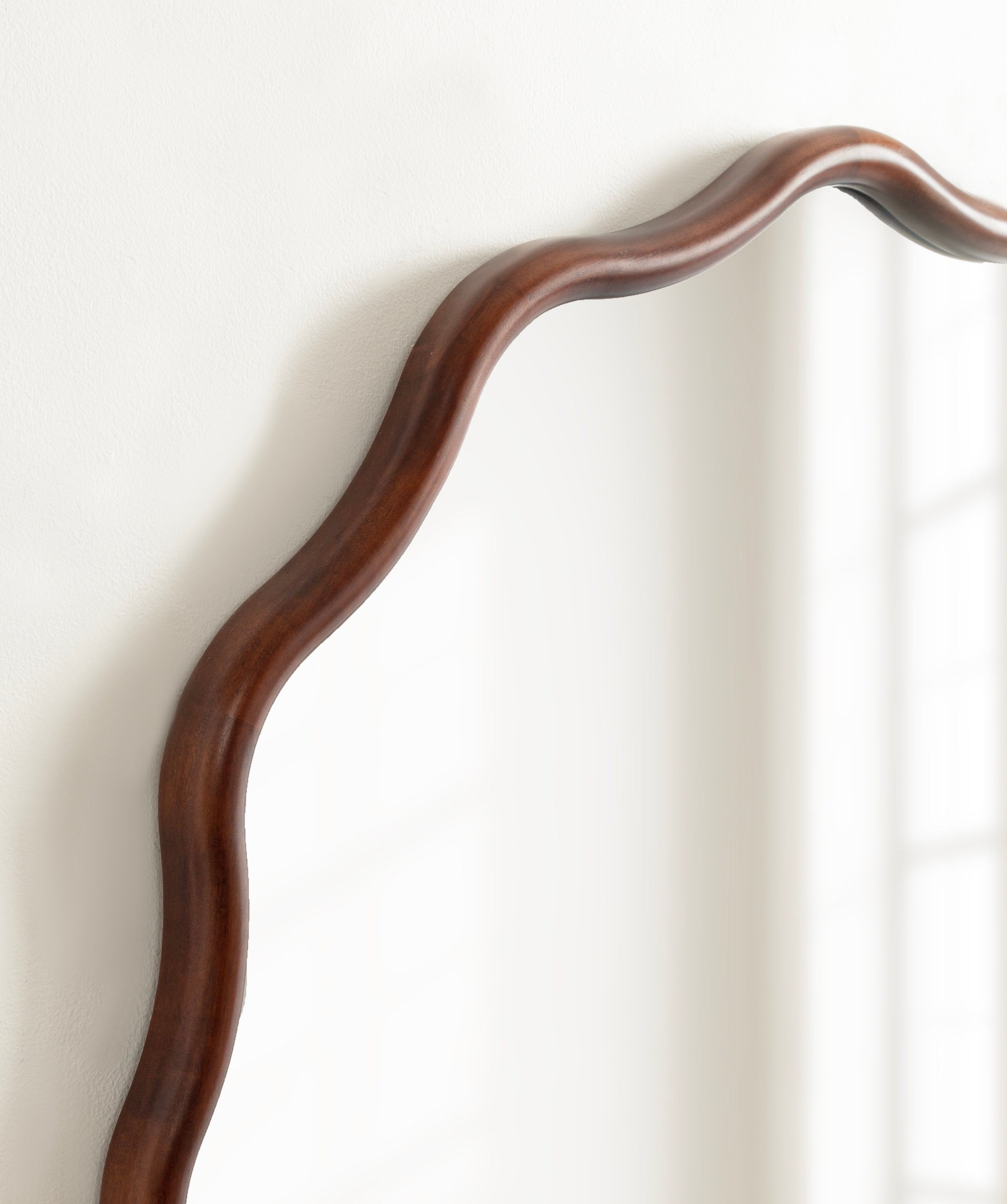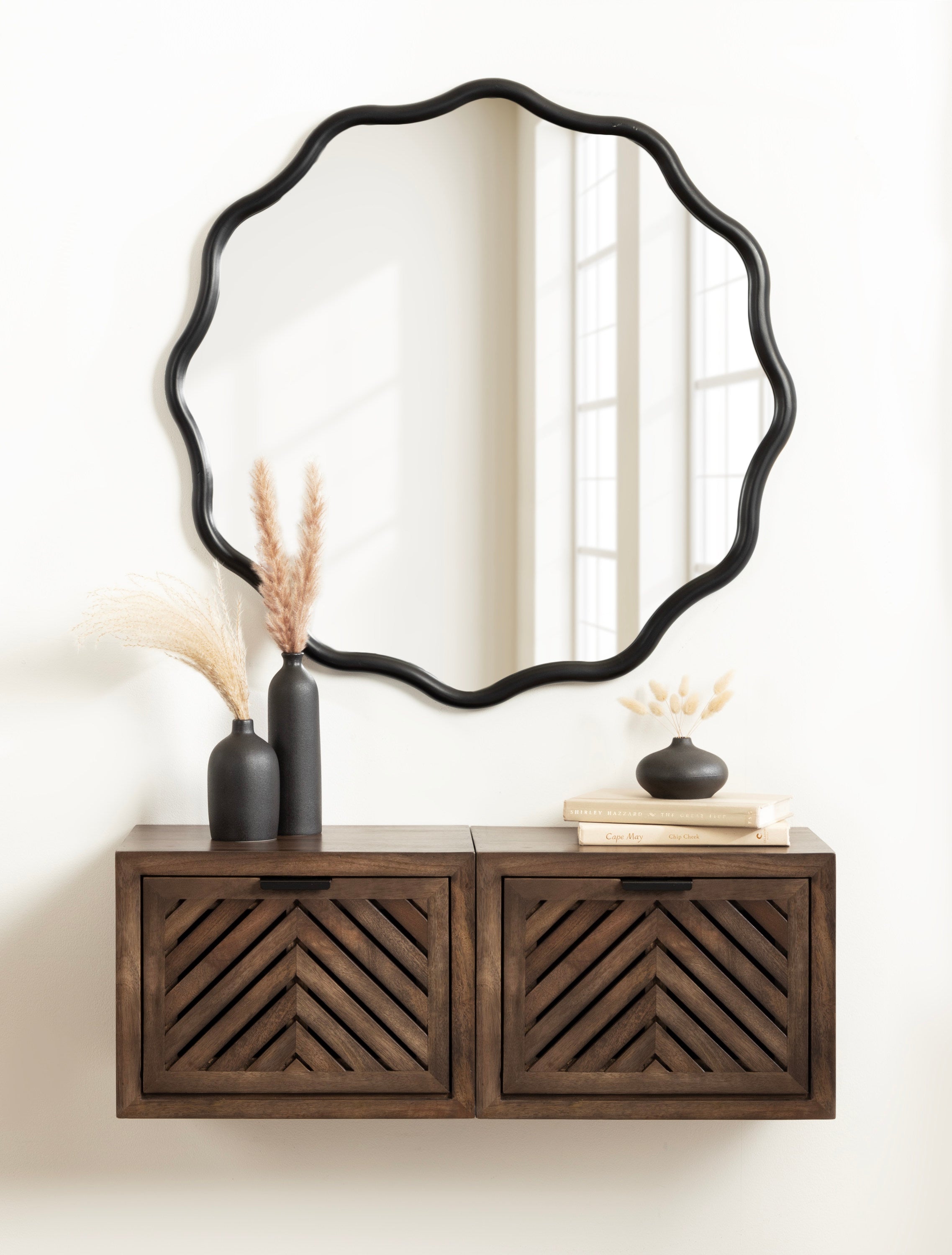 This stunning mirror features a beautiful finish that adds a touch of elegance and sophistication to your space. Crafted with the utmost care, the round mirror boasts a solid poplar wood frame that ensures durability and longevity. Hang it in your living room, bedroom, or entryway to create an illusion of a larger space, and to effortlessly check your appearance before heading out. This scalloped circle wall mirror is designed to make your home feel brighter and more spacious.