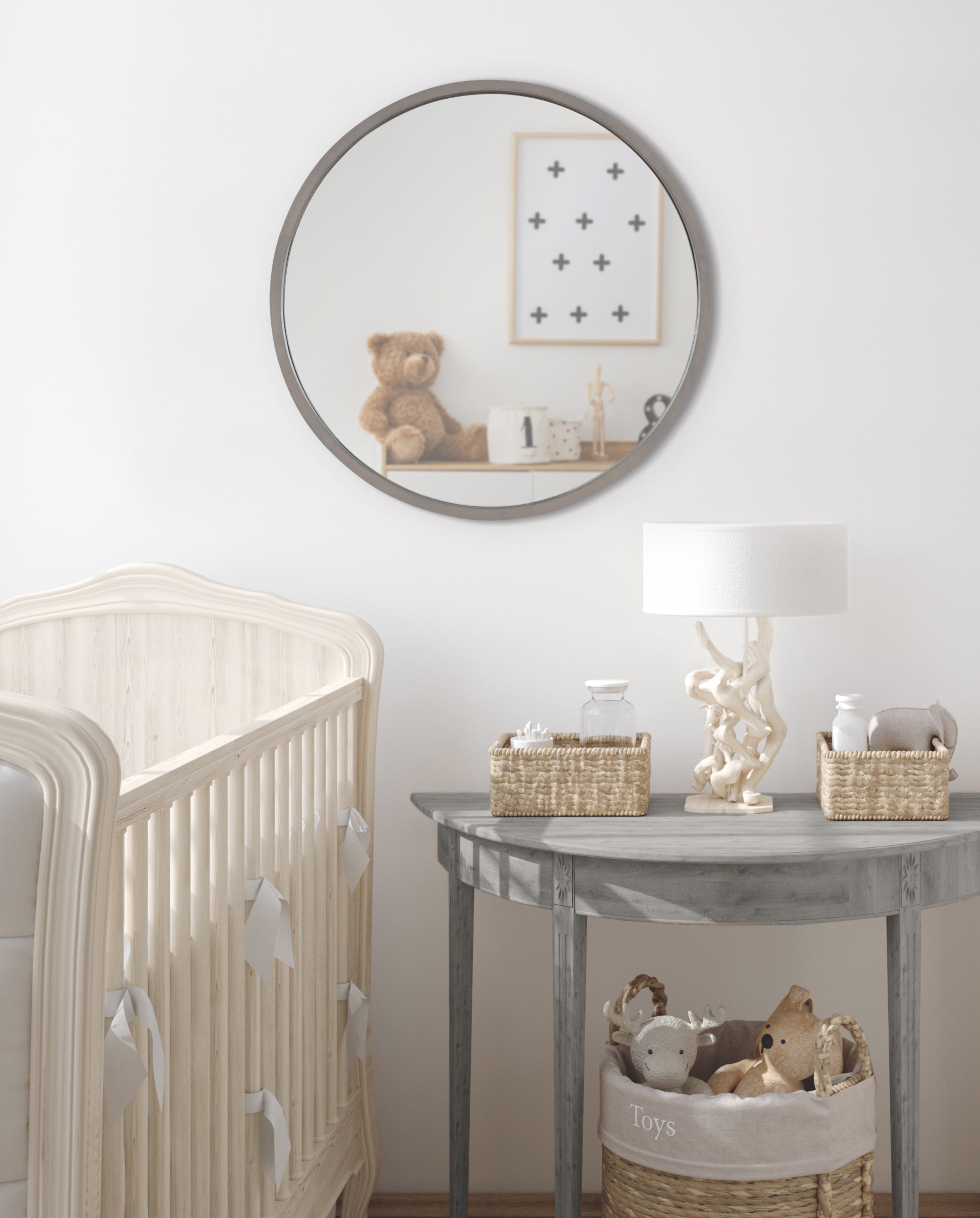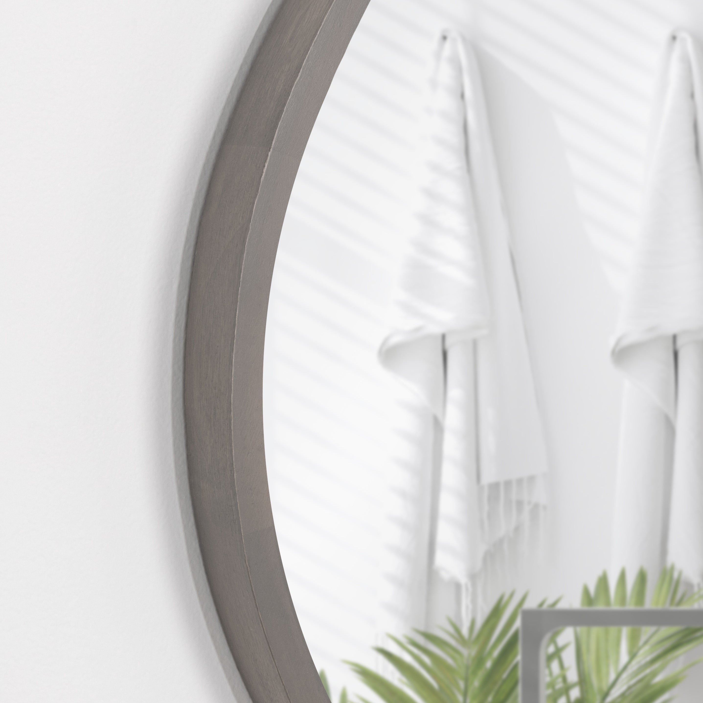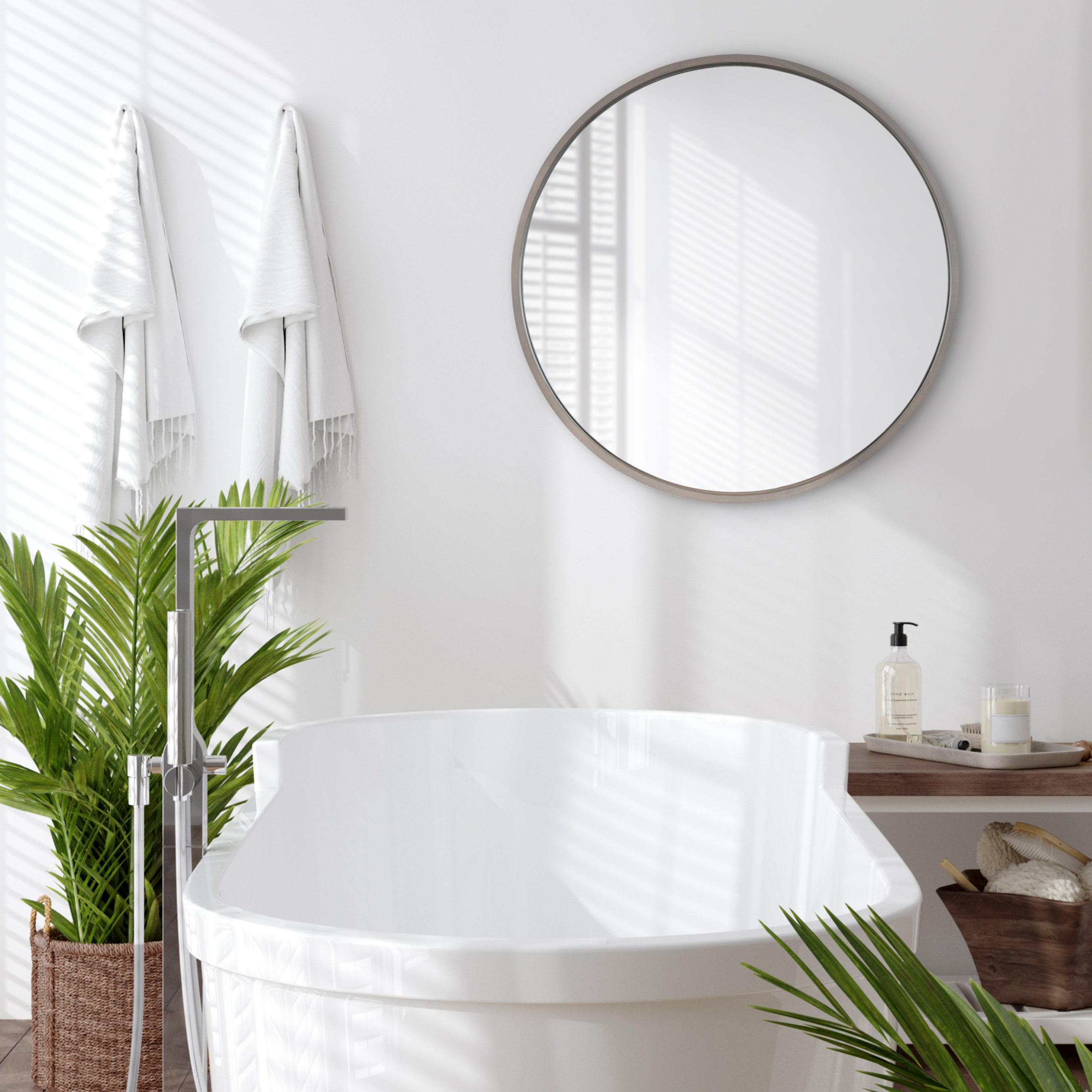 Create a sense of vibrancy and charming farmhouse warmth with the Valenti mirror. Featuring a trendy round shape and a bold finish, this is the perfect accent piece to showcase a beautiful aesthetic. Hang it as a decorative focal point in your entryway, living room, bedroom, or dining room, or hang it above your vanity as a sophisticated bathroom mirror. It's perfect for setting the tone of your home while showcasing your timeless style.