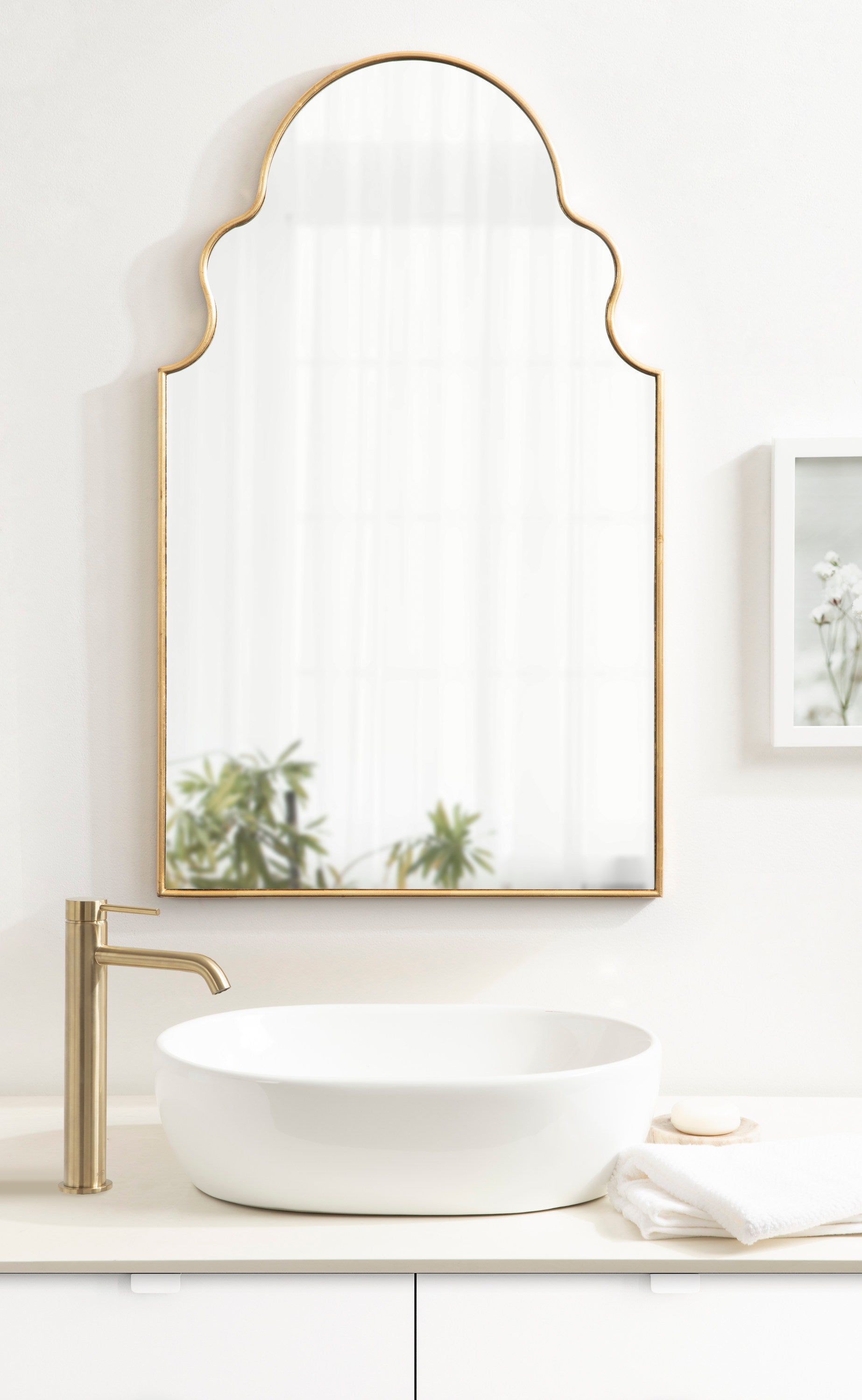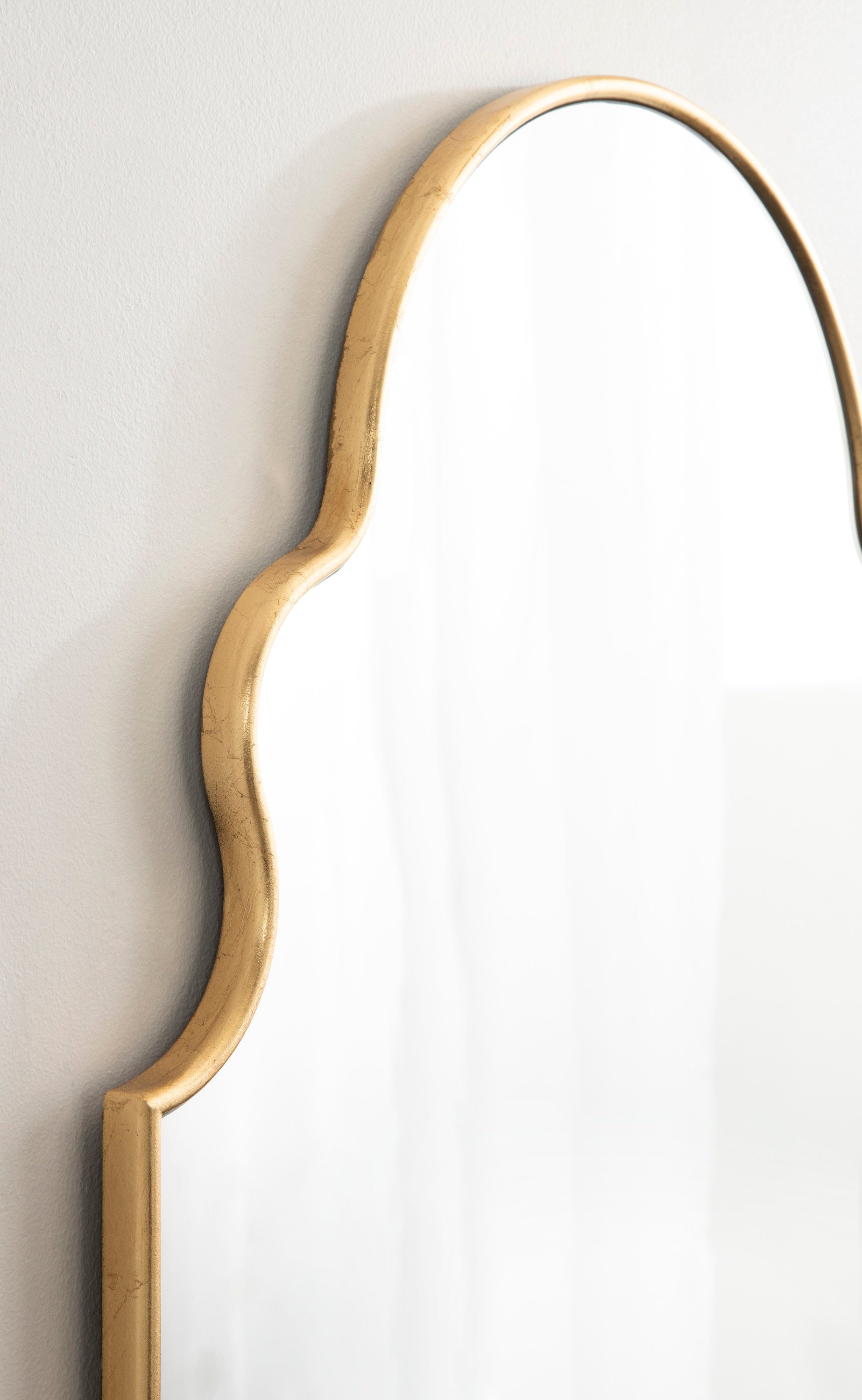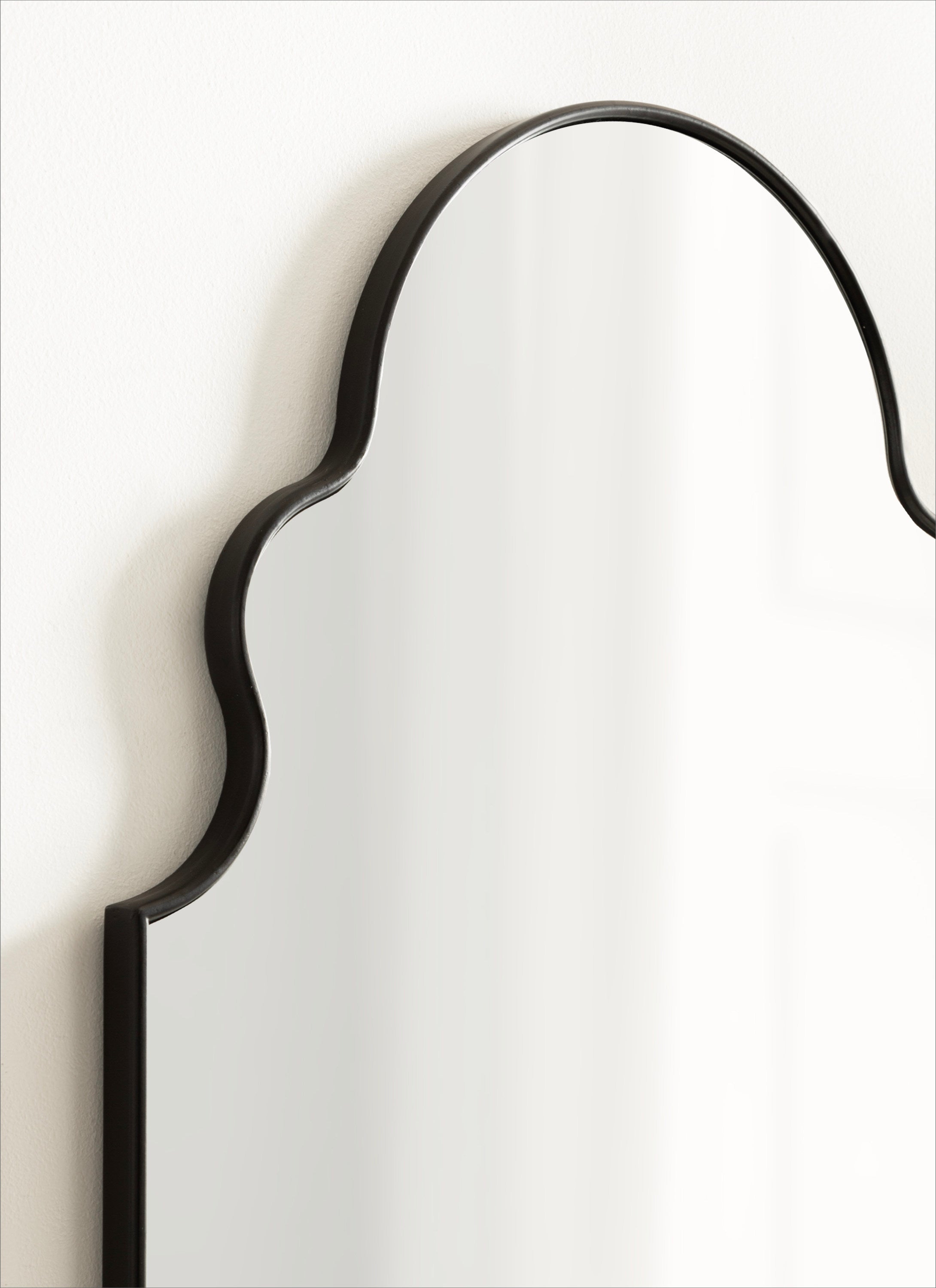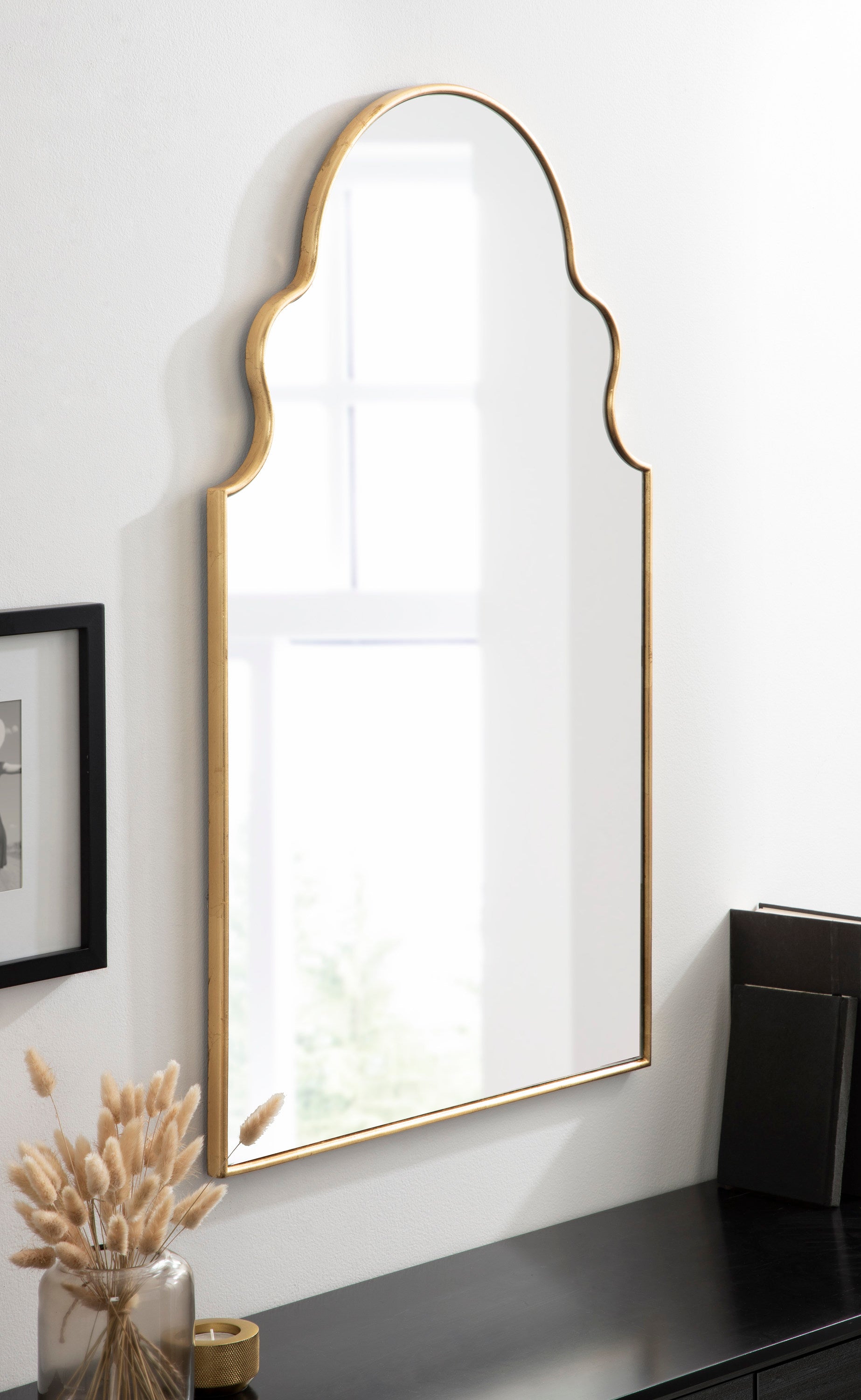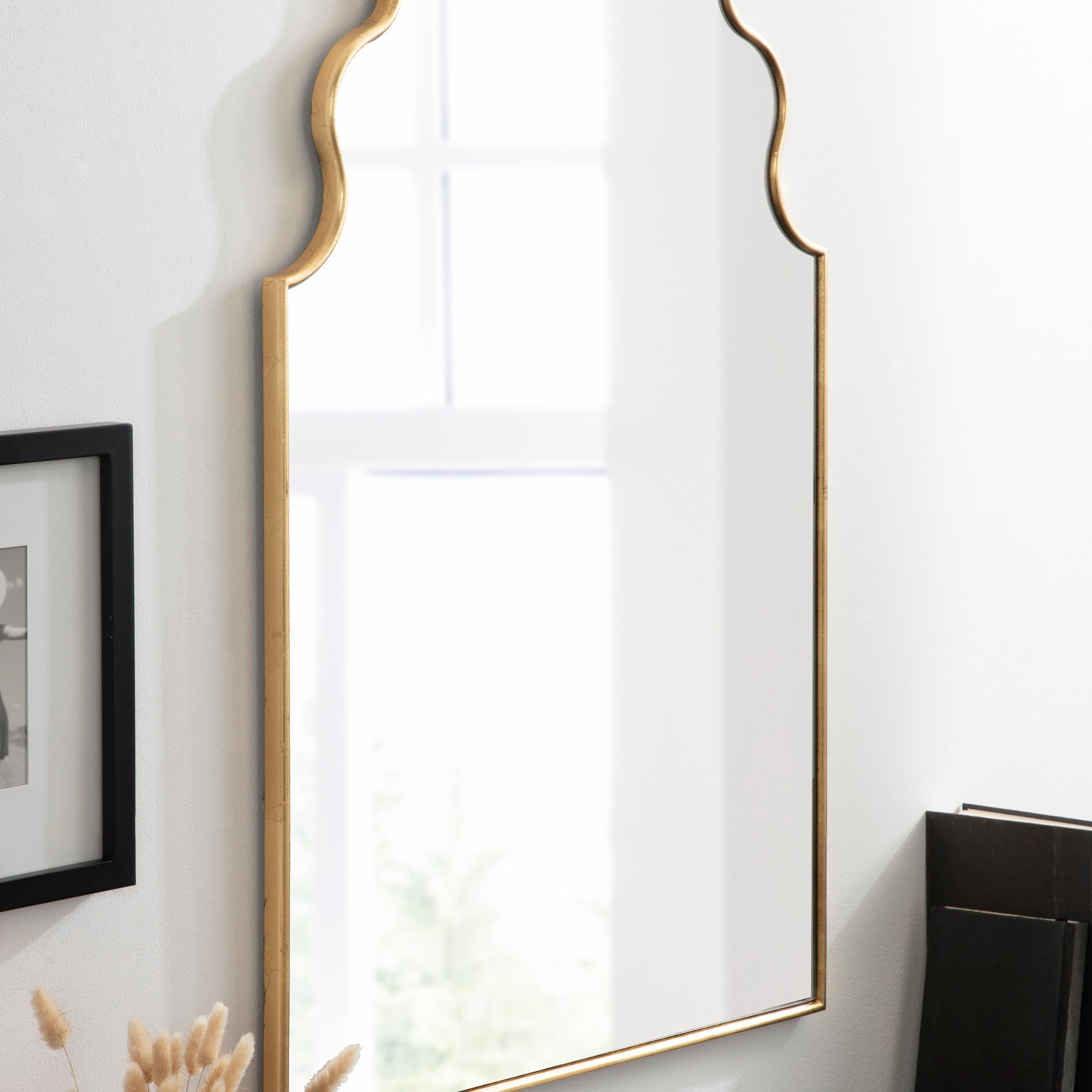 Enhance the glamorous aesthetic of your home by featuring the beautiful Vania wall mirror in your home. Inspired by modern design and glam style, the Vania mirror has a tall arched shape with a soft, scalloped top, creating a fascinating visual piece with an elegant presence. The lovely shape of this beautiful mirror is complemented by the modern finish, making a formal statement on any wall throughout your home. The Vania also has a slim frame highlighting the mirror's surface area.