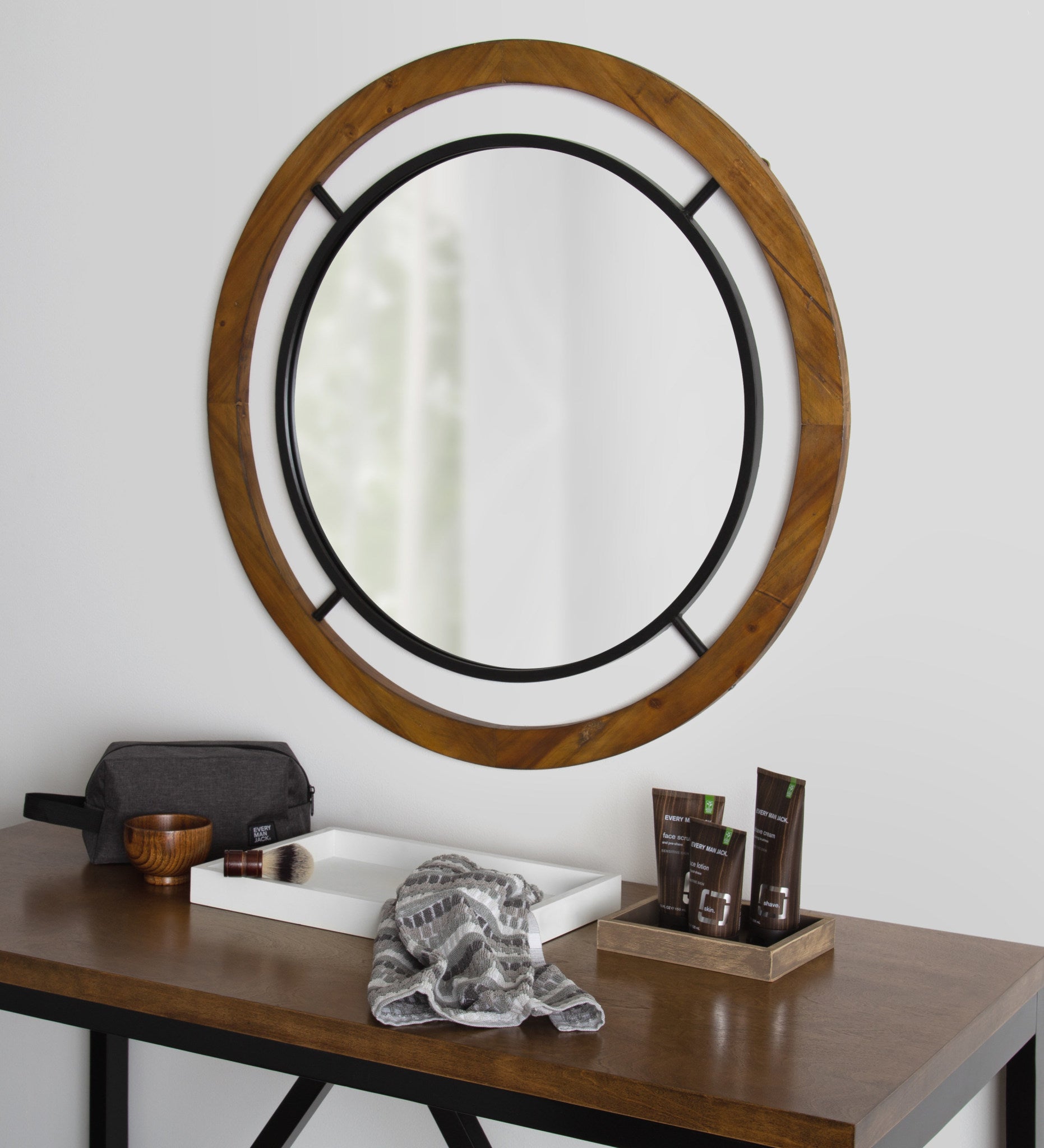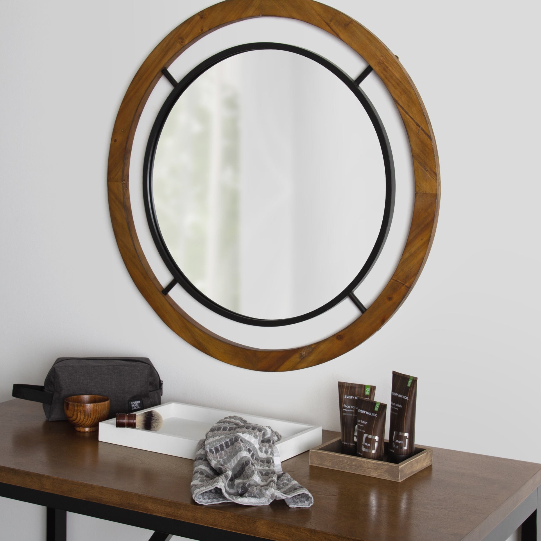 Whalen Round Wood Wall Mirror