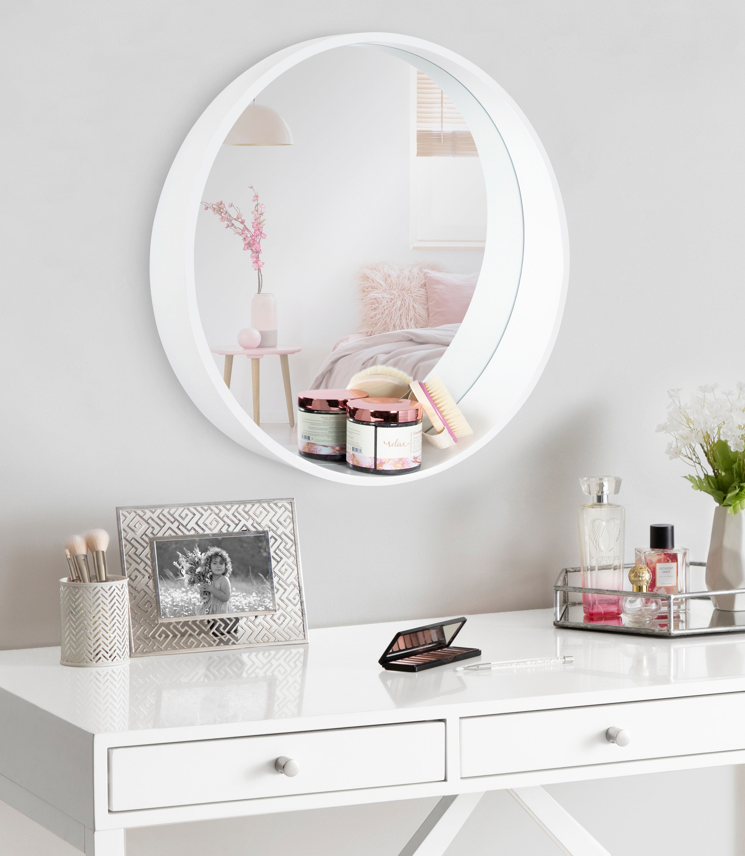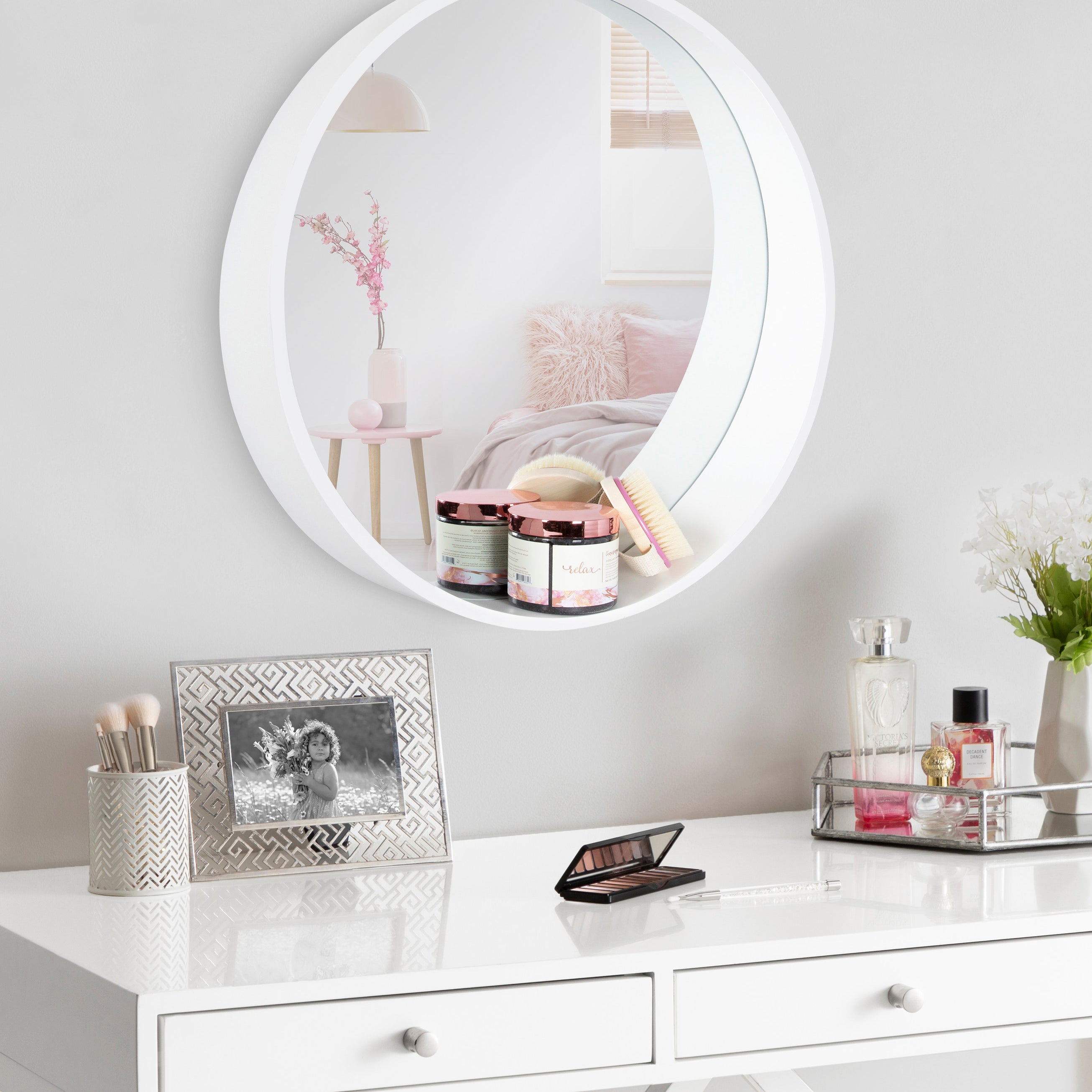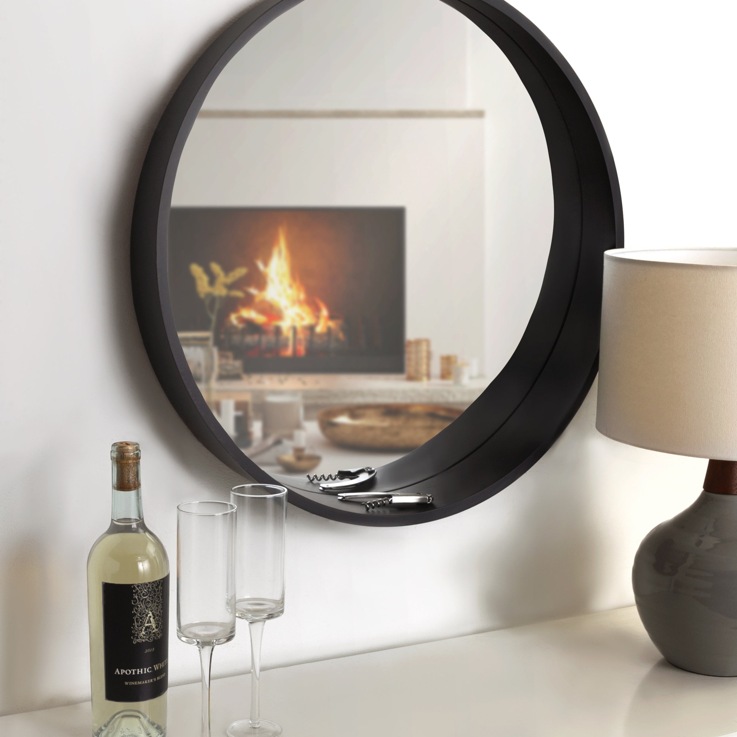 Create a modern wall display in your home with the beautiful Wheeler Mirror. This wall accent features a one-of-a-kind, round MDF frame with a refined finish. Use the thick, raised profile as a functional catch all or use this mirror to create dimension in small spaces.