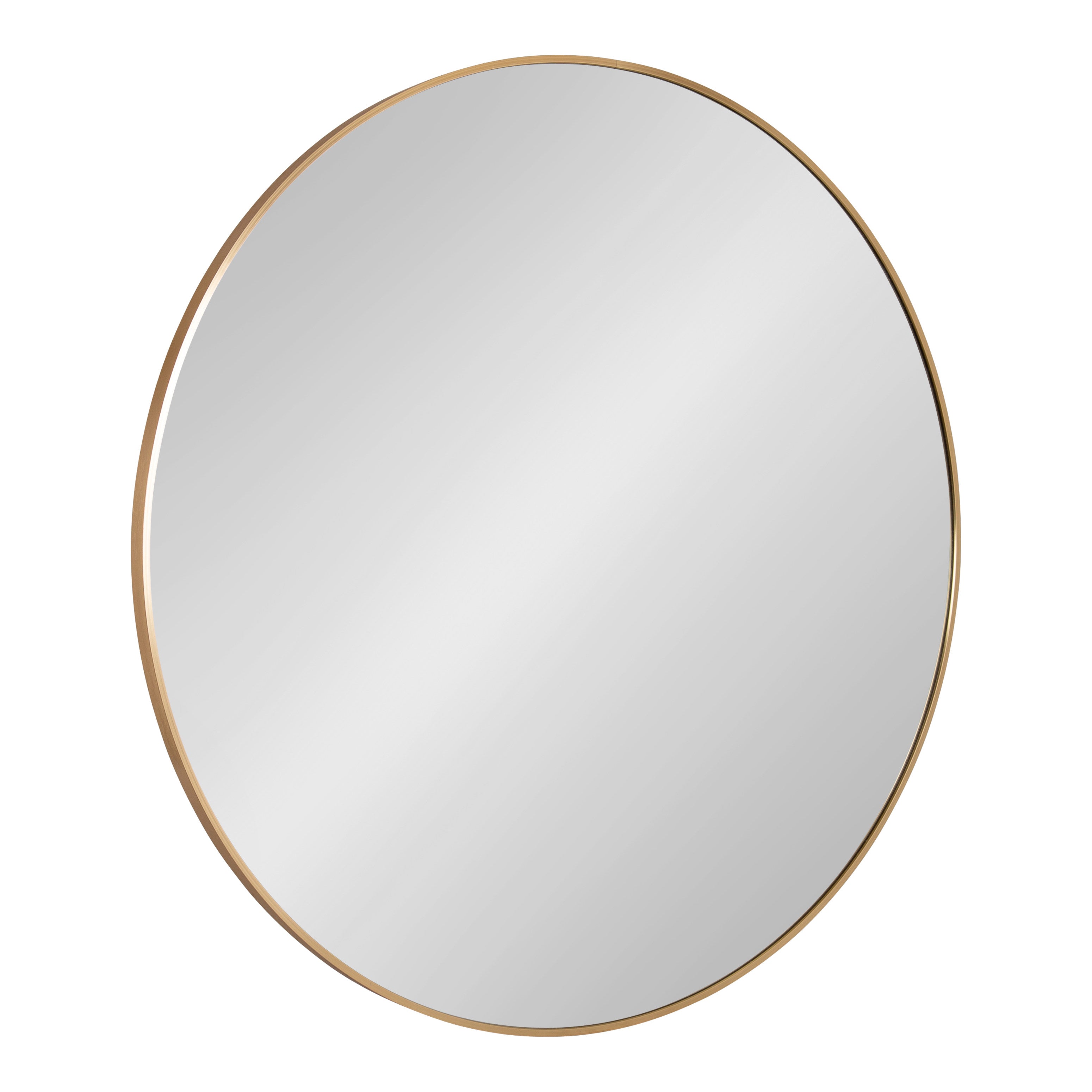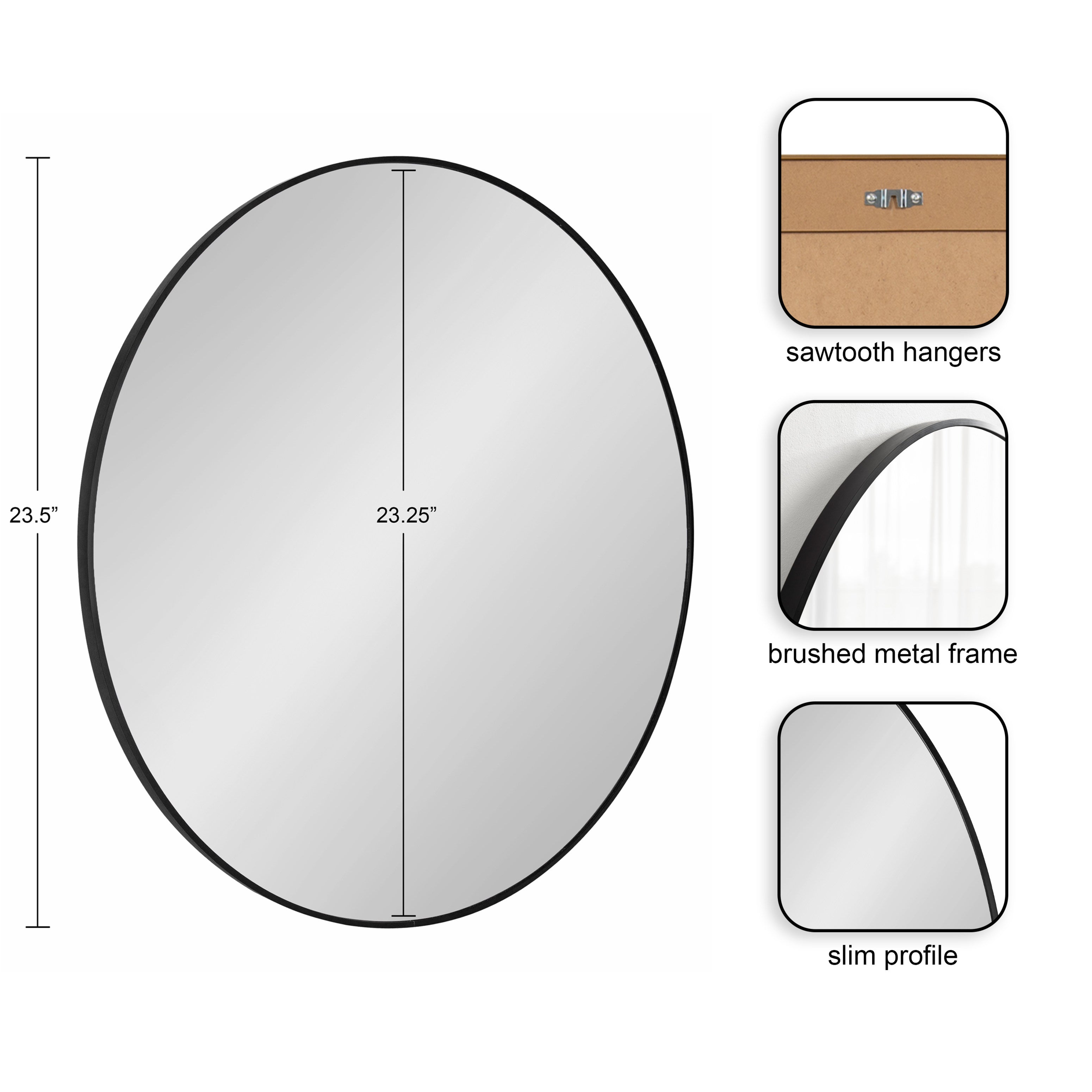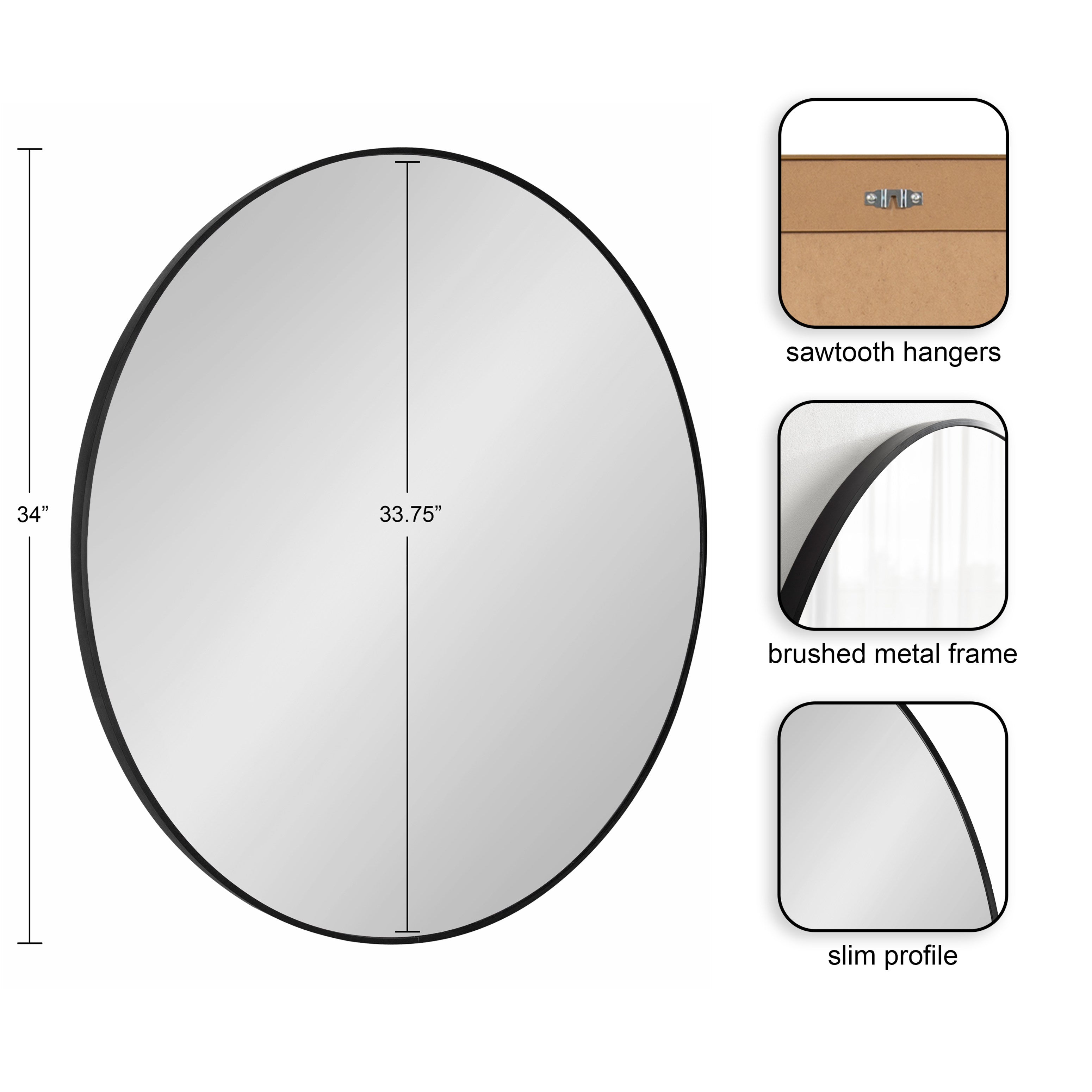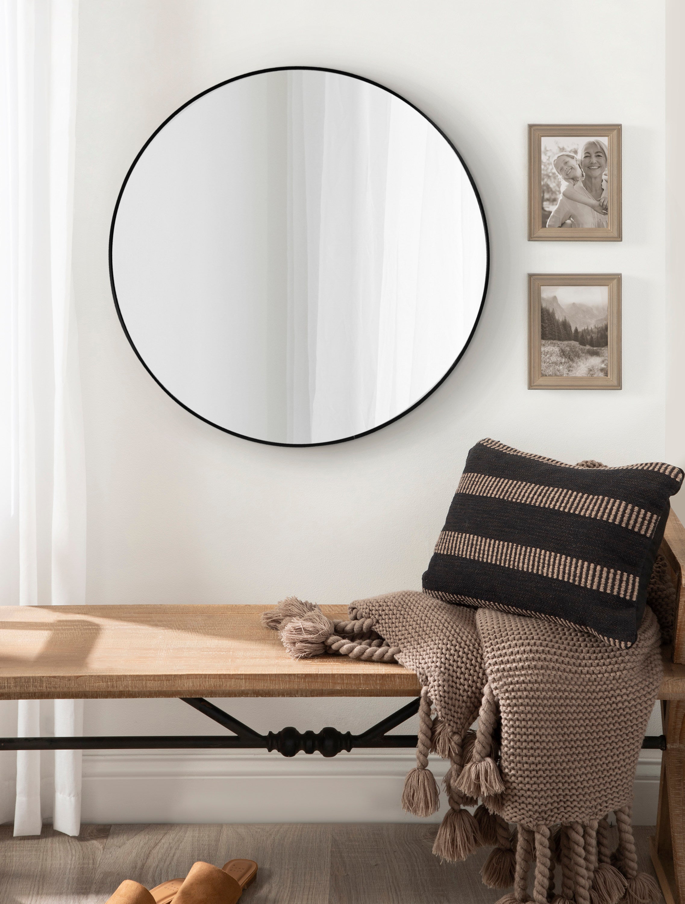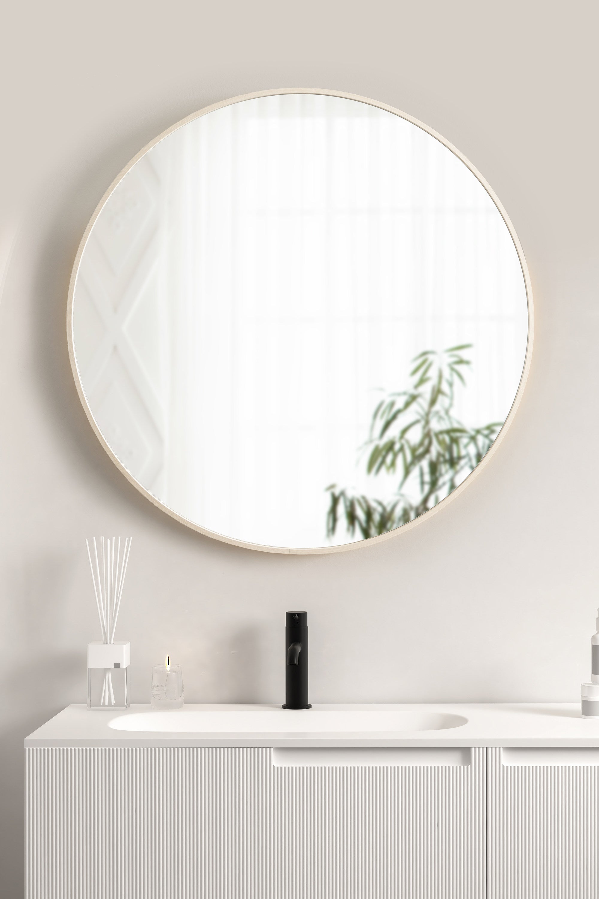 The Zayda round mirror defines stylish simplicity. The combination of smooth curves and a slim frame profile catches attention but blends seamlessly with your decor. This modern option is constructed from resilient aluminum, making it durable and light enough to hang easily.