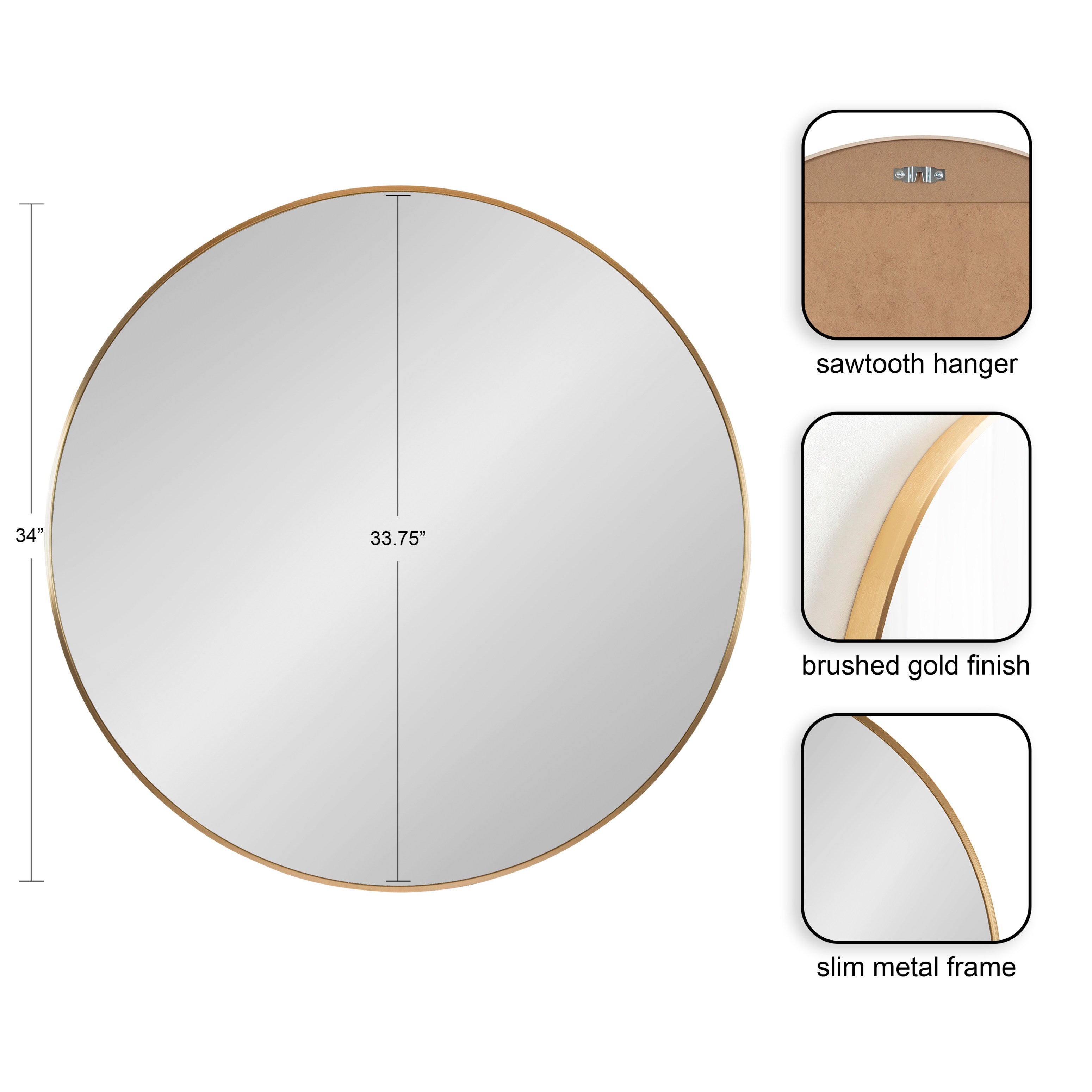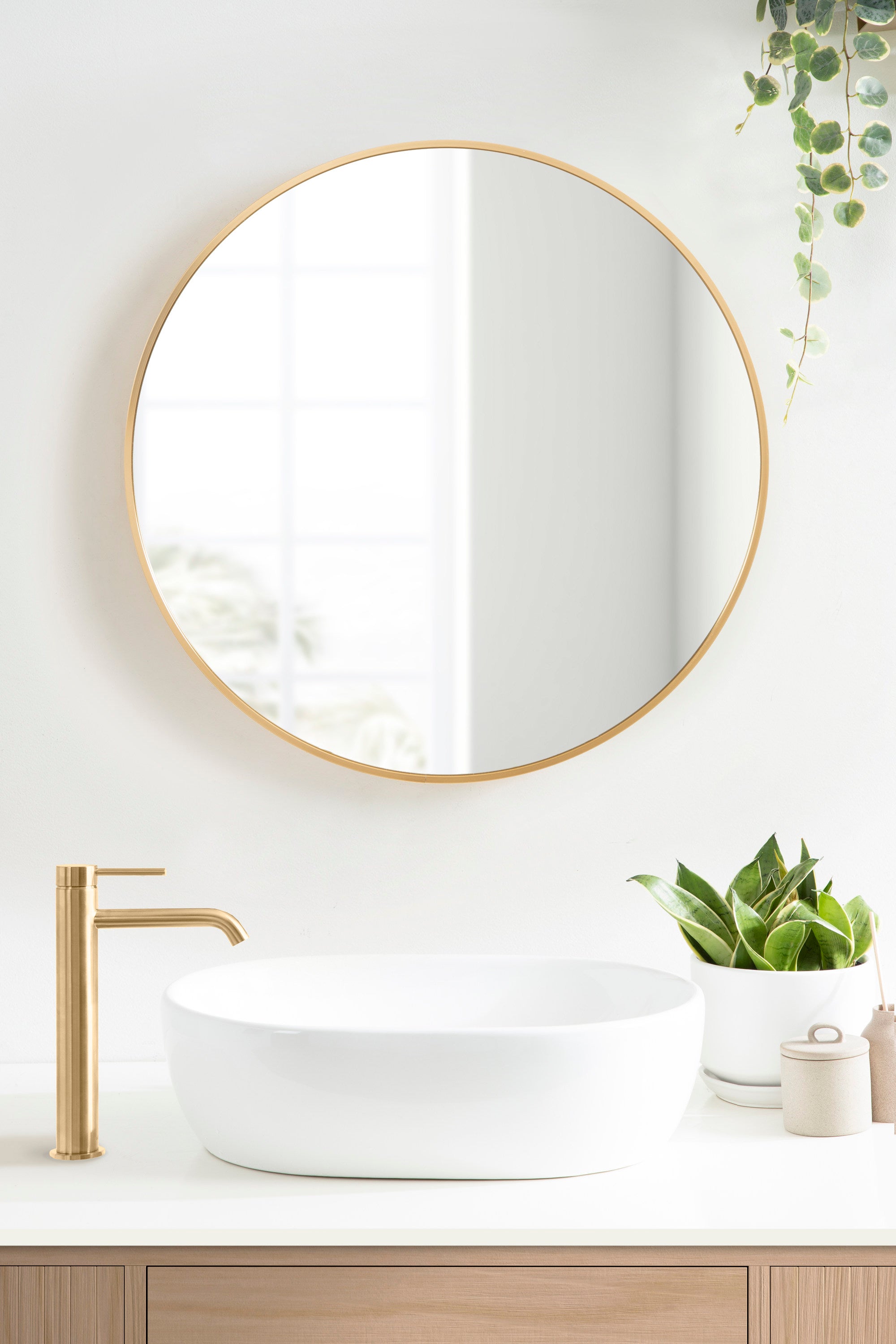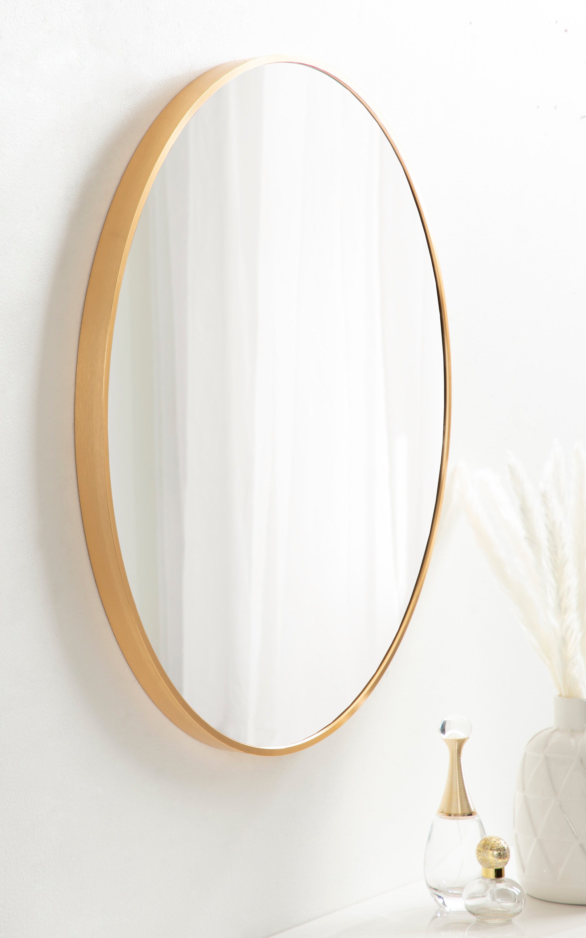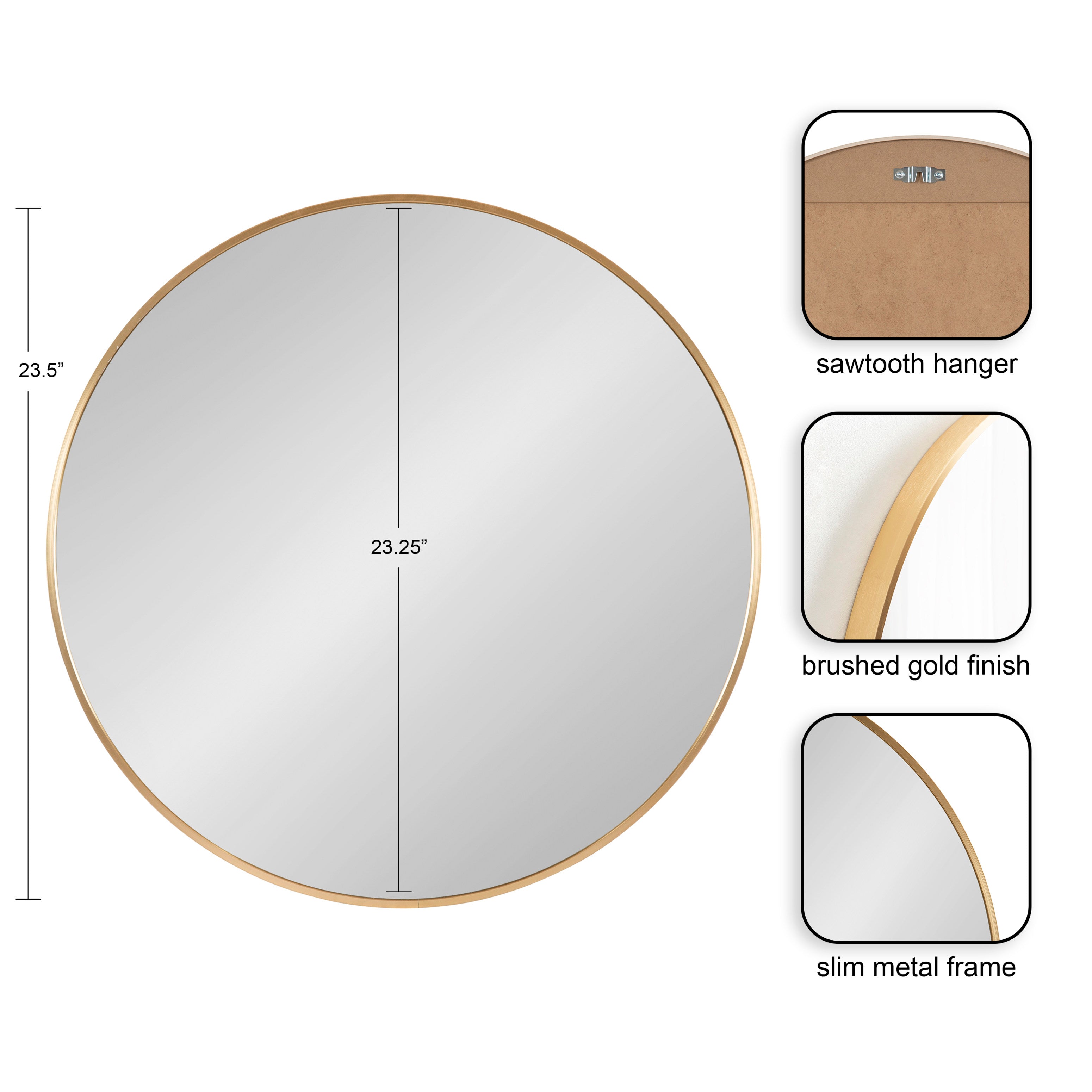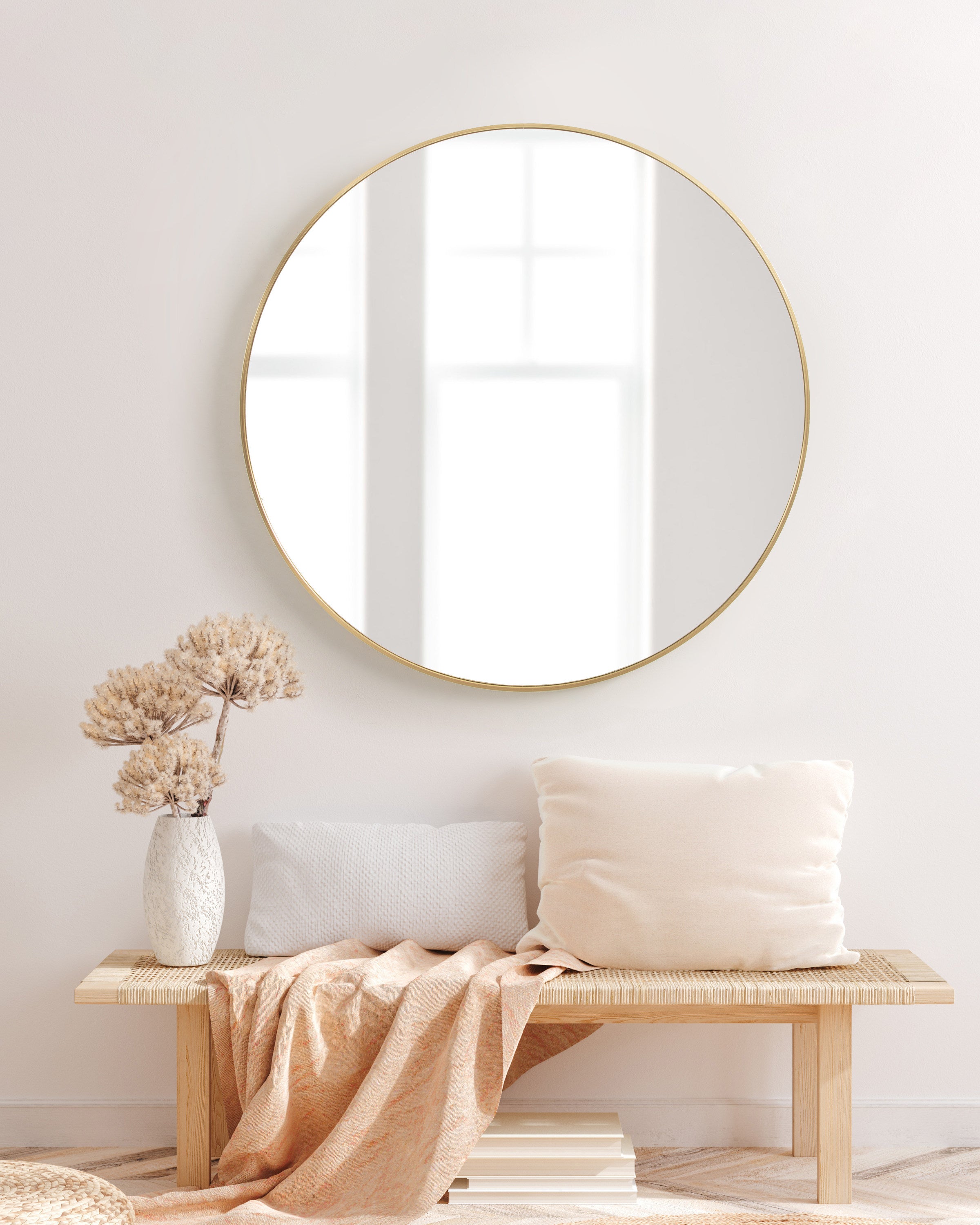 The Zayda round mirror defines stylish simplicity. The combination of smooth curves and a slim frame profile catches attention but blends seamlessly with your decor. This modern option is constructed from resilient aluminum, making it durable and light enough to hang easily.