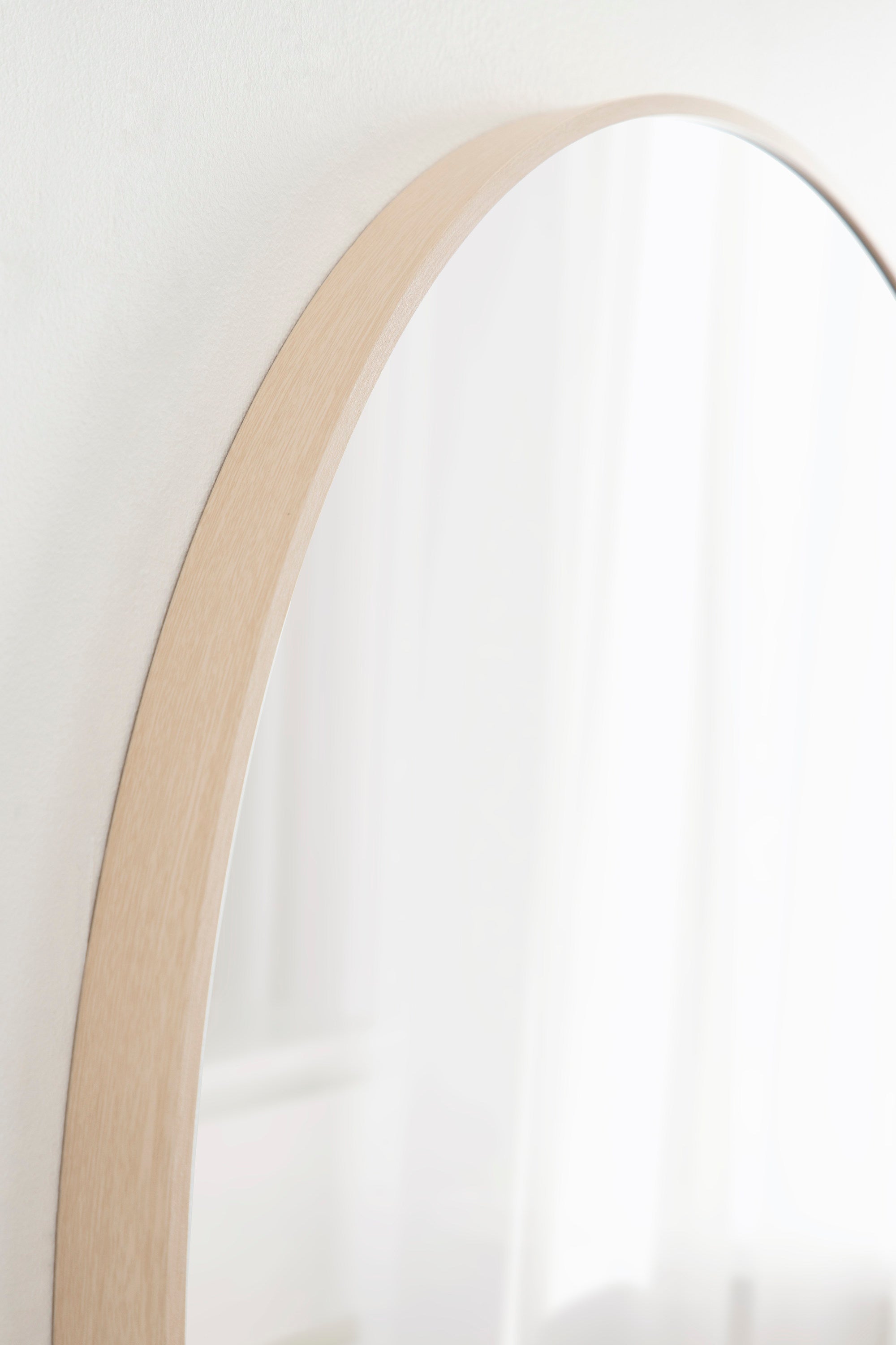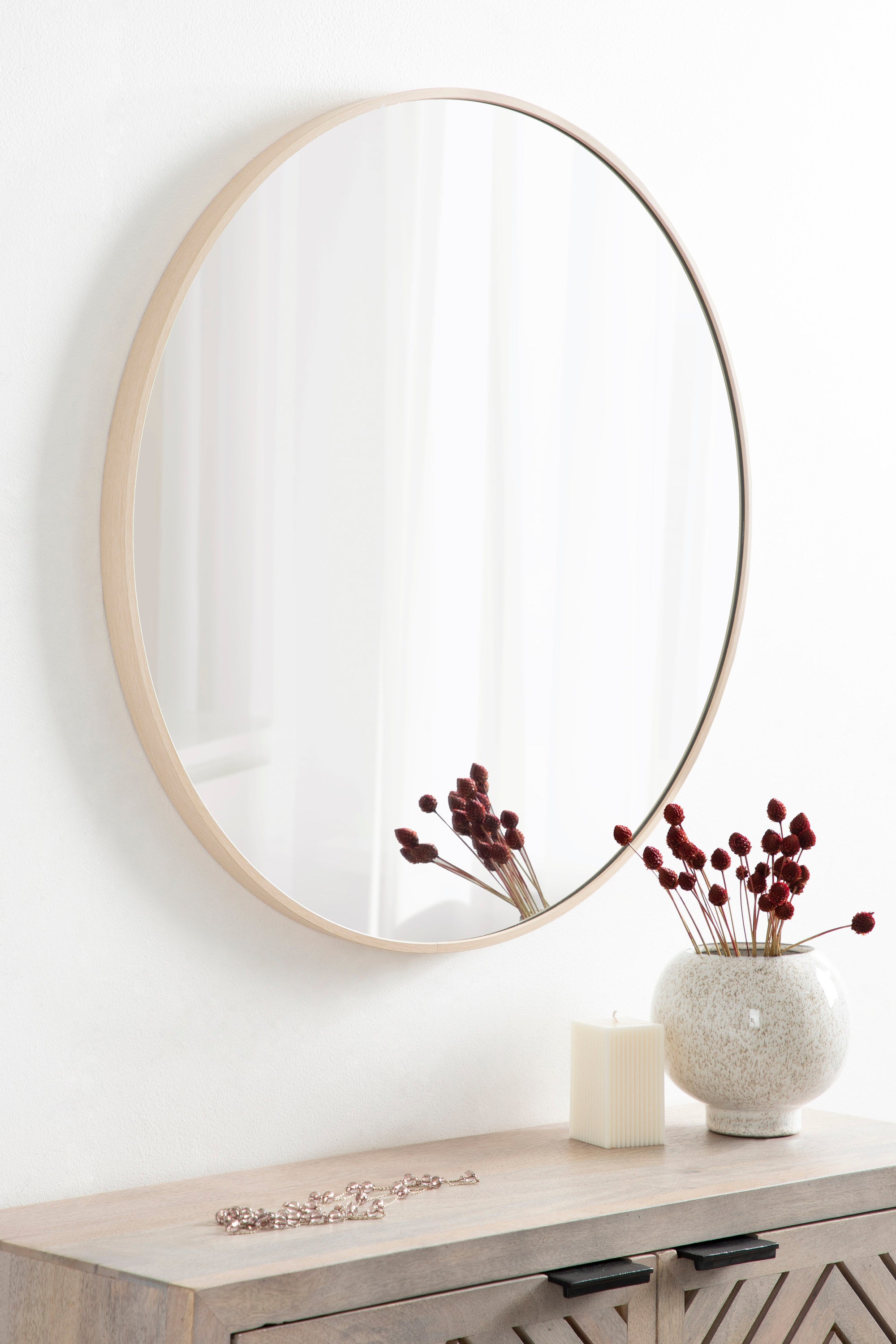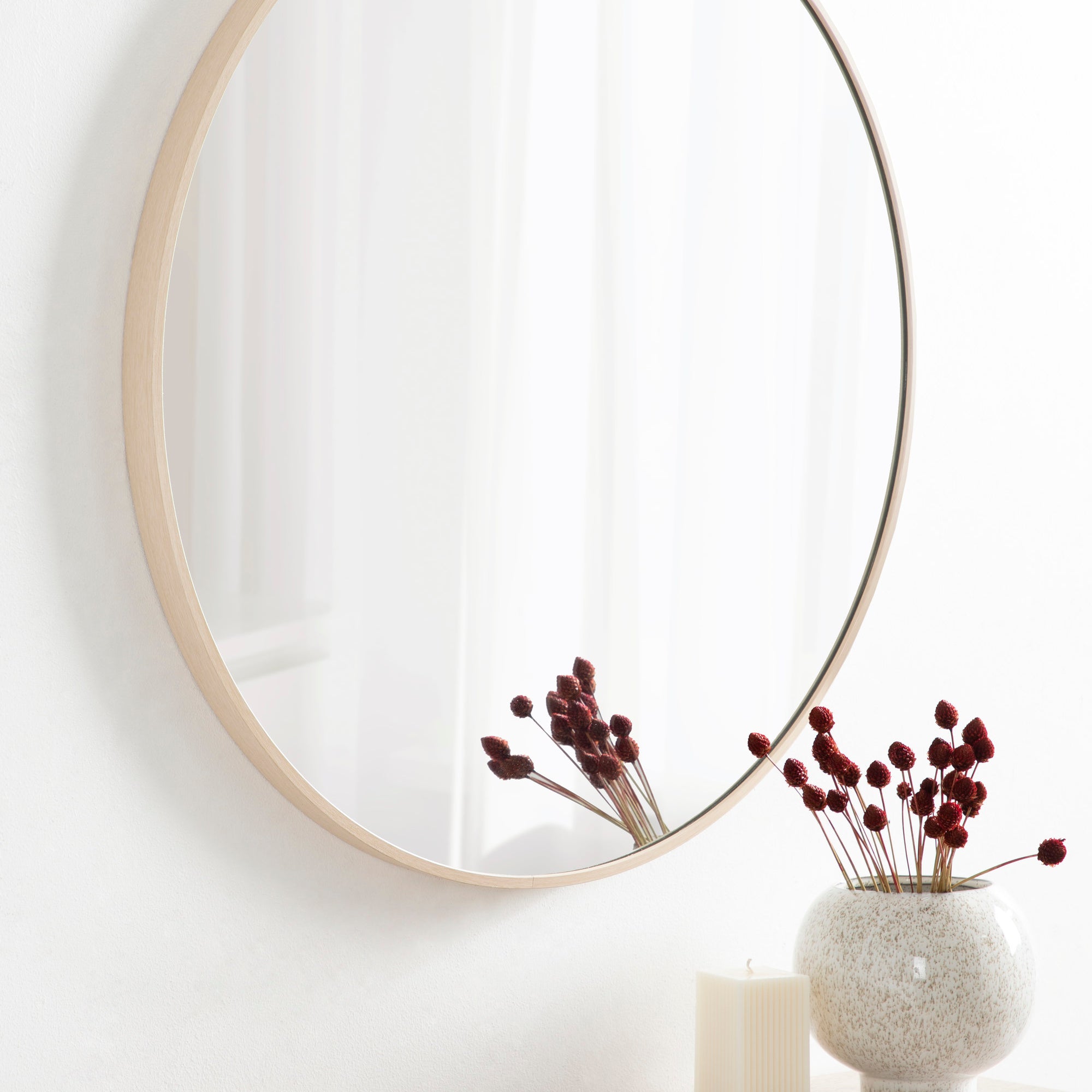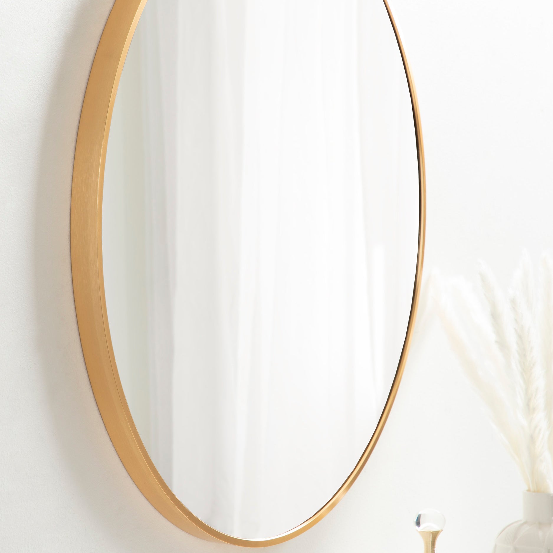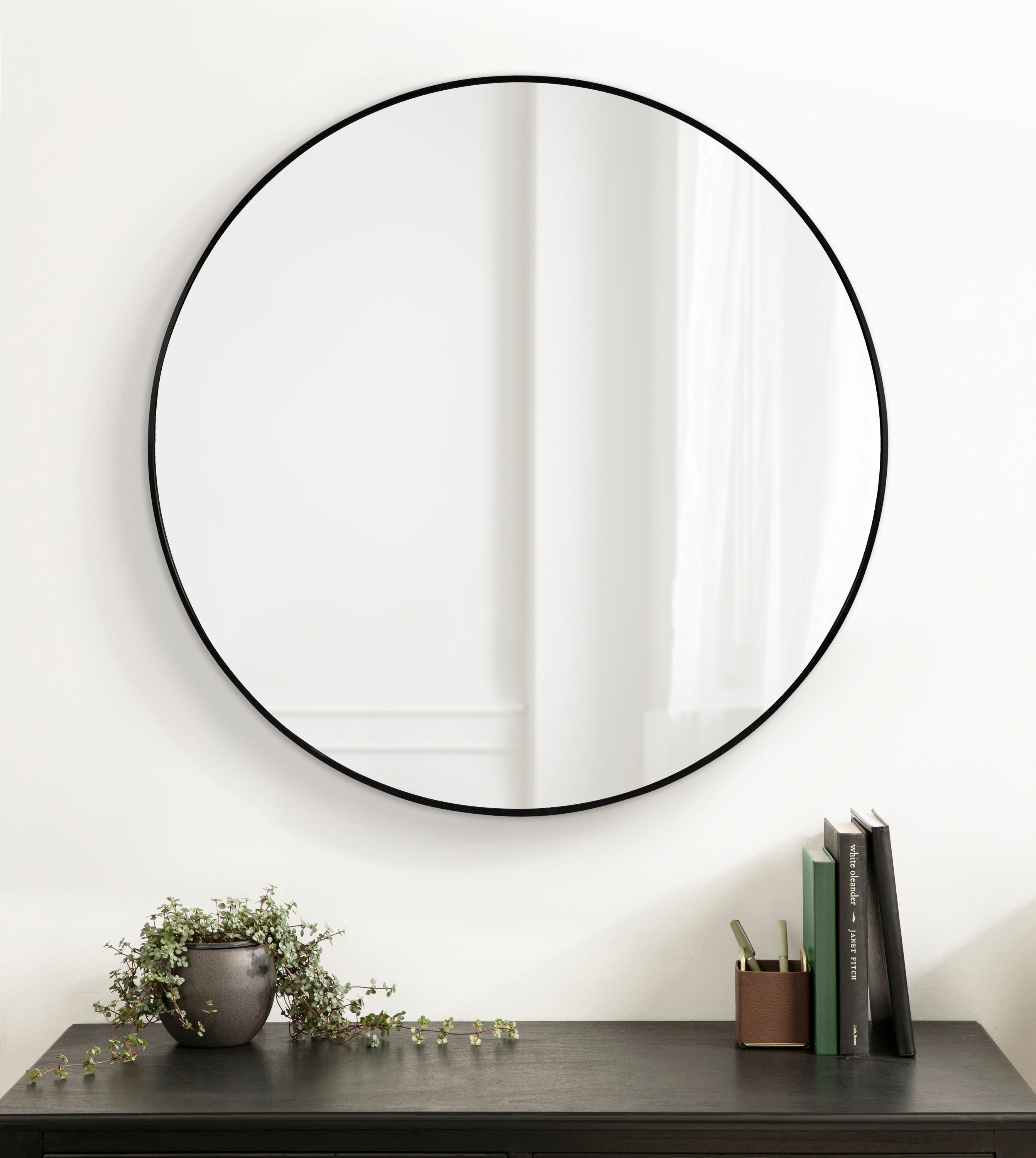 The Zayda round mirror defines stylish simplicity. The combination of smooth curves and a slim frame profile catches attention but blends seamlessly with your decor. This modern option is constructed from resilient aluminum, making it durable and light enough to hang easily.