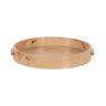 Bring transitional style into your home with this charming round burlwood tray with metal handles. Place this tray on your entrance console table as a trinket tray to hold your keys and change as you come and go. This circular tray can also be used as a decorative accent on an ottoman to hold your beverages or on your vanity for makeup organization. Constructed of sturdy wooden material with a burlwood veneer and polished metal handles, this tray is dependable to carry your cocktails from room to room! An update to the classic accent tray, the base has a raised edge to keep your items more secure when transporting them. From a dining room table to a living room ottoman, this circle tray brings tremendous versatility anywhere throughout your home. Its versatile size makes it great for serving snacks on little plates or as a decorative display option.