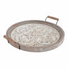 Elevate your farmhouse aesthetic with this ornate wood tray. The Hillrose Tray features a delicately-carved medallion pattern on its robust, premium fir wood for a dazzling centerpiece for storage, decor, and display. Use the sturdy iron and wood handles to serve your favorite Moscow mules or move items from room to room. It looks fantastic next to a bathroom vanity, on a console or ottoman, or your dining room table.