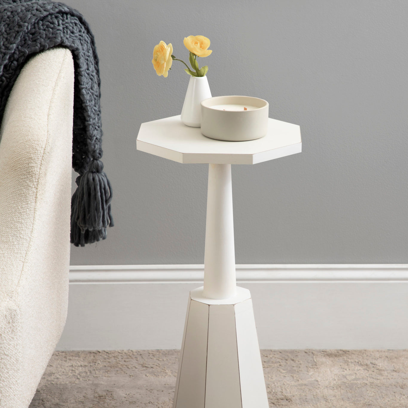 Create an atmosphere of warmth and coastal flair with the Octavia drink table. The Octavia features a farmhouse-inspired, distressed finish to create that antique look you crave. This wood table makes a lasting impression with a 11.25-inch diameter made to display plants and candles or serve cocktails and other beverages.
