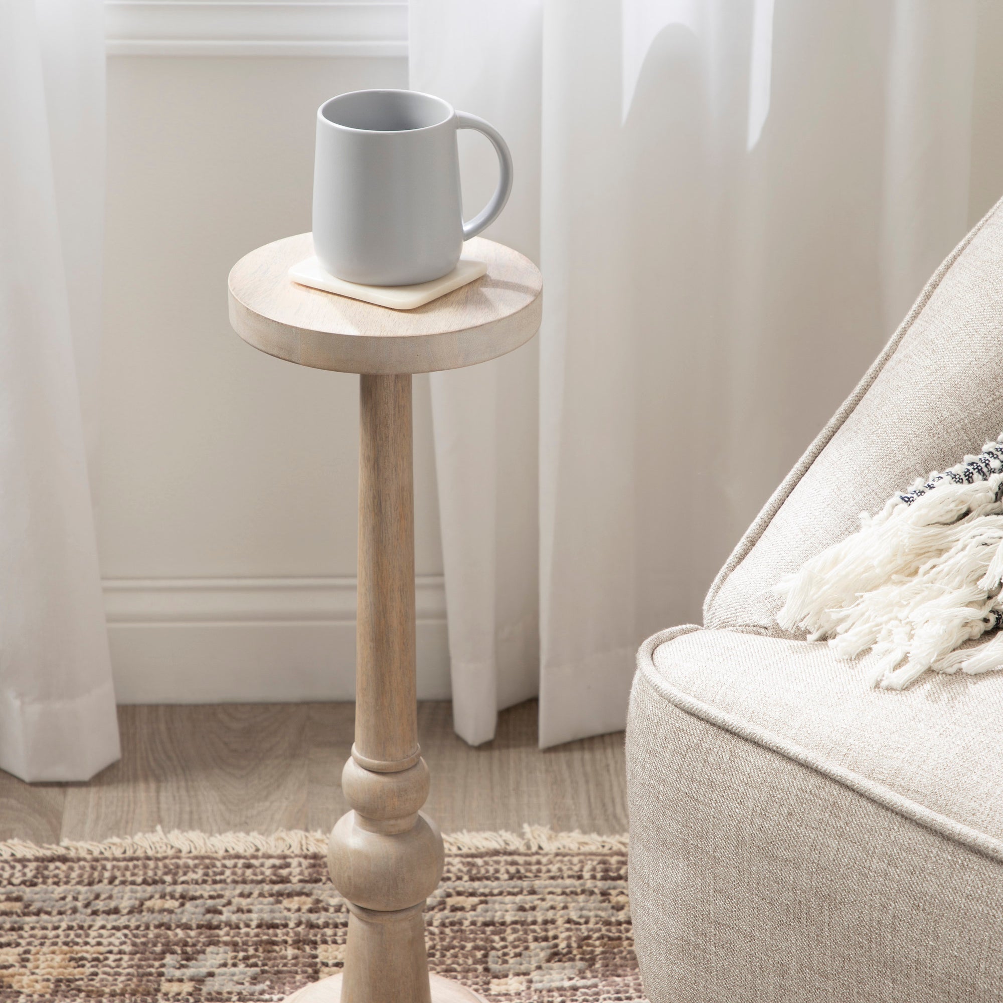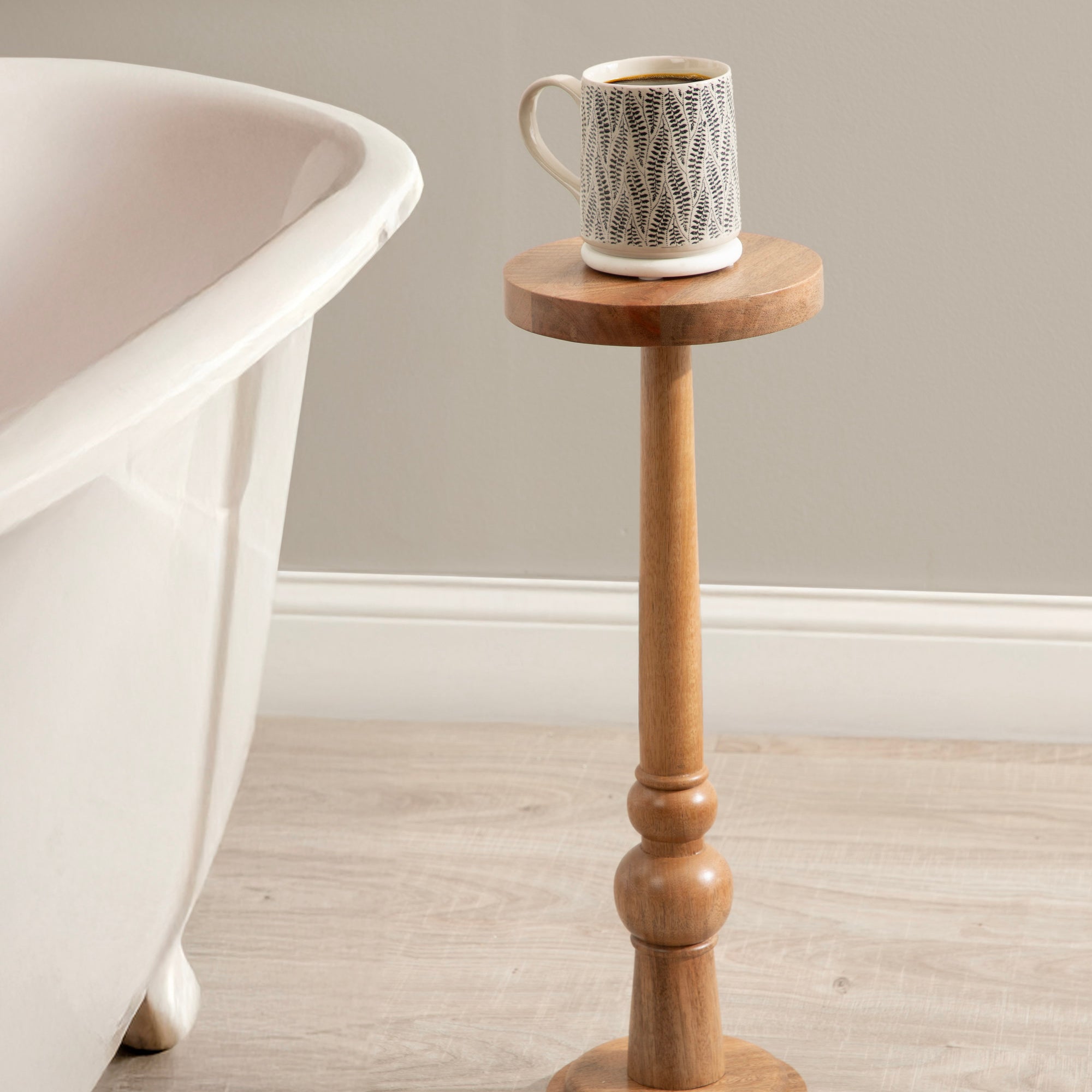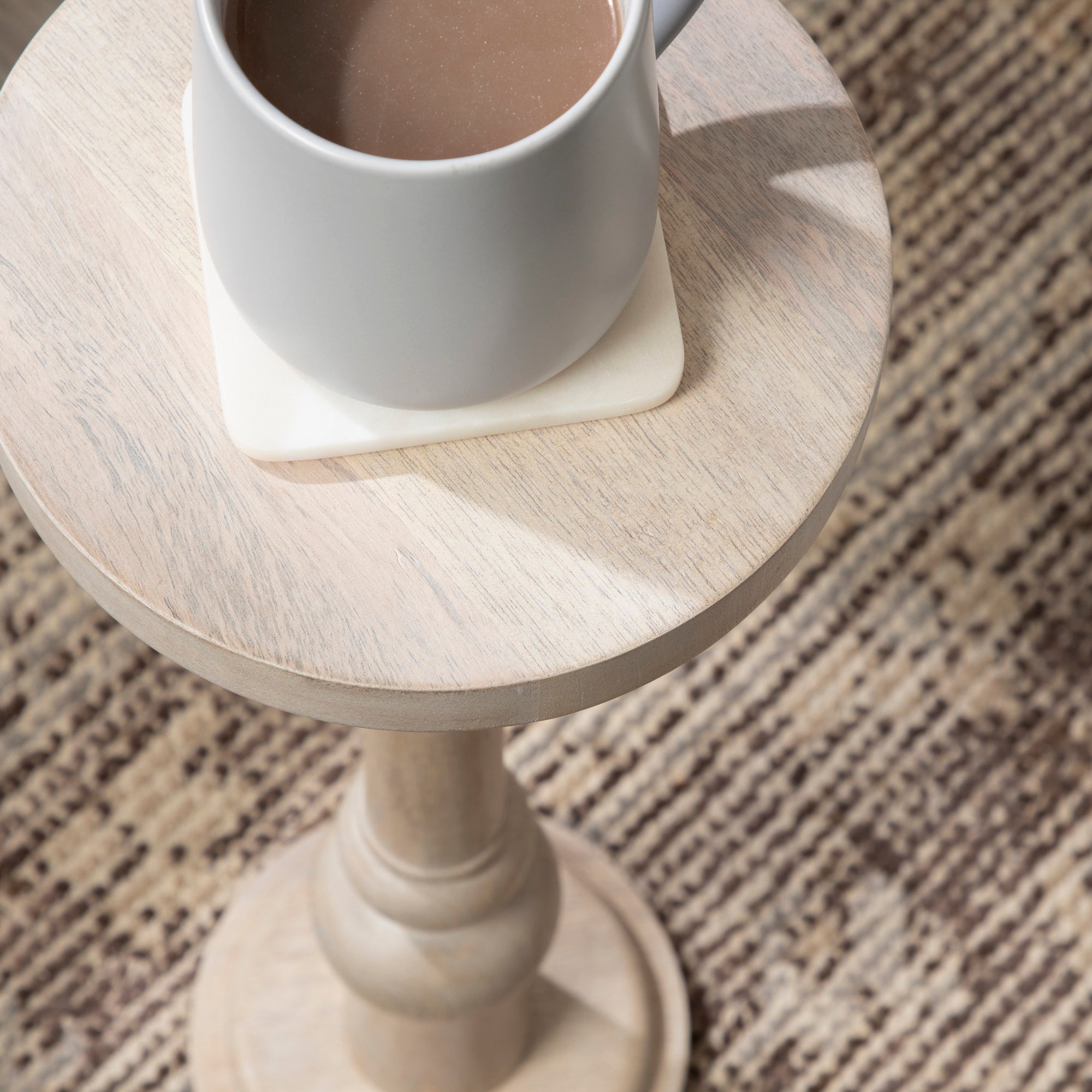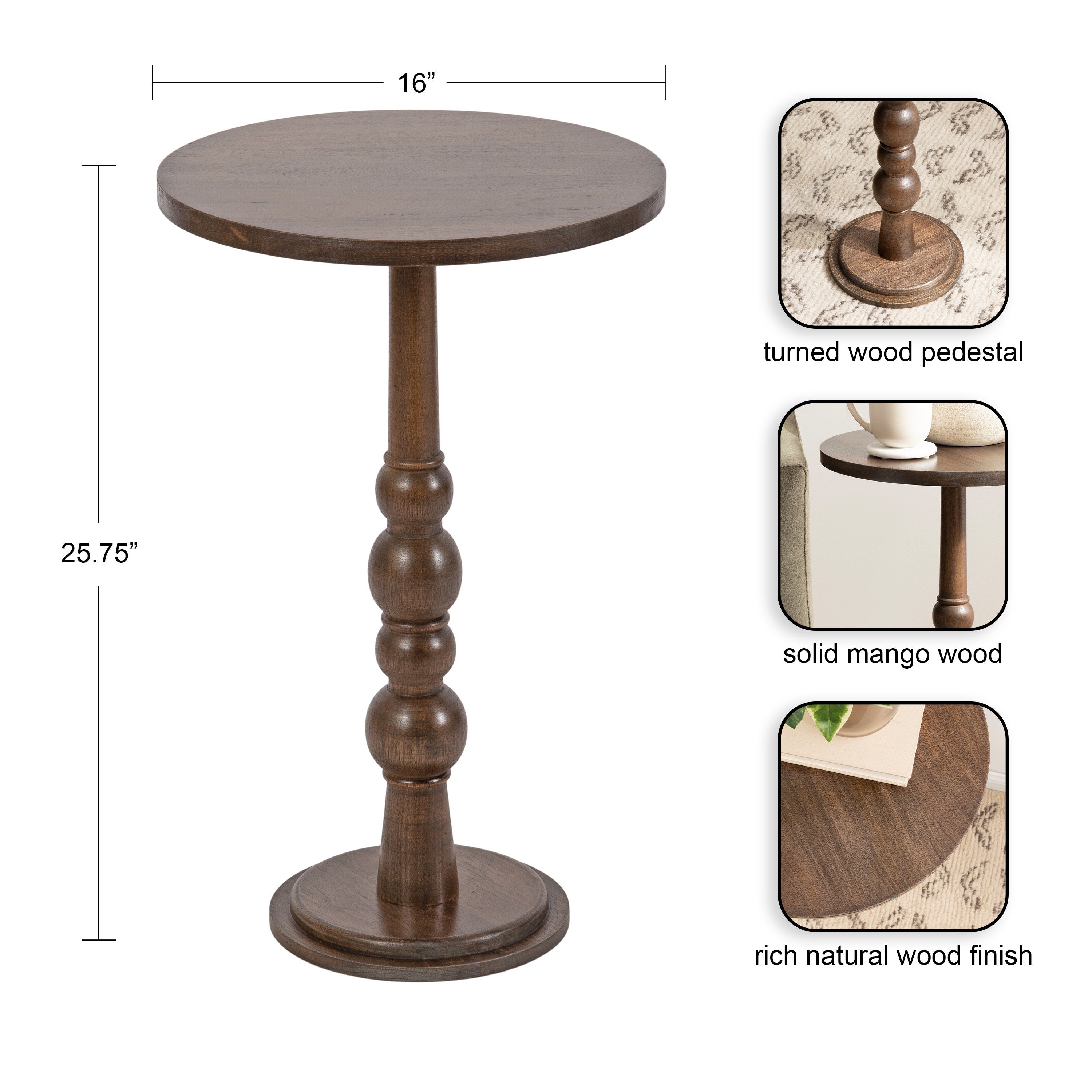Introducing our beautifully crafted wooden drink table, the perfect addition to any living room, home office, or sunroom. Made from high-quality mango wood, this table offers a stylish turned leg and a sturdy, reliable surface to hold your drinks, plants, or any items you may need within reach. Not only is this wooden drink table functional and stylish, but it's also durable and long-lasting. The mango wood construction ensures that it can withstand regular use and will feature unique variations within the woodgrain based on its organic wood structure. Plus, its compact size makes it easy to move around and store when not in use. This versatile table is perfect for enjoying a relaxing evening at home or hosting a gathering with friends and family. The two-step assembly is quick and easy with no hardware necessary. The instructions are clear and concise, making it a breeze to put together in just a few minutes.
