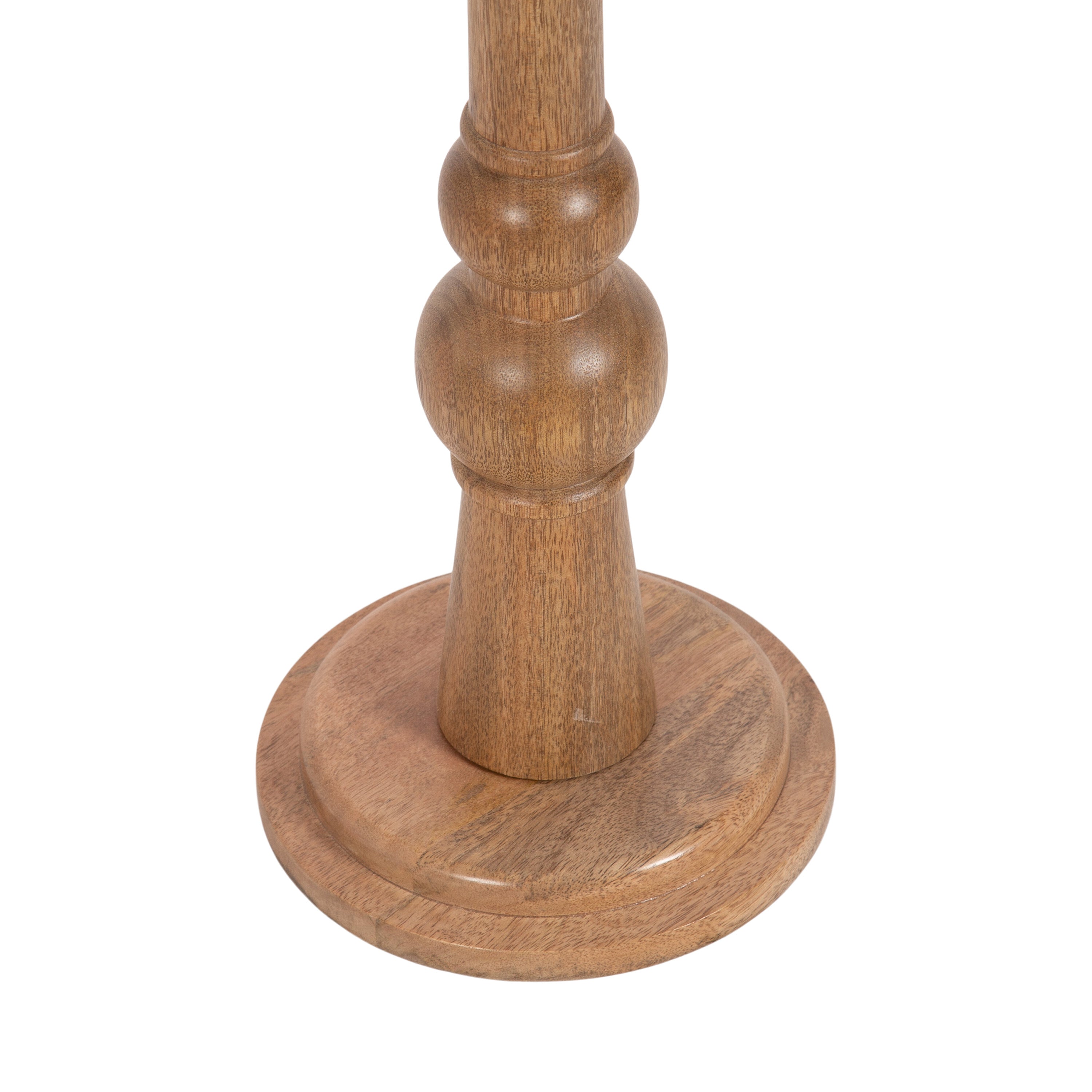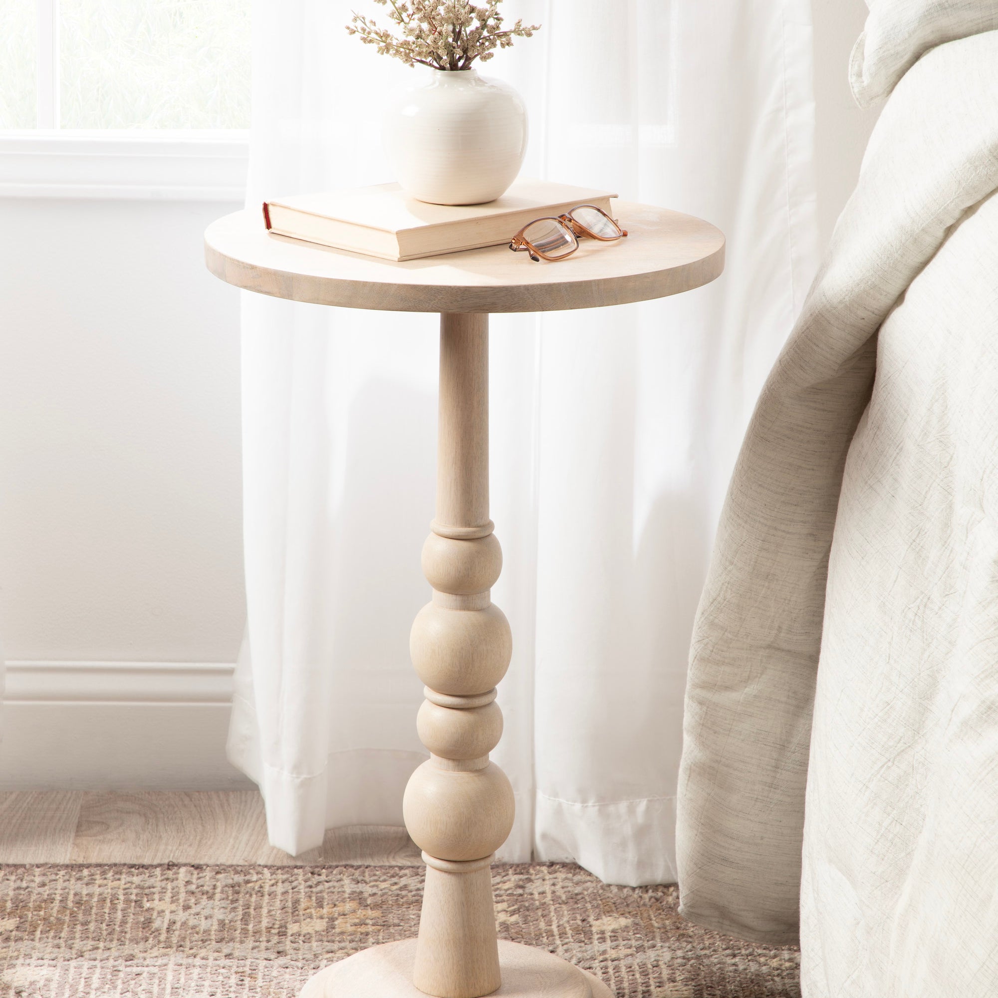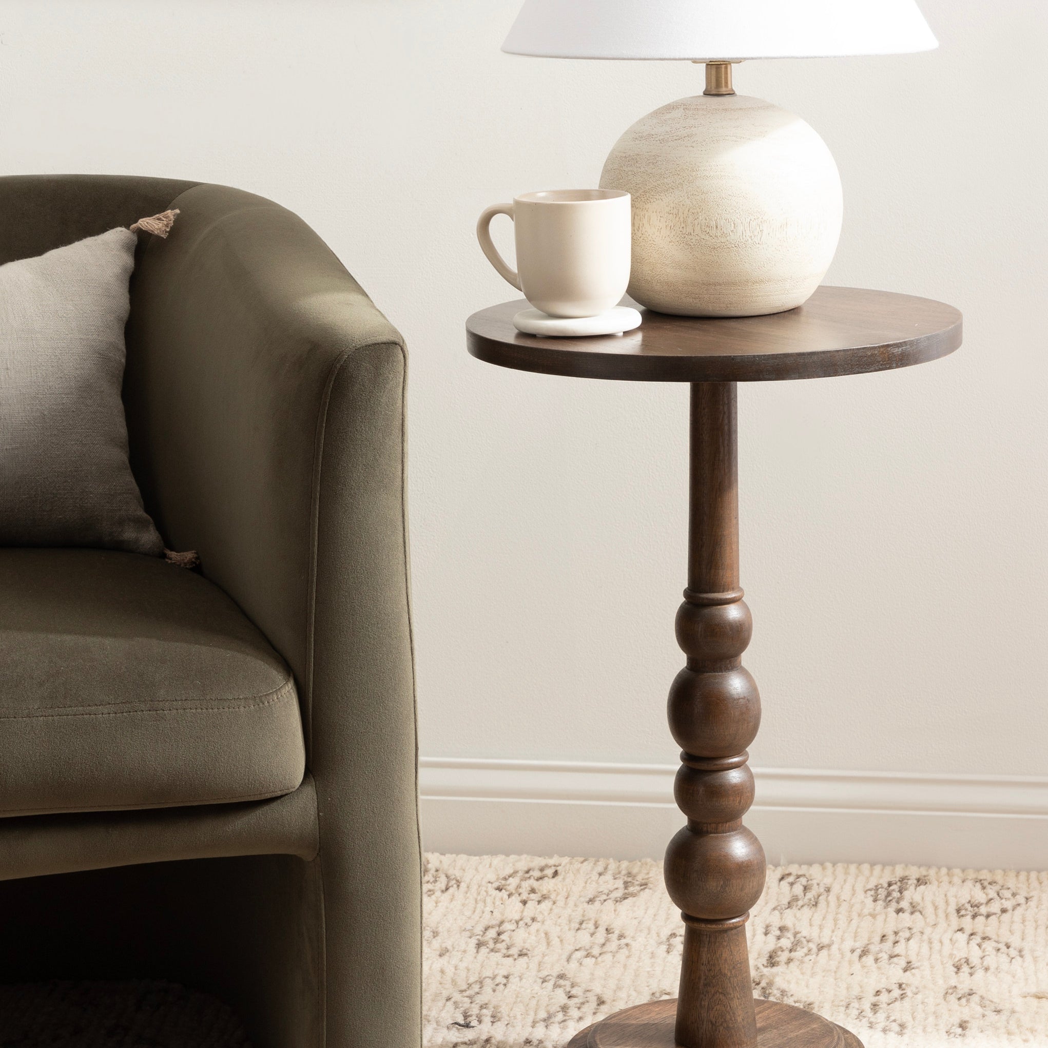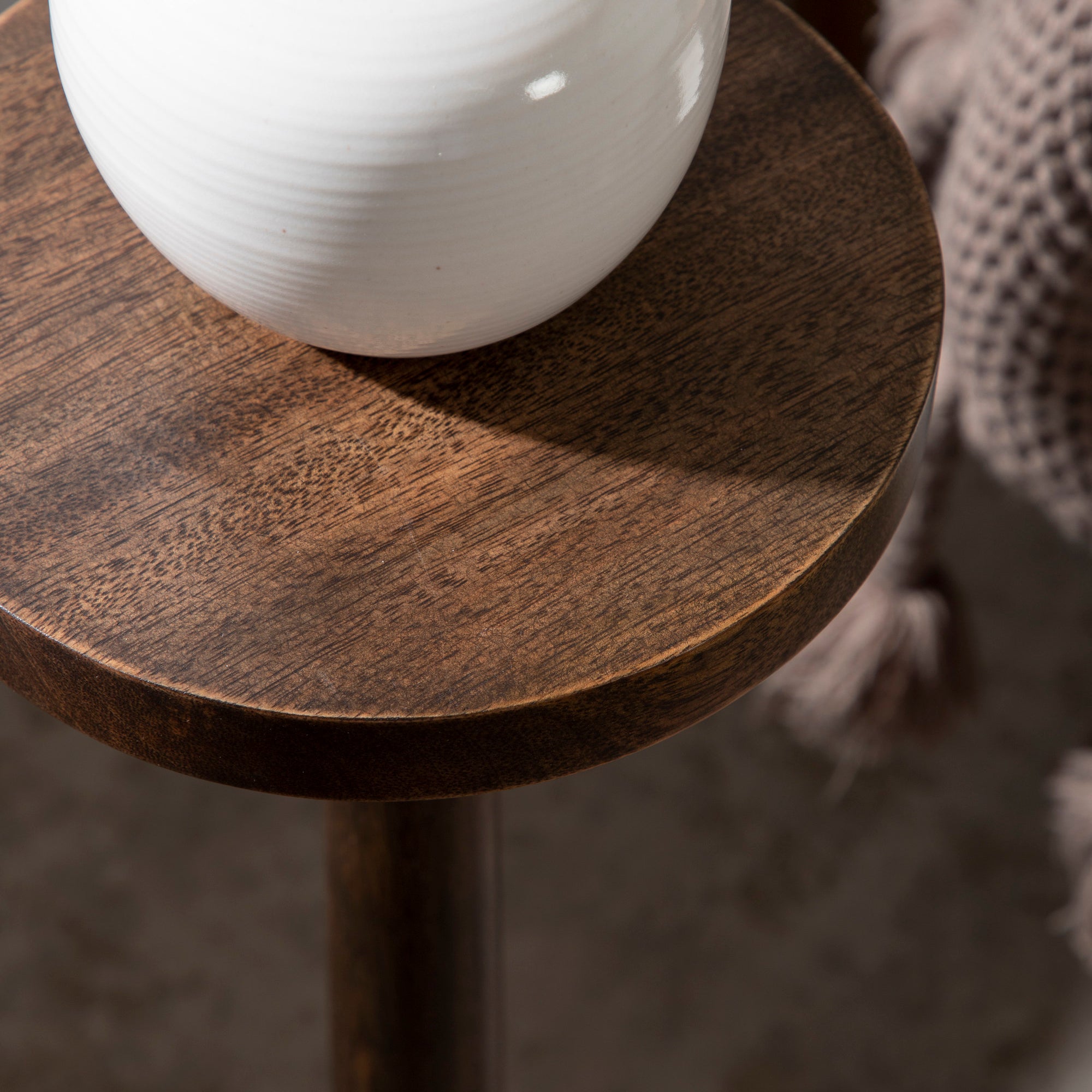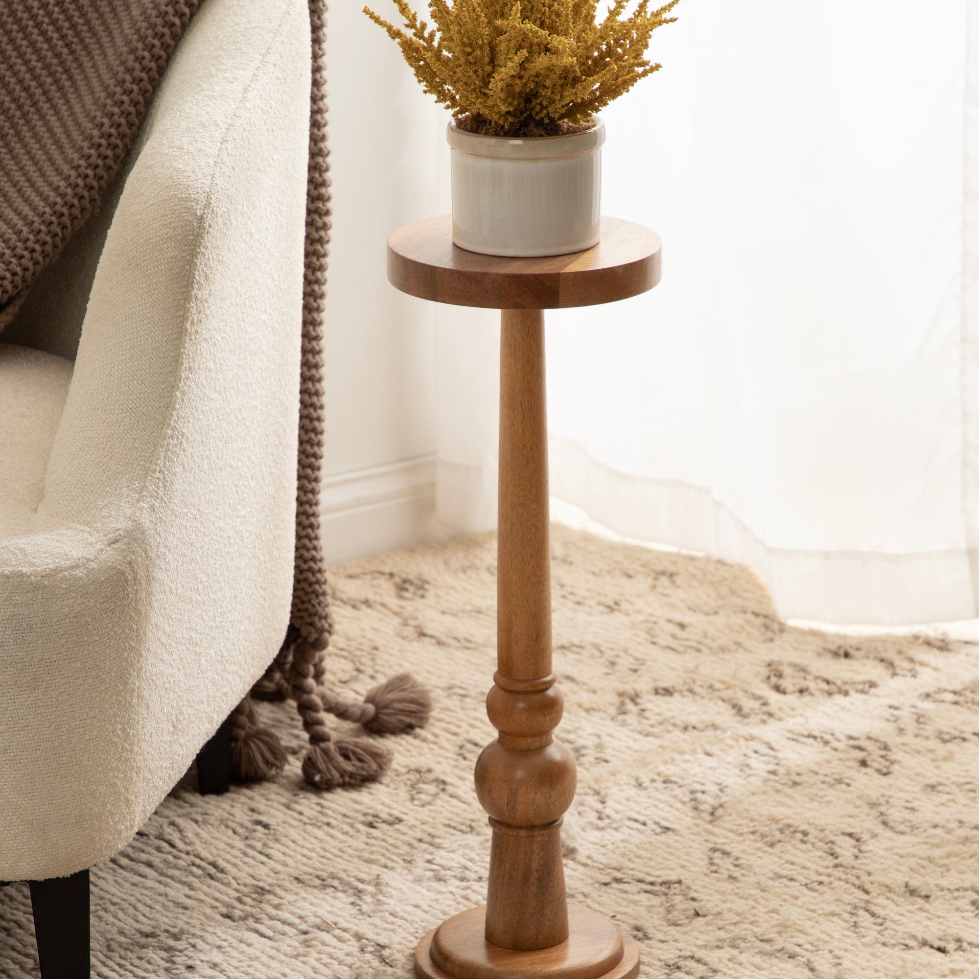 Introducing our beautifully crafted wooden drink table, the perfect addition to any living room, home office, or sunroom. Made from high-quality mango wood, this table offers a stylish turned leg and a sturdy, reliable surface to hold your drinks, plants, or any items you may need within reach. Not only is this wooden drink table functional and stylish, but it's also durable and long-lasting. The mango wood construction ensures that it can withstand regular use and will feature unique variations within the woodgrain based on its organic wood structure. Plus, its compact size makes it easy to move around and store when not in use. This versatile table is perfect for enjoying a relaxing evening at home or hosting a gathering with friends and family. The two-step assembly is quick and easy with no hardware necessary. The instructions are clear and concise, making it a breeze to put together in just a few minutes.