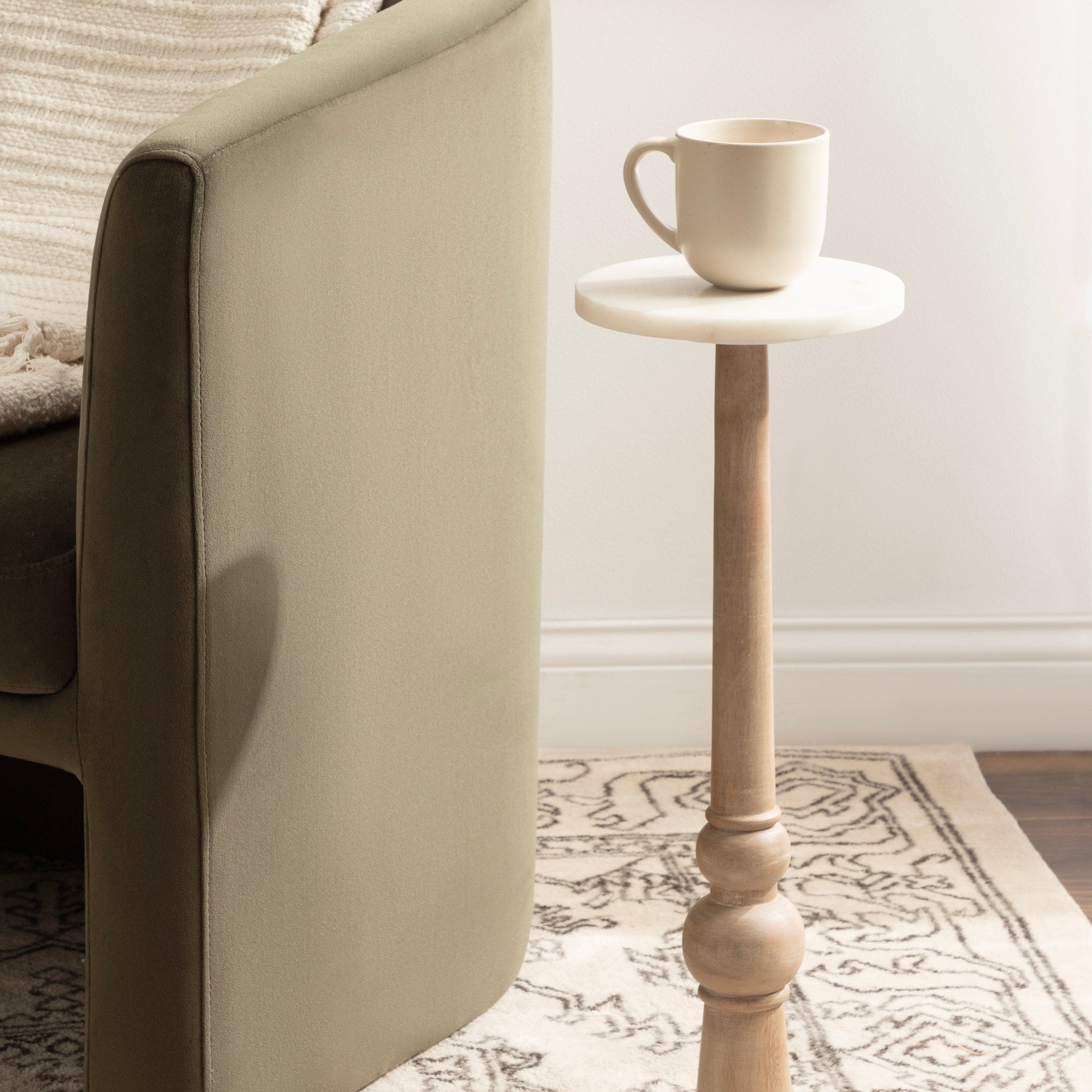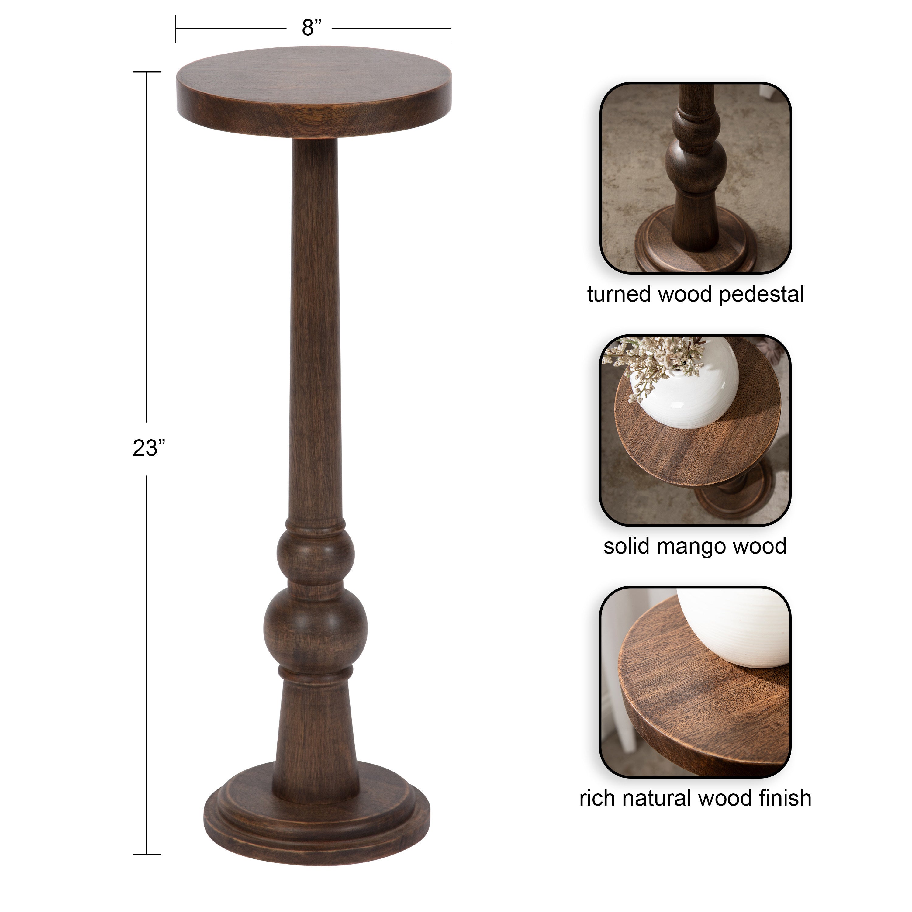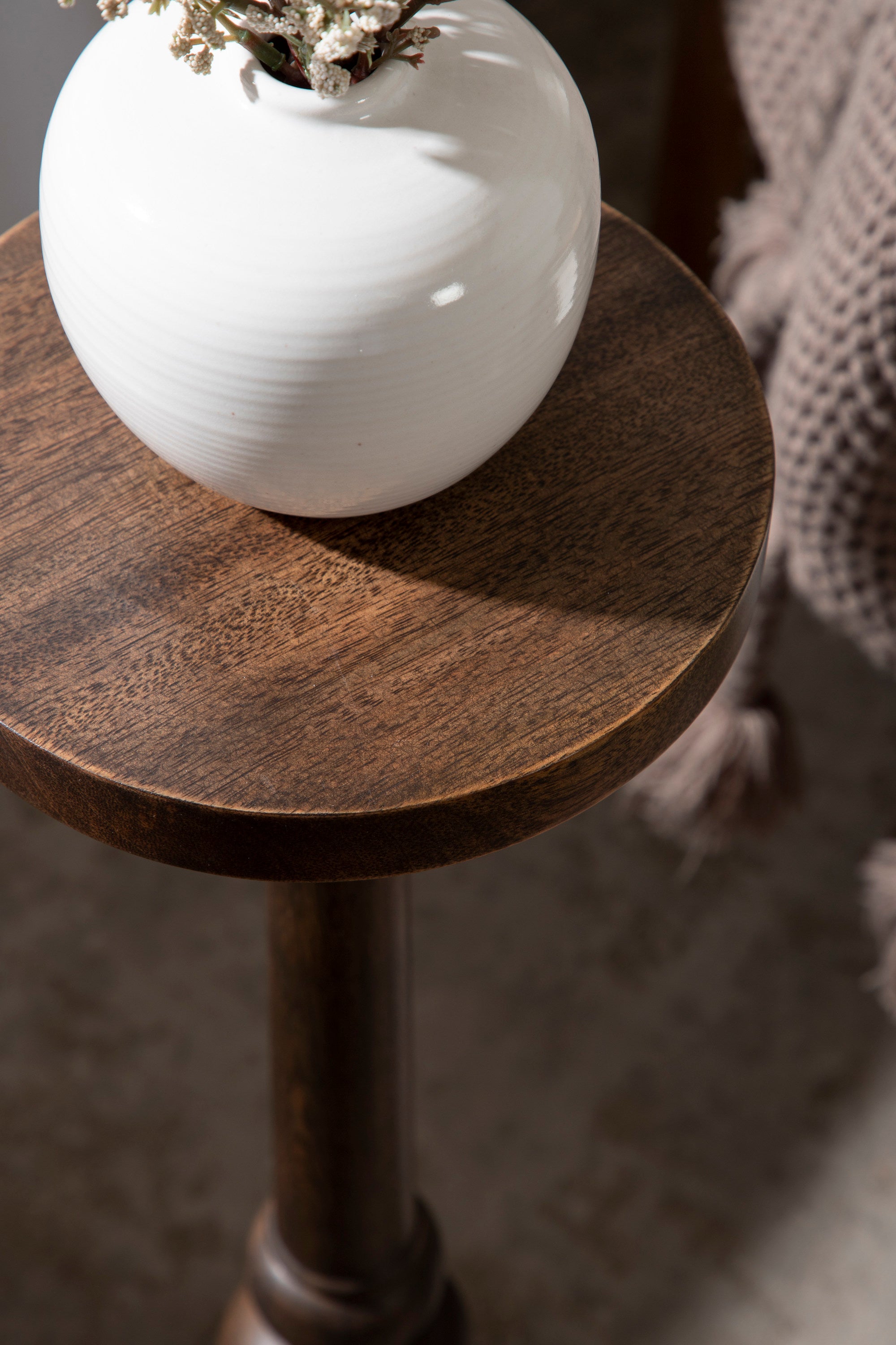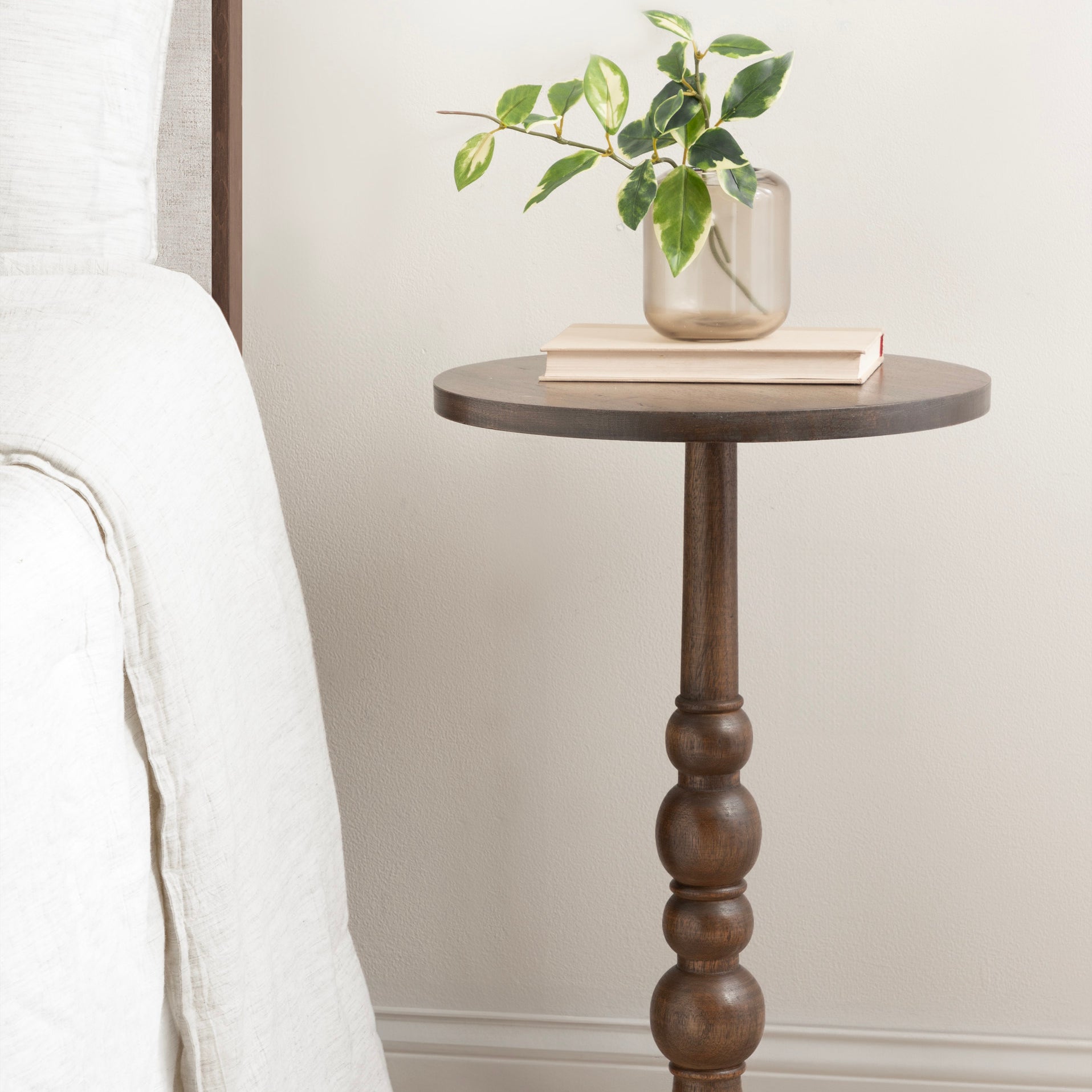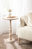 Introducing our beautifully crafted wooden drink table, the perfect addition to any living room, home office, or sunroom. Made from high-quality mango wood, this table offers a stylish turned leg and a sturdy, reliable surface to hold your drinks, plants, or any items you may need within reach. Not only is this wooden drink table functional and stylish, but it's also durable and long-lasting. The mango wood construction ensures that it can withstand regular use and will feature unique variations within the woodgrain based on its organic wood structure. Plus, its compact size makes it easy to move around and store when not in use. This versatile table is perfect for enjoying a relaxing evening at home or hosting a gathering with friends and family. The two-step assembly is quick and easy with no hardware necessary. The instructions are clear and concise, making it a breeze to put together in just a few minutes.