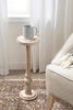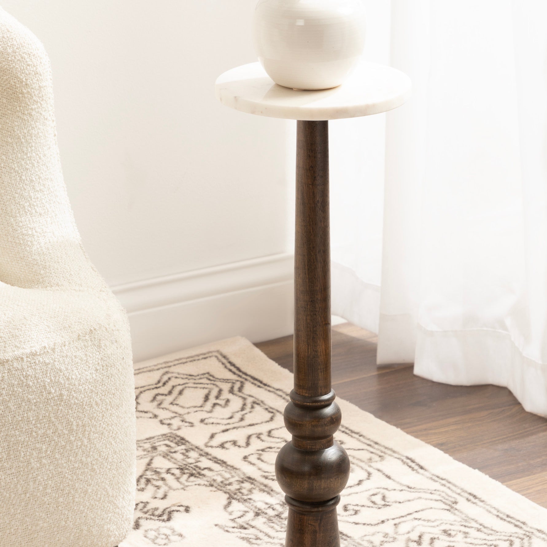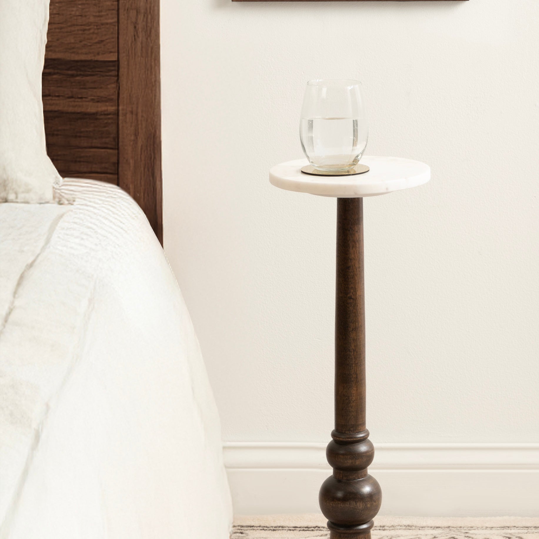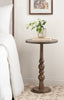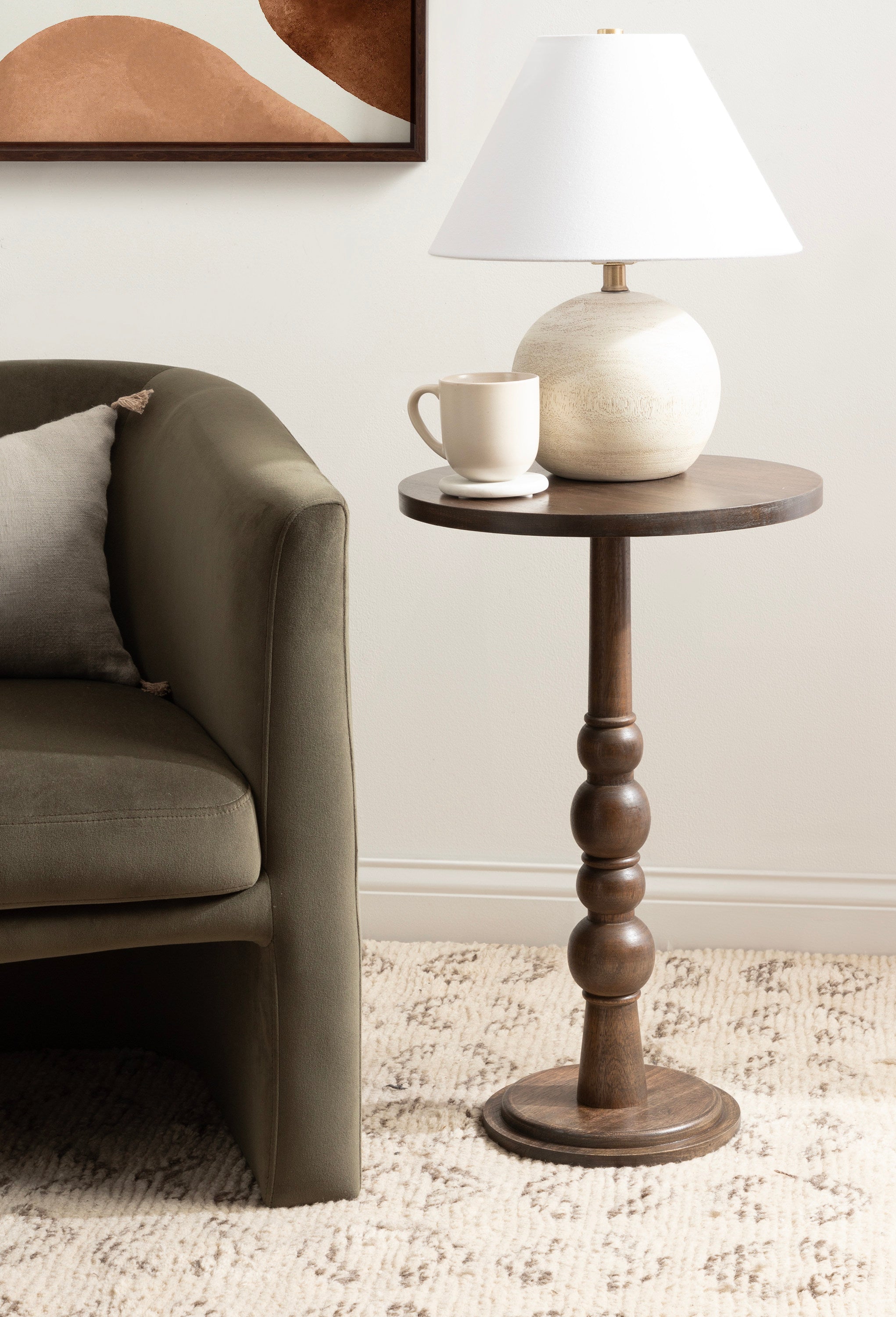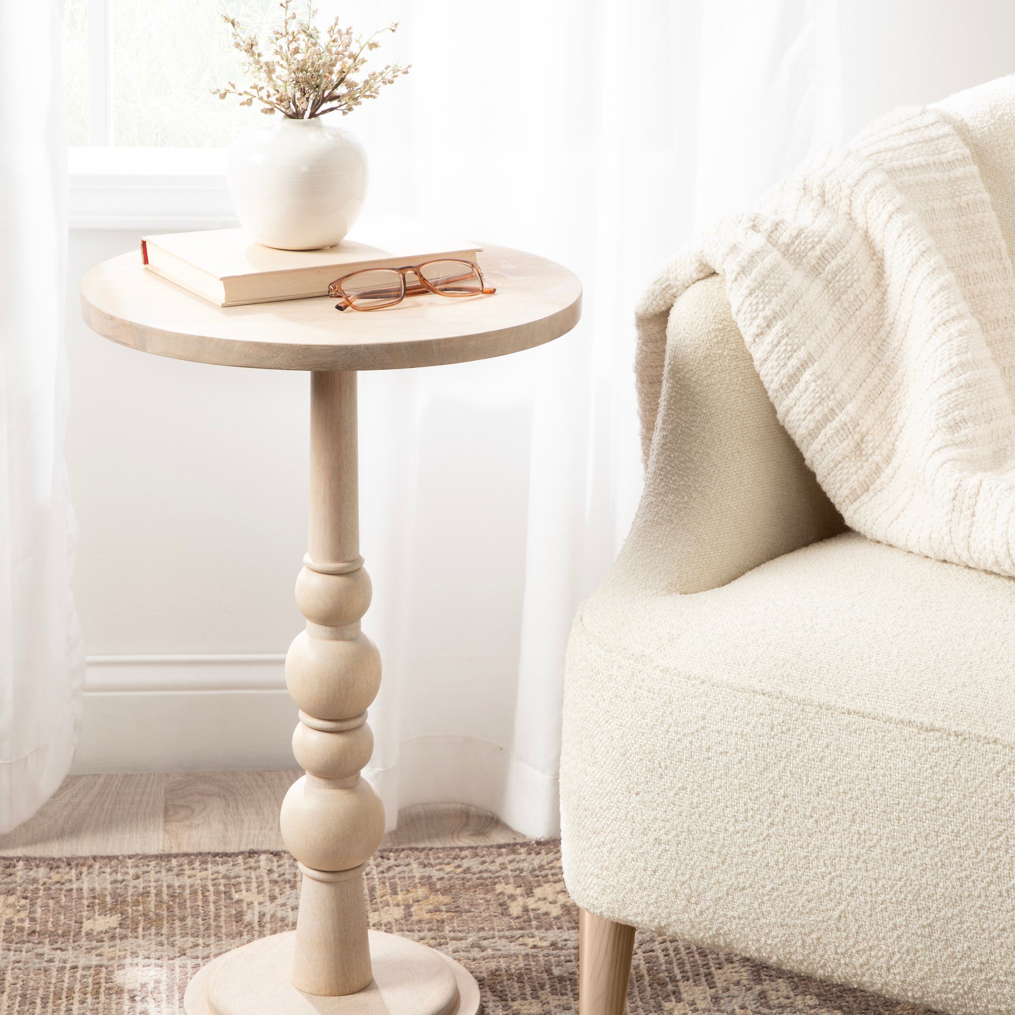 Introducing our beautifully crafted wooden drink table, the perfect addition to any living room, home office, or sunroom. Made from high-quality mango wood, this table offers a stylish turned leg and a sturdy, reliable surface to hold your drinks, plants, or any items you may need within reach. Not only is this wooden drink table functional and stylish, but it's also durable and long-lasting. The mango wood construction ensures that it can withstand regular use and will feature unique variations within the woodgrain based on its organic wood structure. Plus, its compact size makes it easy to move around and store when not in use. This versatile table is perfect for enjoying a relaxing evening at home or hosting a gathering with friends and family. The two-step assembly is quick and easy with no hardware necessary. The instructions are clear and concise, making it a breeze to put together in just a few minutes.