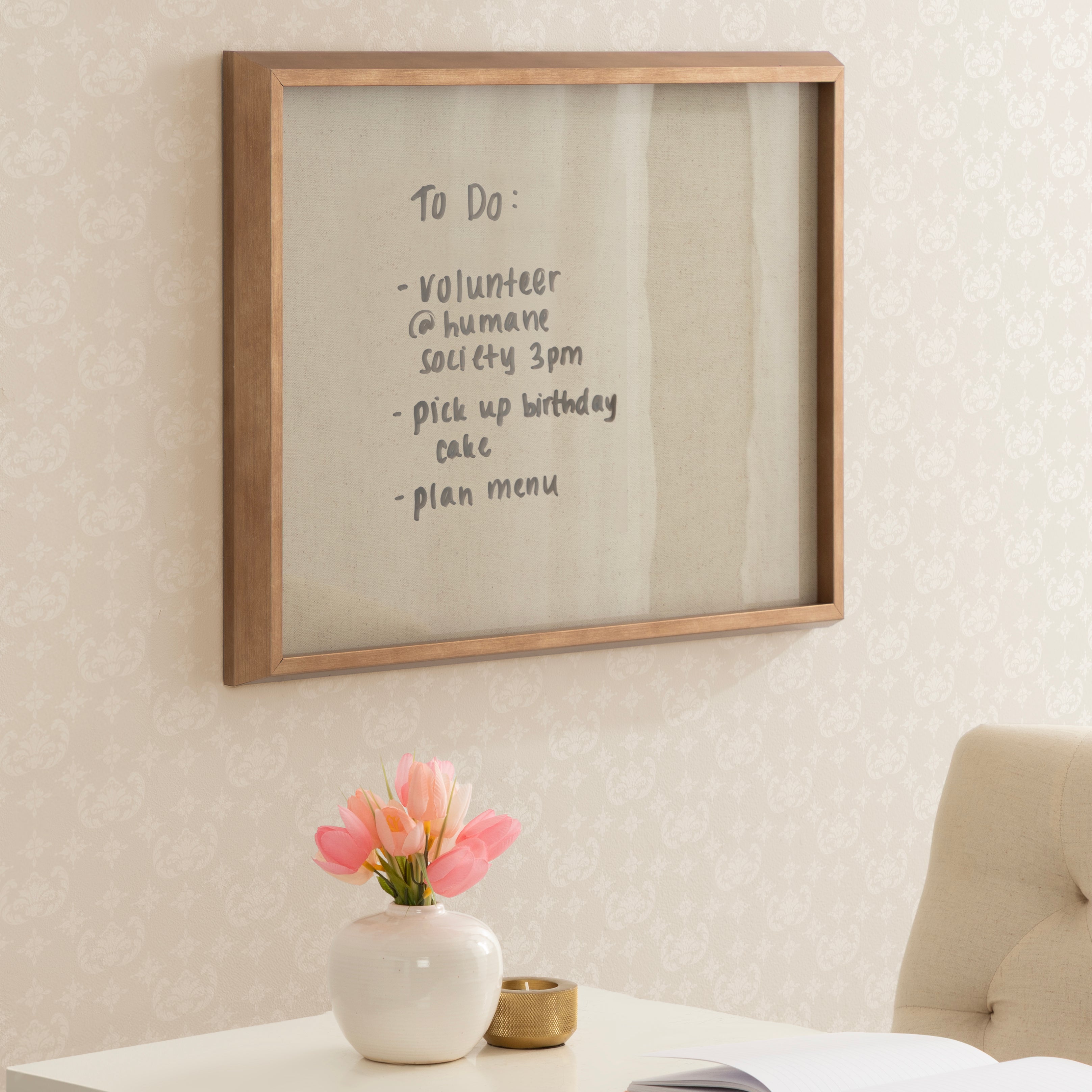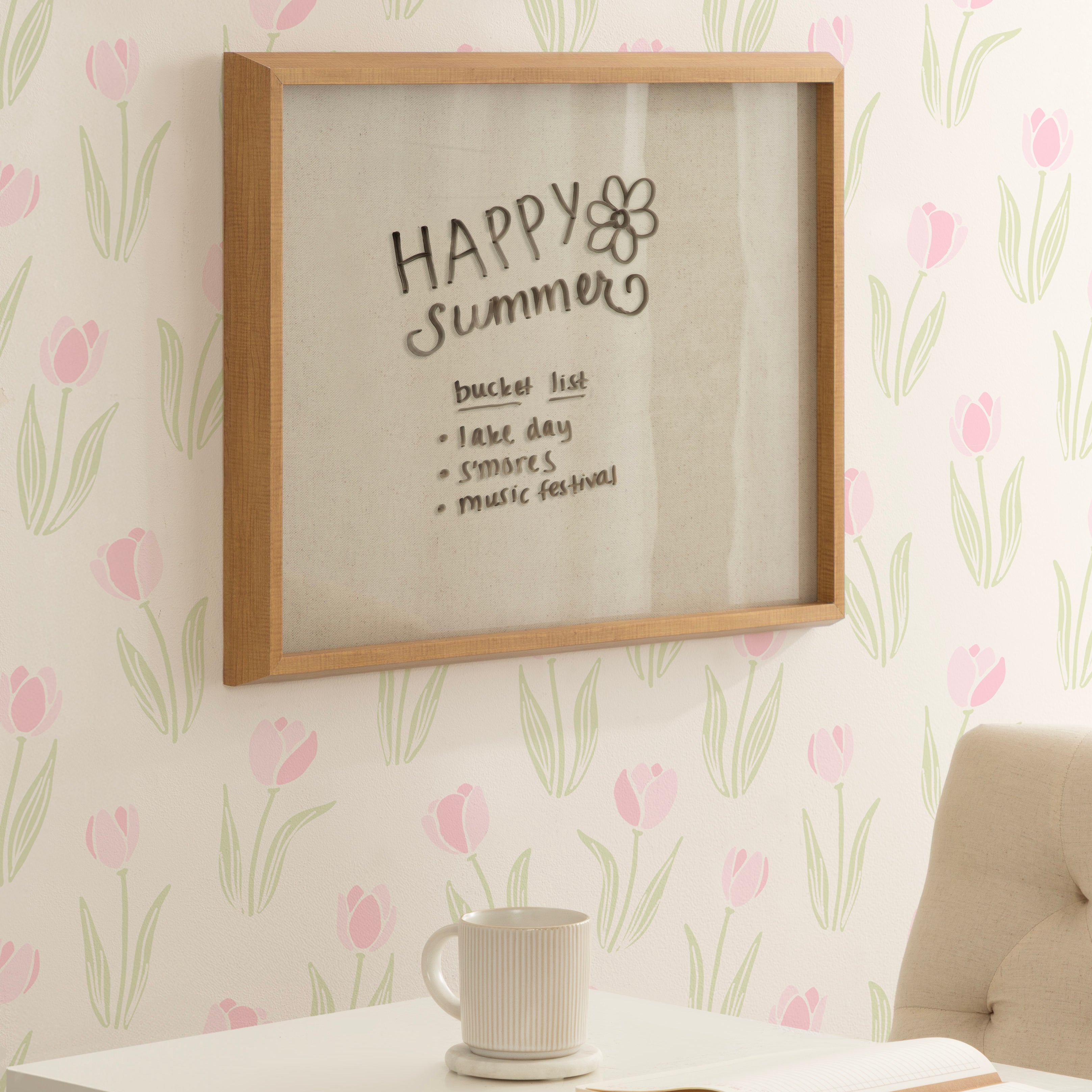 Natural Linen Light Dry Erase by The Creative Bunch Studio Framed Glass Dry Erase Wall Art White Board