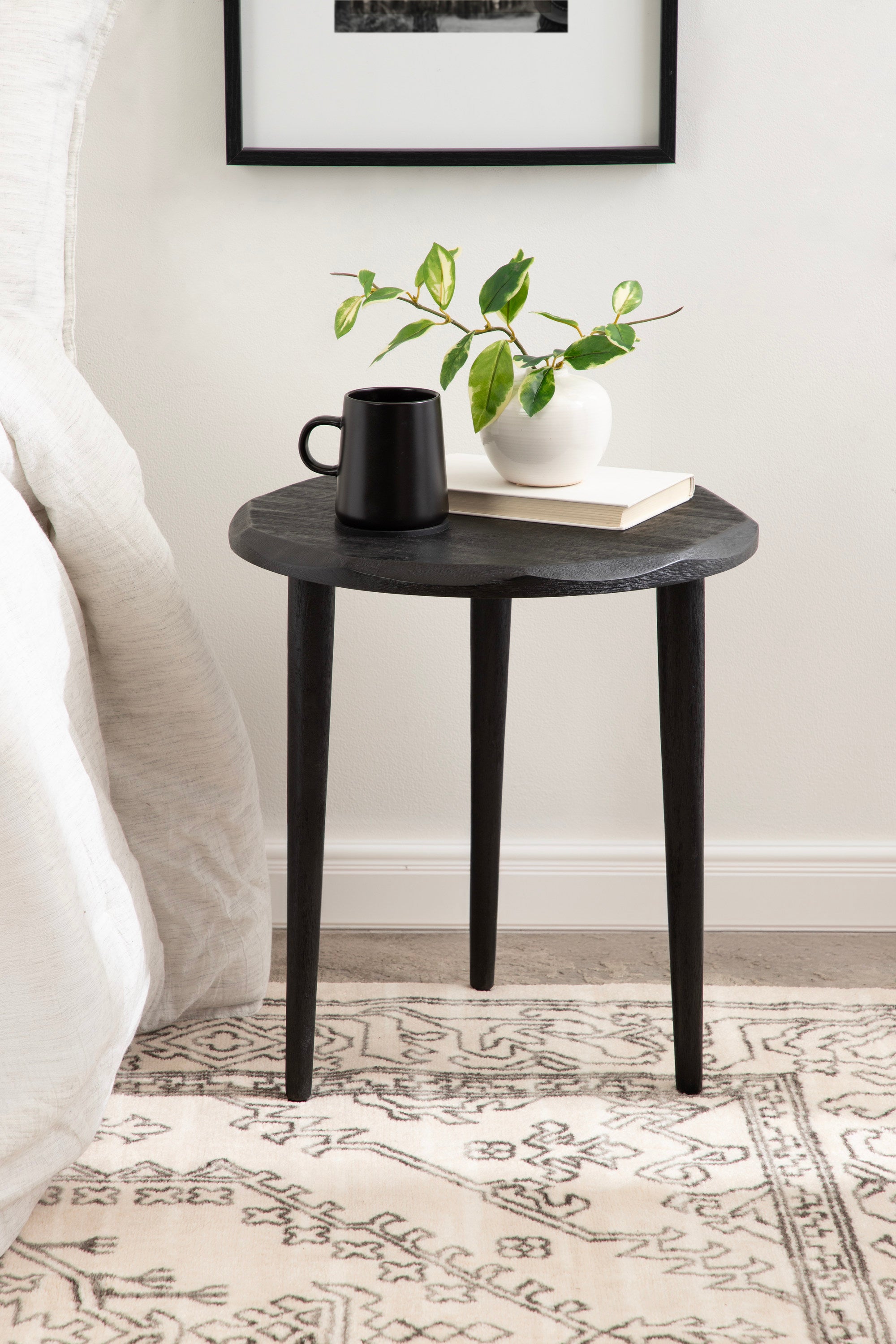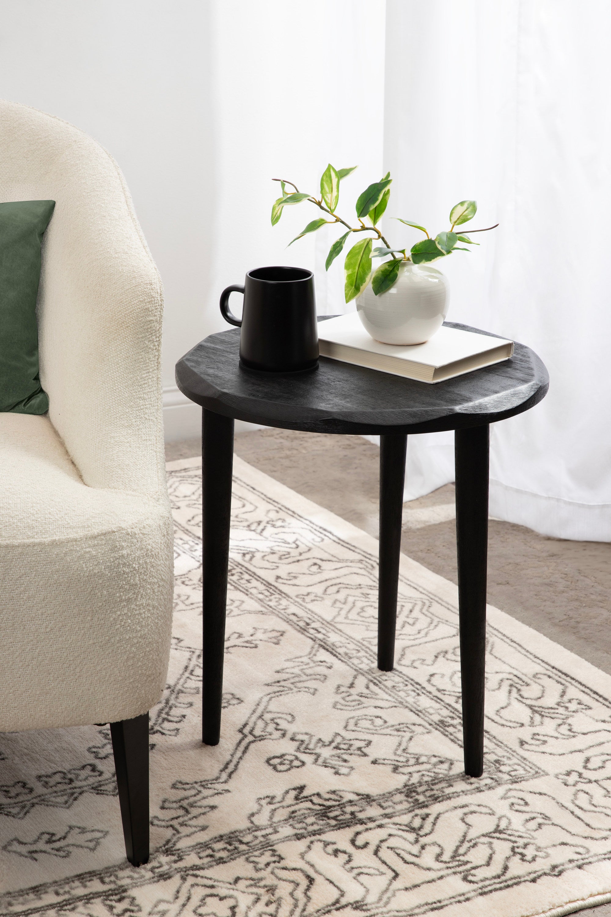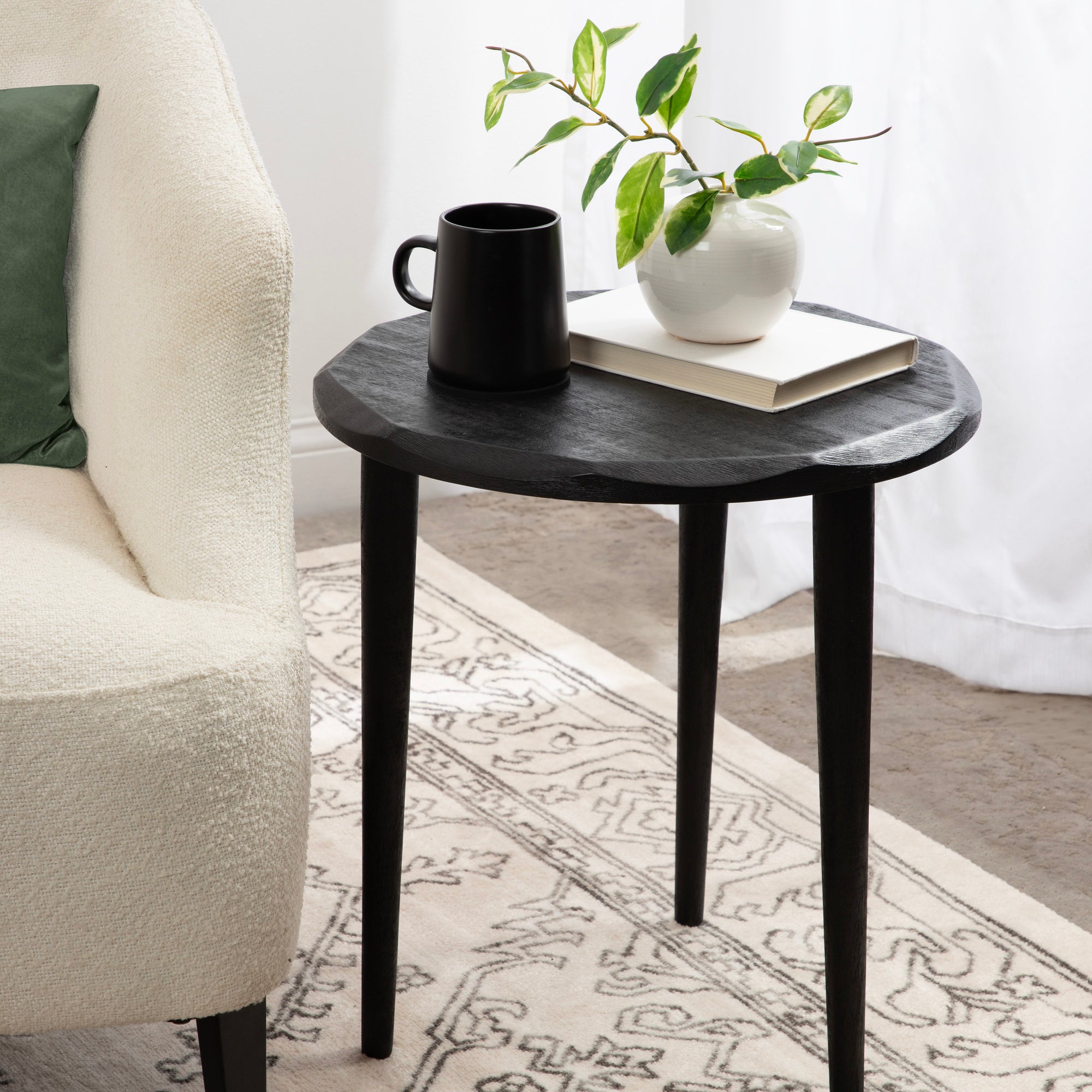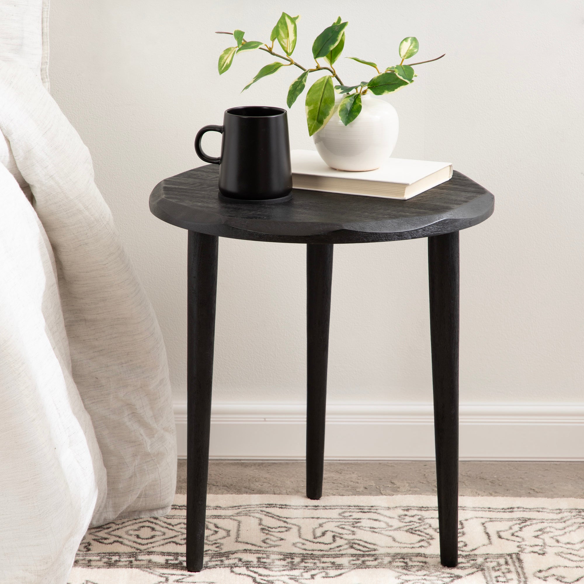 Blend your love of modern style with a dash of transitional functionality with the Tavares side table. This table embraces a unique table design in its round tabletop shape and tapered legs. Skilled artisans craft the Tavares by hand, and due to this careful, delicate crafting, each piece is one-of-a-kind in finish and woodgrain. It is made of 100% solid mango wood with a faceted edge all along the tabletop. In addition, the round tabletop is ideal for storing or displaying household necessities and your most cherished decorative accent pieces.