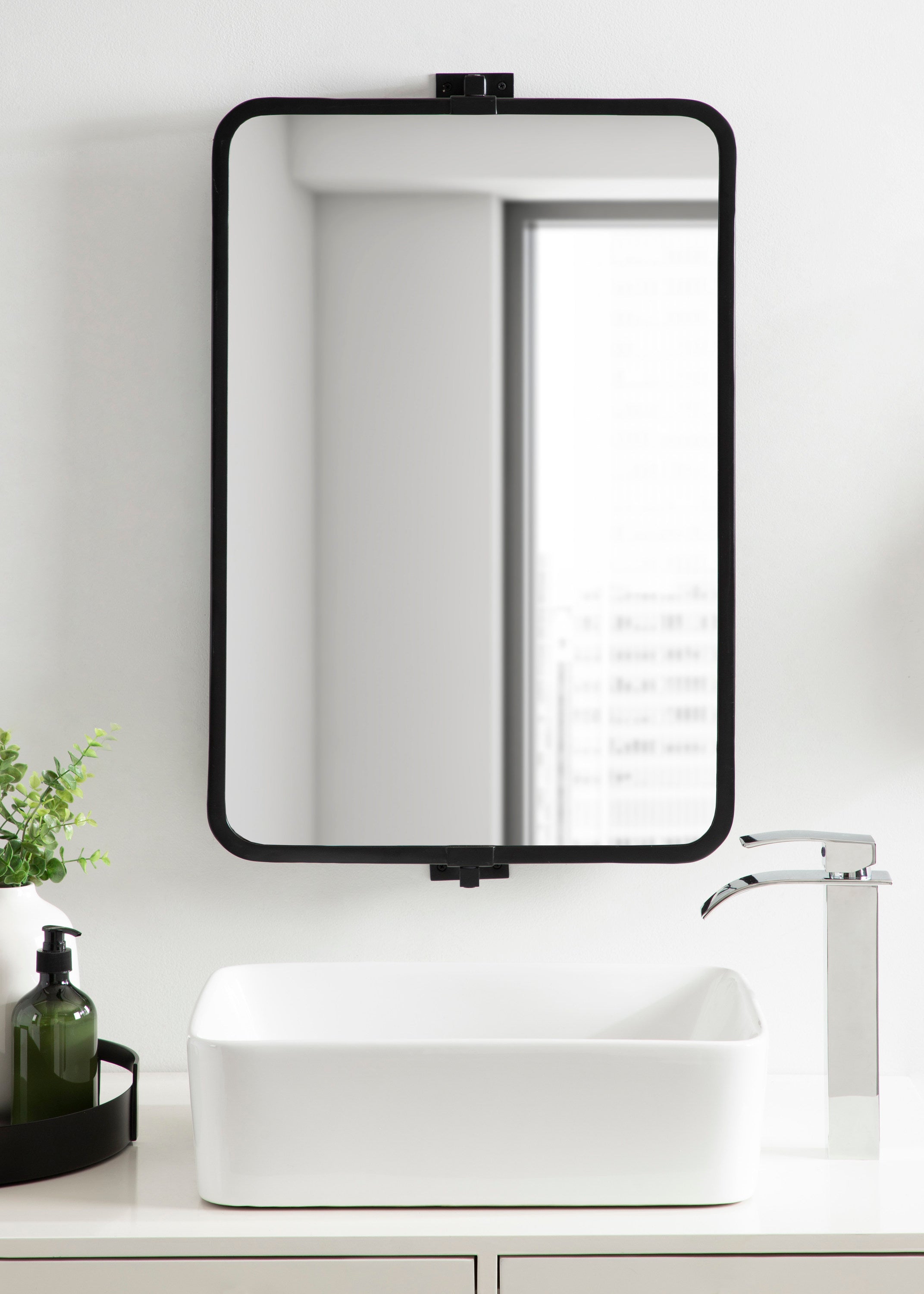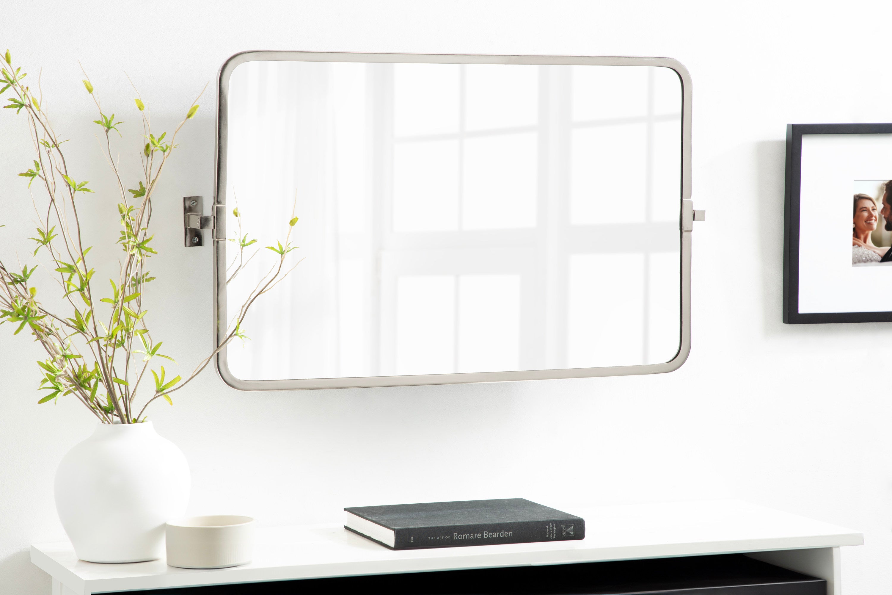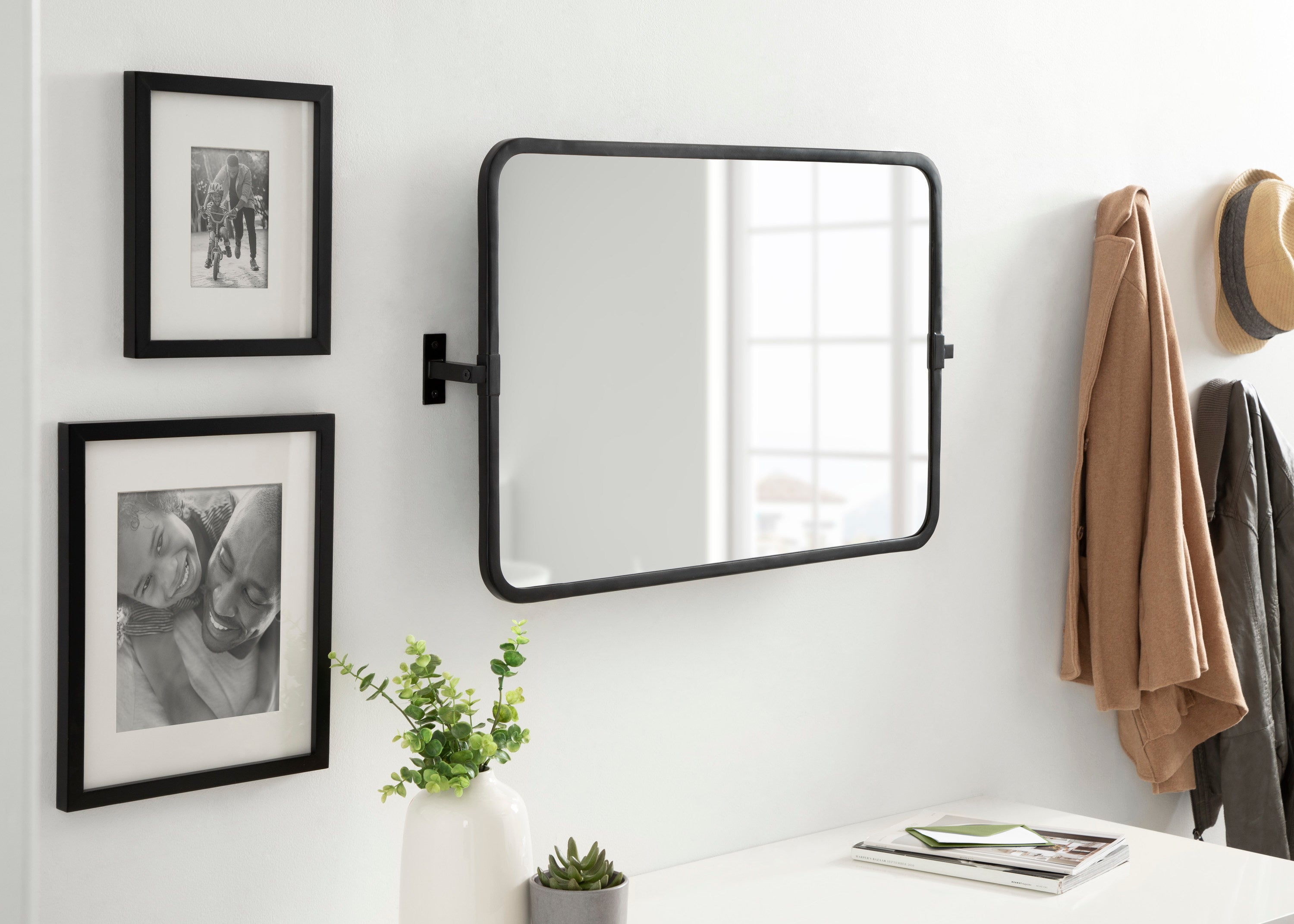 The Elijah pivot mirror is a unique and robust decor piece to bring light and dimension to your space! Featuring an adjustable, rotating design within two brackets, this wall mirror captures the light just right in any room. Its sleek finish on its robust iron frame is a sophisticated yet transitional look that fits into any room of the home! Hang it vertically or horizontally and introduce it to your living room, bedroom, or bathroom to highlight the depth and vibrancy of your favorite decor area.