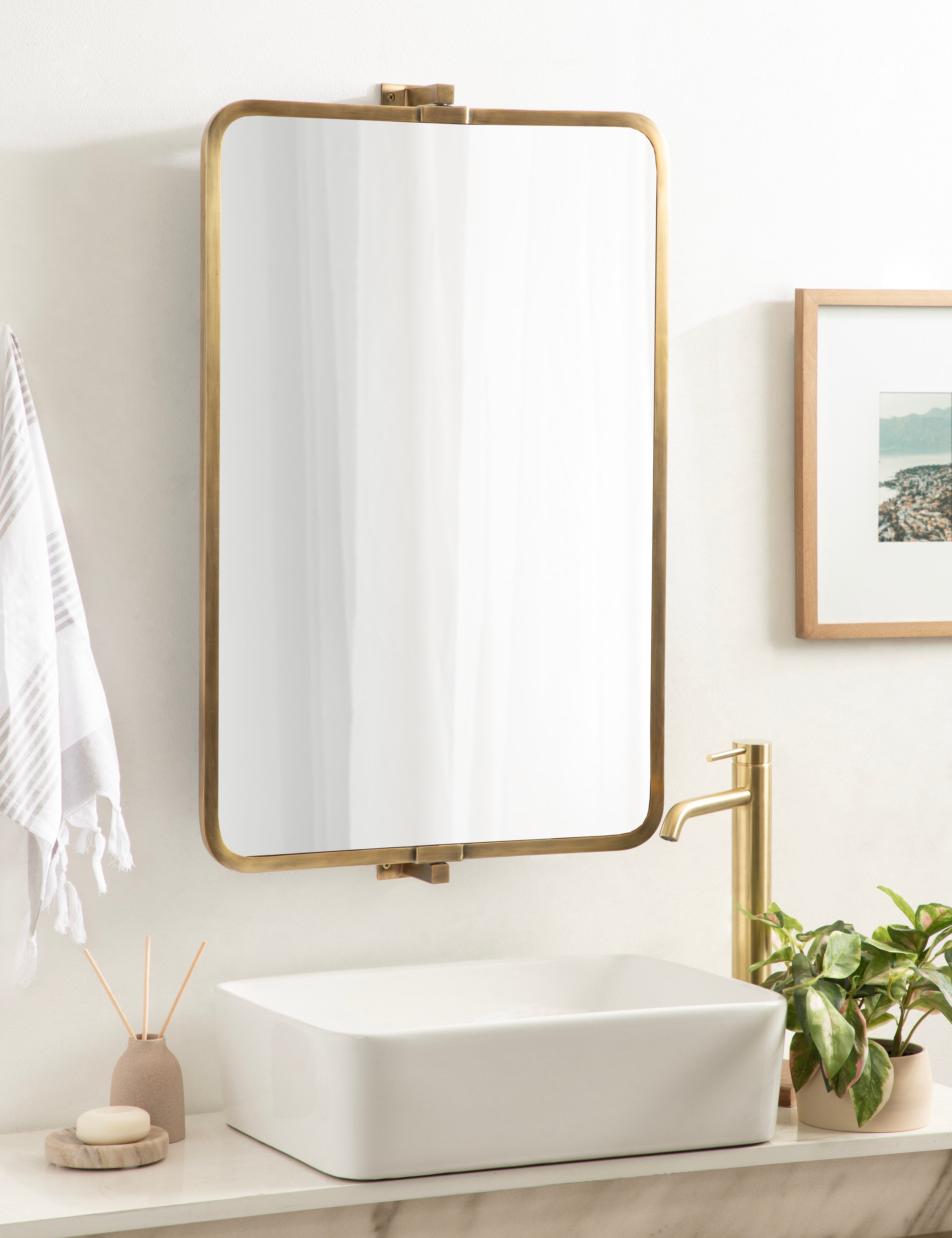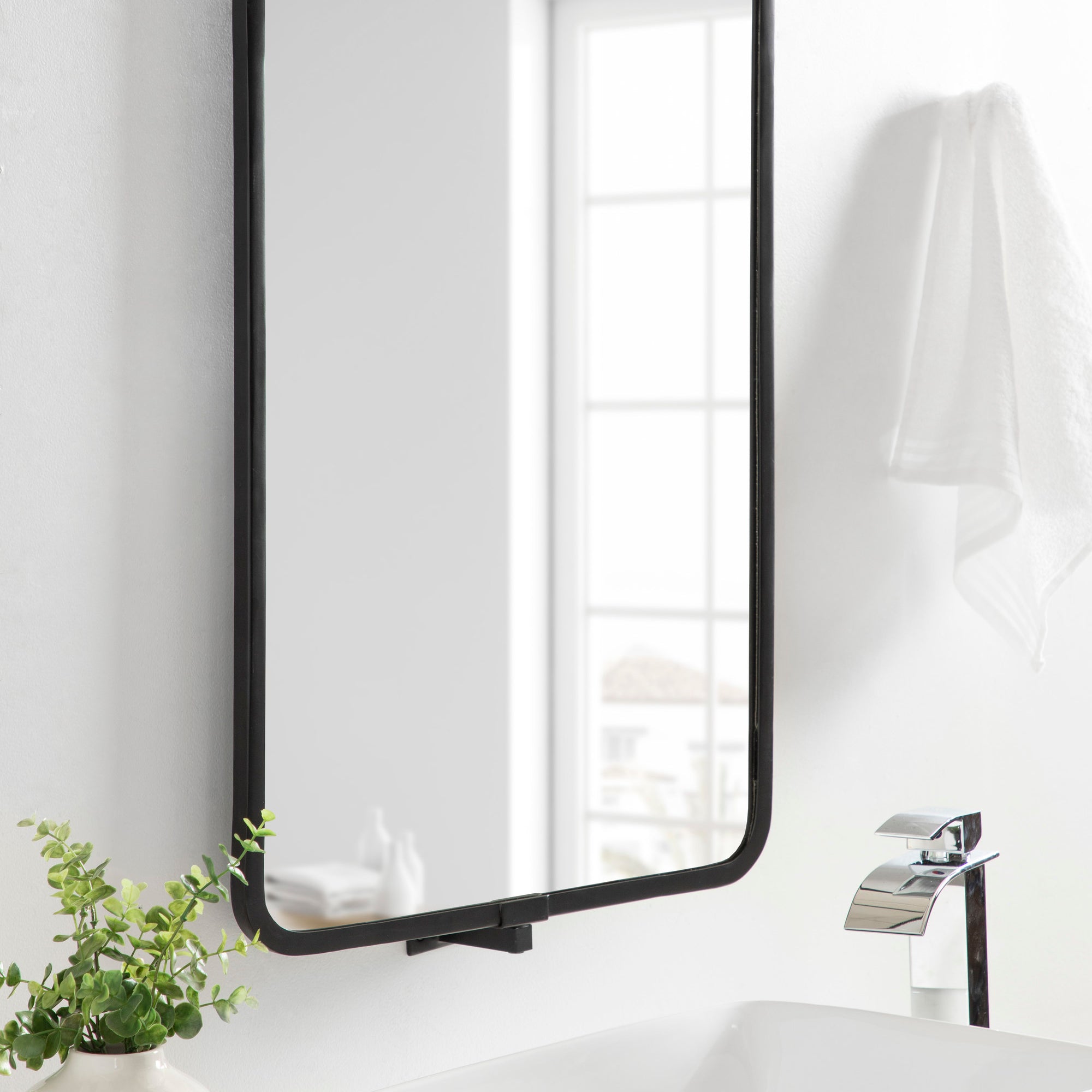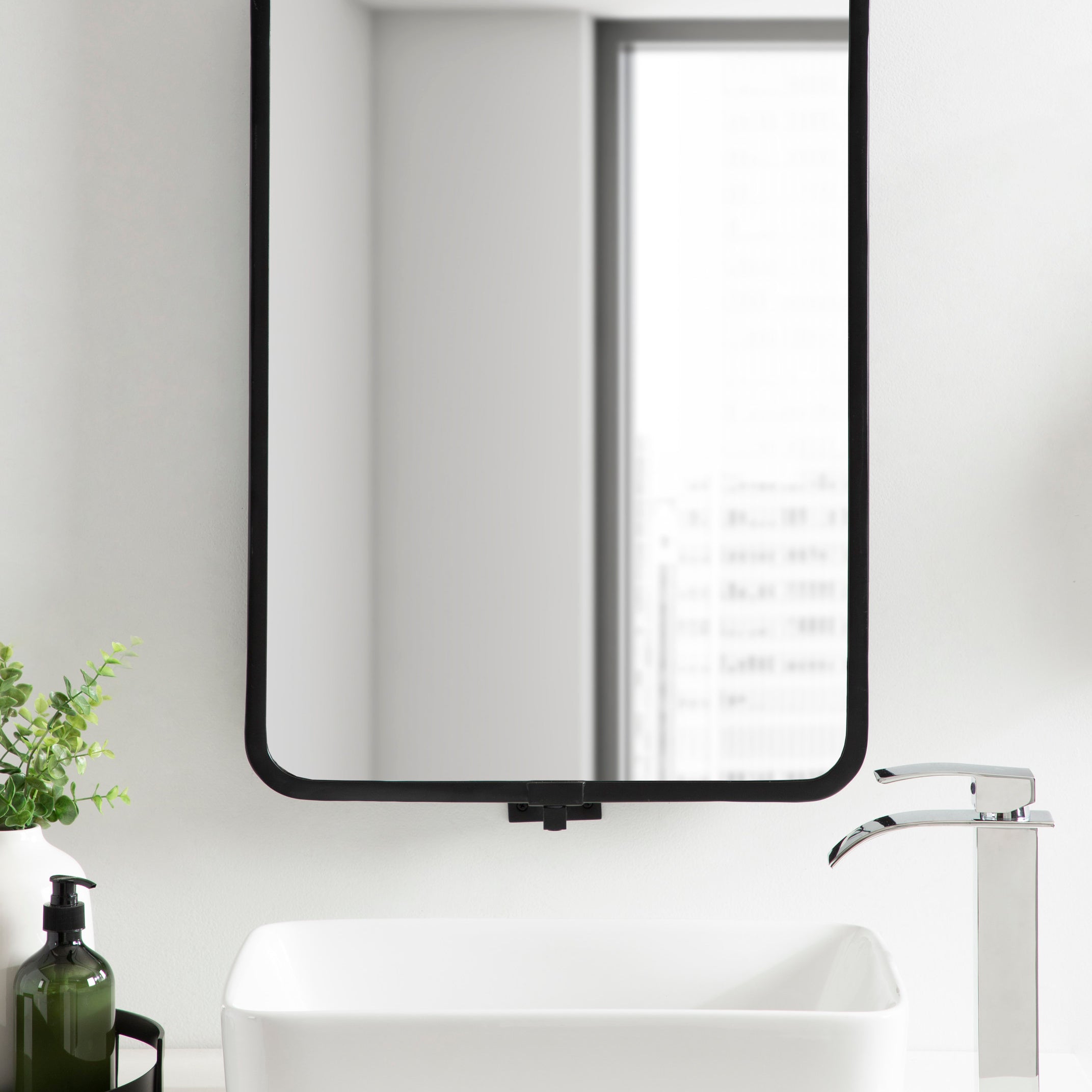 The Elijah pivot mirror is a unique and robust decor piece to bring light and dimension to your space! Featuring an adjustable, rotating design within two brackets, this wall mirror captures the light just right in any room. Its sleek finish on its robust iron frame is a sophisticated yet transitional look that fits into any room of the home! Hang it vertically or horizontally and introduce it to your living room, bedroom, or bathroom to highlight the depth and vibrancy of your favorite decor area.