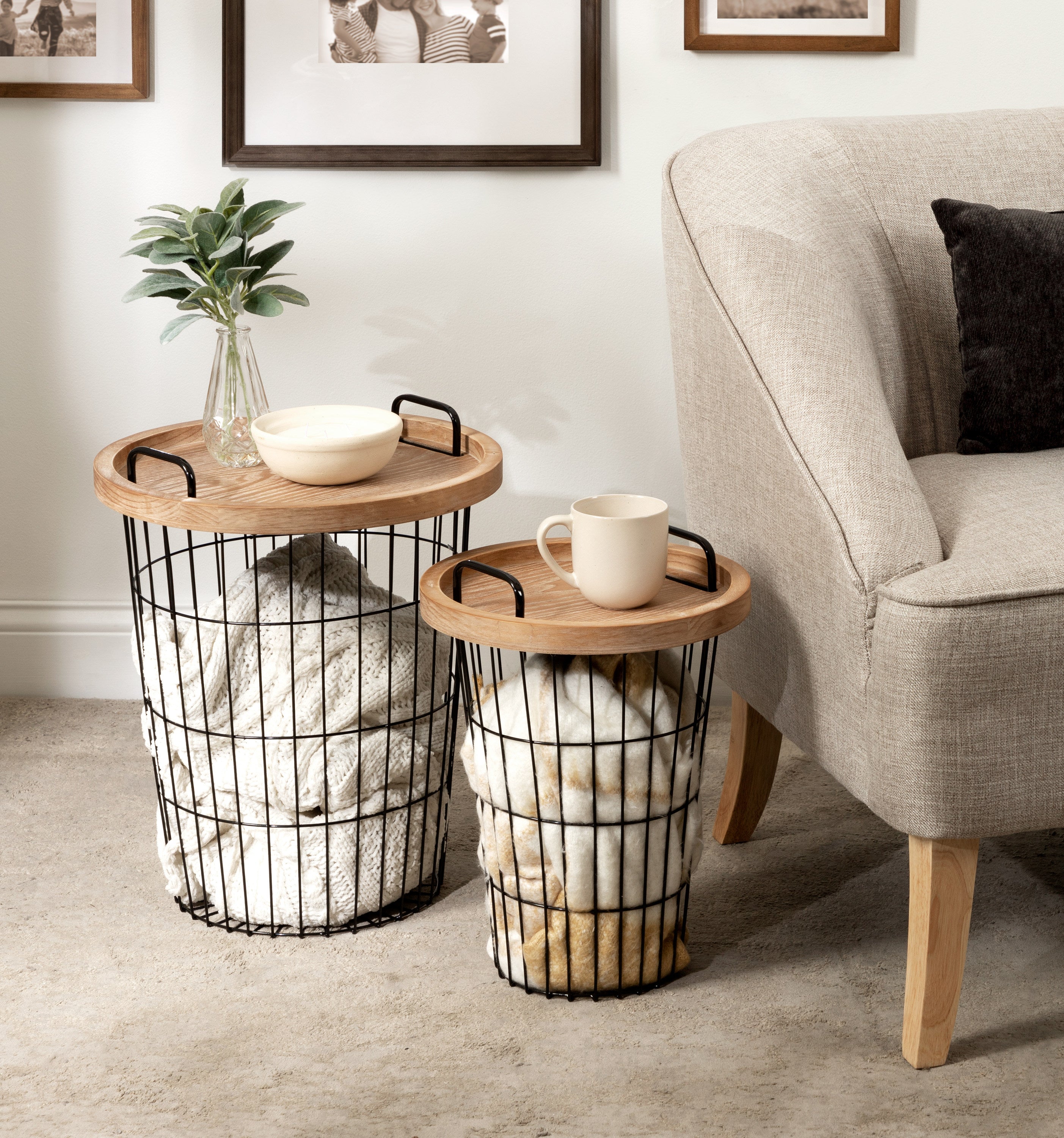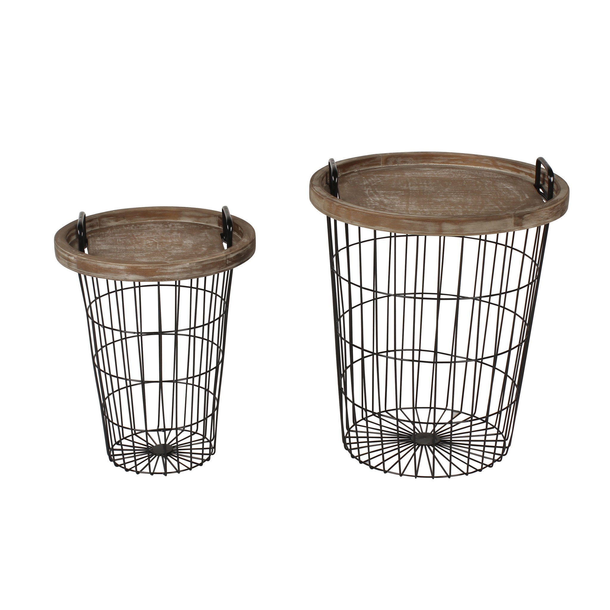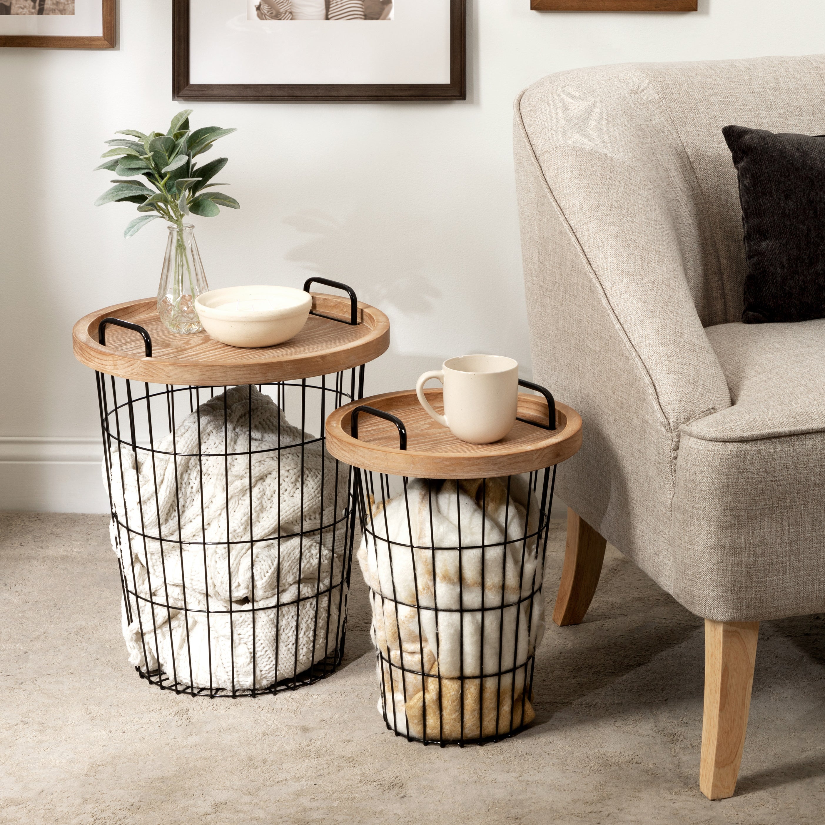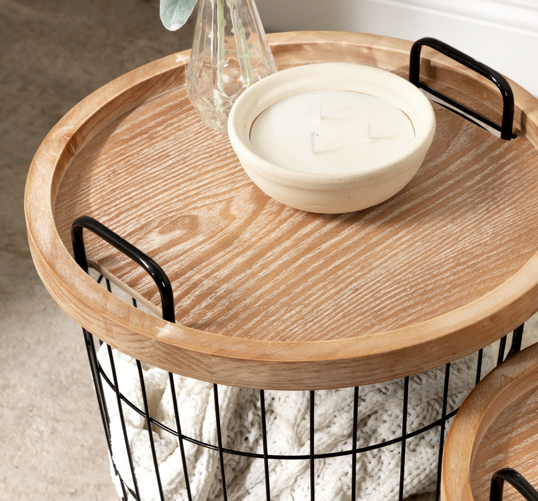 Tenby Nesting Metal and Wood Tray Basket End Tables