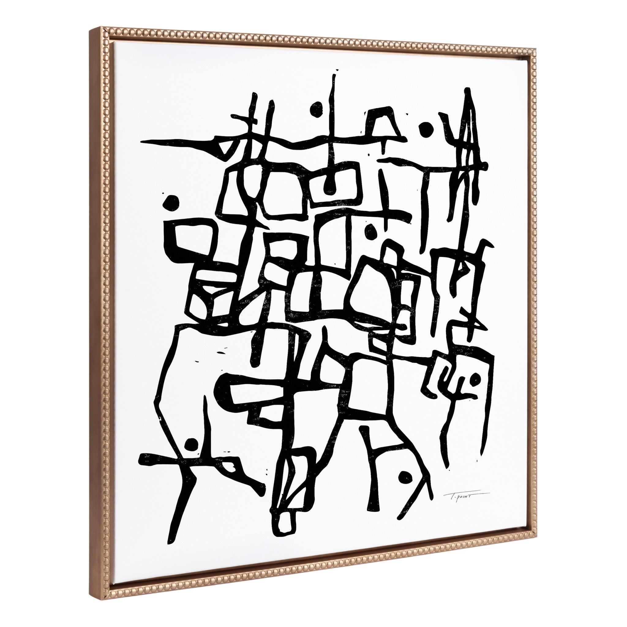 Sylvie Beaded Organic Lines Black and White Abstract Framed Canvas by Statement Goods