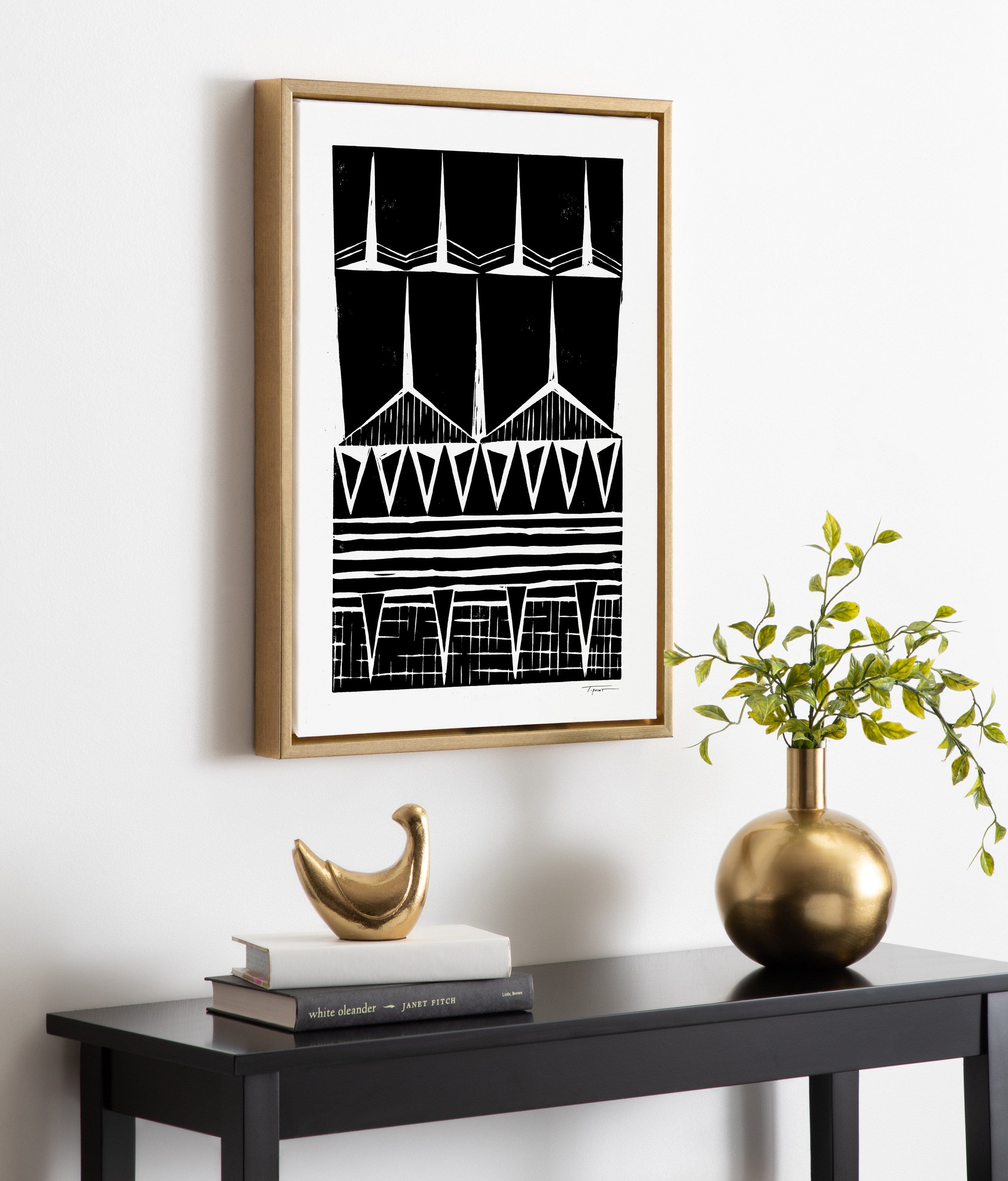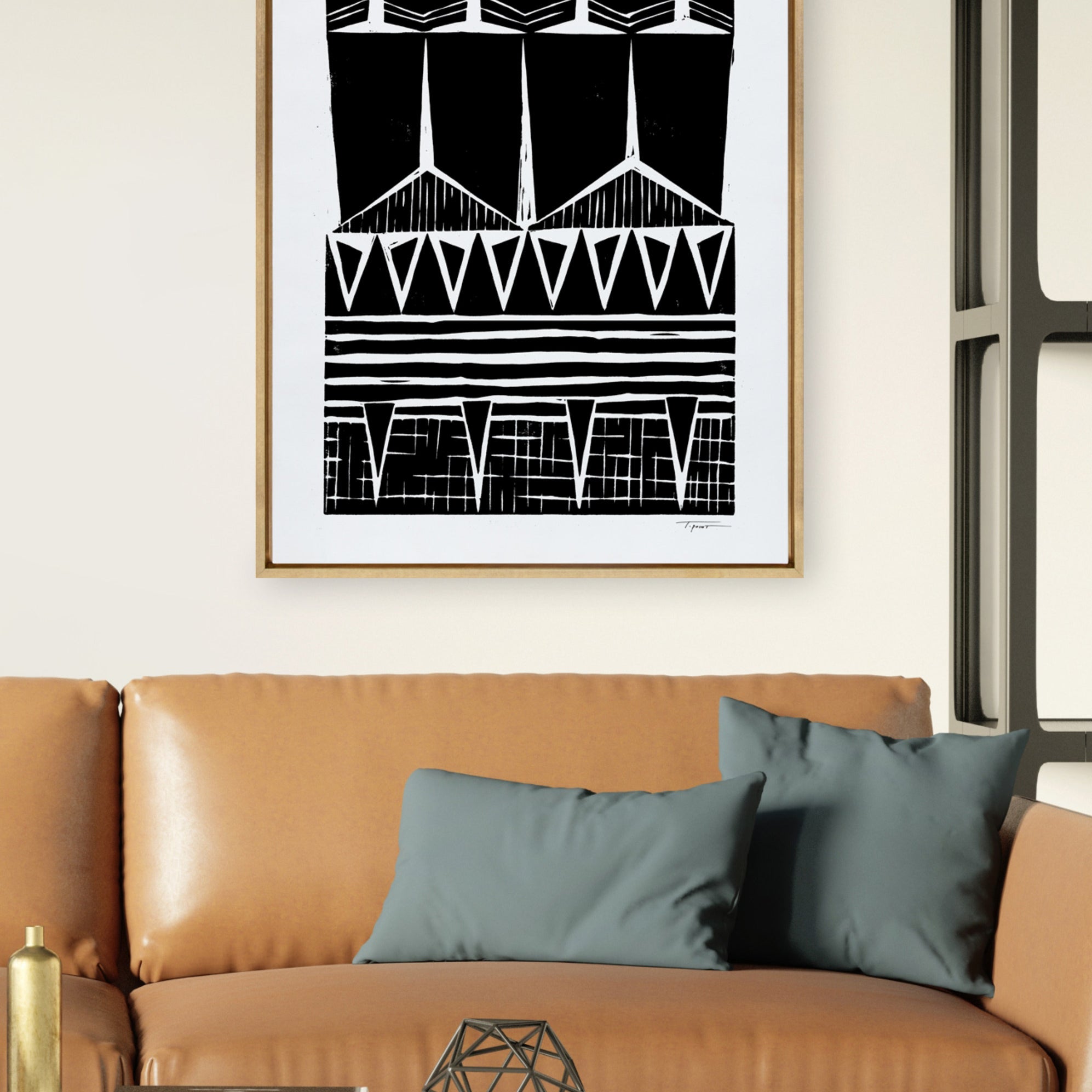 Sylvie Modern Tribal Block Print Framed Canvas by Statement Goods