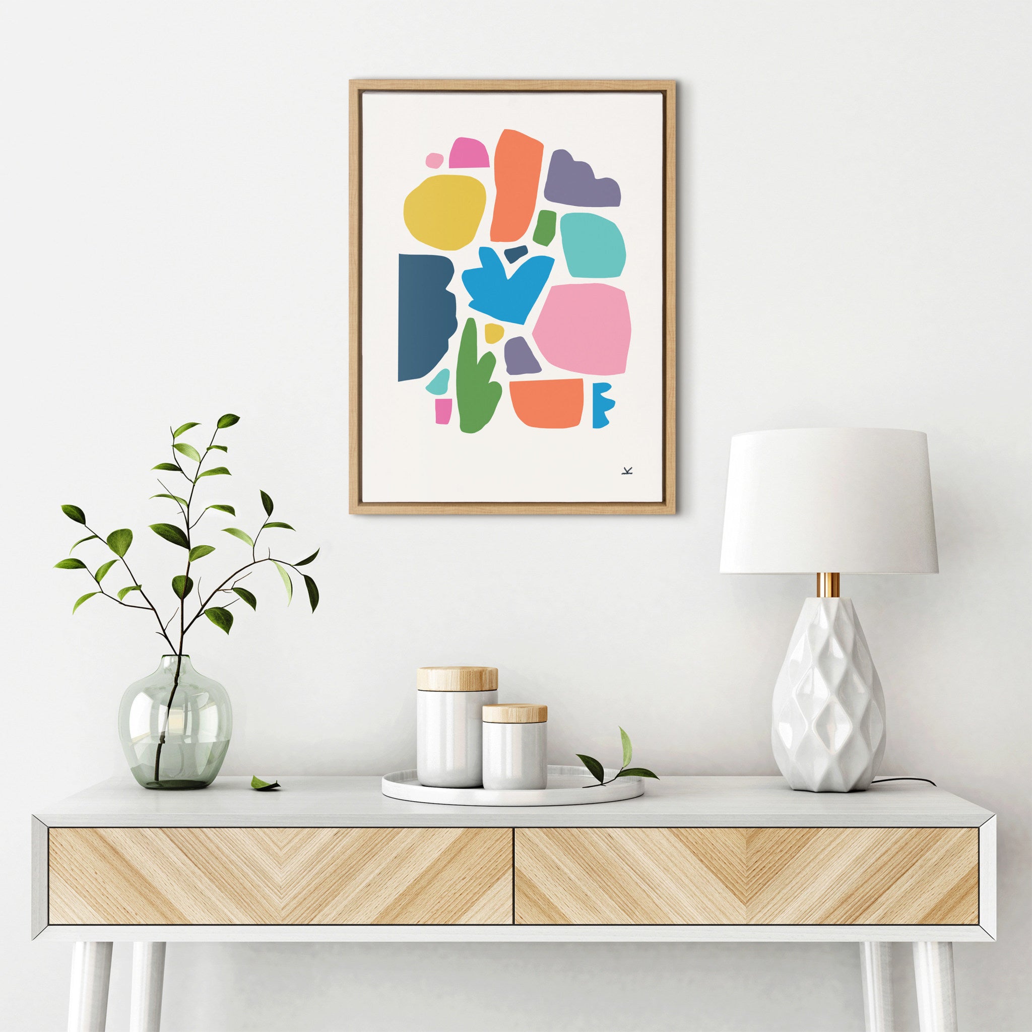 This art piece brings a quirky yet tasteful style to your wall with its vibrant color palette. Printed and framed in the USA in Waunakee, Wisconsin, this framed floating canvas art will be a pleasure to look at every day in your living room, bedroom, office, or any room in the home. This art print also makes an excellent gift for birthdays, holidays, or house-warming parties. Printed on gallery-wrapped canvas and framed with a lightweight polystyrene frame, this wall art has two hangers already attached to the MDF back for easy wall display.