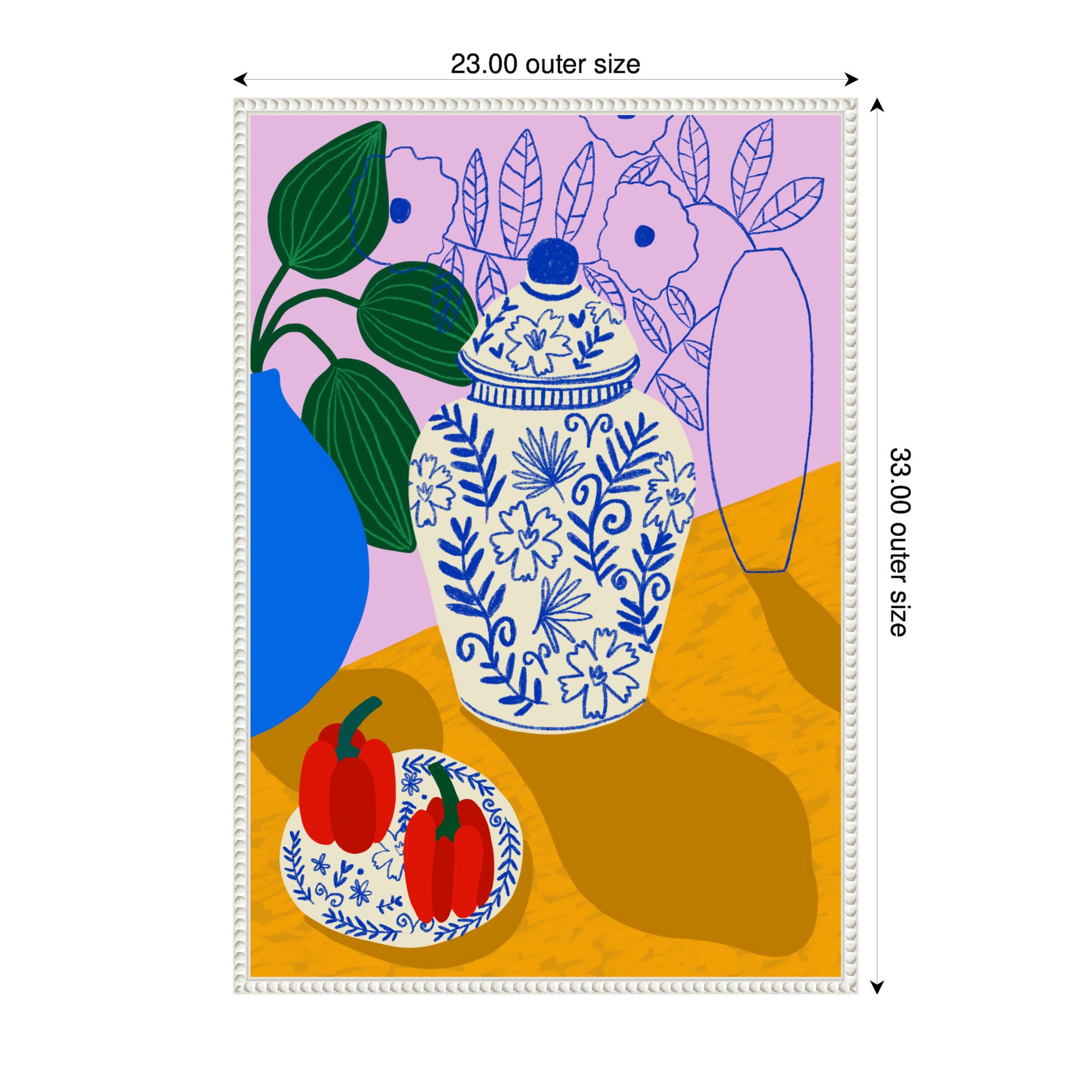 • Porcelain and Peppers is giclee printed using fade-resistant inks, ensuring every detail comes to life in rich, lasting color