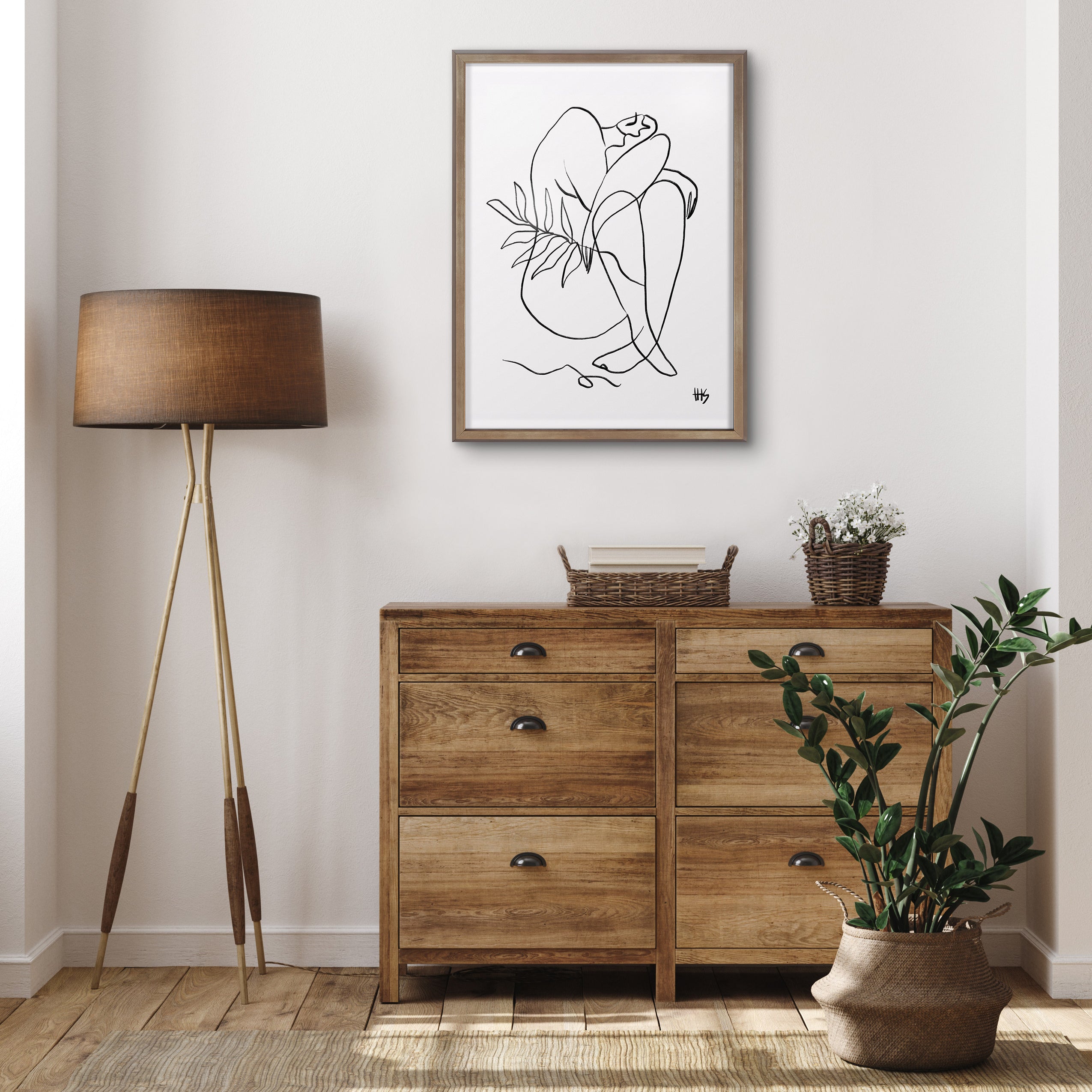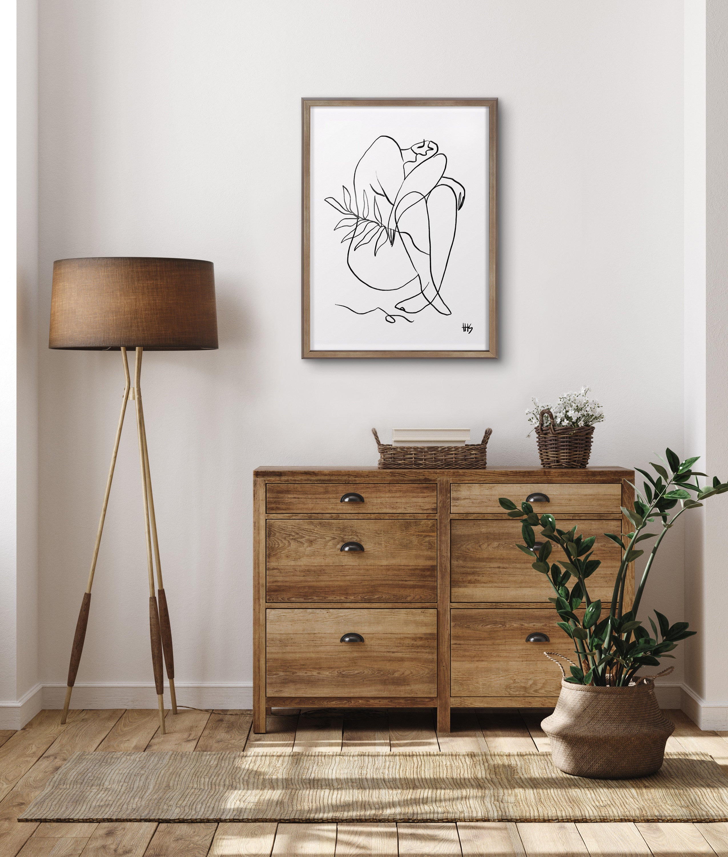 Create a sophisticated wall gallery that shows modern minimalist aesthetics starting with this avant-garde line drawing. Printed and framed in the USA in Waunakee, Wisconsin, this printed glass art will be a pleasure to look at every day in your living room, bedroom, office, or any room in the home. This print also makes an excellent gift for a birthday, holiday, or house-warming party.