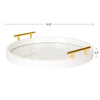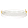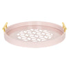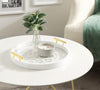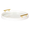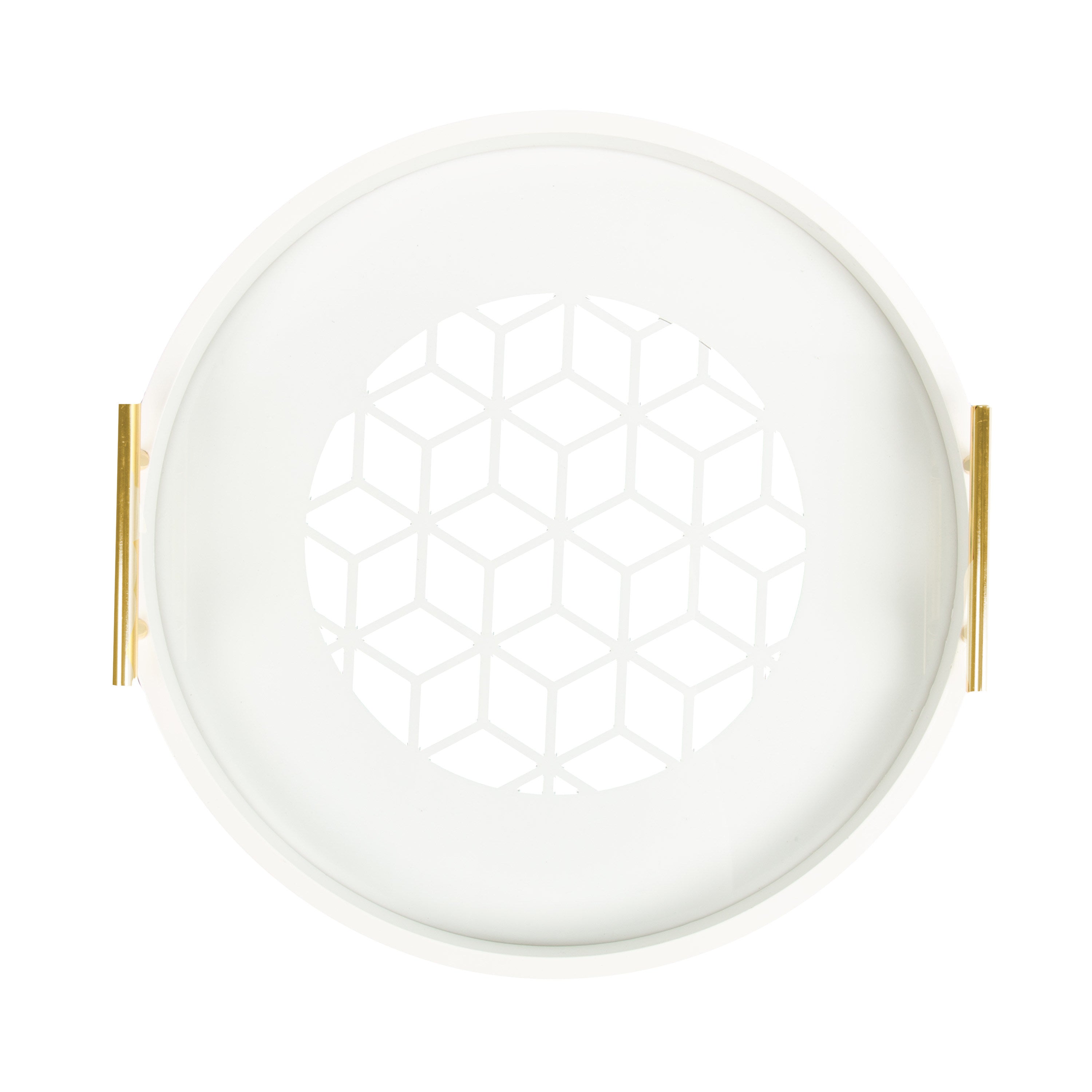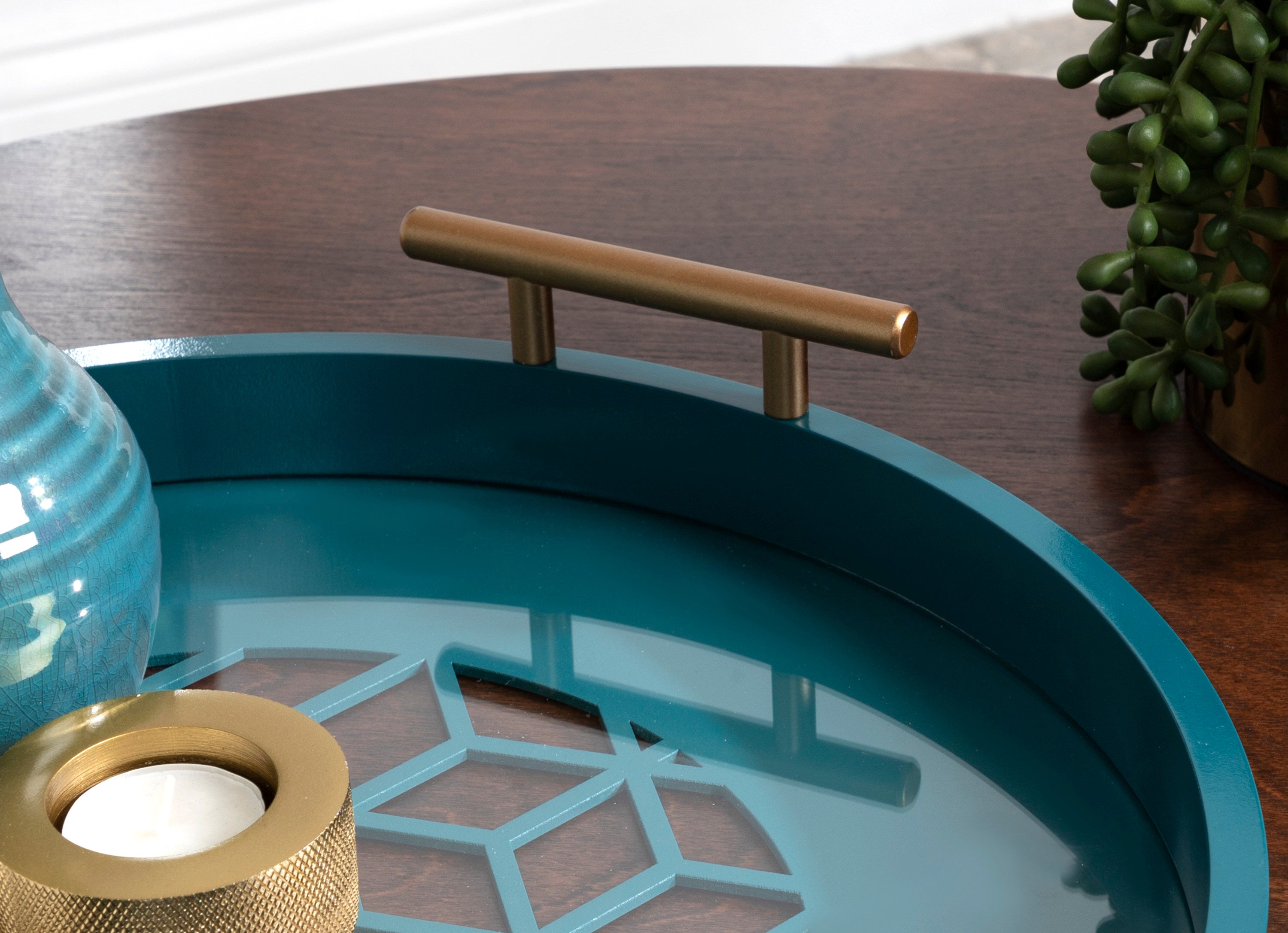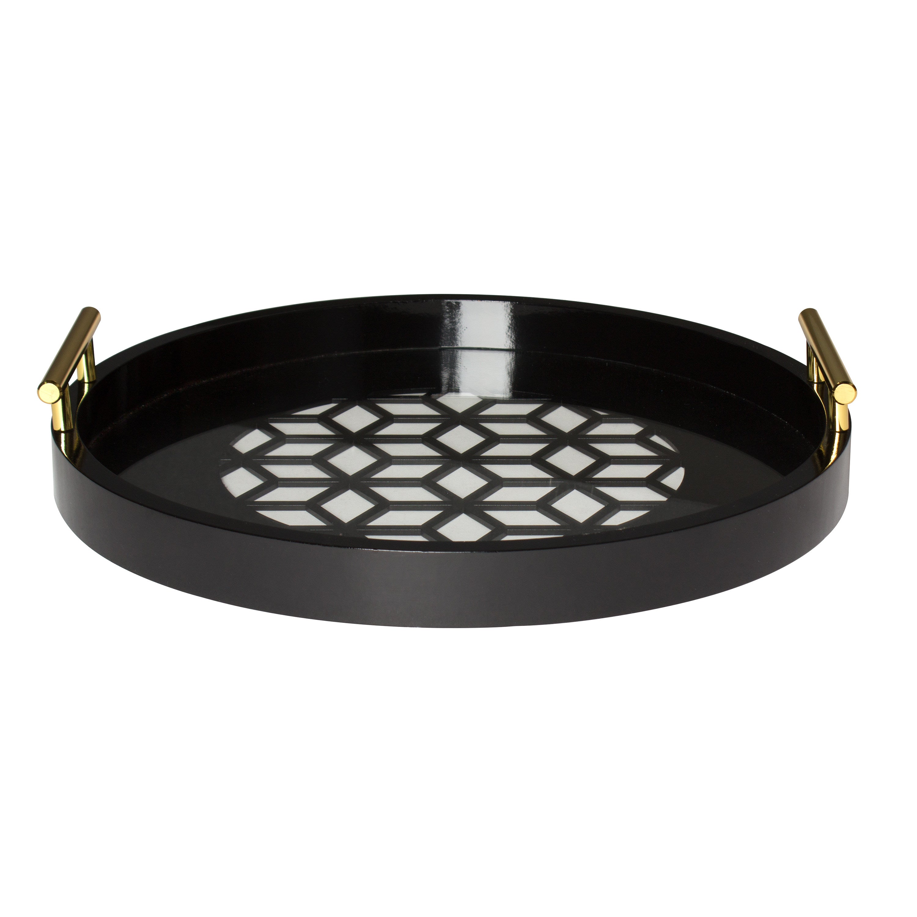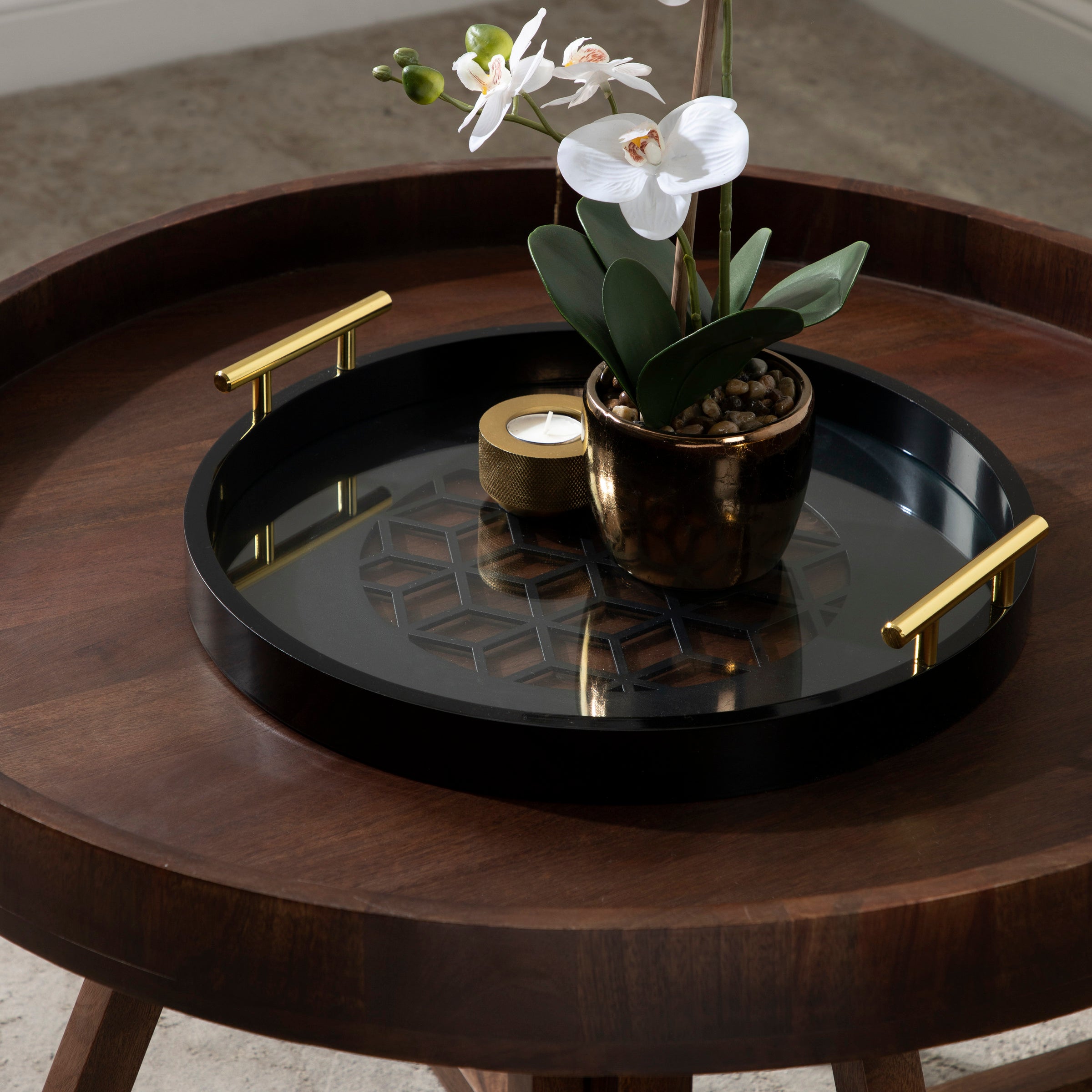 A circular, wooden tray is one of those accent pieces that are not only handy and looks fantastic on your coffee table or ottoman. The elegant look of the Caspen round tray creates fashionable function in an ingenious design. The subtle geometric cut of the wooden base adds a bit of ornate interest, while the glass that covers it ensures a smooth surface for placing everything from drinks to perfumes.