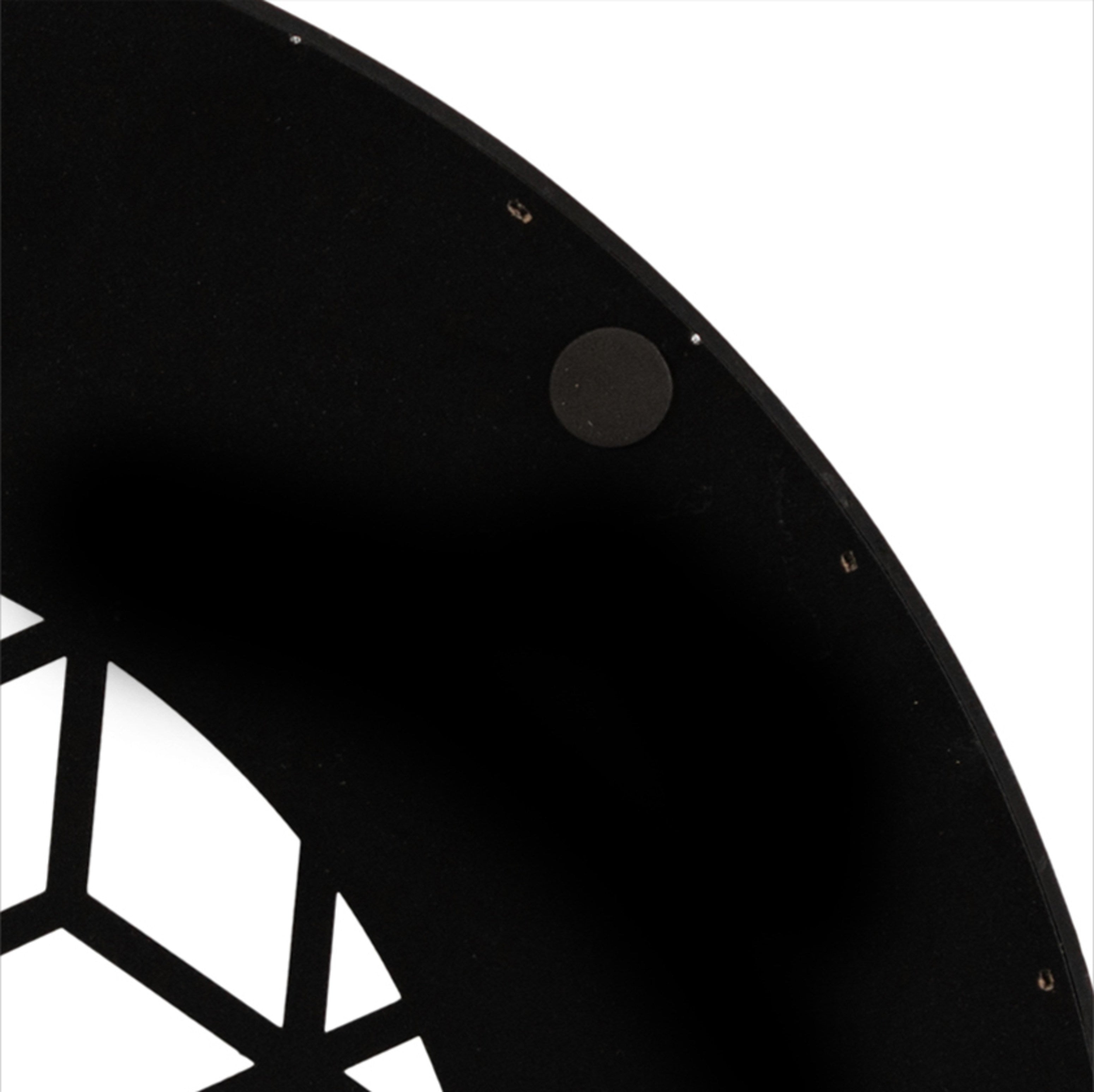 - Constructed of a durable MDF wood with a glass base over patterned wooden cut out bottom