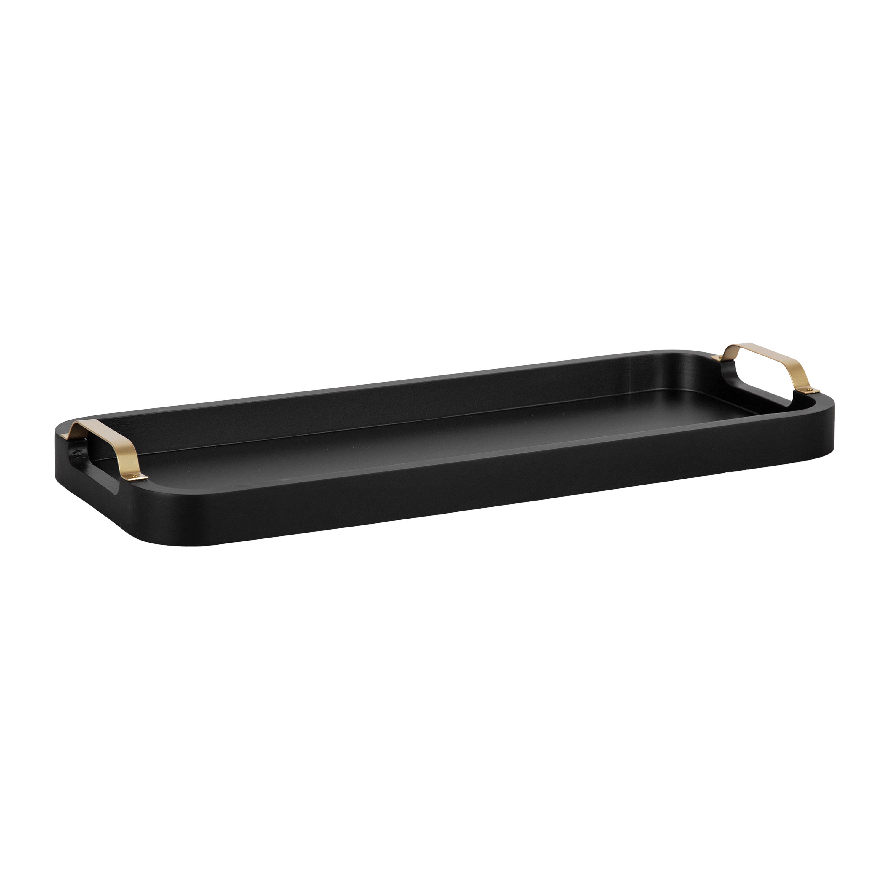 Bring transitional style into your home with this charming narrow wooden tray with metal handles. Place this narrow tray on your entrance console table as an accent tray to hold your keys and change as you come and go. This rectangle tray can also be used as a decorative accent on an ottoman to hold your beverages or on your vanity for makeup organization. Constructed of resilient wooden material and sturdy metal handles, this tray is dependable to carry your cocktails from room to room! An update to the classic accent tray, the base has a raised edge to keep your items more secure when transporting them. From a dining room table to a living room ottoman, this narrow tray brings tremendous versatility anywhere throughout your home. Its skinny size makes it great for serving snacks on little plates or as a decorative display option. The useful tray also includes protective padding on the bottom to prevent scuffs or damage to your hard surfaces.