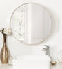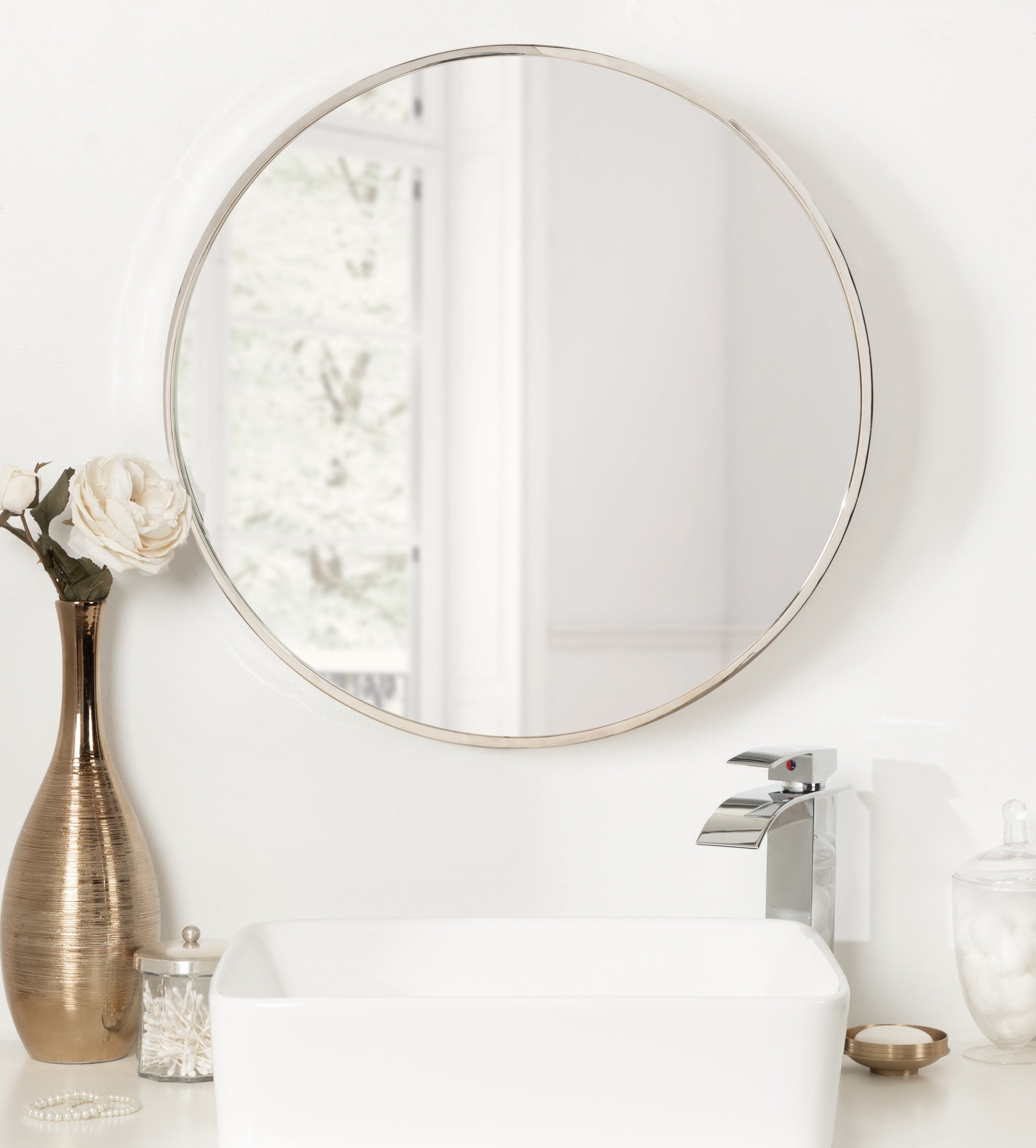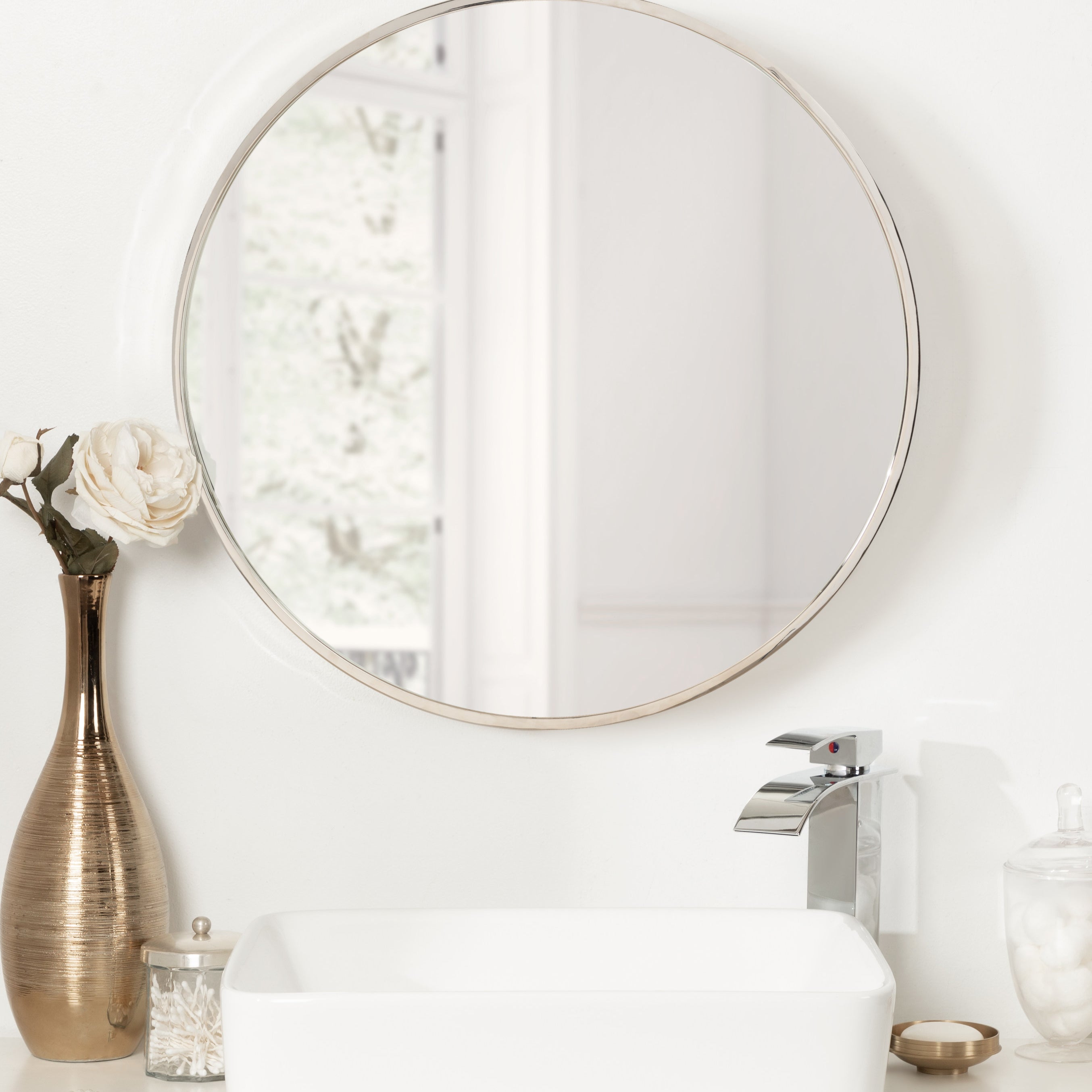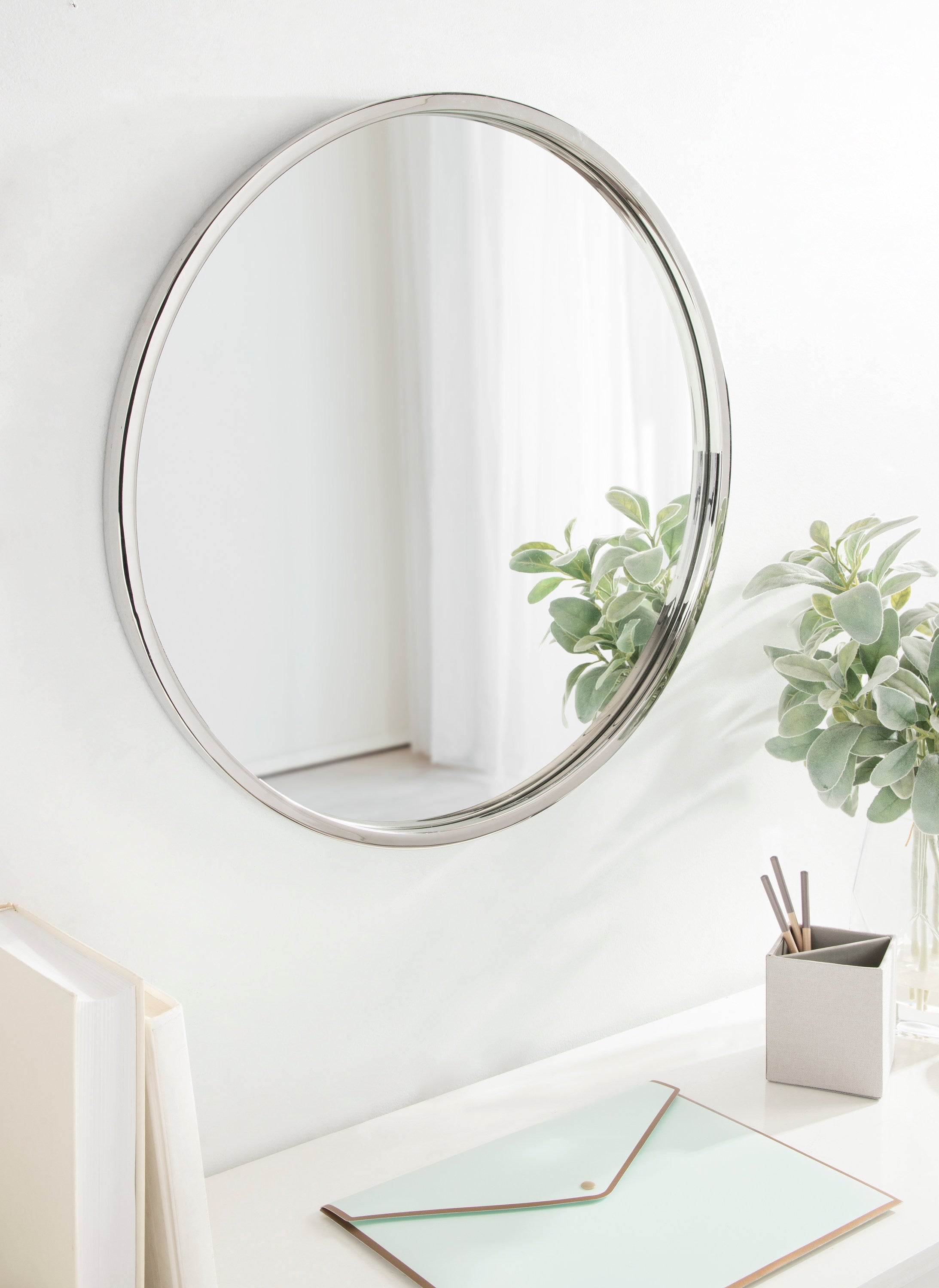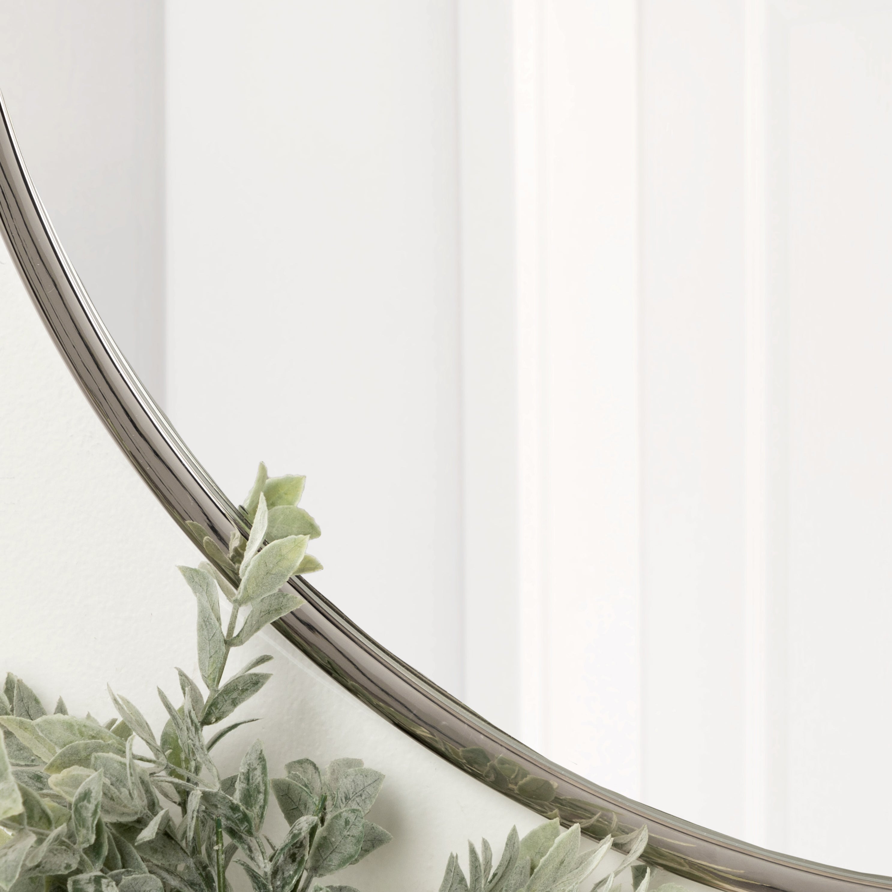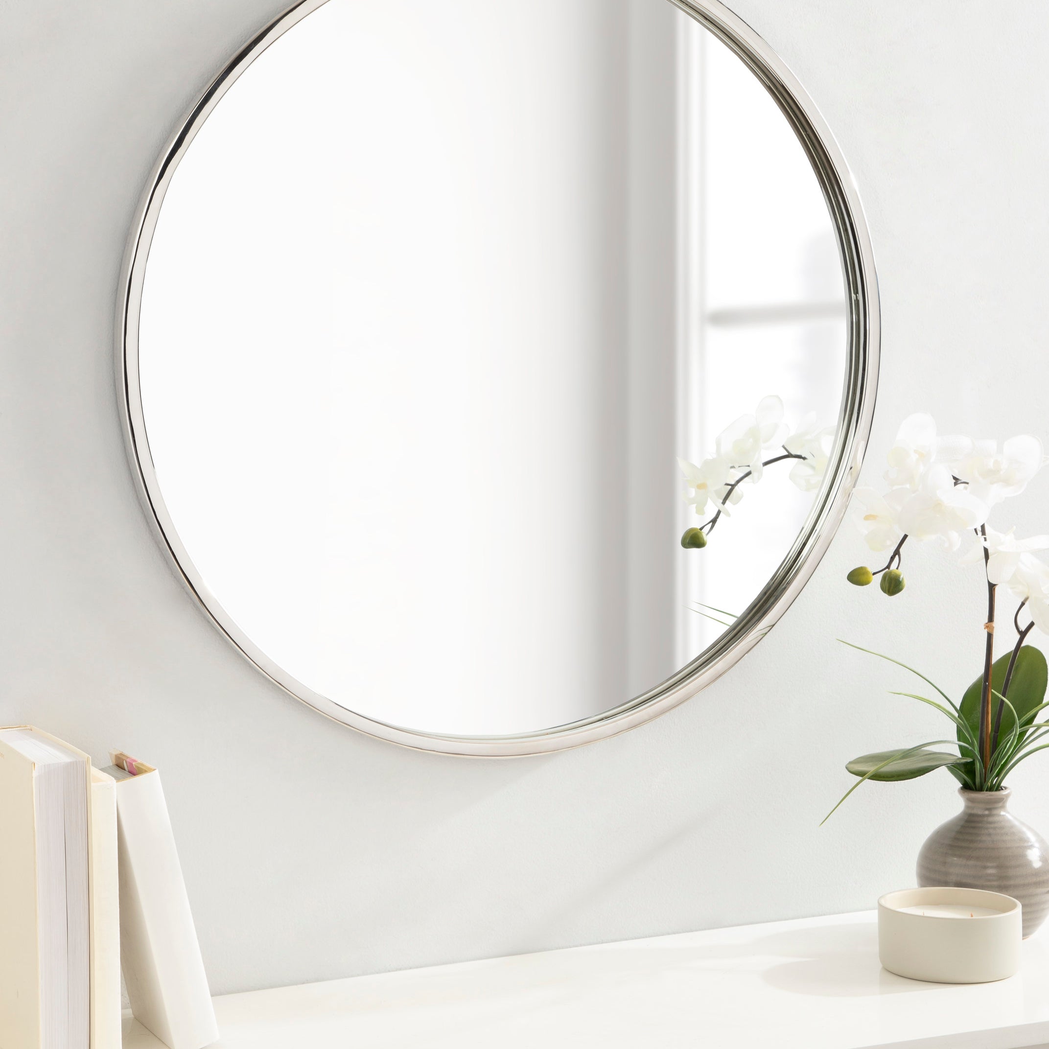 Create a show-stopping decor aesthetic by hanging the modern Rowla mirror! This round mirror offers a premium look with a stainless steel finish on an iron frame, creating an attractive focal point for any room of your home. Its large size is fantastic for enhancing the vibrancy of your space, and its unique style is excellent above a mantle, over your vanity, or paired with an entryway console. Wherever you decide to hang it, this sleek accent piece is sure to draw attention and turn heads.
