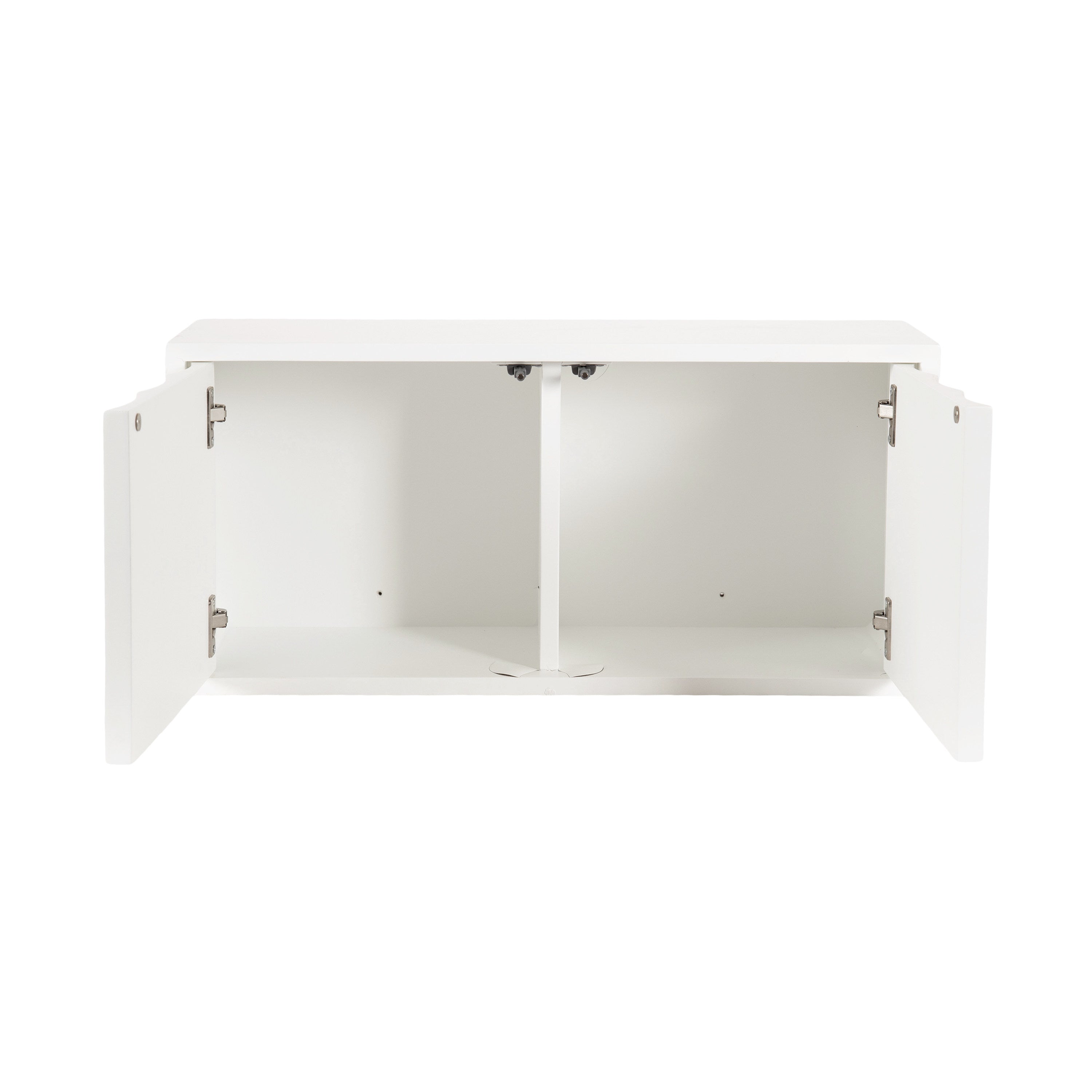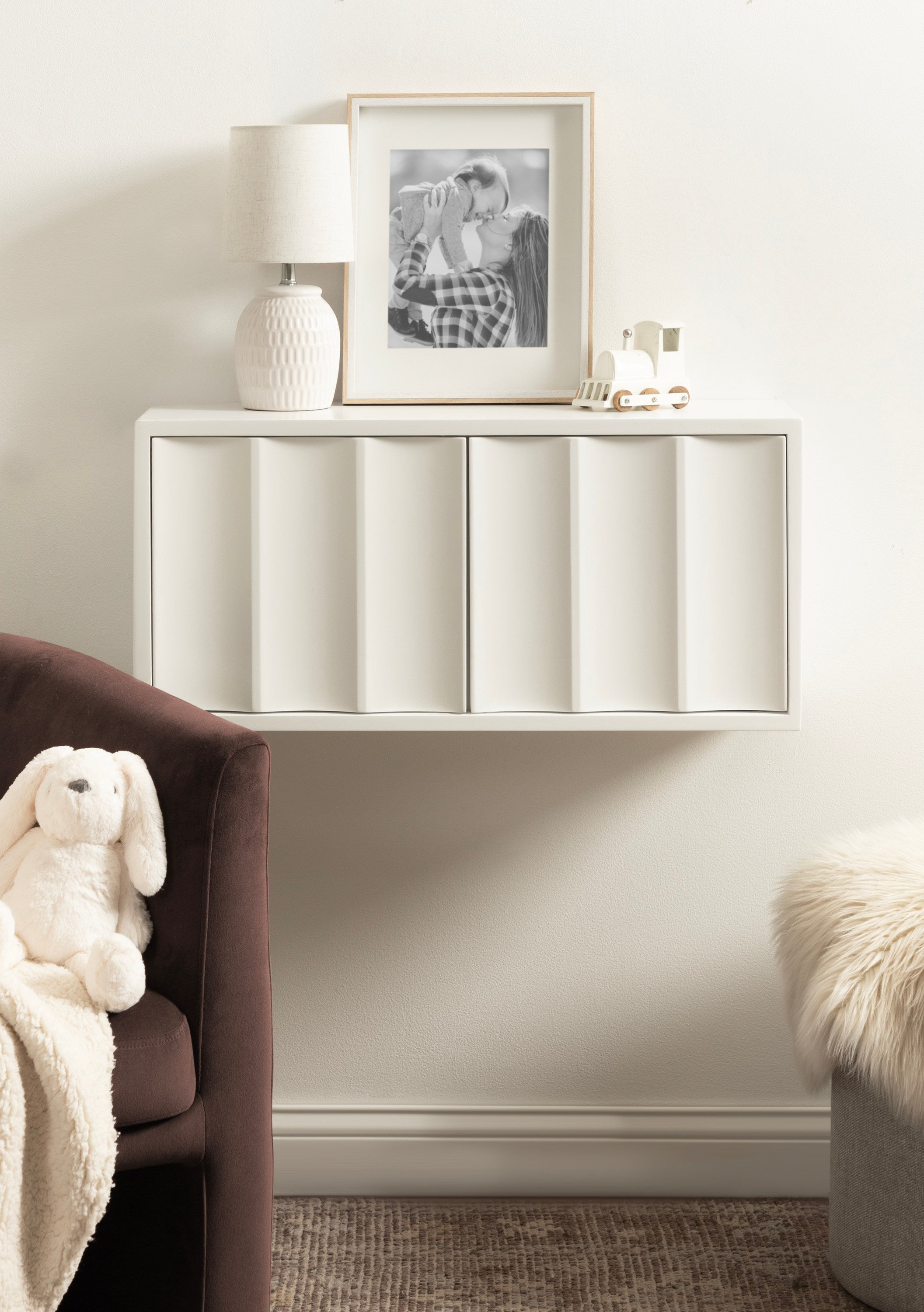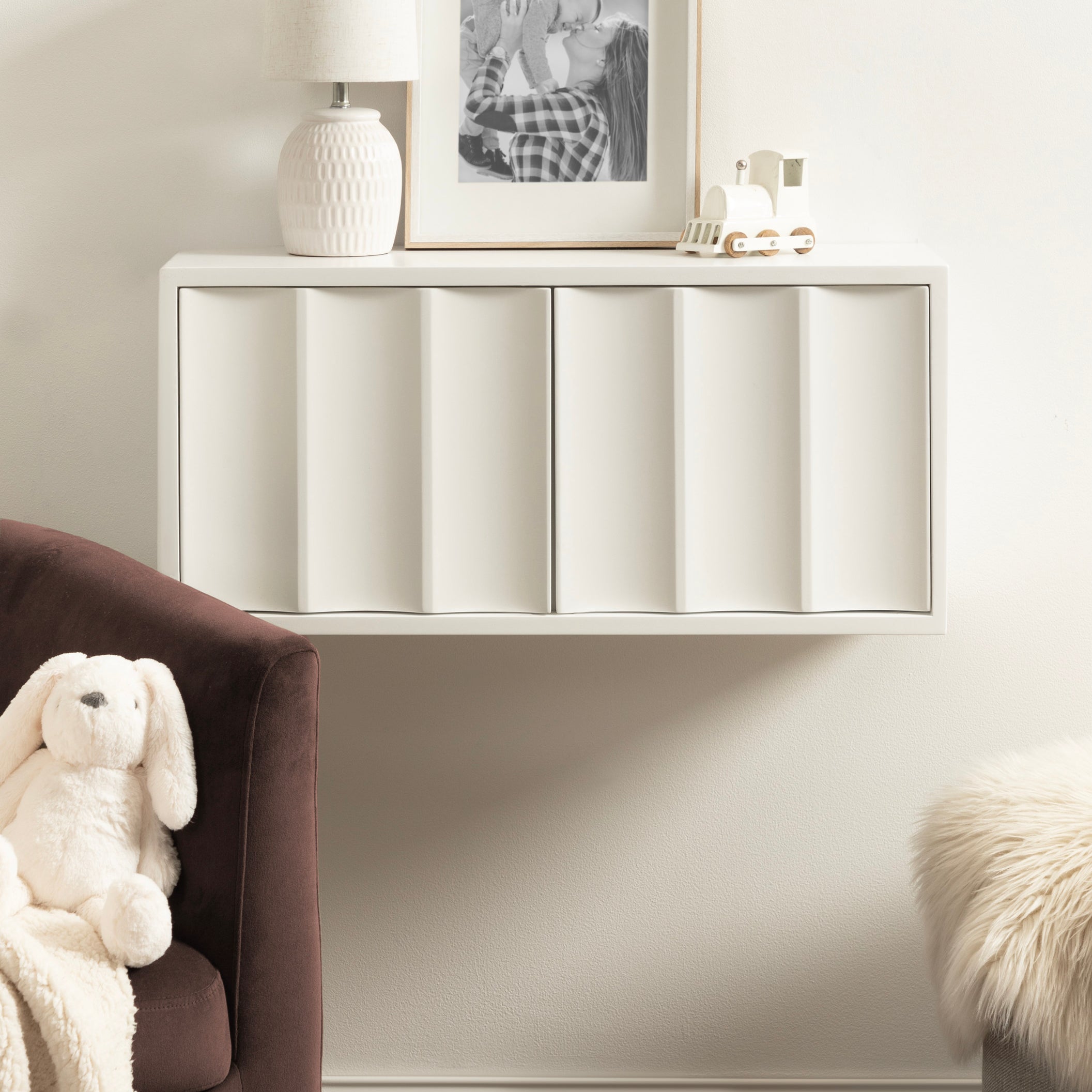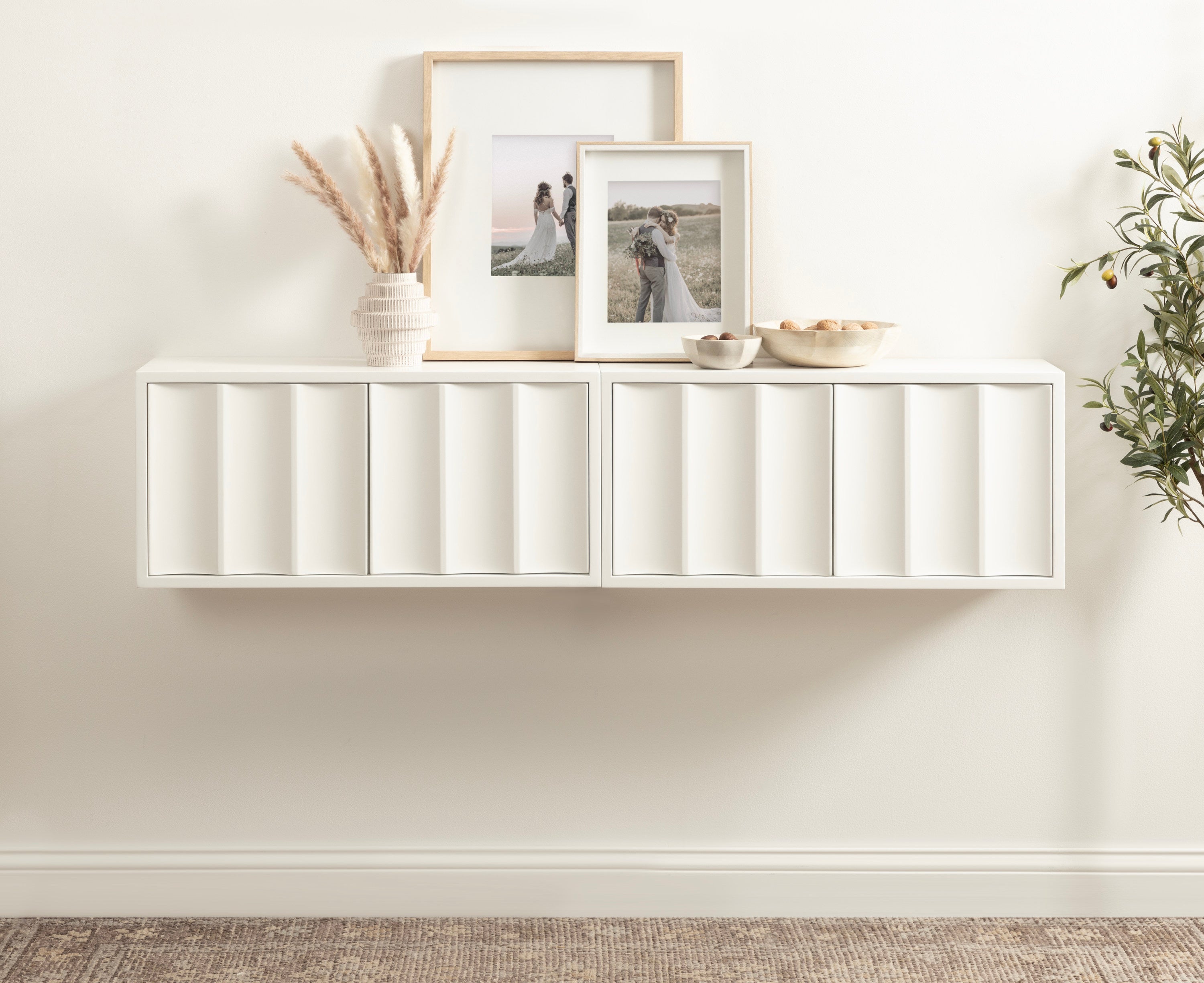 Store books, bathroom supplies, and more in a modern-inspired wall cabinet from Kate and Laurel. The Sartell cabinet is crafted from sturdy wooden material with a beautiful satin finish. Hide away important items with its cabinet doors that are both convenient and stylish. The face of the doors have a soft scalloped dimensionality to introduce more texture to your space. It also has push-close doors to keep your items secure inside the cabinet with no visible hardware on the door face. The Sartell cabinet is fantastic for housing your books, office supplies, and other household necessities, or you can use it as a functional space for small plates, mugs, and cups. Aside from a wall cabinet, you can also use this unit as a floating side table in your living room or a floating nightstand in your bedroom to take up less floor space. The wall-mounted cabinet hangs on your wall in a matter of seconds thanks to the wood cleat hanger that securely attaches to the back of the wooden frame.
