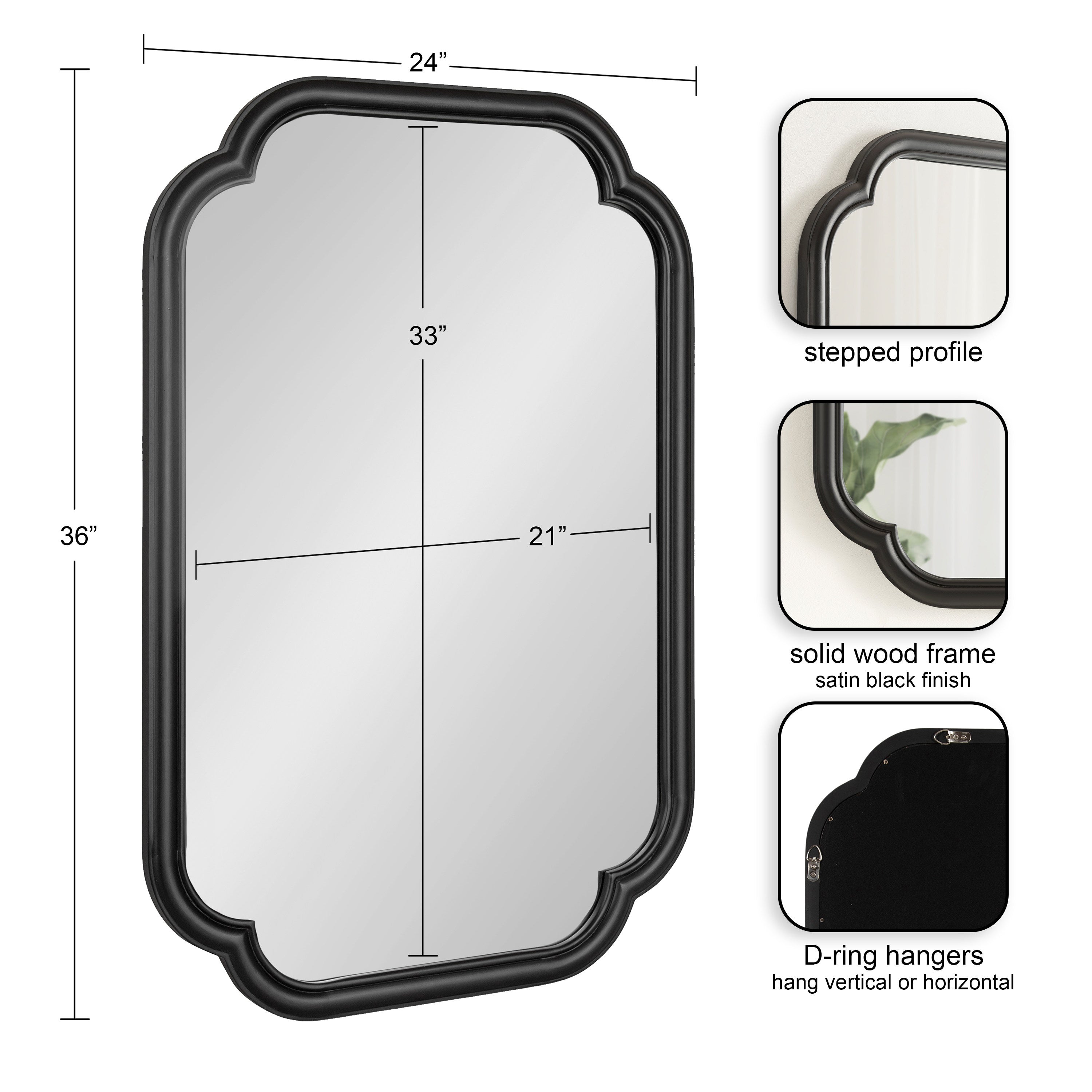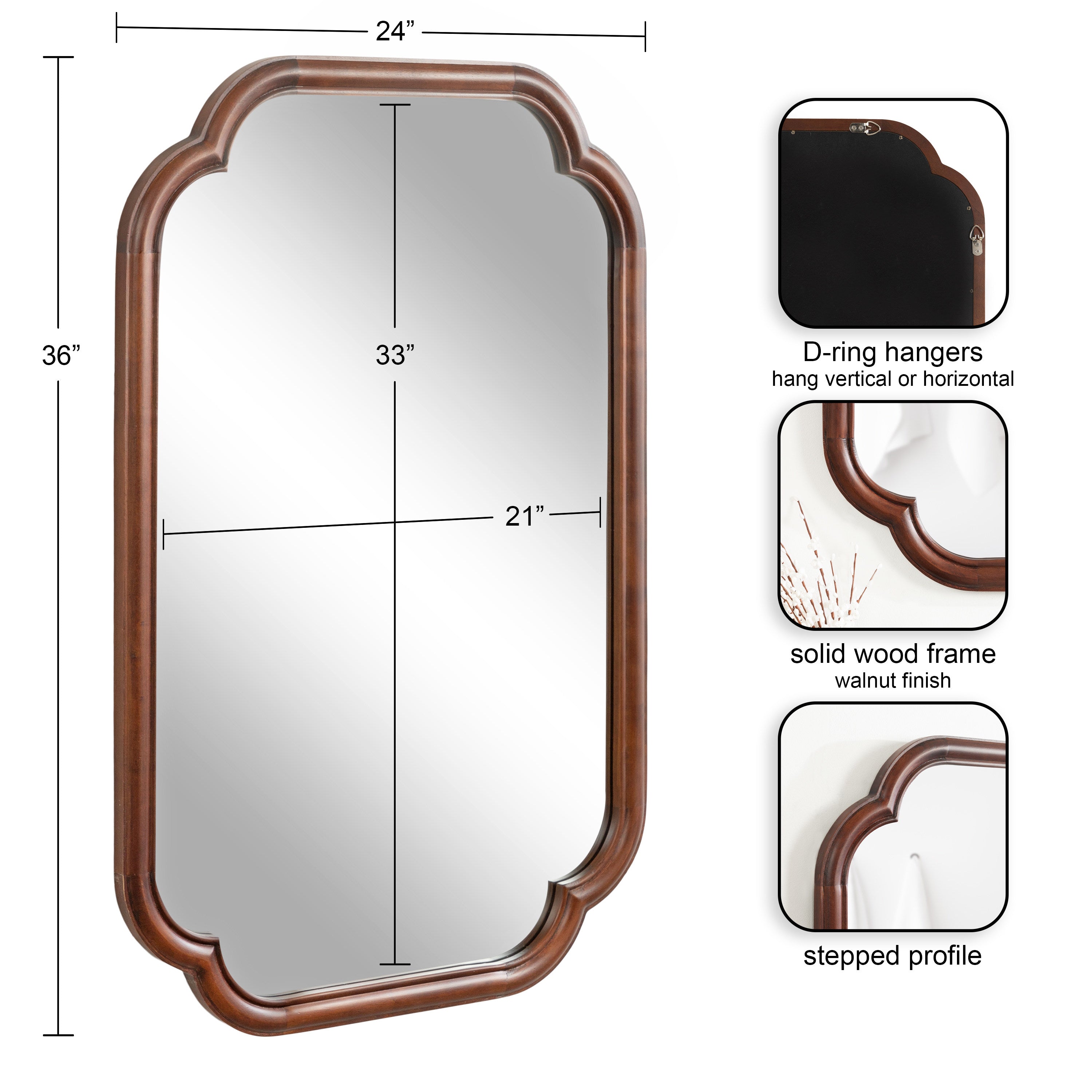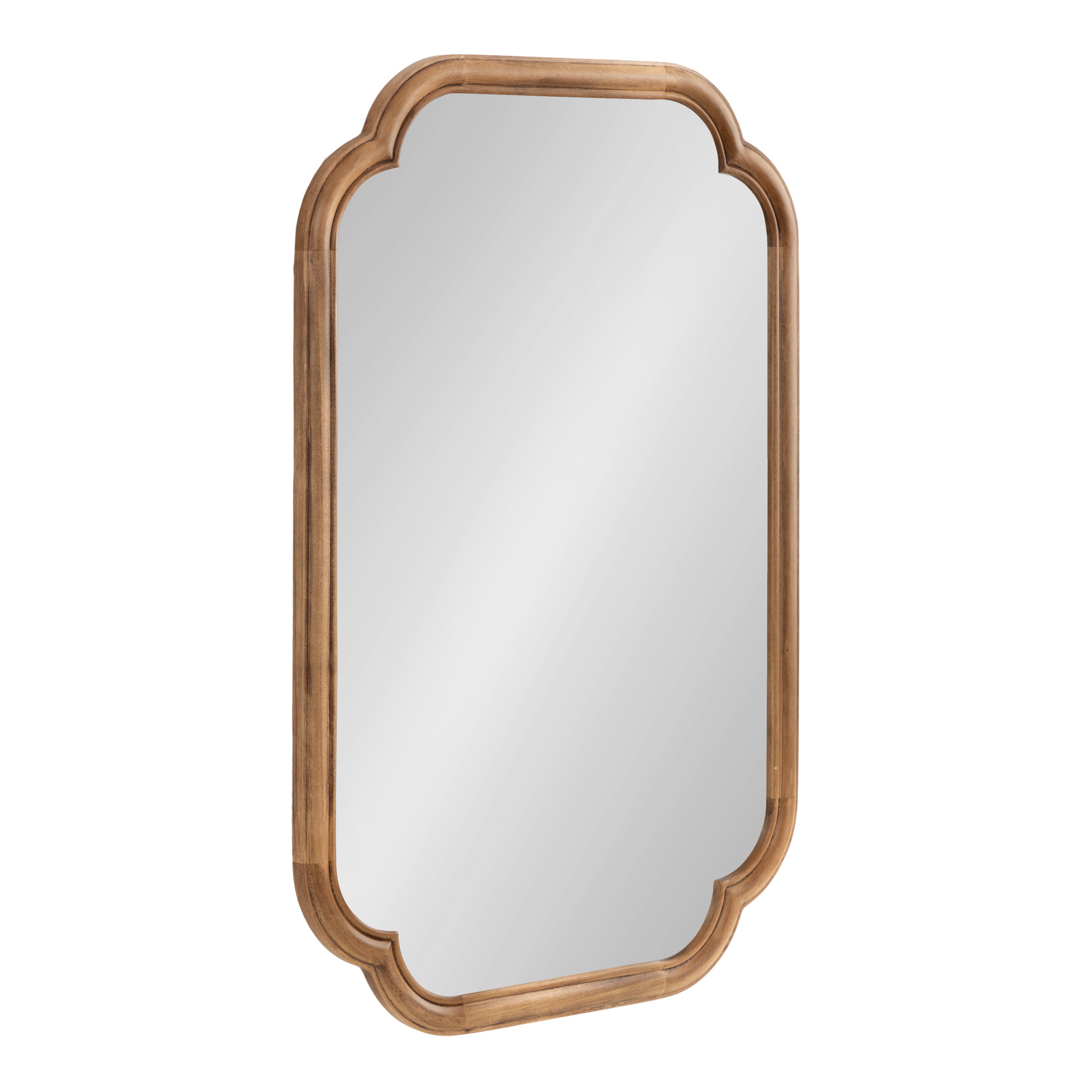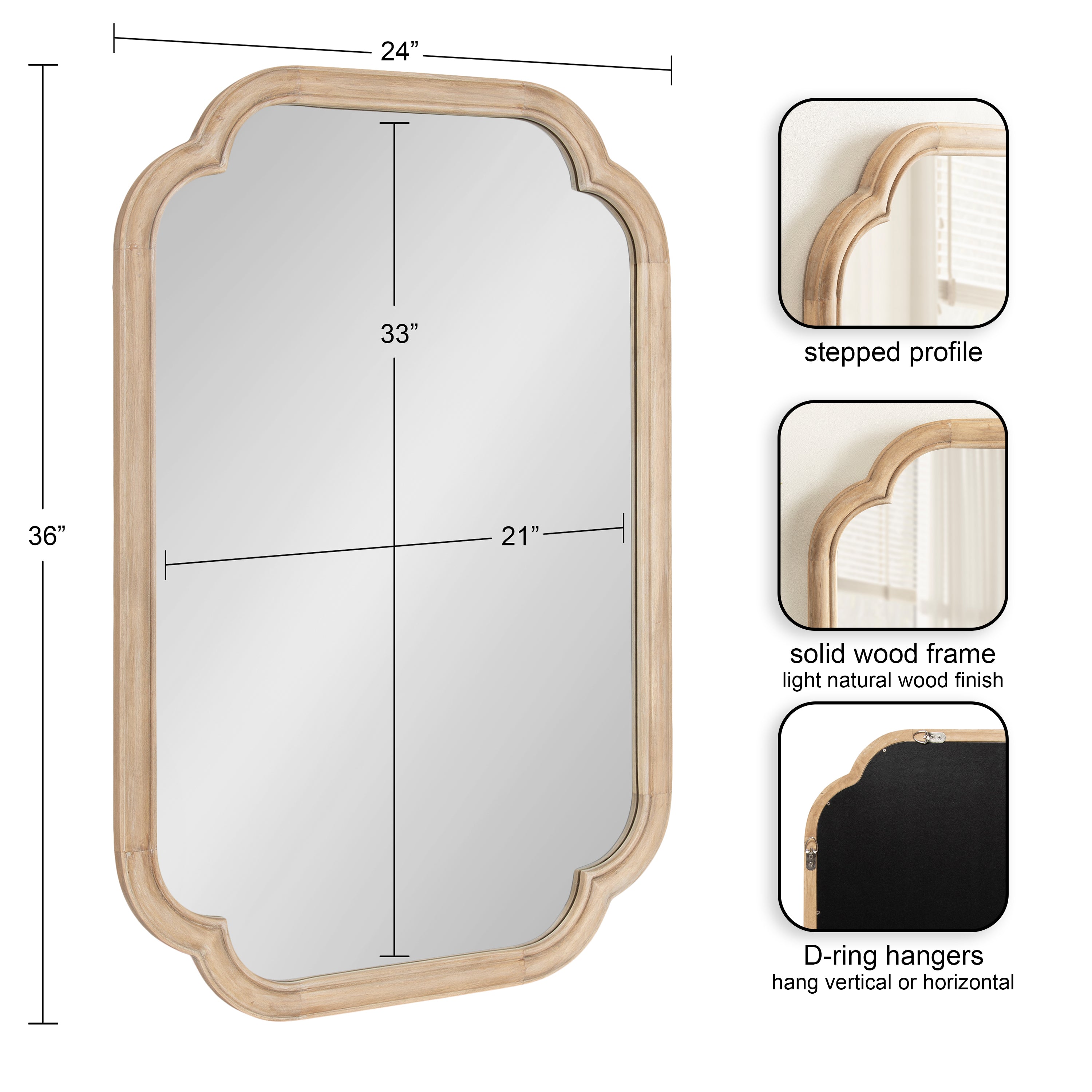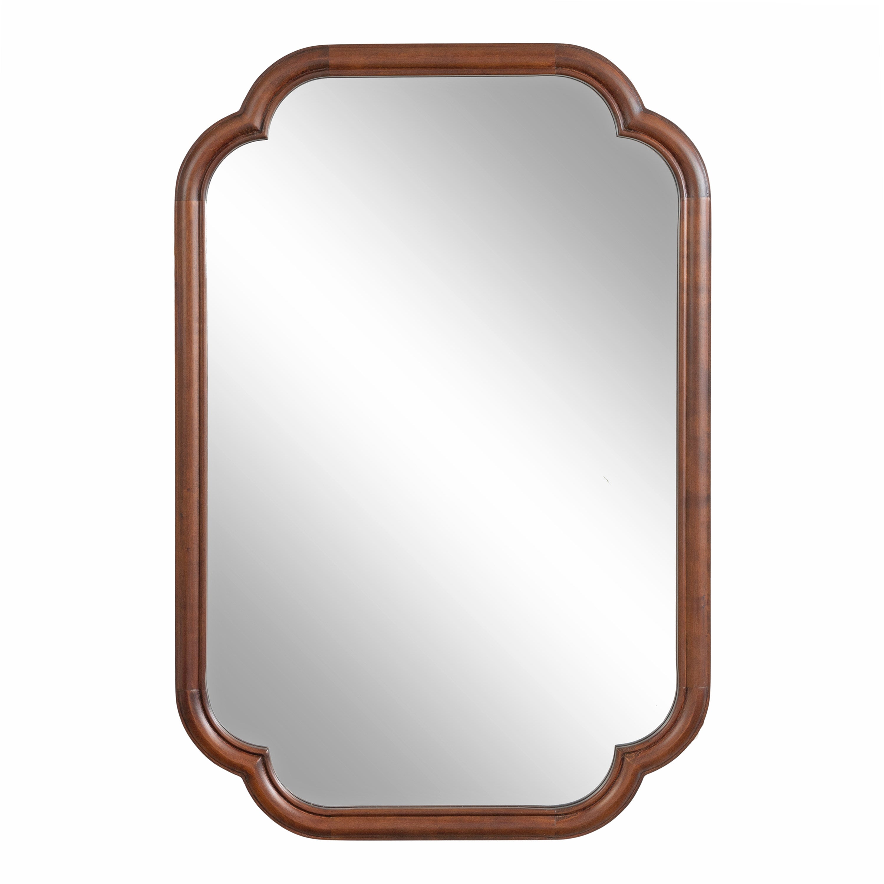 Elevate your bathroom decor with this charming scalloped wall mirror. Hang it anywhere throughout your home to fit your unique space and style. The rounded and stepped frame profile adds depth and dimension to the mirror, creating visual interest. With its attached D-ring hangers, this mirror is easy to install and will add a touch of sophistication to your bathroom. Add this mirror to your bathroom today and enjoy the beauty and functionality it brings to your space.