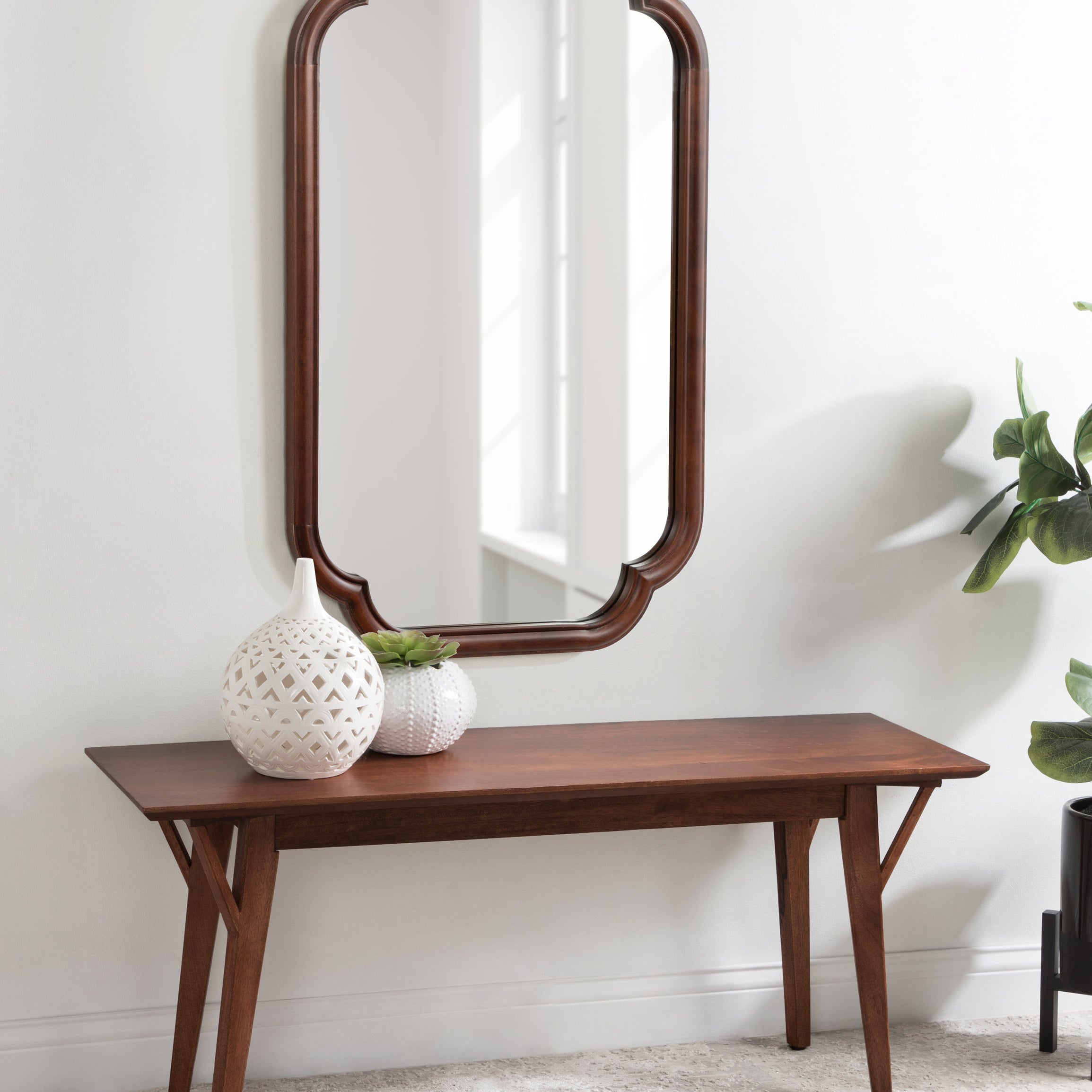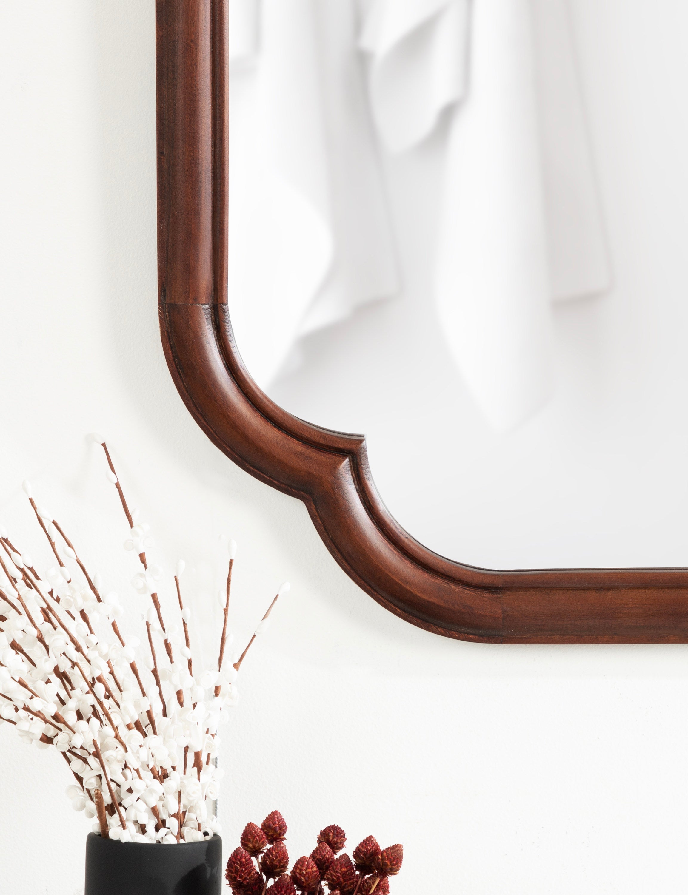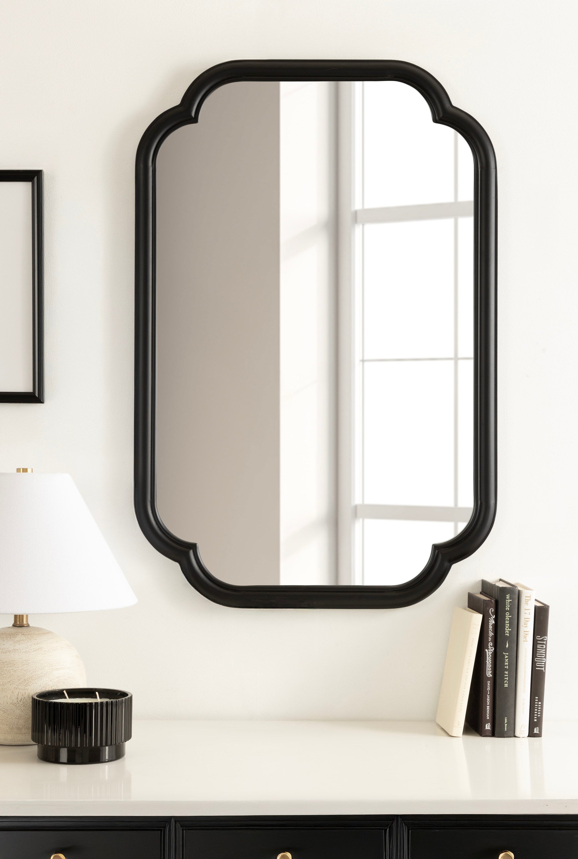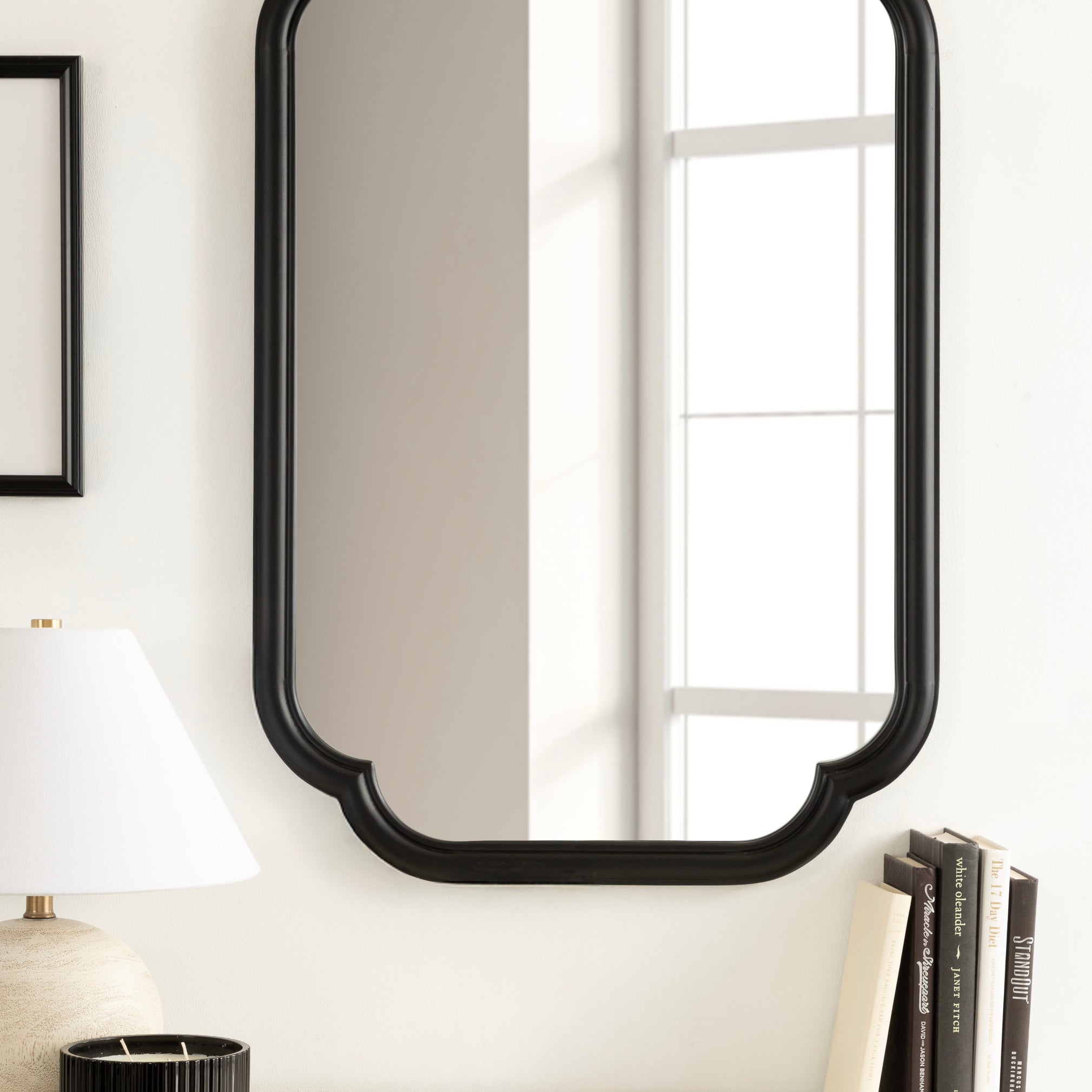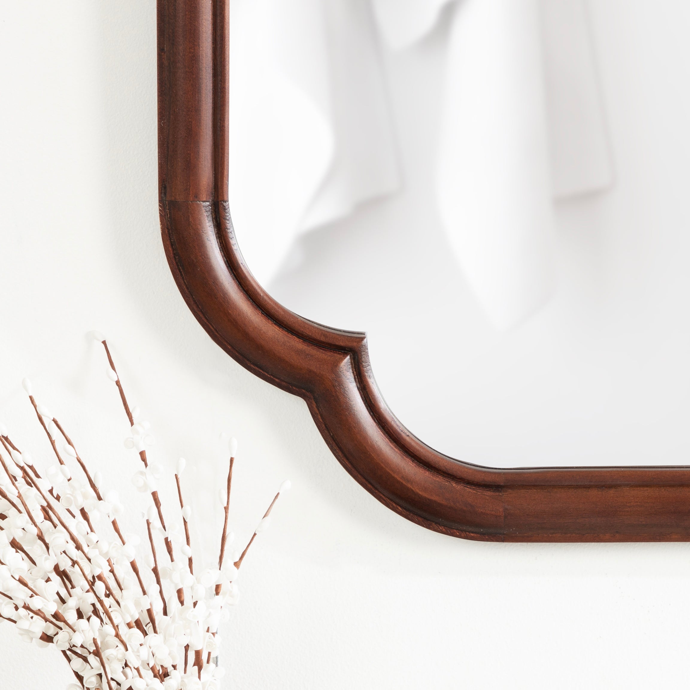 Elevate your bathroom decor with this charming scalloped wall mirror. Hang it anywhere throughout your home to fit your unique space and style. The rounded and stepped frame profile adds depth and dimension to the mirror, creating visual interest. With its attached D-ring hangers, this mirror is easy to install and will add a touch of sophistication to your bathroom. Add this mirror to your bathroom today and enjoy the beauty and functionality it brings to your space.