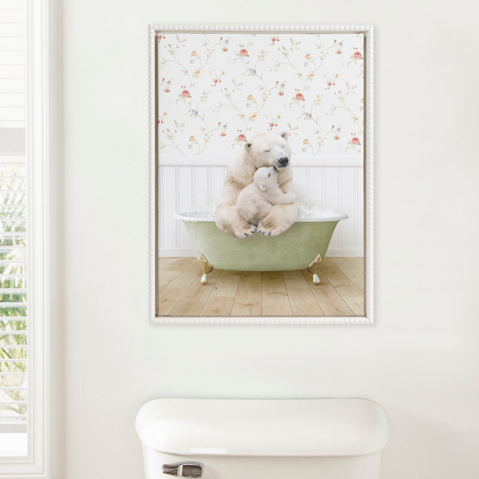 Home/Mother's Day Gift Guide/Sylvie Beaded Mother and Baby Polar Bear in Country Cottage Bath Framed Canvas by Amy Peterson