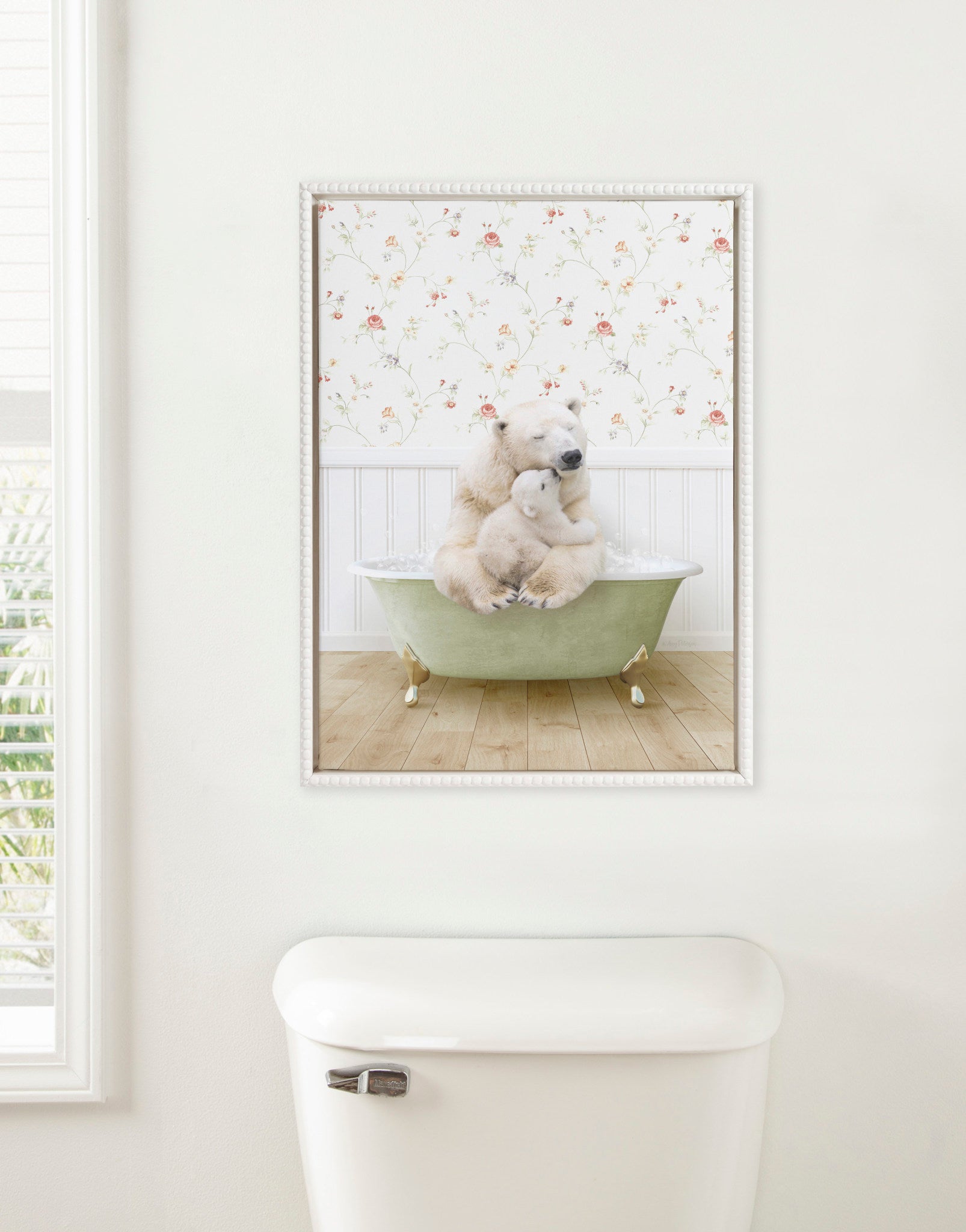 - Print "Mother and Baby Polar Bear in Country Cottage Bath" ©2023 Amy Peterson Art Studio