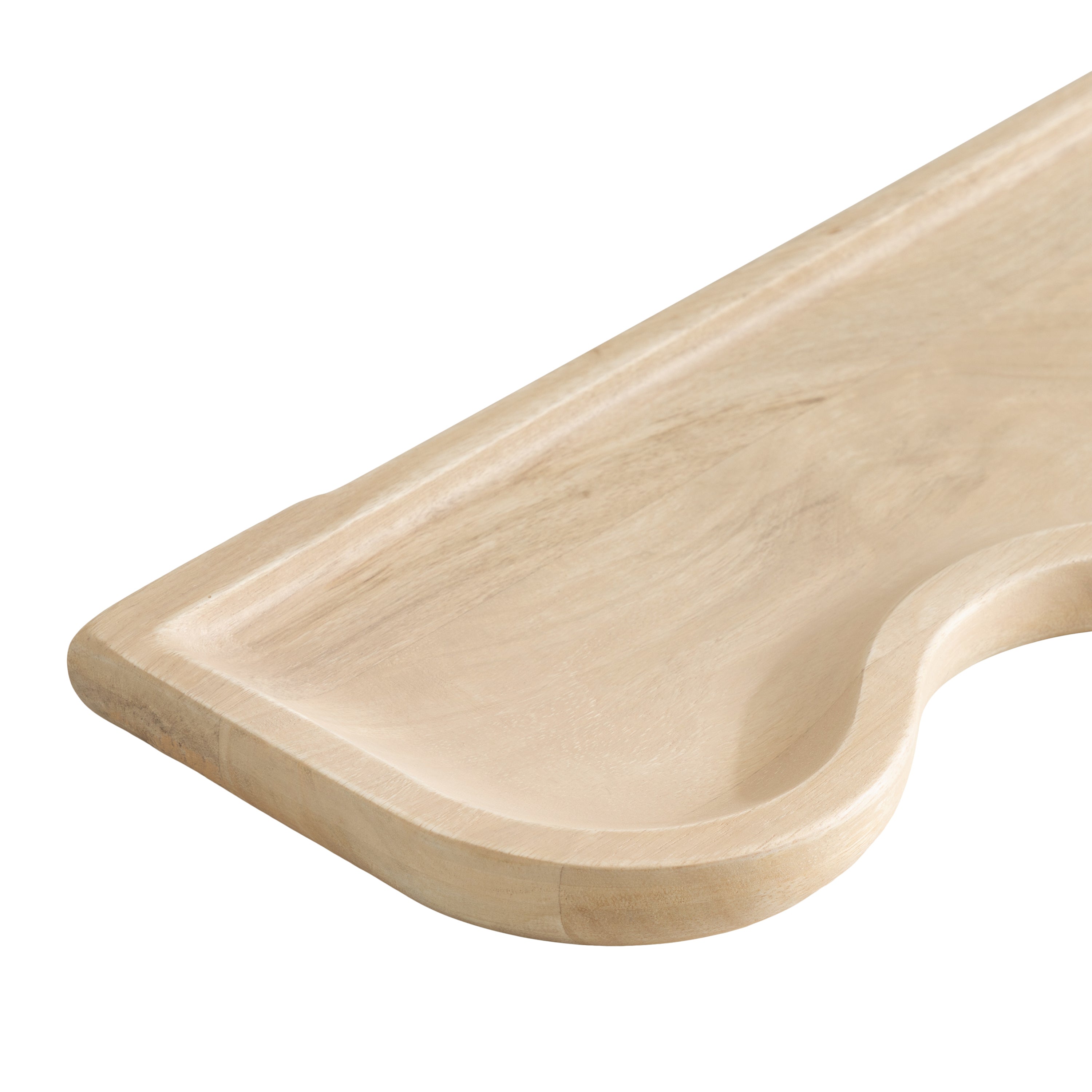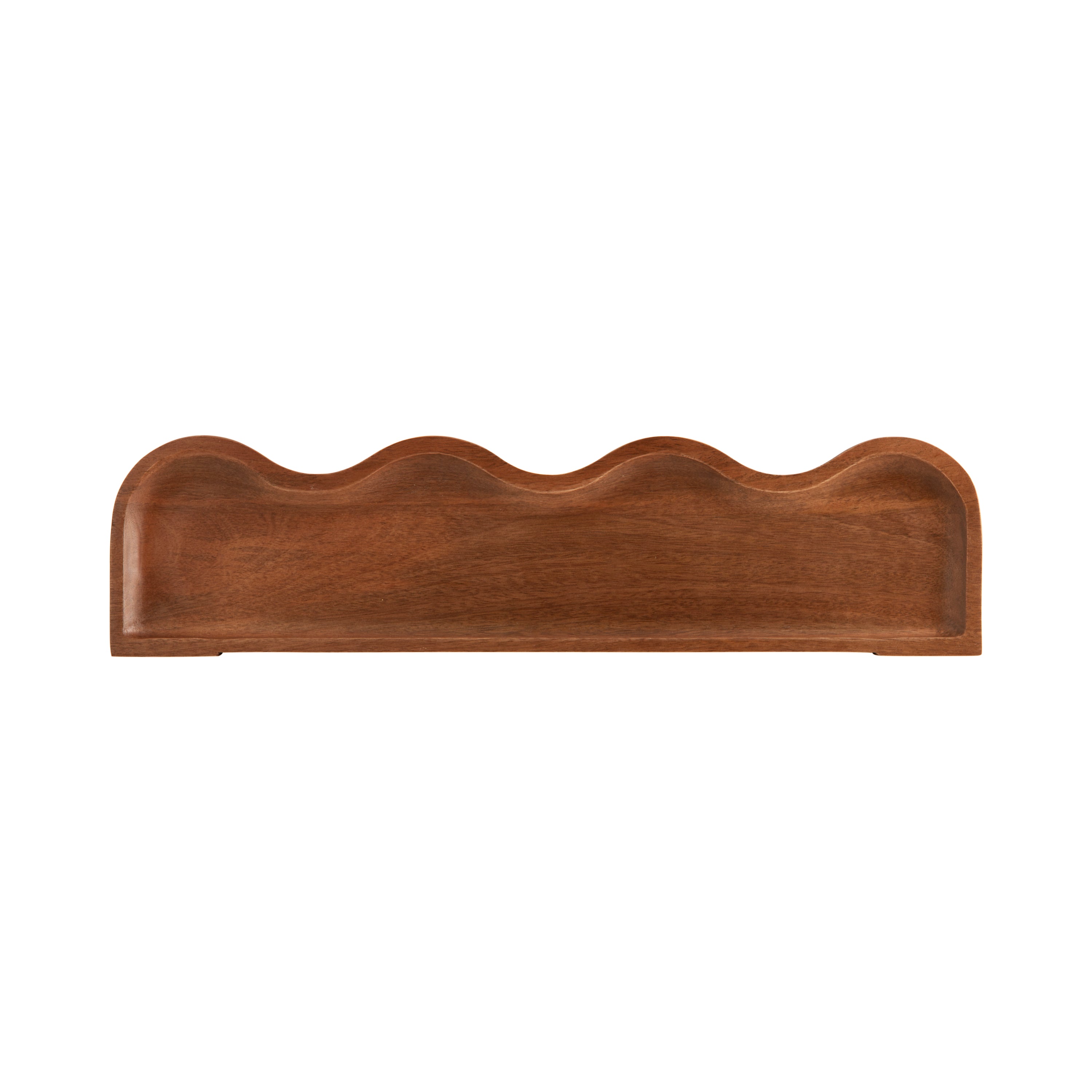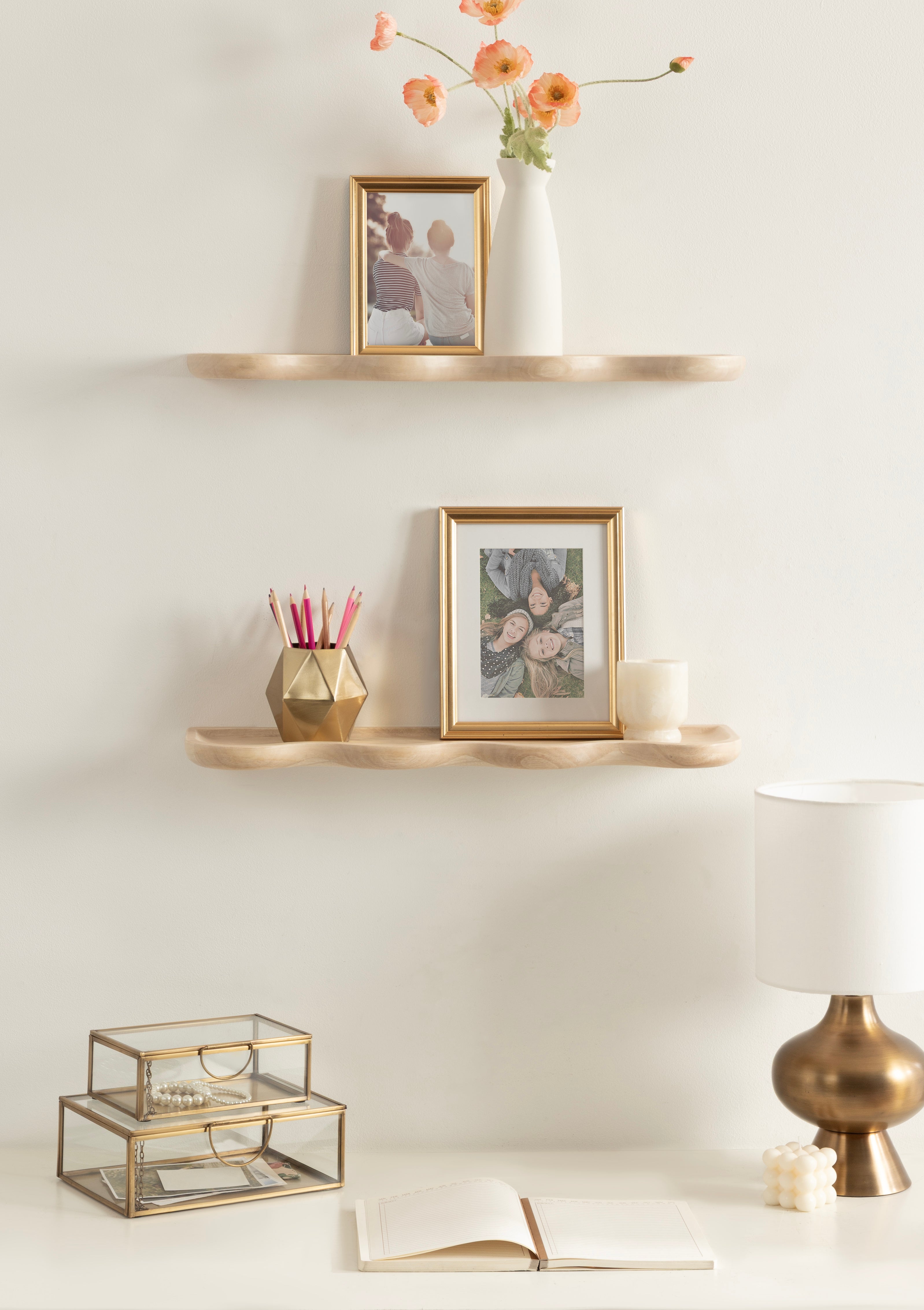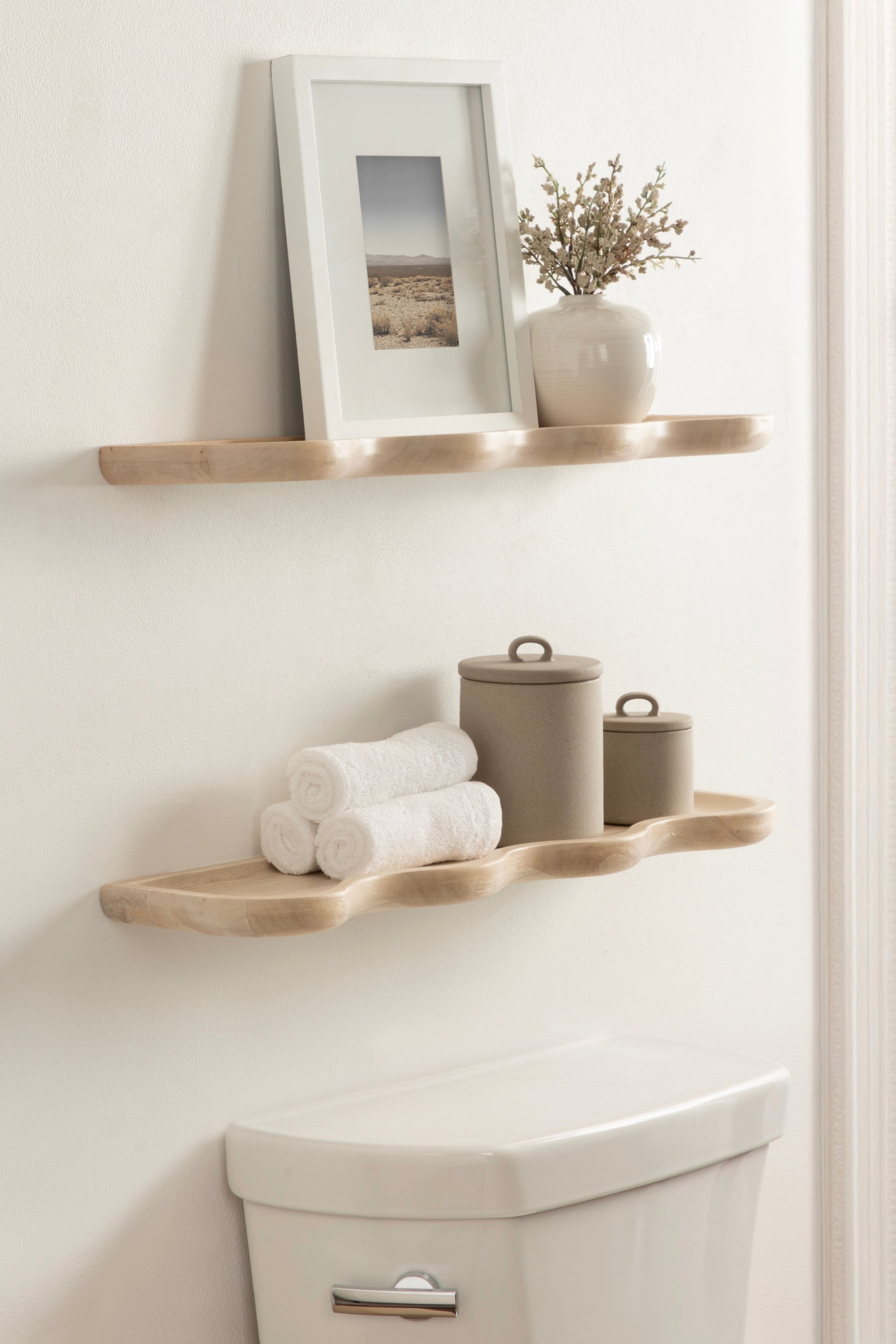 Inspire your inner interior decorator with these functional and beautiful floating shelves. Inspired by wavy curvature and convenient design, the Alezar wall shelves combine modern aesthetics with practical function. These shelves were made from solid mango wood, giving them an elevated quality and appearance. Setting it apart from a standard floating shelf, these shelves boast a youthful scalloped shape that adds a bit of character. Each Alezar shelf has a five-pound weight capacity, giving you the opportunity to store dessert plates and mugs, showcase delightful succulents, or house your favorite keepsakes and media. The two Alezar shelves hang in just a matter of minutes with the convenient hanging brackets that attach directly to the wall for a floating effect.