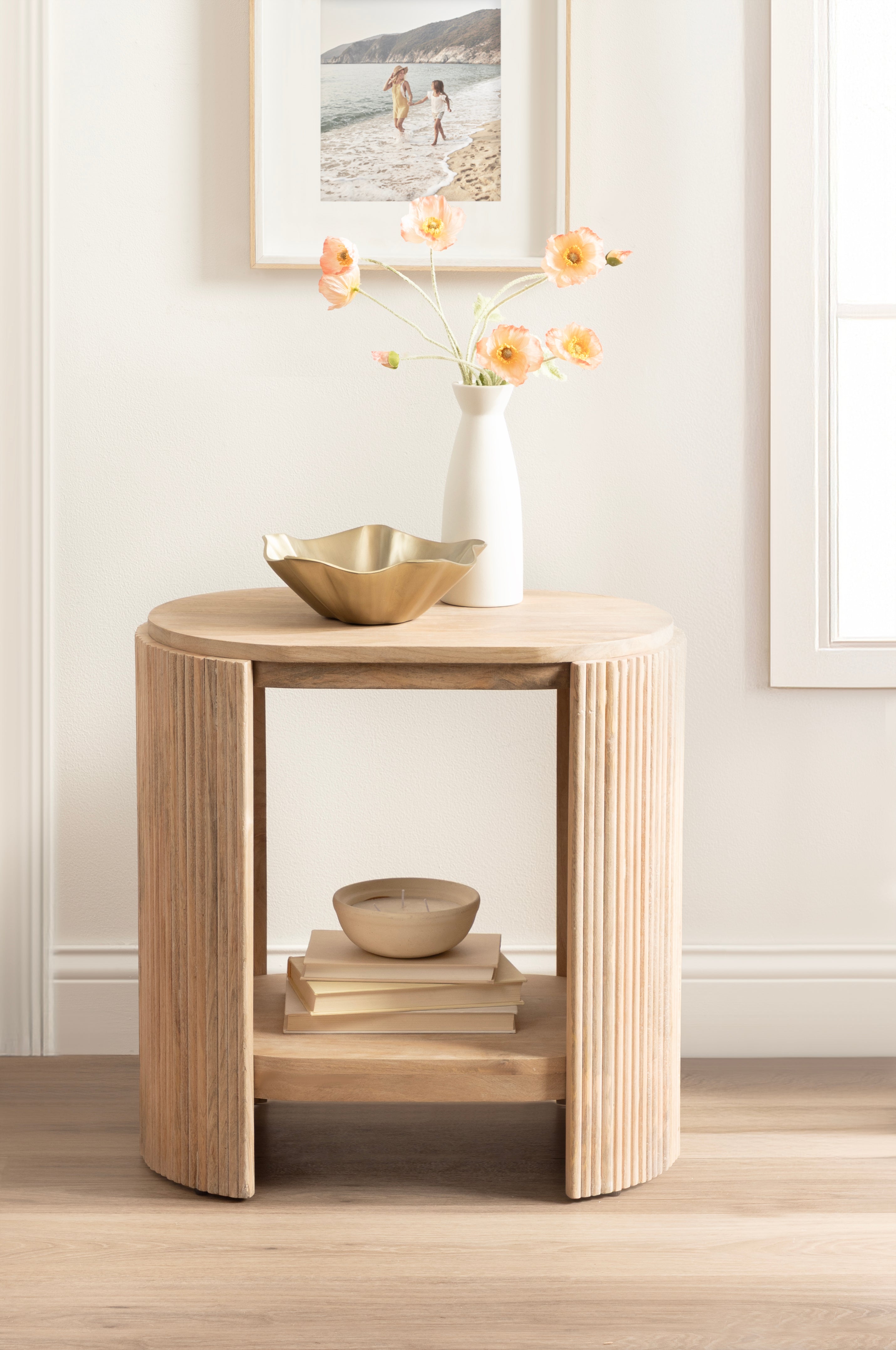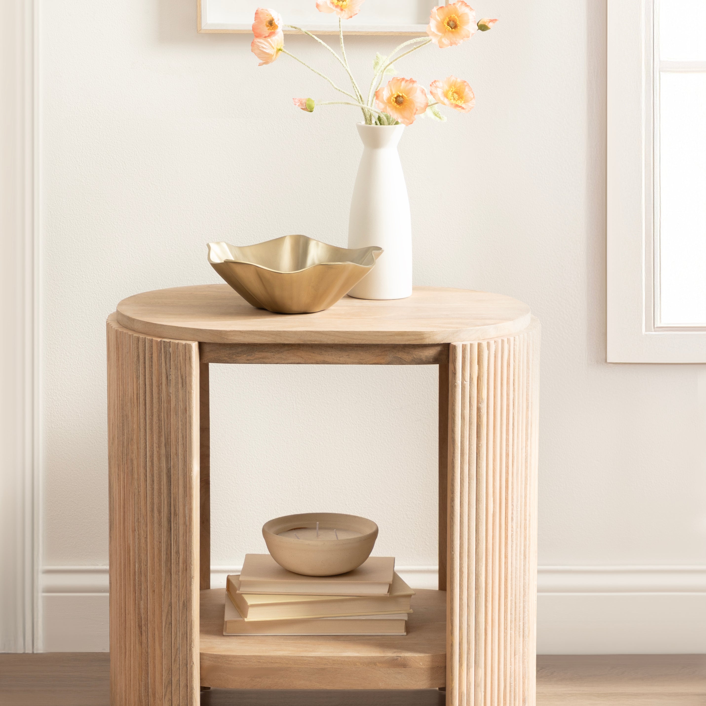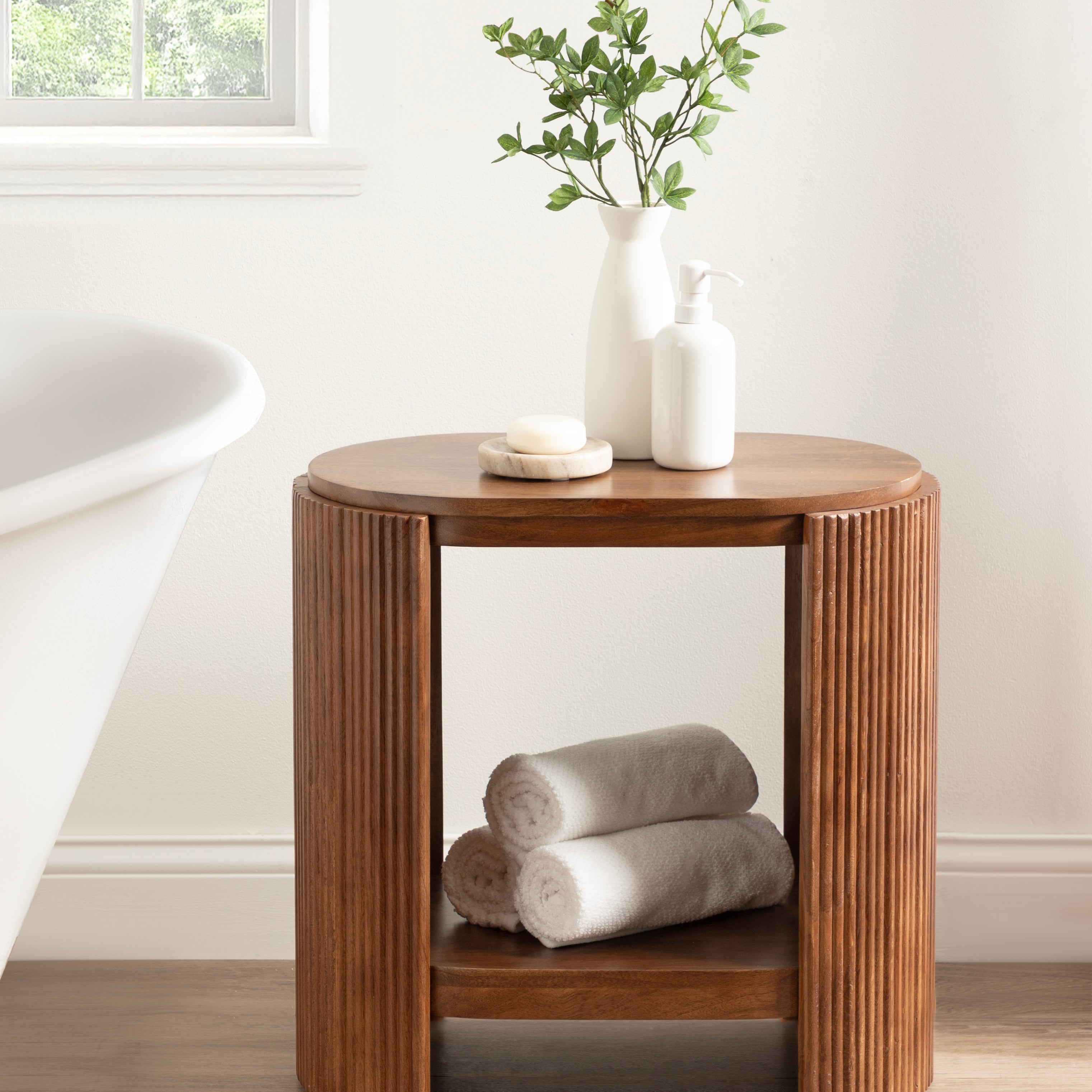 Blend your love of modern style with a dash of transitional functionality with the Cakora side table. This rectangular table embraces a fun yet refined design with its capsule table shape and ribbed table sides. Skilled artisans craft the Cakora by hand, and due to this careful, delicate crafting, each piece is one-of-a-kind in finish and woodgrain. This end table is made of 100% solid mango wood for a table that looks and feels rich and high-quality. It not only looks good, but it also features two tiers of mango wood that can serve various purposes throughout your home. It is a perfect pairing next to a sofa, by your bed, or flanking your entryway. In addition, the two tiers are ideal for storing and displaying household necessities and your most cherished decorative accent pieces. Assembly for this minimal table takes a matter of minutes with a simple four-step process will have your new end table ready in no time.