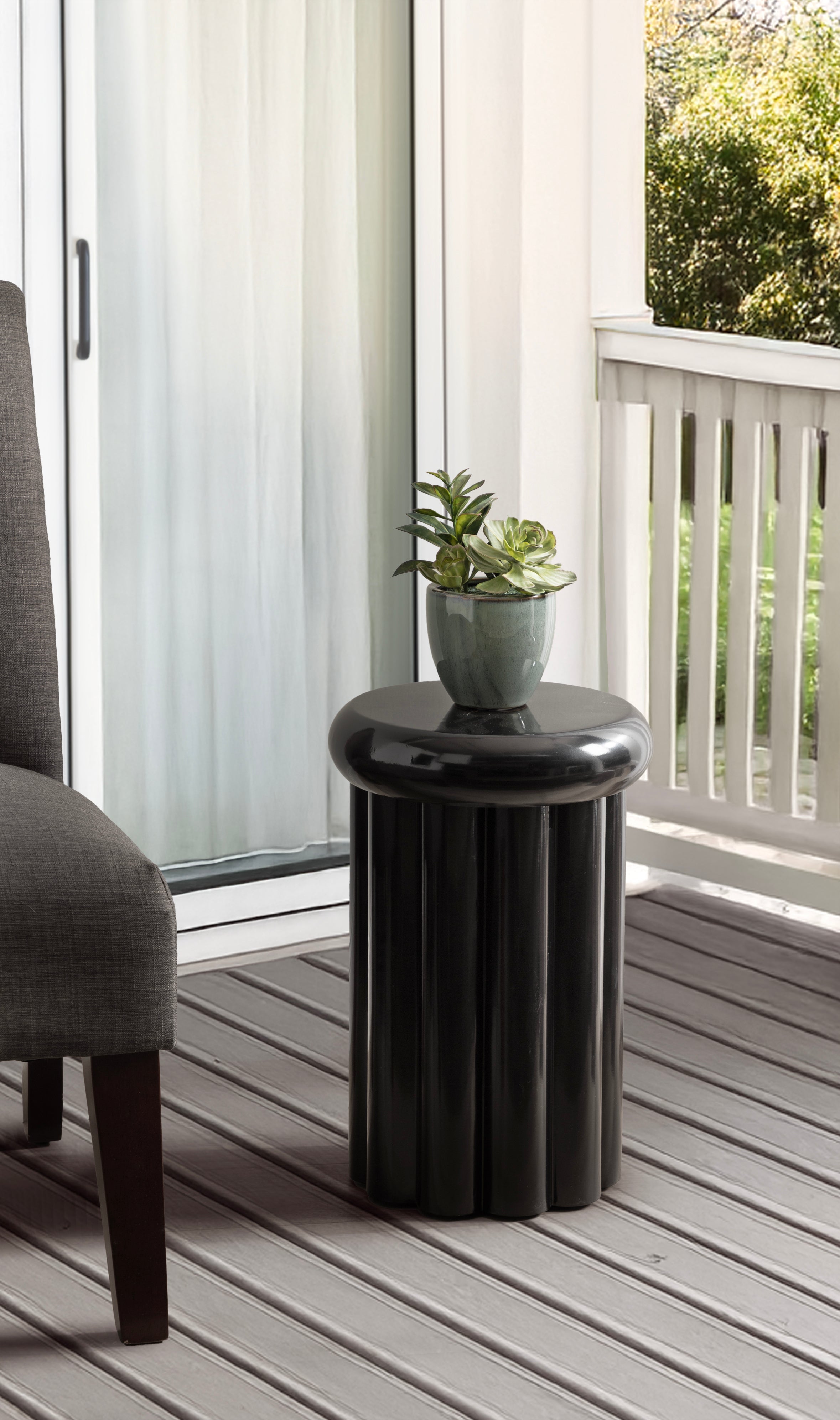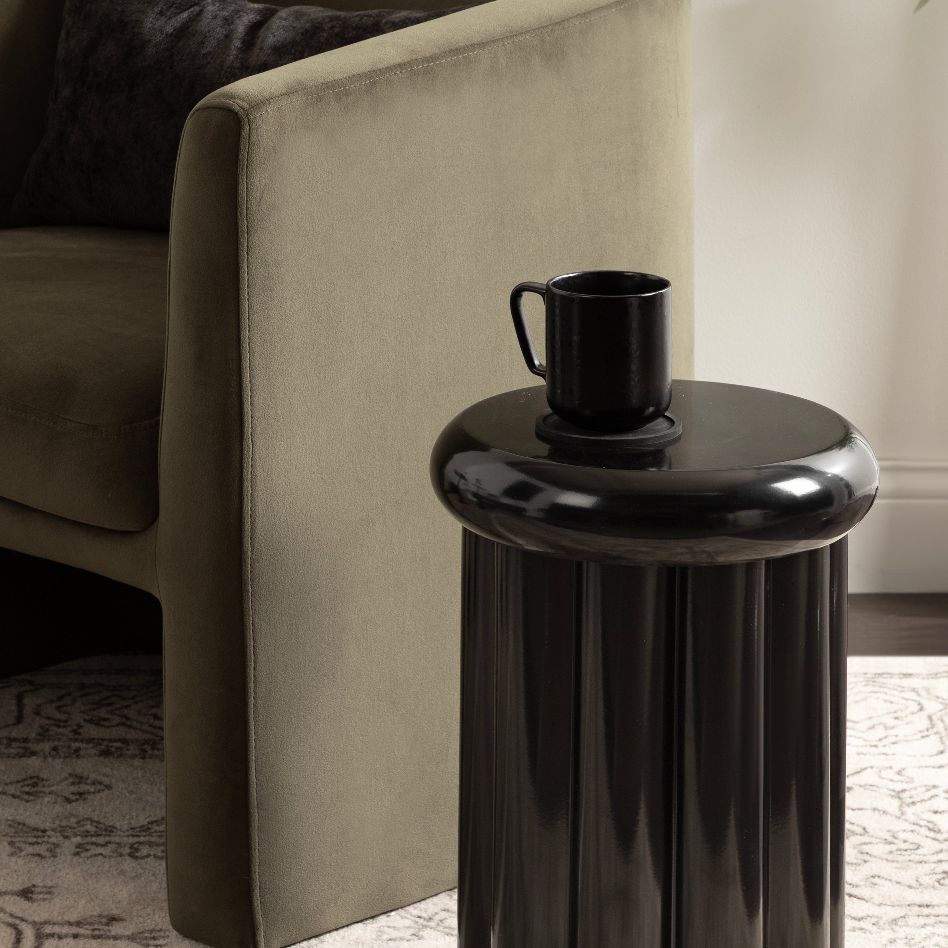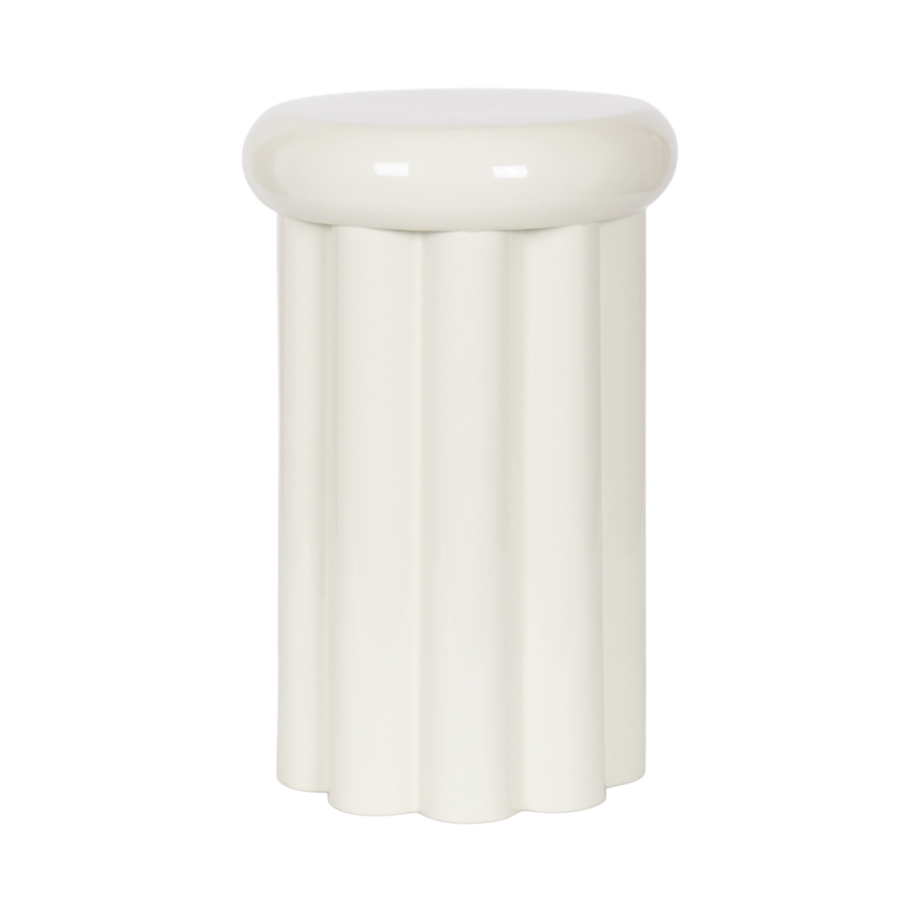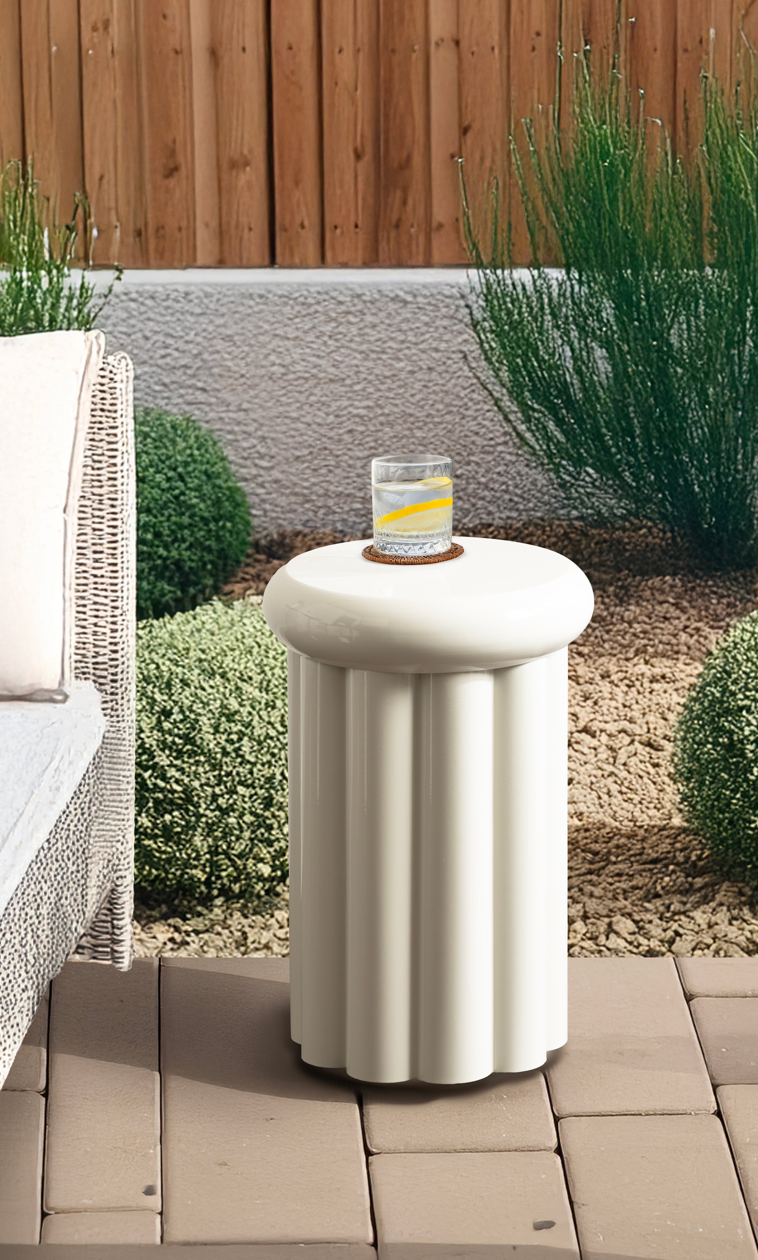 Showcase your modern-inspired style with the Jace round side table from Kate and Laurel. The timeless and modern glossy finish of the metal adds a touch of sophistication to any space, while the unique curvature of the design makes it easy to blend seamlessly with a variety of decor styles. However, the chunky ribbed table base and the bullnose tabletop edge make it a youthful living room accent table. Due to its outdoor-safe construction, this versatile end table can be used with your back patio or porch decor setup. The round tabletop is perfect for creating a curated display area for candles, small lamps, and other accents. Arriving fully assembled, this charming outdoor table can be showcased right out of the packaging.