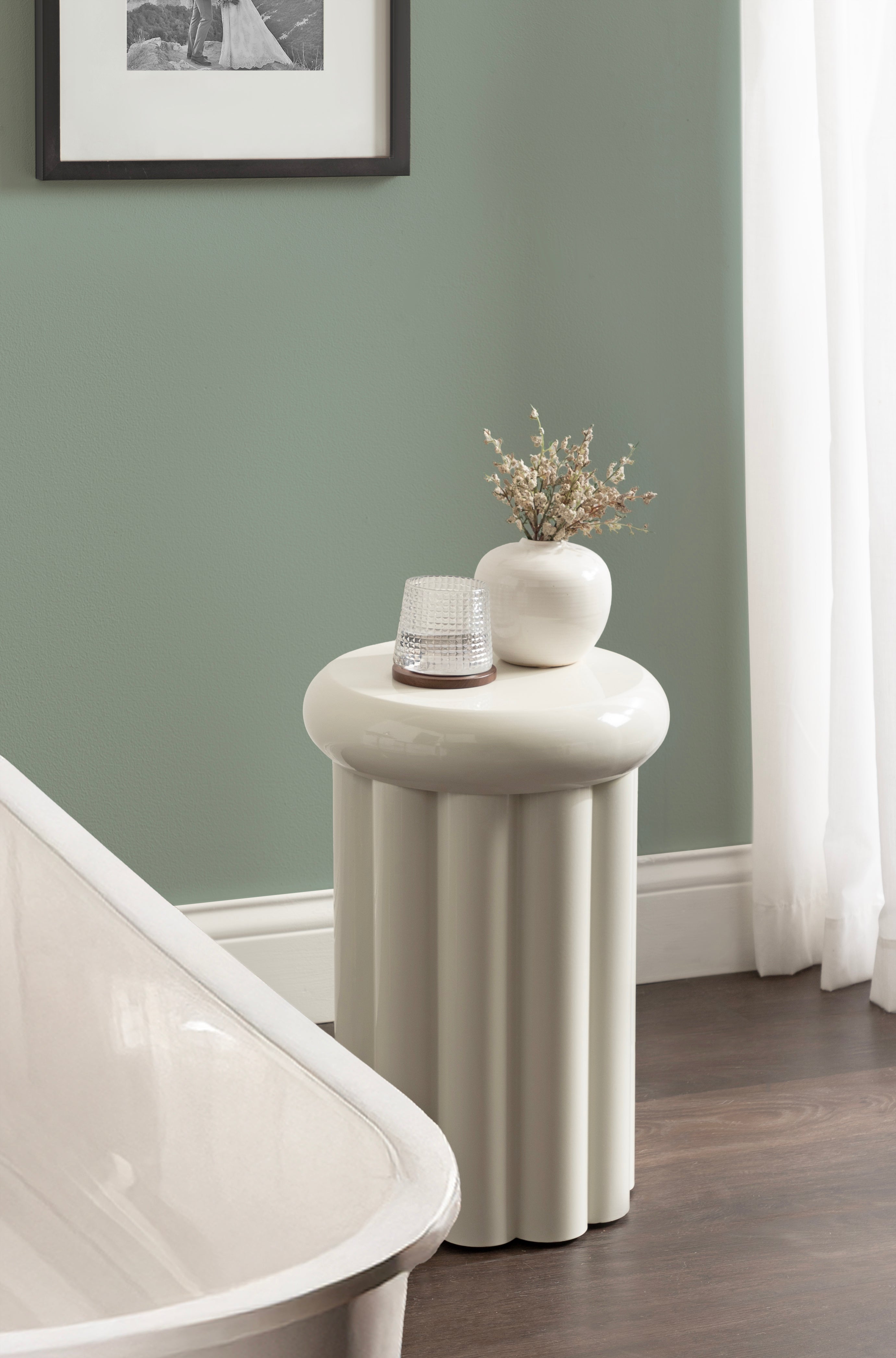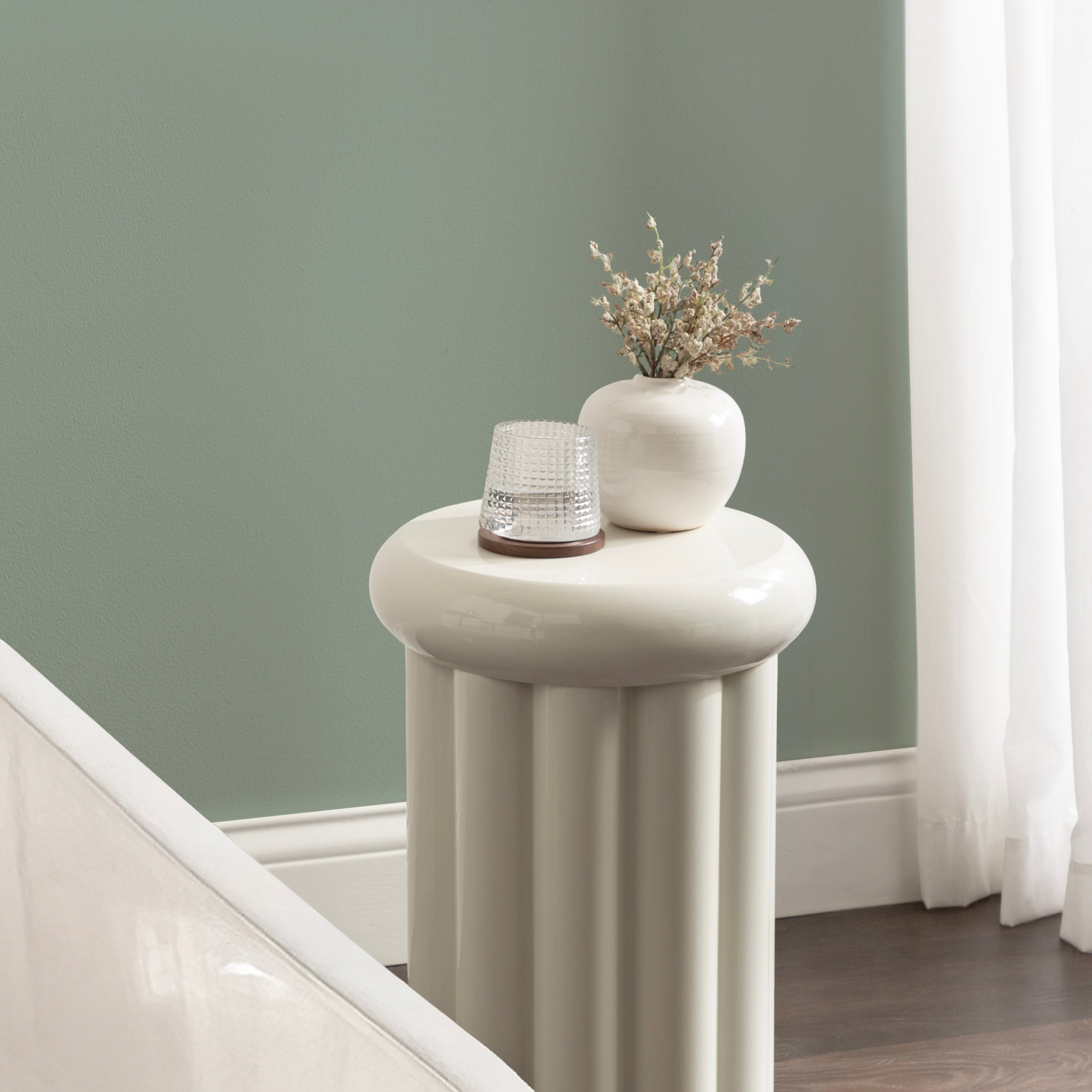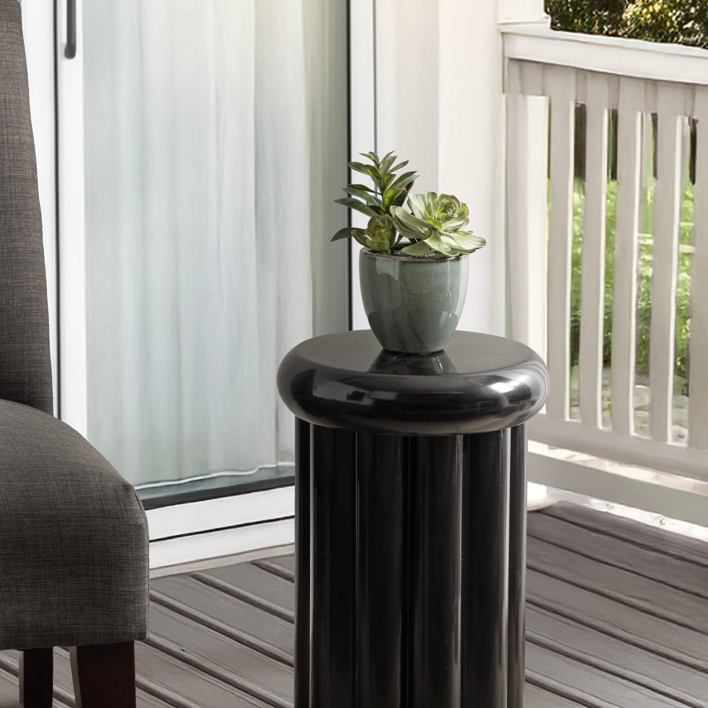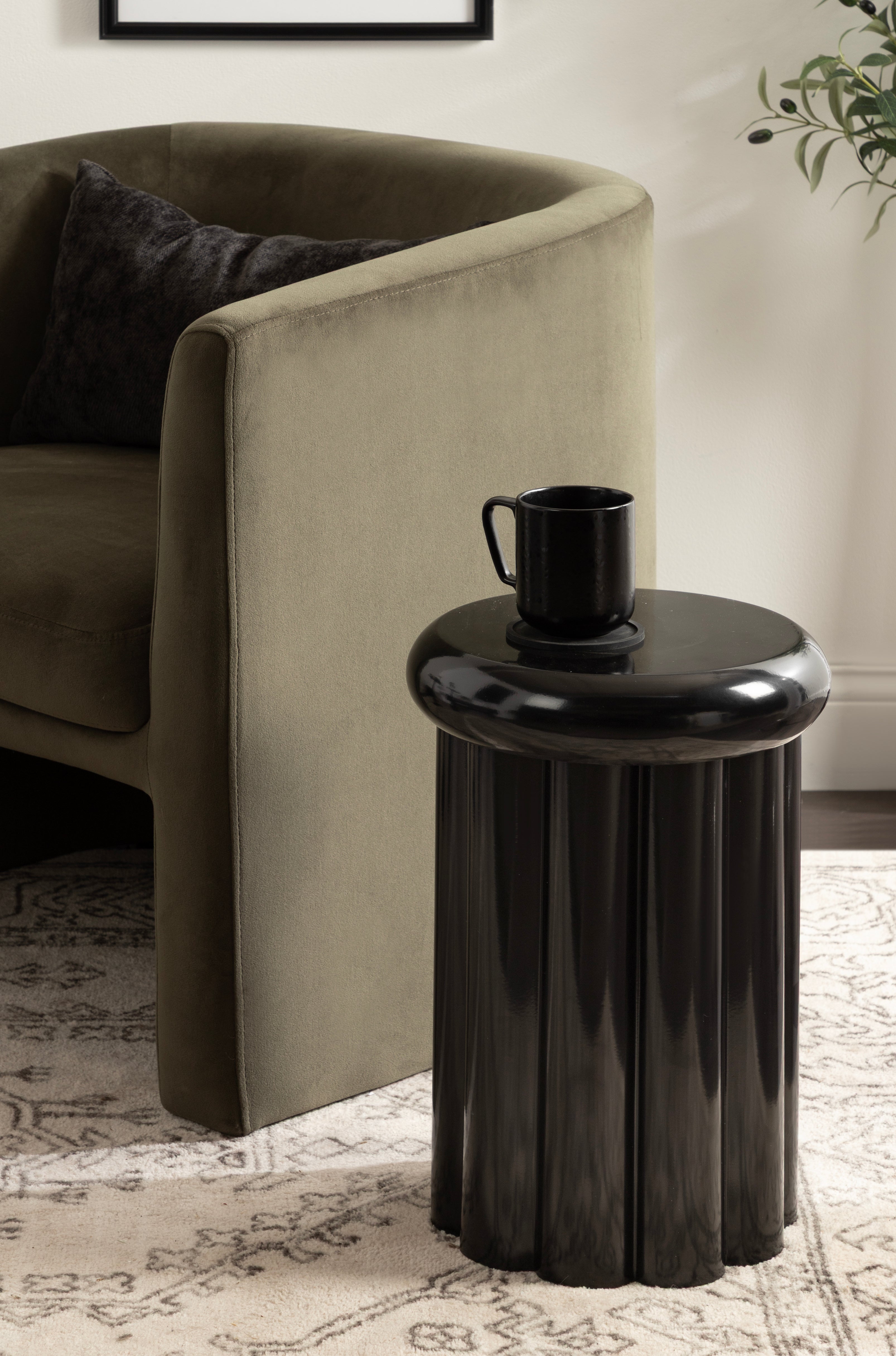 Showcase your modern-inspired style with the Jace round side table from Kate and Laurel. The timeless and modern glossy finish of the metal adds a touch of sophistication to any space, while the unique curvature of the design makes it easy to blend seamlessly with a variety of decor styles. However, the chunky ribbed table base and the bullnose tabletop edge make it a youthful living room accent table. Due to its outdoor-safe construction, this versatile end table can be used with your back patio or porch decor setup. The round tabletop is perfect for creating a curated display area for candles, small lamps, and other accents. Arriving fully assembled, this charming outdoor table can be showcased right out of the packaging.