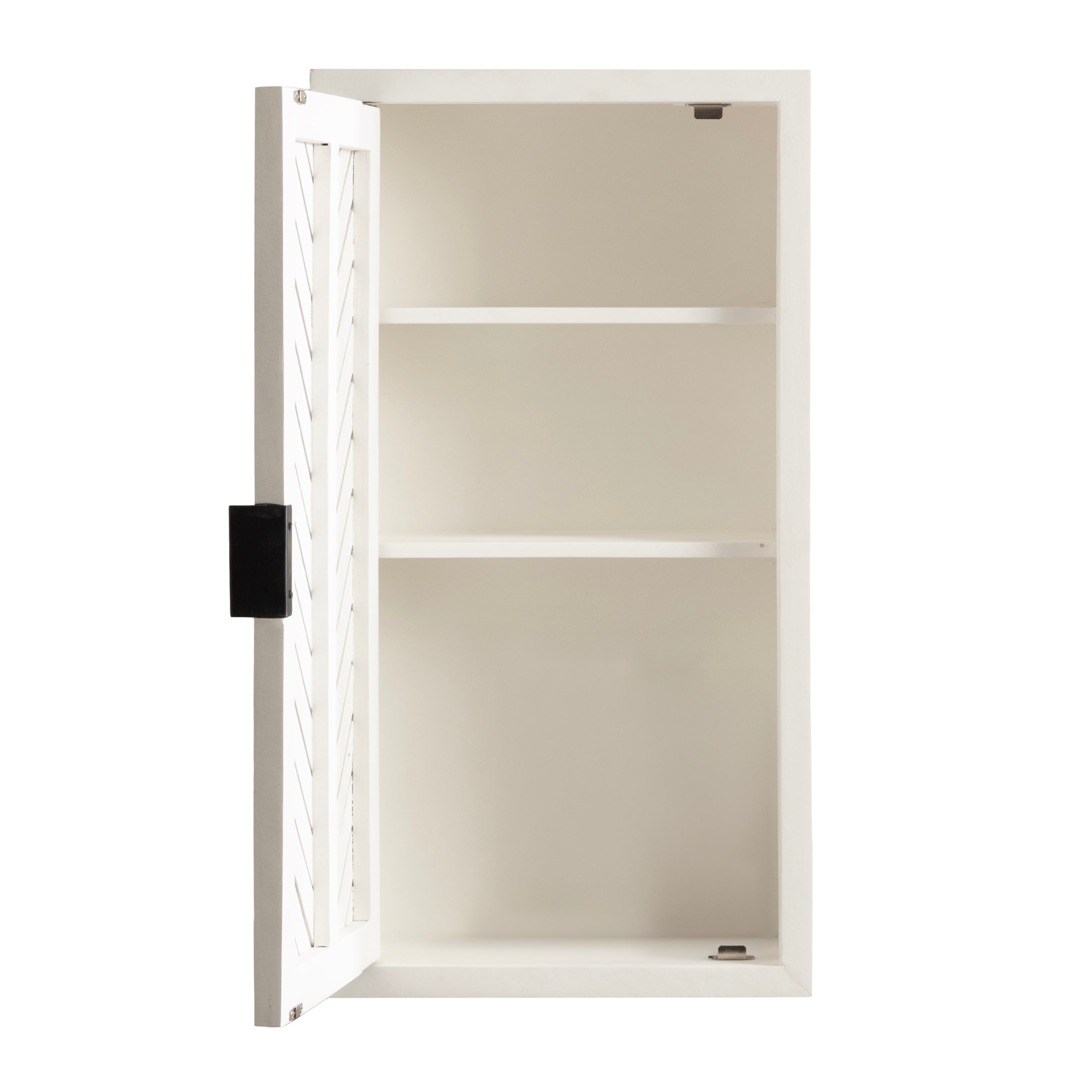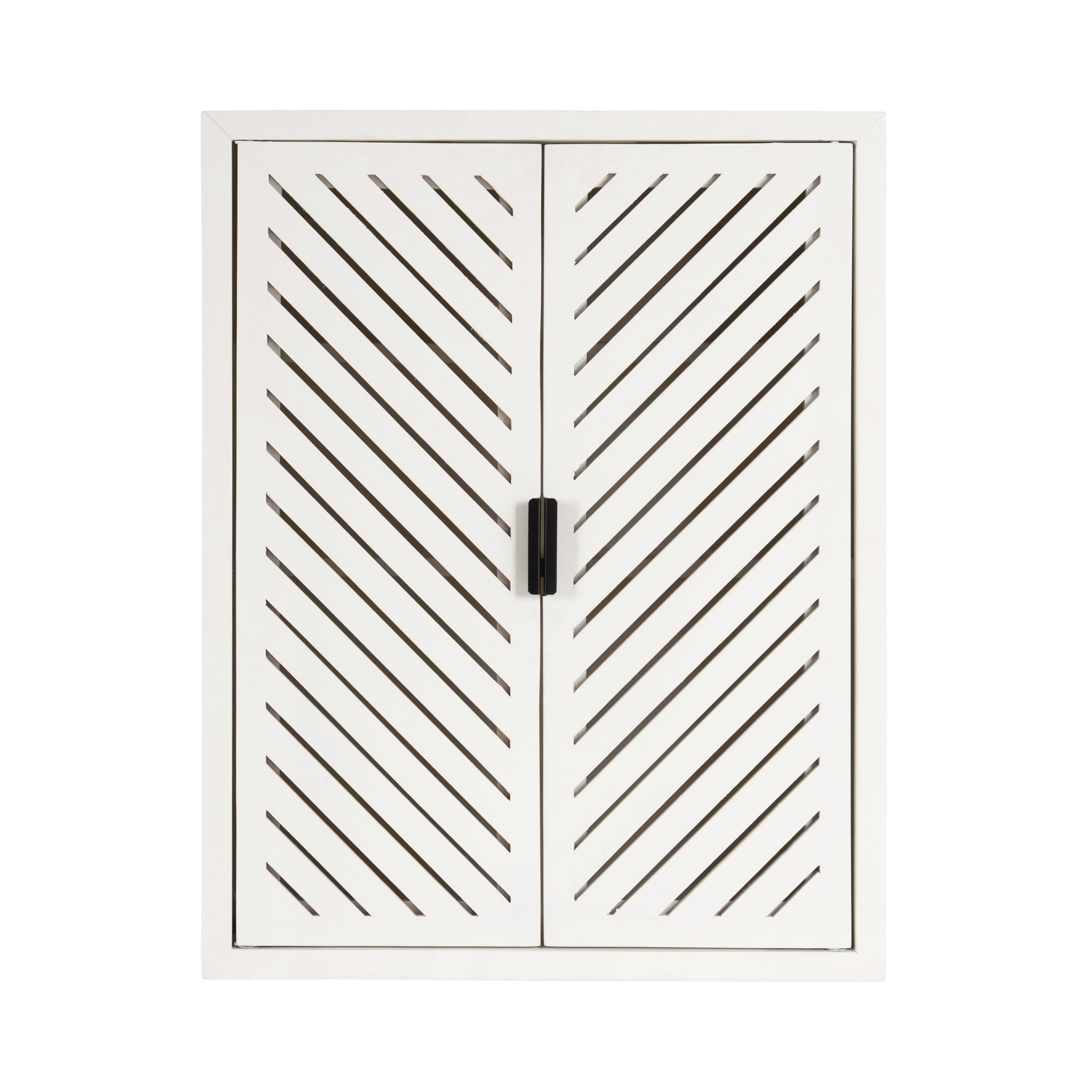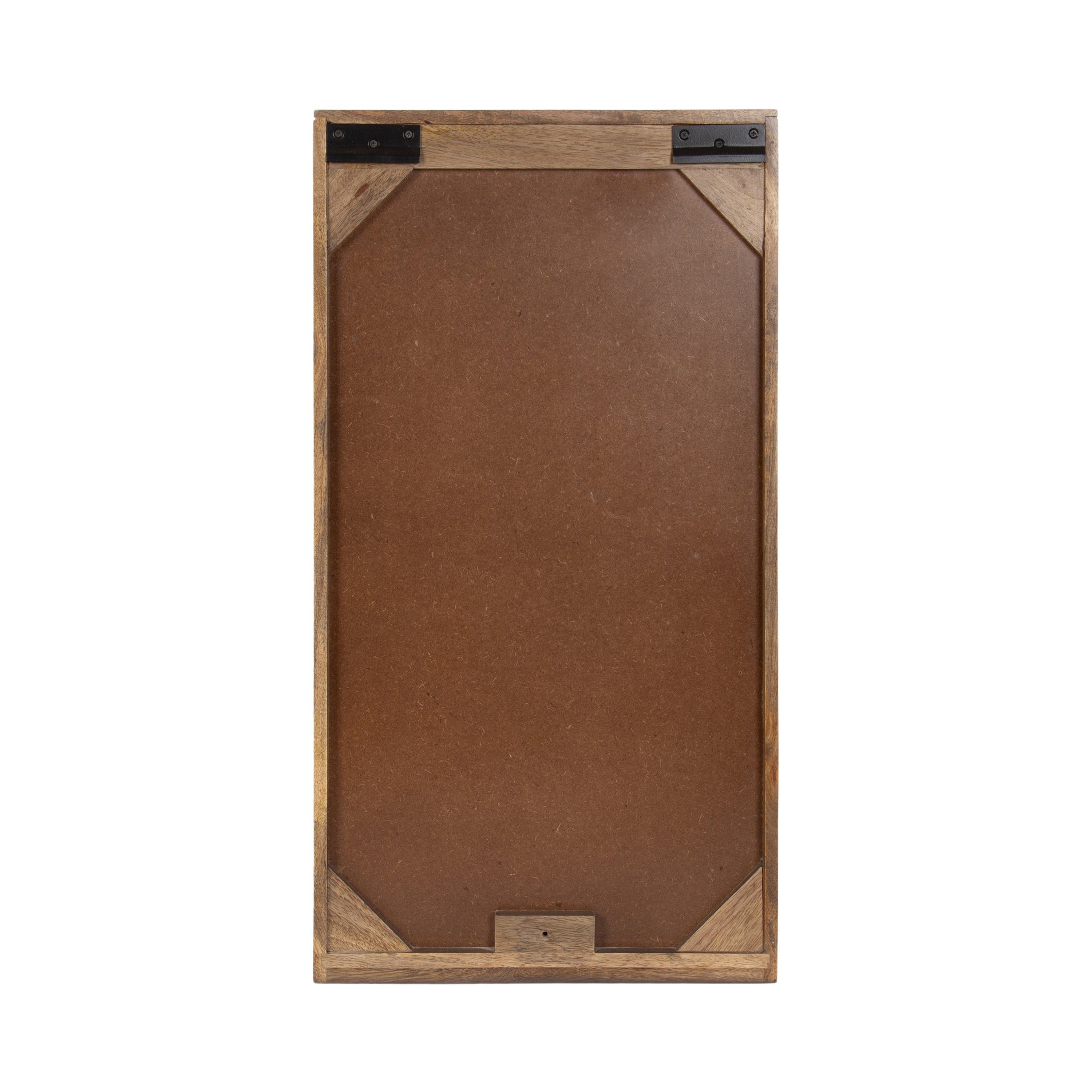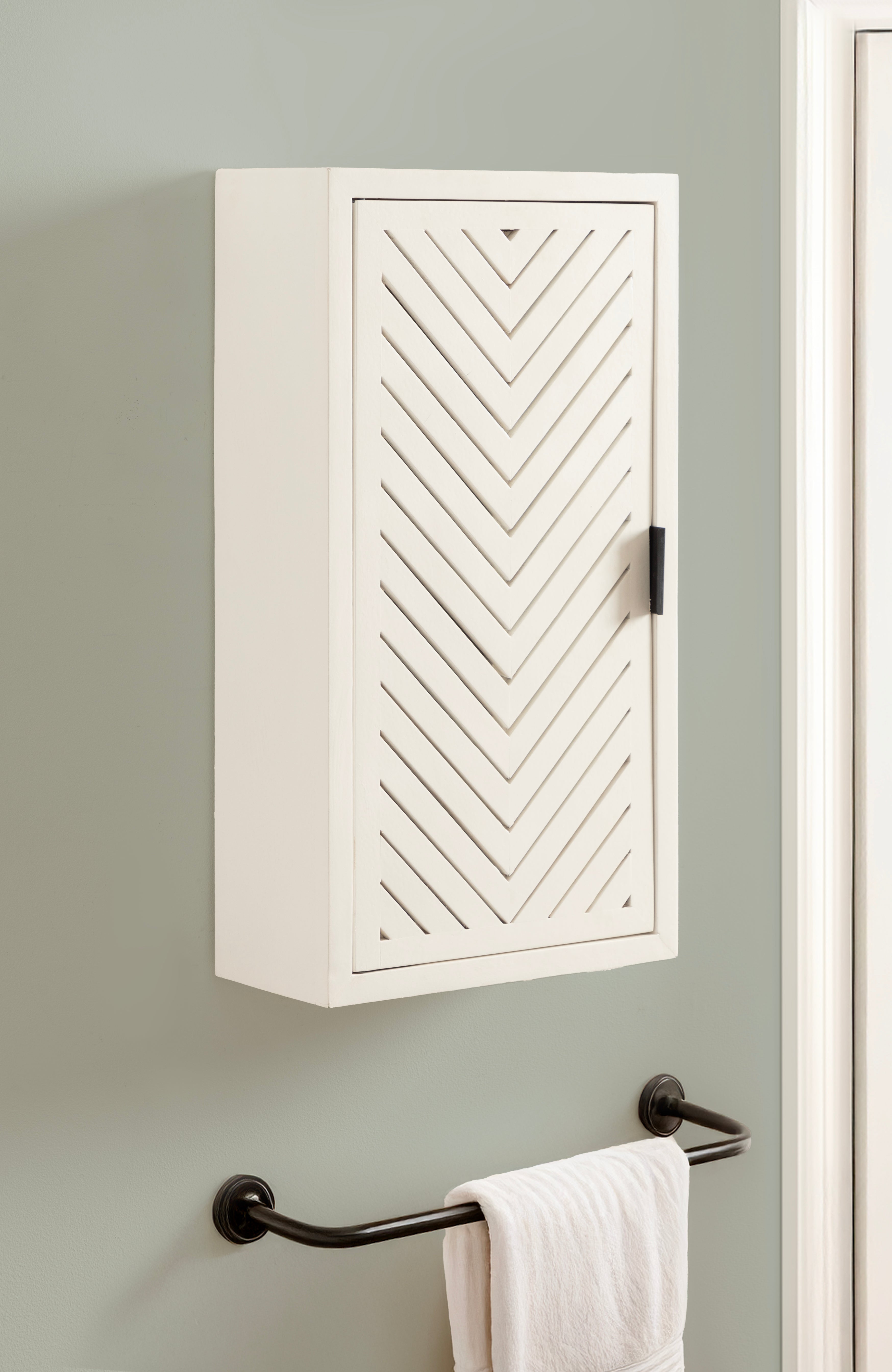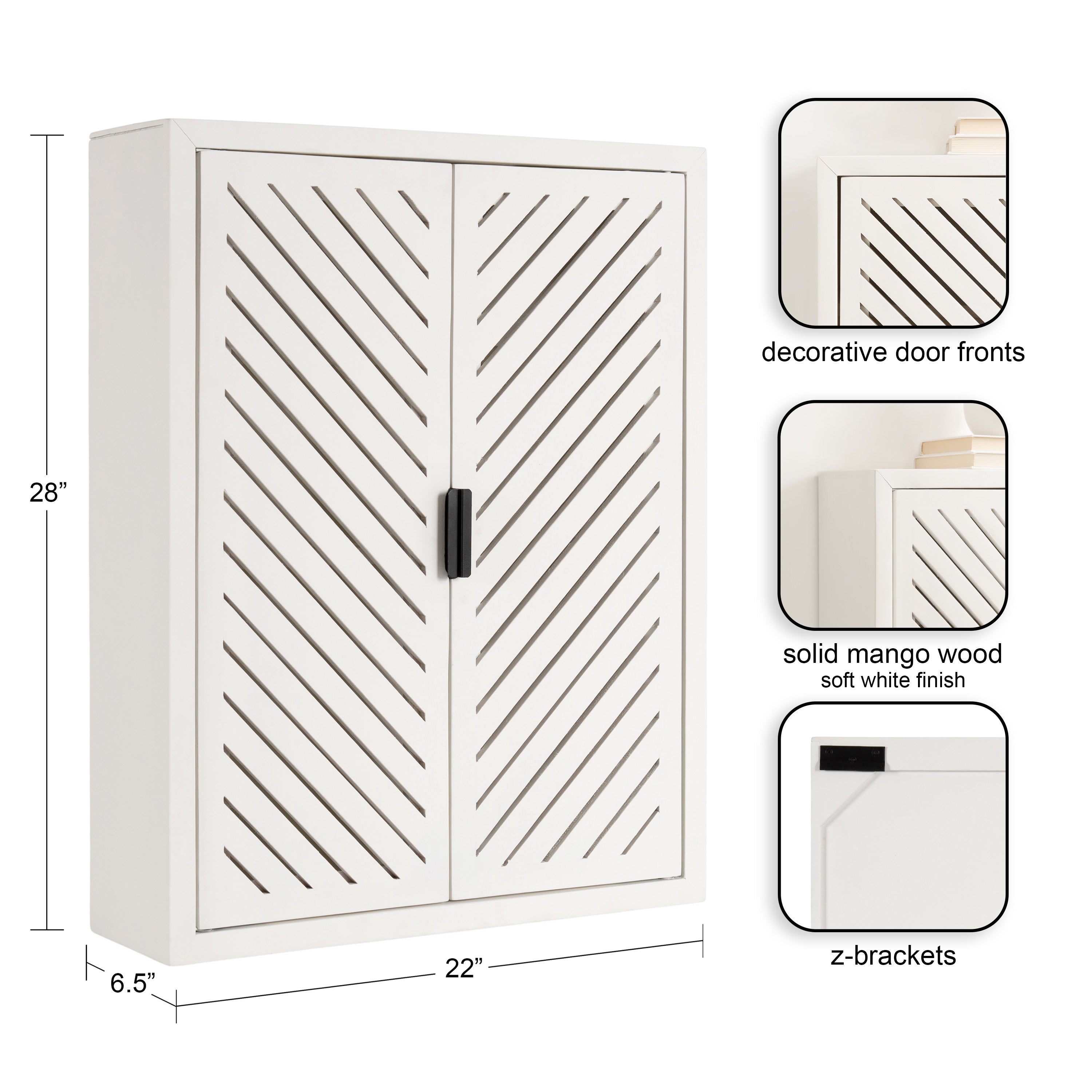 Store bathroom items, kitchen must-haves, small books, and more in this organic modern-inspired wall cabinet from Kate and Laurel. The Mezzeta cabinet has a mango wood composition, constructed in India by artisans and crafted by hand to give it a one-of-a-kind look and construction. The chevron arrows and black metal pulls also elevate this minimal modern design to blend into any boho decor. The Mezzeta cabinet is fantastic for housing your books, towels, and other everyday essentials, or you can use it as a functional space for small plates, mugs, and cups. Due to its size, the Mezzeta wall cabinet is perfect for use in a bedroom, living room, or bathroom as extra above-toilet storage. Your items will be secure thanks to the doors kept closed by magnetic clasps. The Mezzeta wall cabinet hangs on your wall in a matter of seconds, thanks to the metal Z-brackets that are securely attached to the back of the wooden frame.