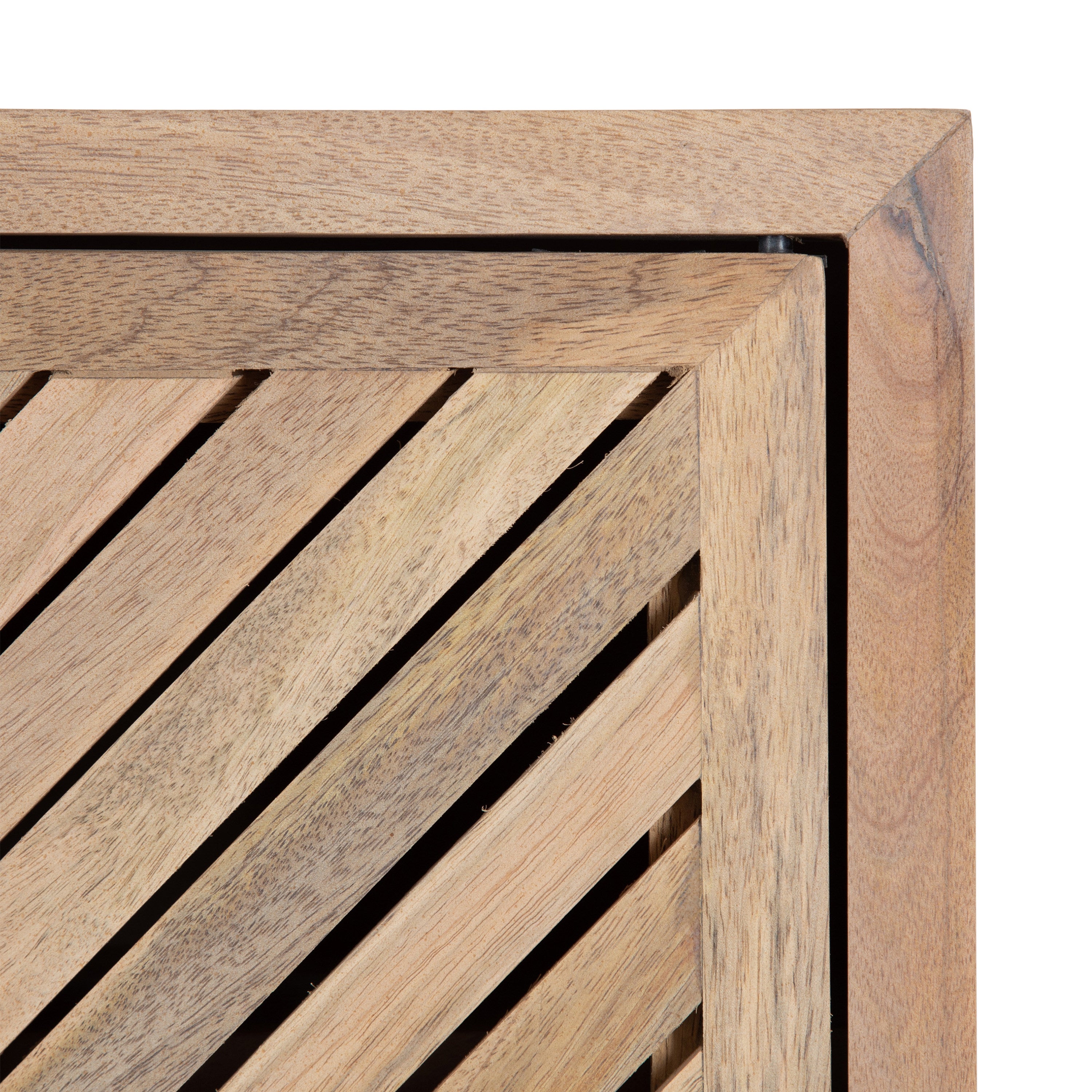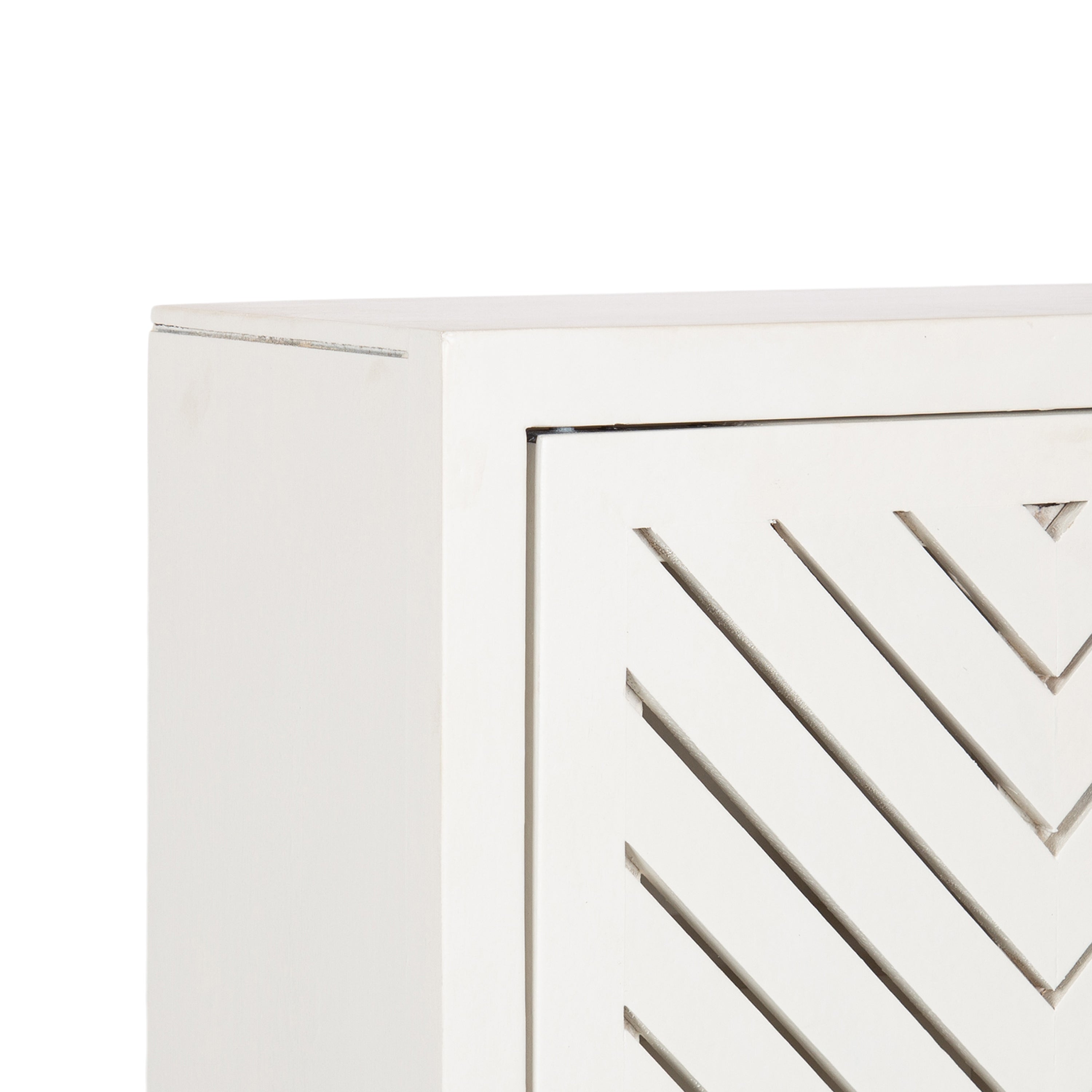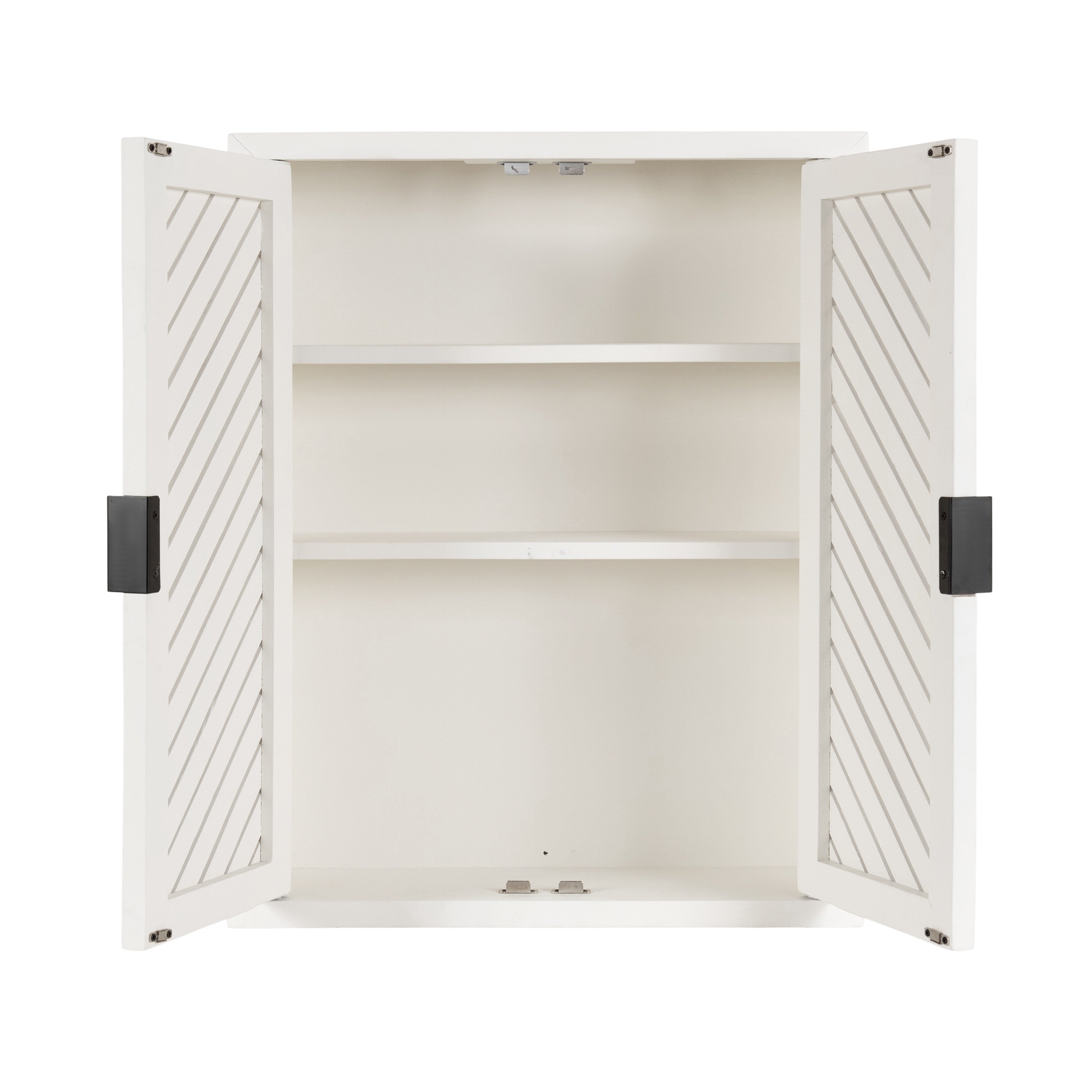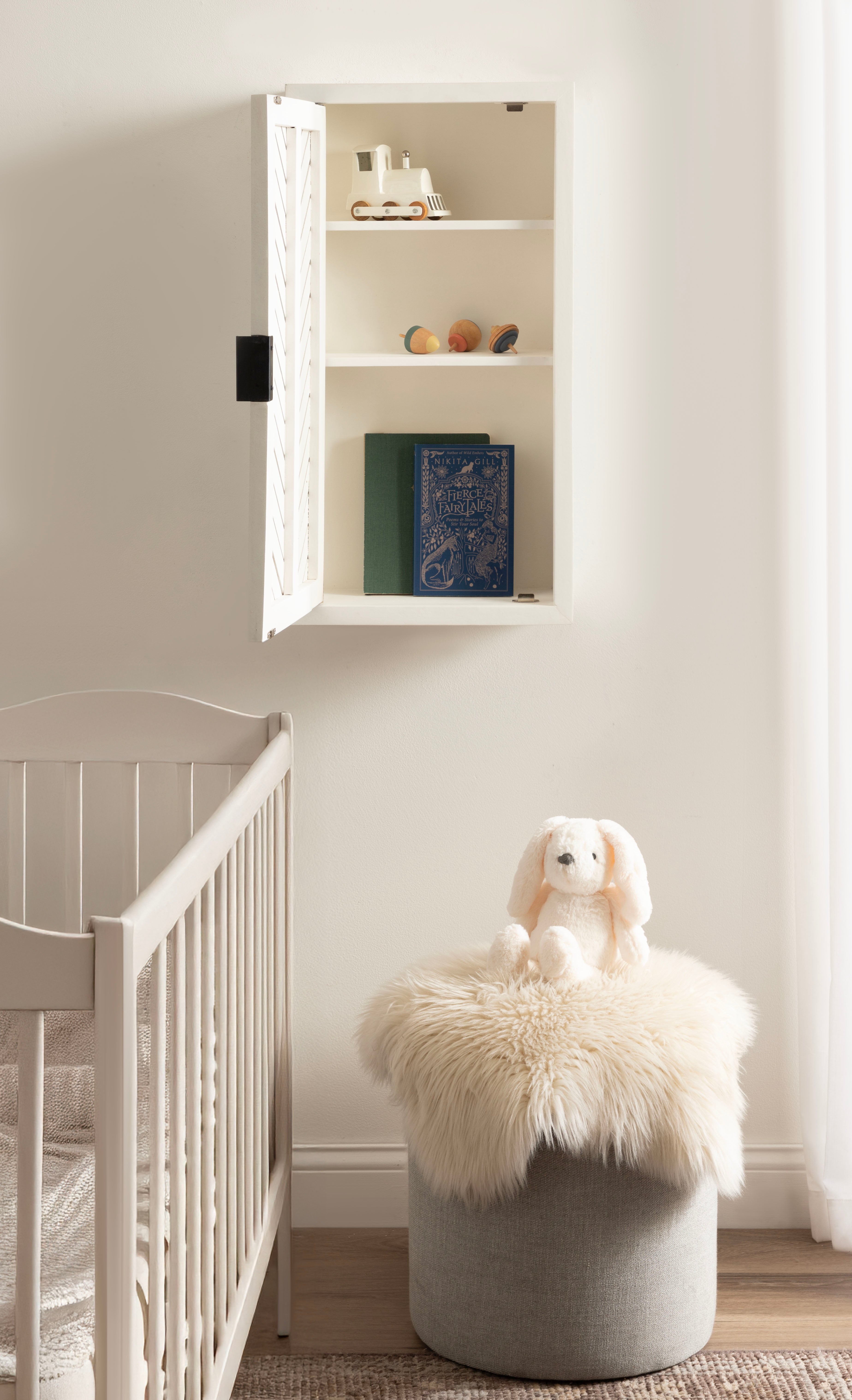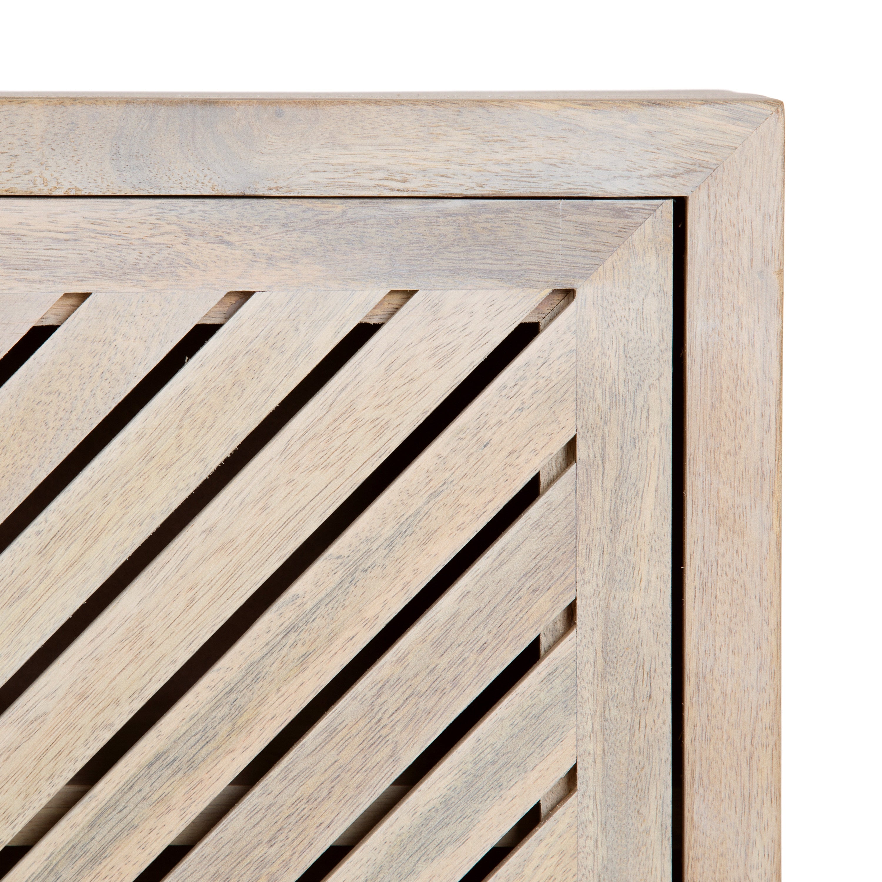 Store bathroom items, kitchen must-haves, small books, and more in this organic modern-inspired wall cabinet from Kate and Laurel. The Mezzeta cabinet has a mango wood composition, constructed in India by artisans and crafted by hand to give it a one-of-a-kind look and construction. The chevron arrows and black metal pulls also elevate this minimal modern design to blend into any boho decor. The Mezzeta cabinet is fantastic for housing your books, towels, and other everyday essentials, or you can use it as a functional space for small plates, mugs, and cups. Due to its size, the Mezzeta wall cabinet is perfect for use in a bedroom, living room, or bathroom as extra above-toilet storage. Your items will be secure thanks to the doors kept closed by magnetic clasps. The Mezzeta wall cabinet hangs on your wall in a matter of seconds, thanks to the metal Z-brackets that are securely attached to the back of the wooden frame.