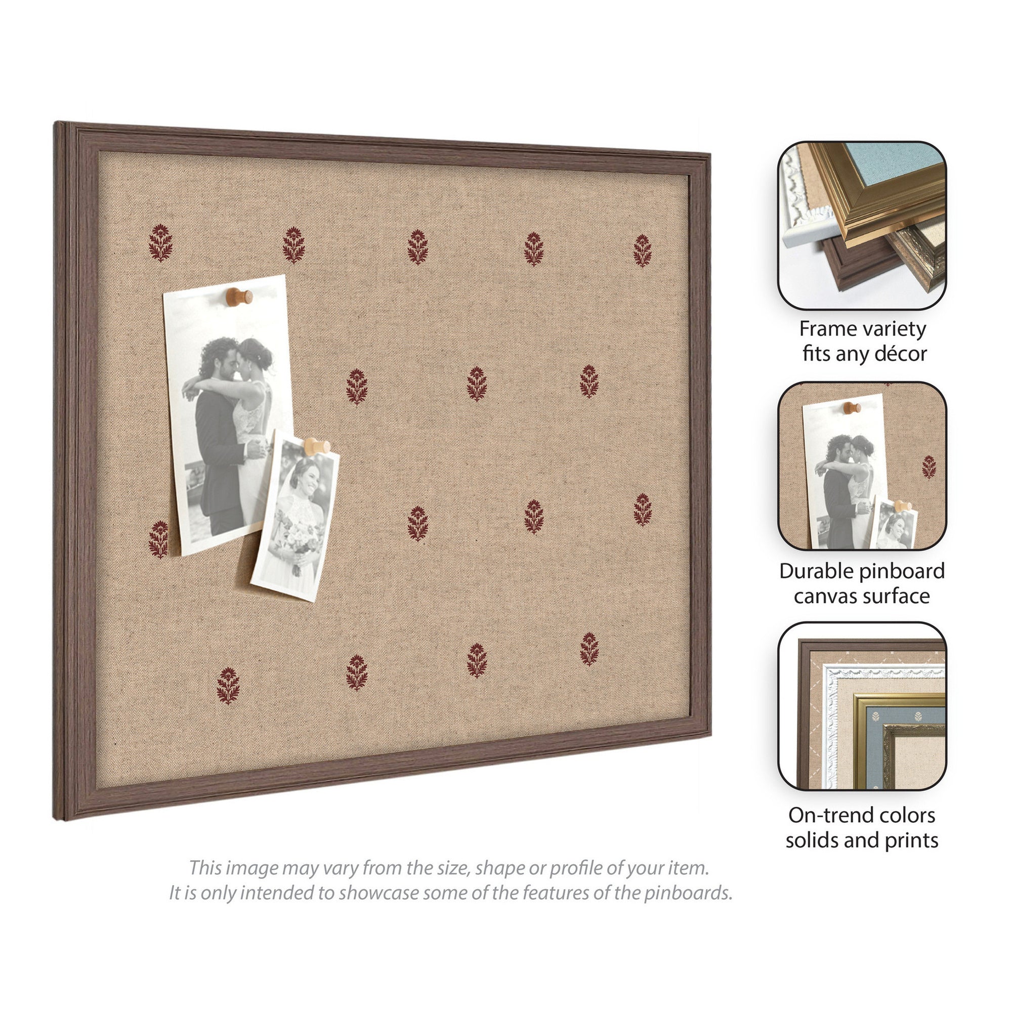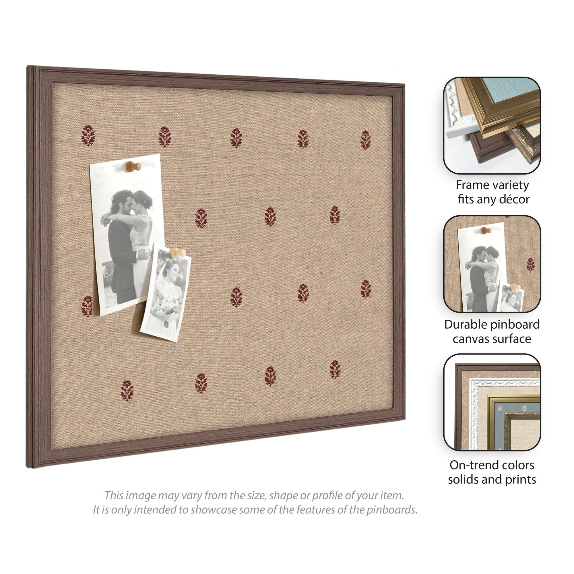 Organize your home in style with a fabric pinboard that has a sophisticated appeal. The neutral linen textile pattern accented with a dark red botanical block print is inspired by the belief that organization doesn't have to be boring. The decorative pinboard has a lightweight construction with a high-quality, fabric pinning surface that allows pin to push fully in to showcase all your meaningful keepsakes. Use this functional, designer pinboard for hanging photos, wedding invitations, holiday cards, or even stellar report cards. As an stylish accent, the beautiful framed bulletin board looks excellent in any entryway, living room, bedroom, mudroom, or kitchen