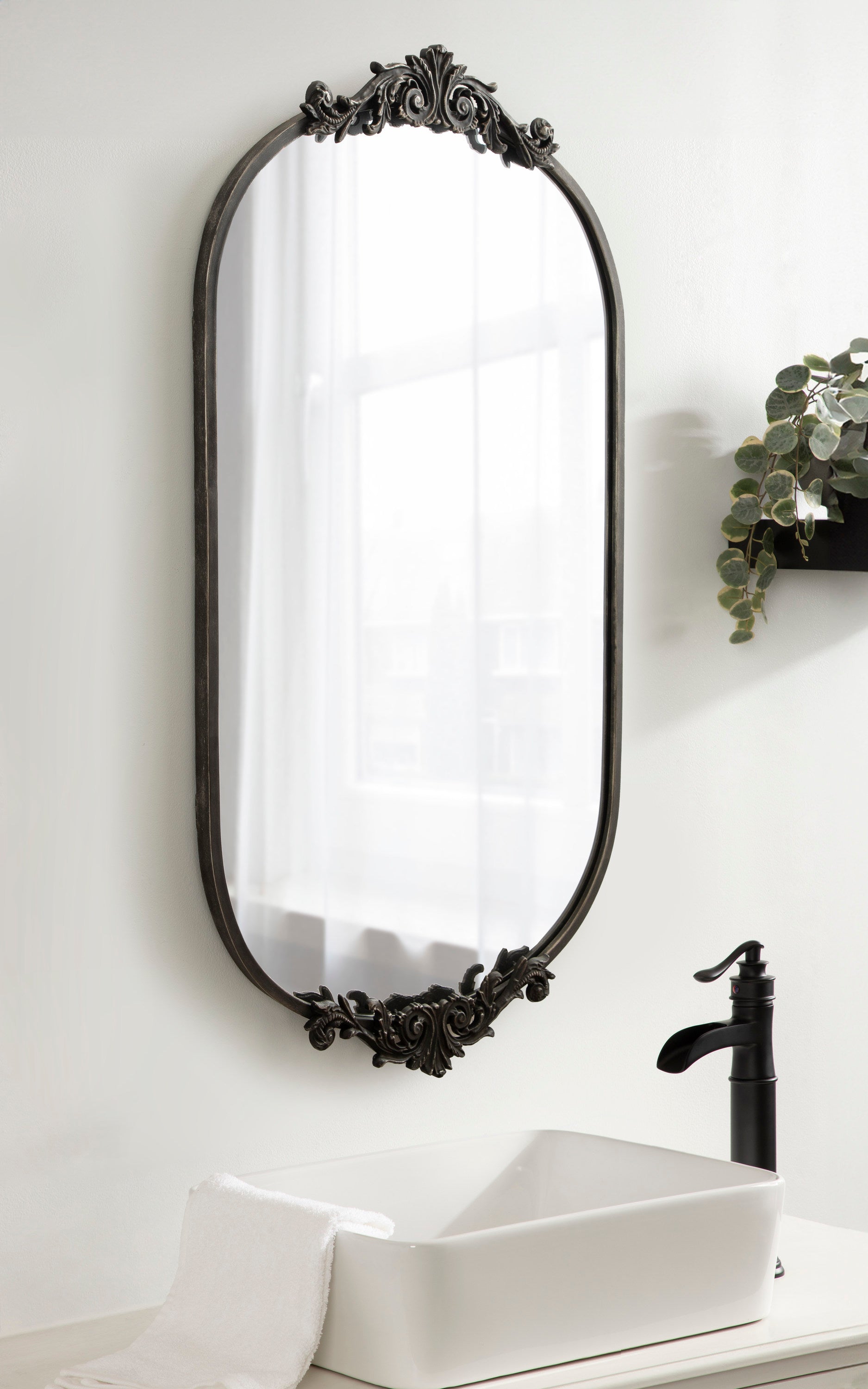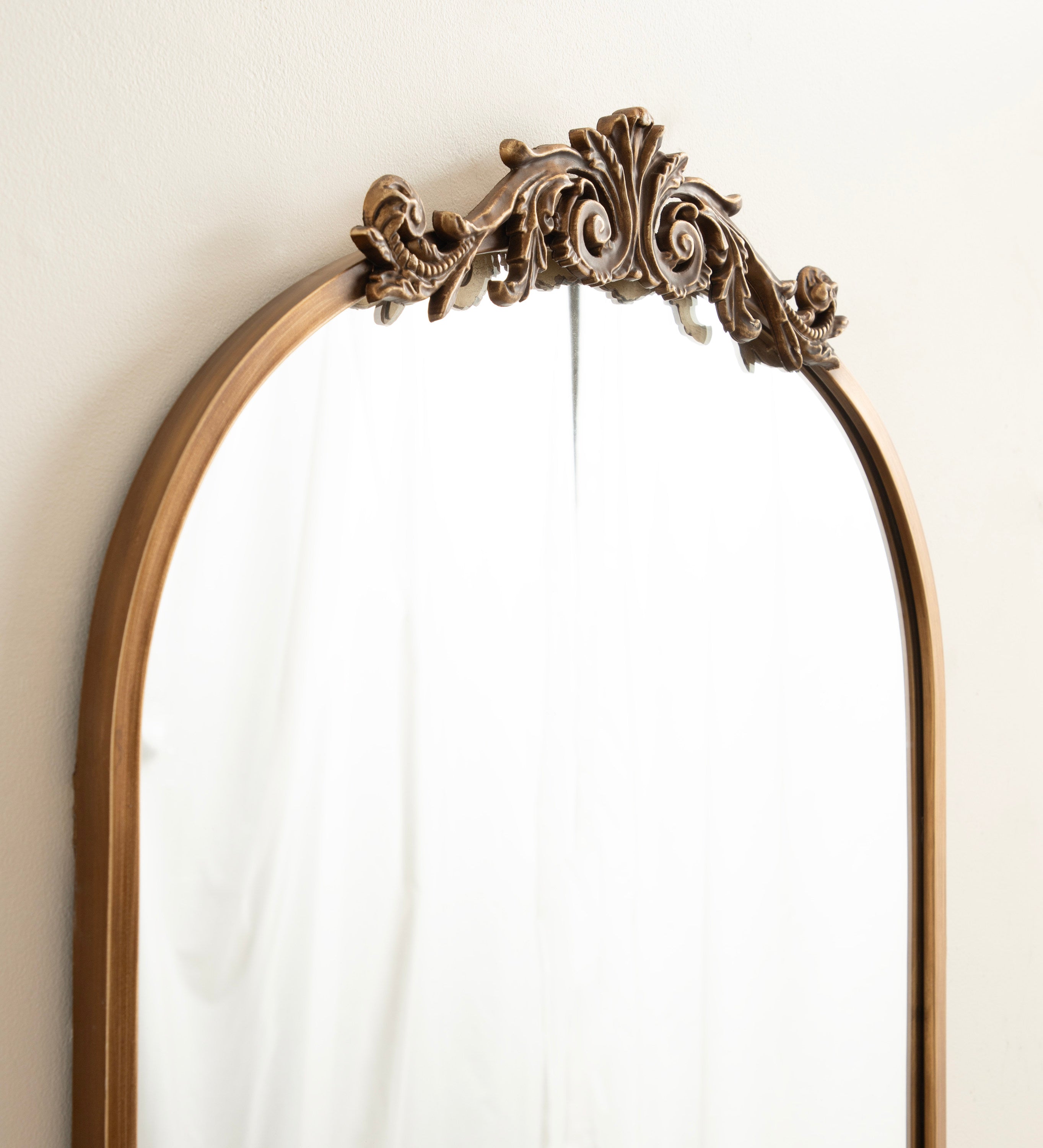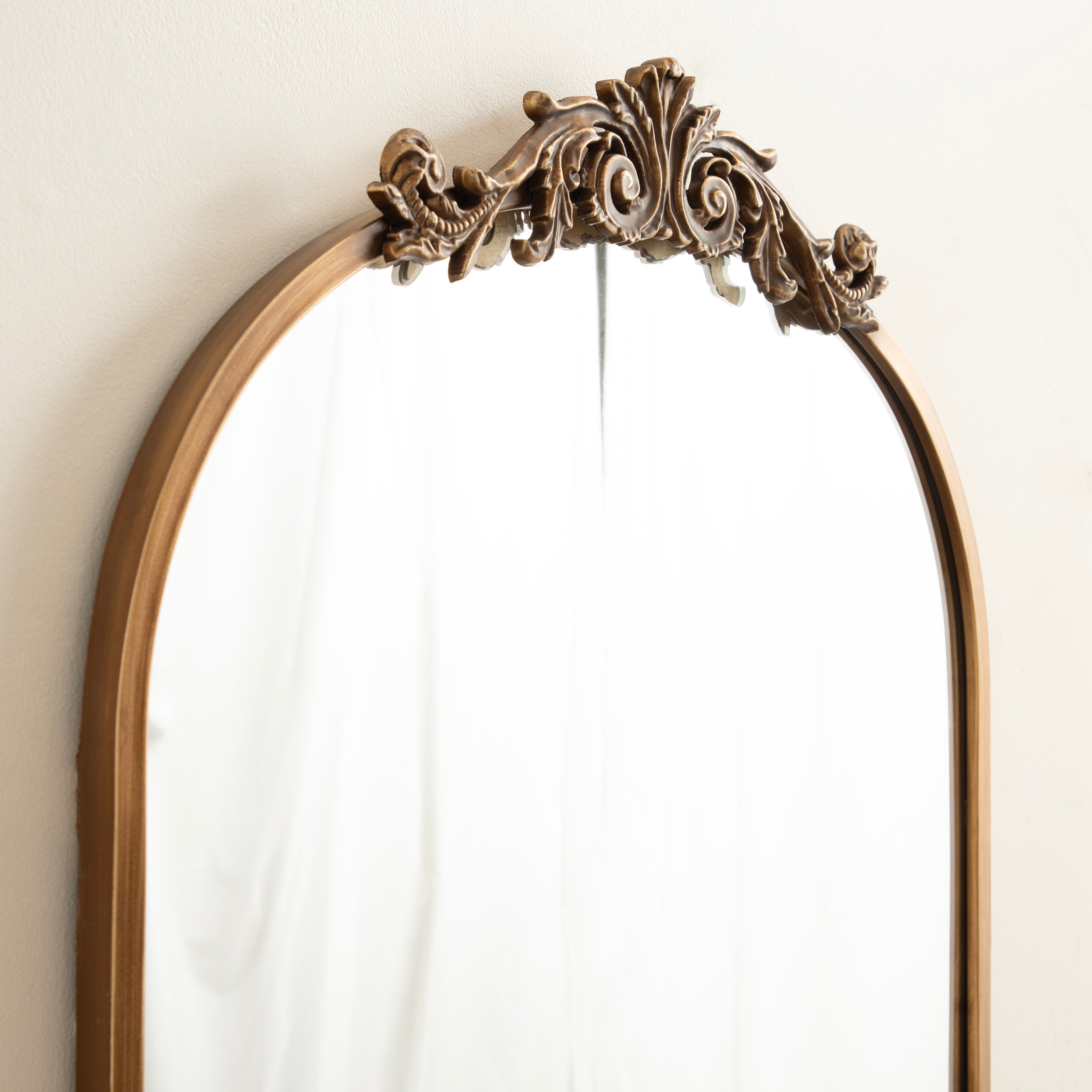 Create a chic air of elegant sophistication in your home with the glamorous Arendahl ornate mirror. This mirror features a lovely arch with baroque-inspired detailing. Its decorative aesthetic feels like a shift in time to the sophistication of Parisian palaces and glamorous, refined decor. Its rounded shape and antique finish bring the baroque design into the 21st century for a timeless statement piece that works in any era. The vintage mirror is excellent as a functional powder room or bathroom mirror, or its easy to use as a wall accent. Due to its hand-finished craftsmanship, each piece may vary in appearance.