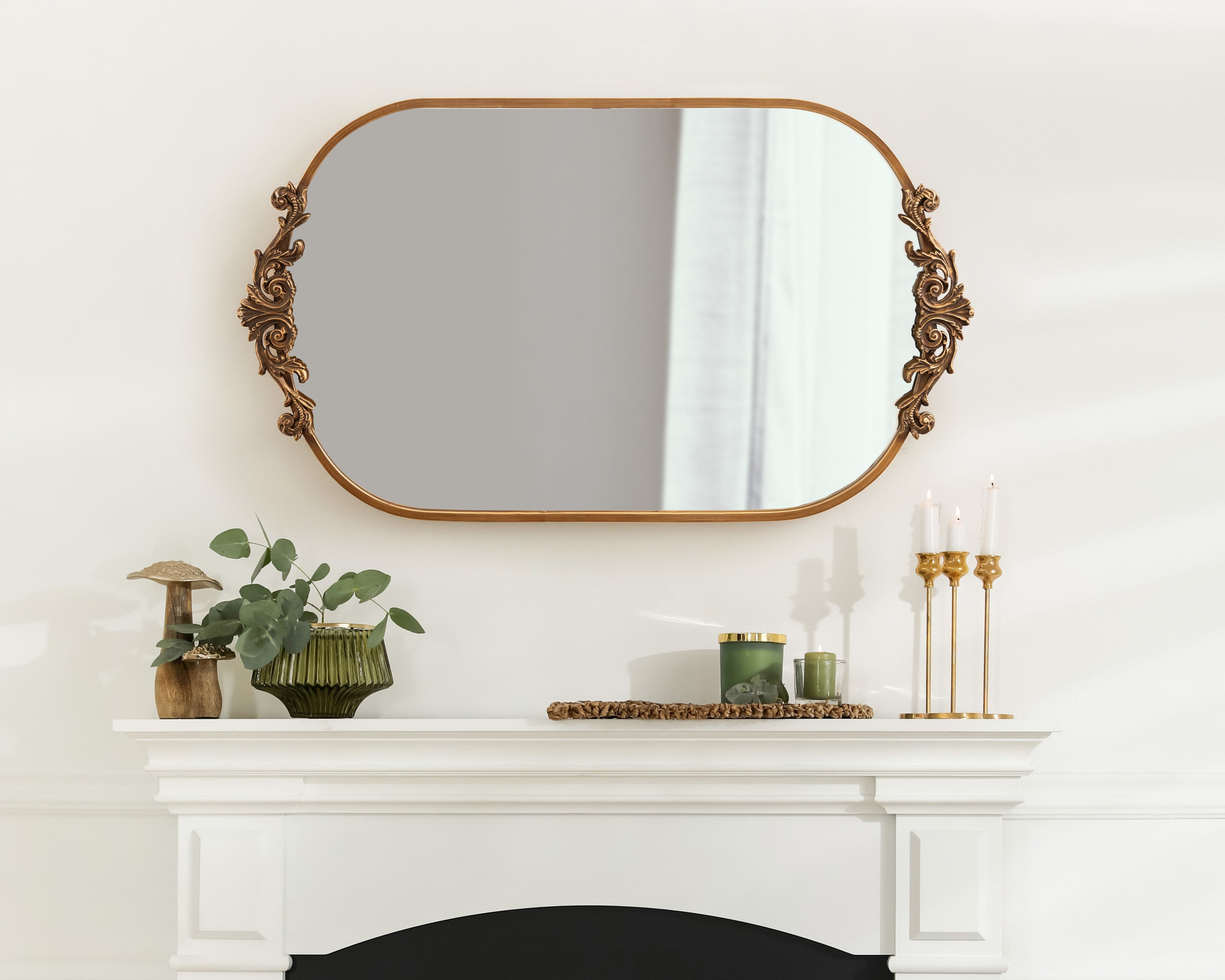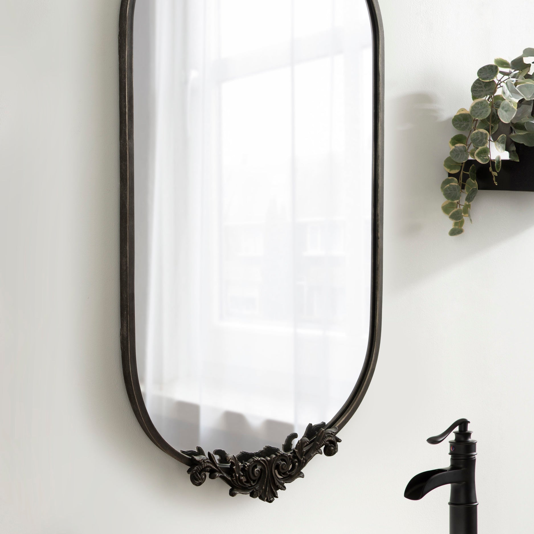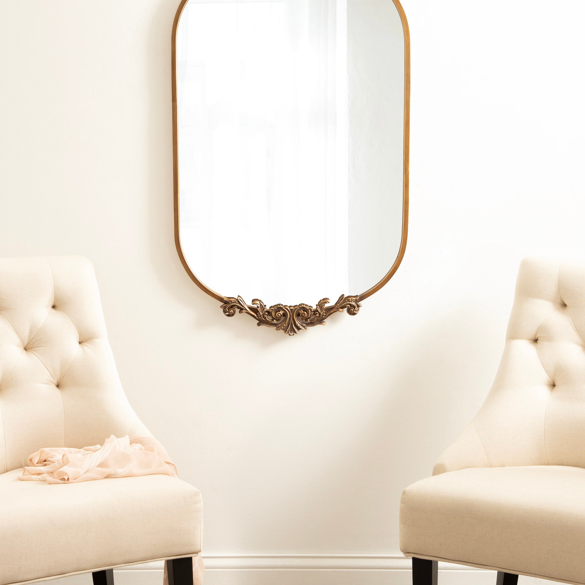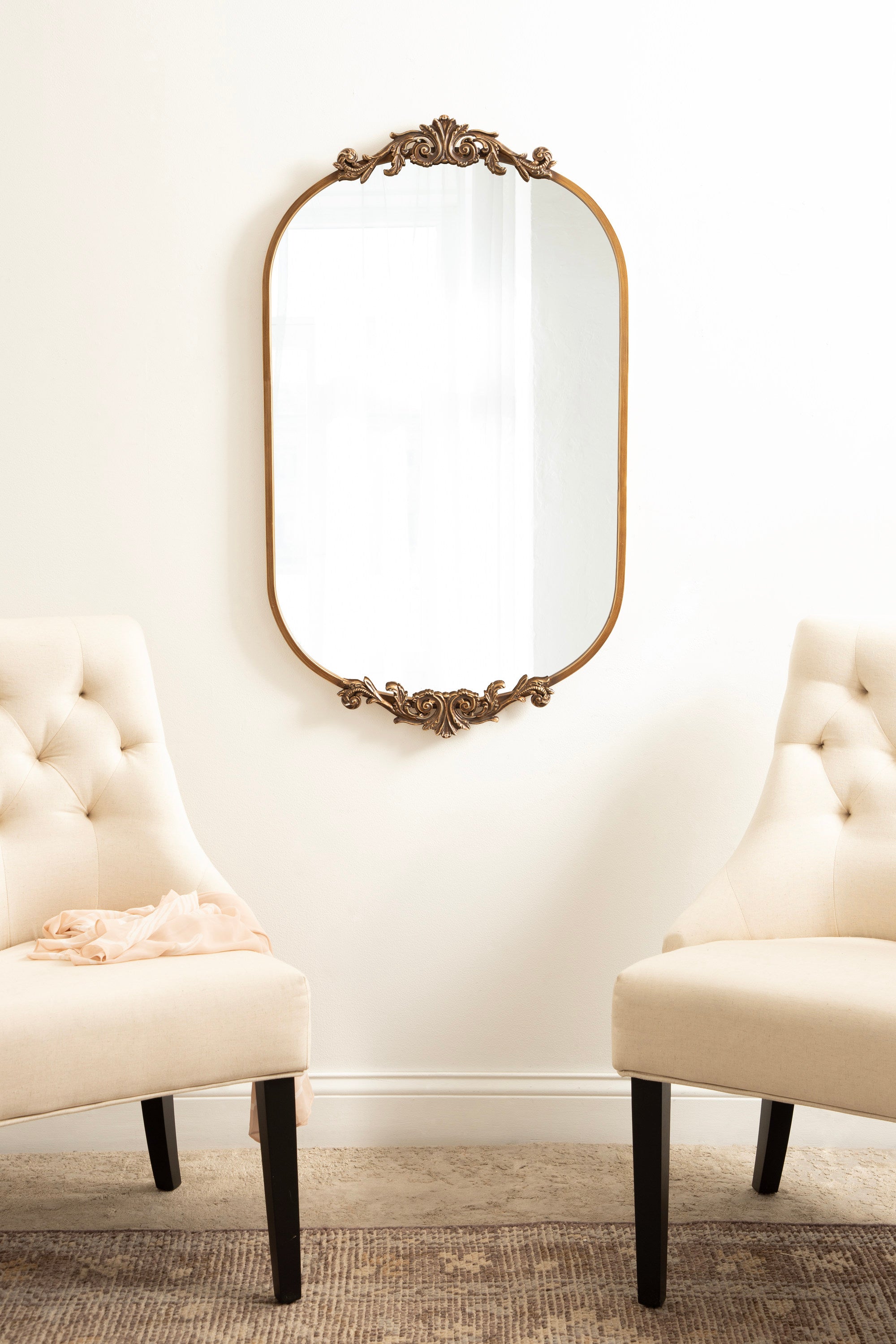 Create a chic air of elegant sophistication in your home with the glamorous Arendahl ornate mirror. This mirror features a lovely arch with baroque-inspired detailing. Its decorative aesthetic feels like a shift in time to the sophistication of Parisian palaces and glamorous, refined decor. Its rounded shape and antique finish bring the baroque design into the 21st century for a timeless statement piece that works in any era. The vintage mirror is excellent as a functional powder room or bathroom mirror, or its easy to use as a wall accent. Due to its hand-finished craftsmanship, each piece may vary in appearance.
